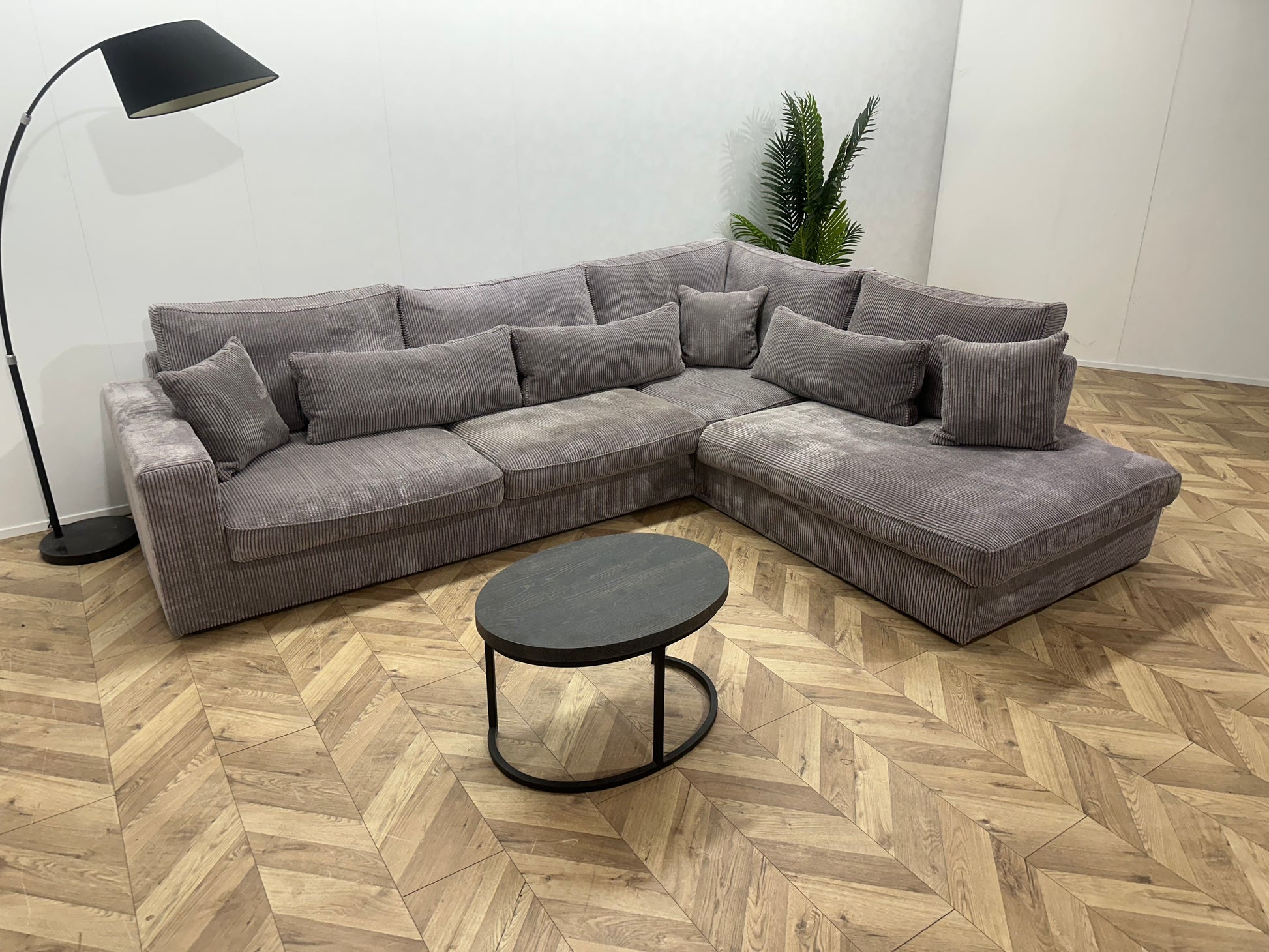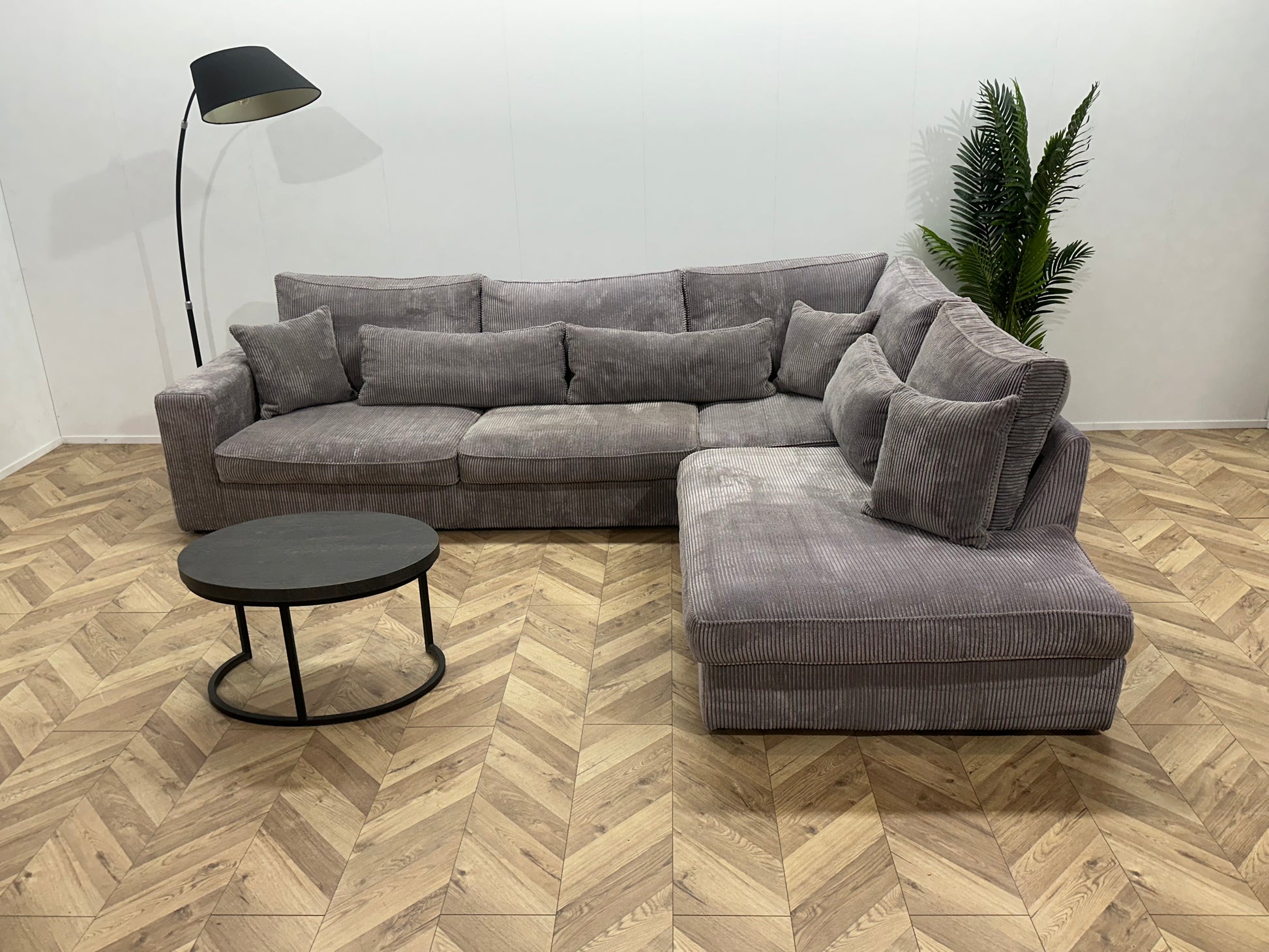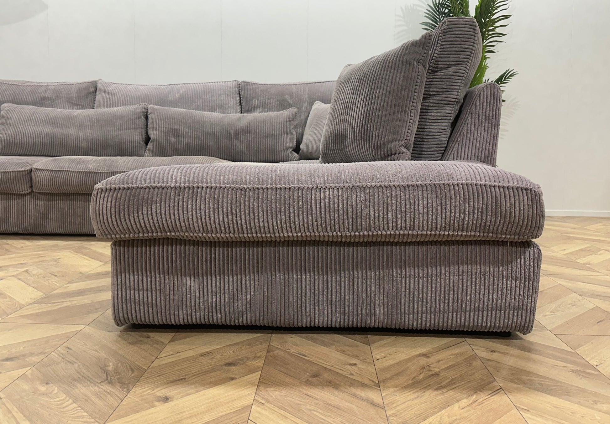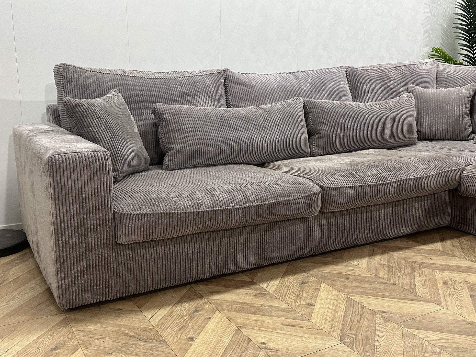 Licht Grijze Ribstof Hoekbank ~ Losse Kussens Met Afneembare Hoezen
