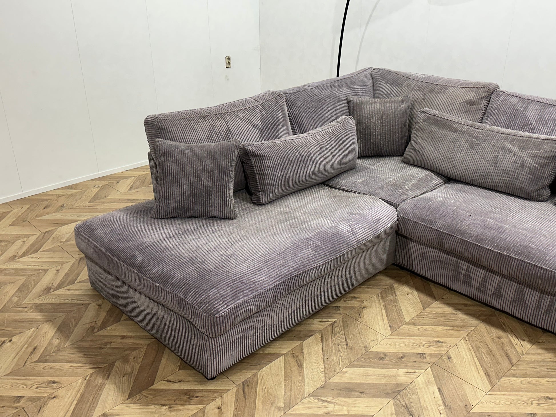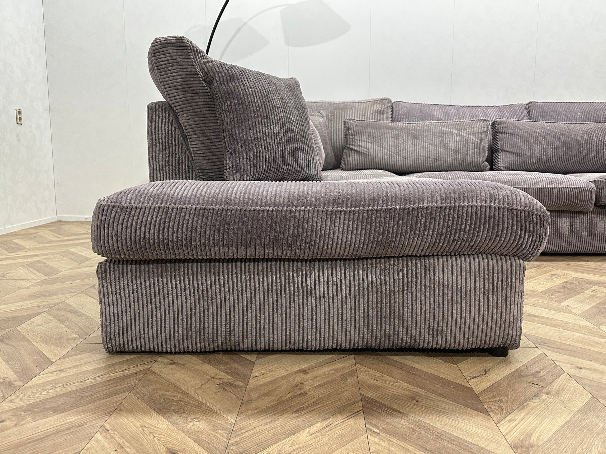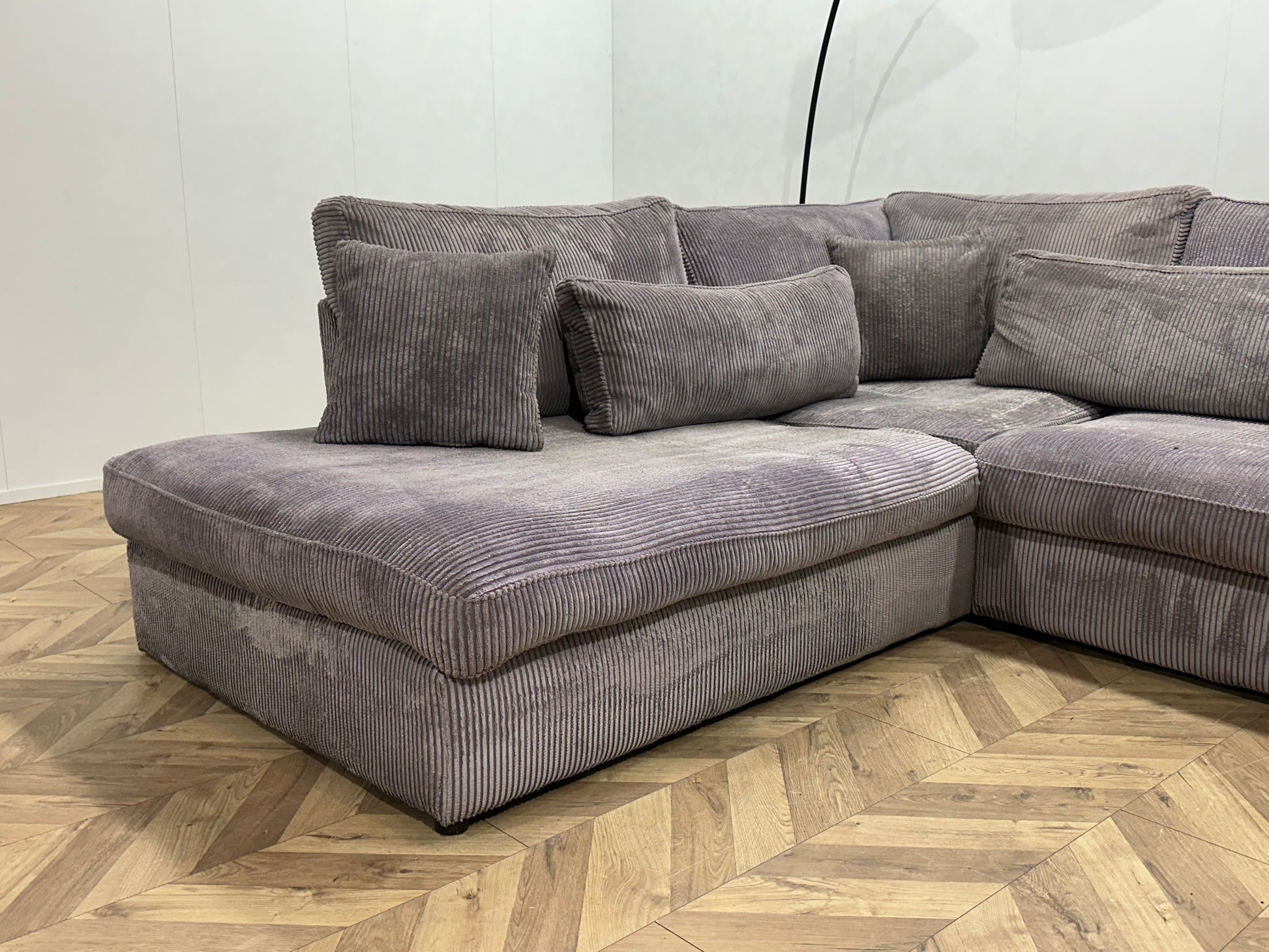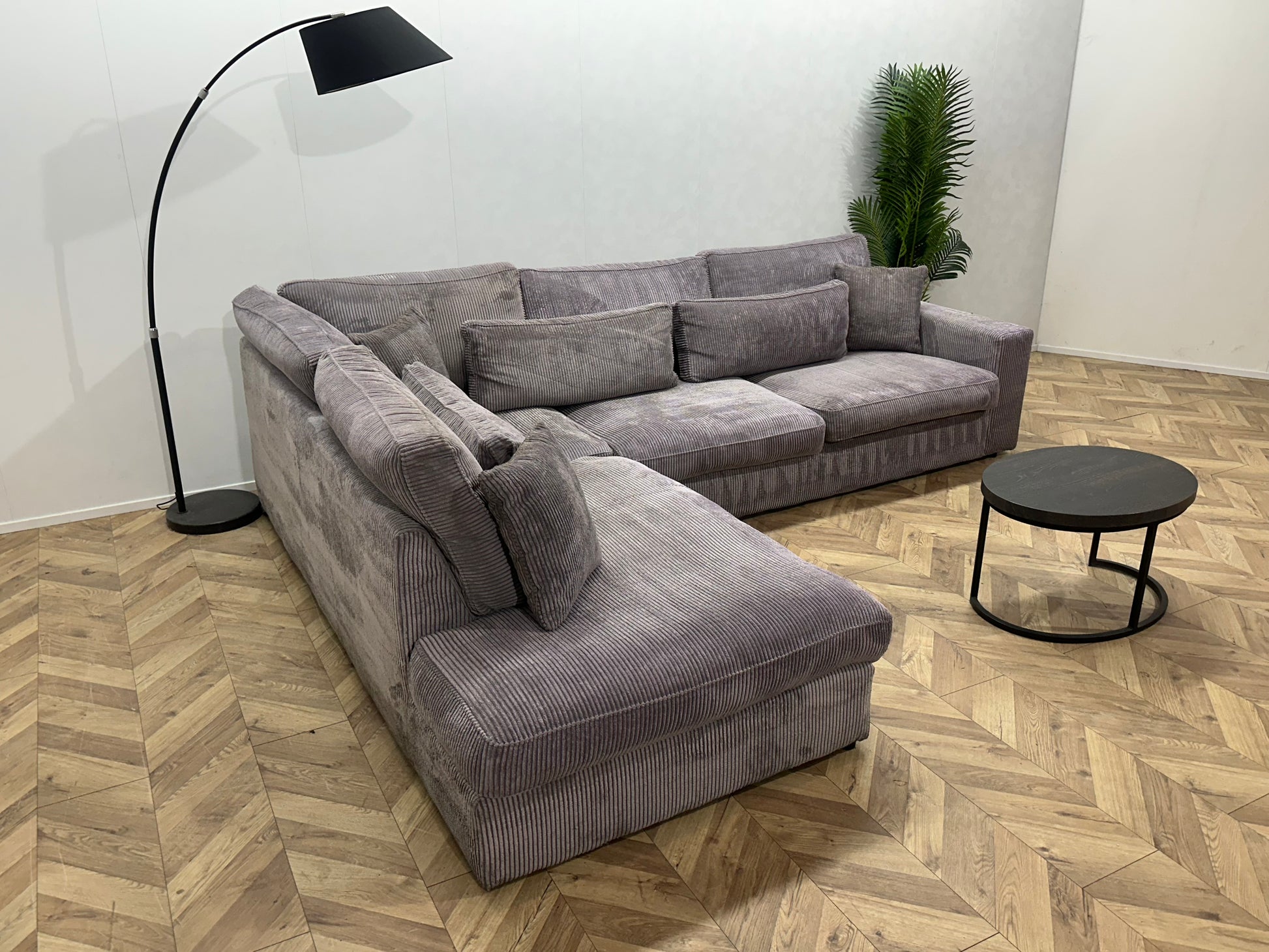 Licht Grijze Ribstof Hoekbank ~ Losse Kussens Met Afneembare Hoezen