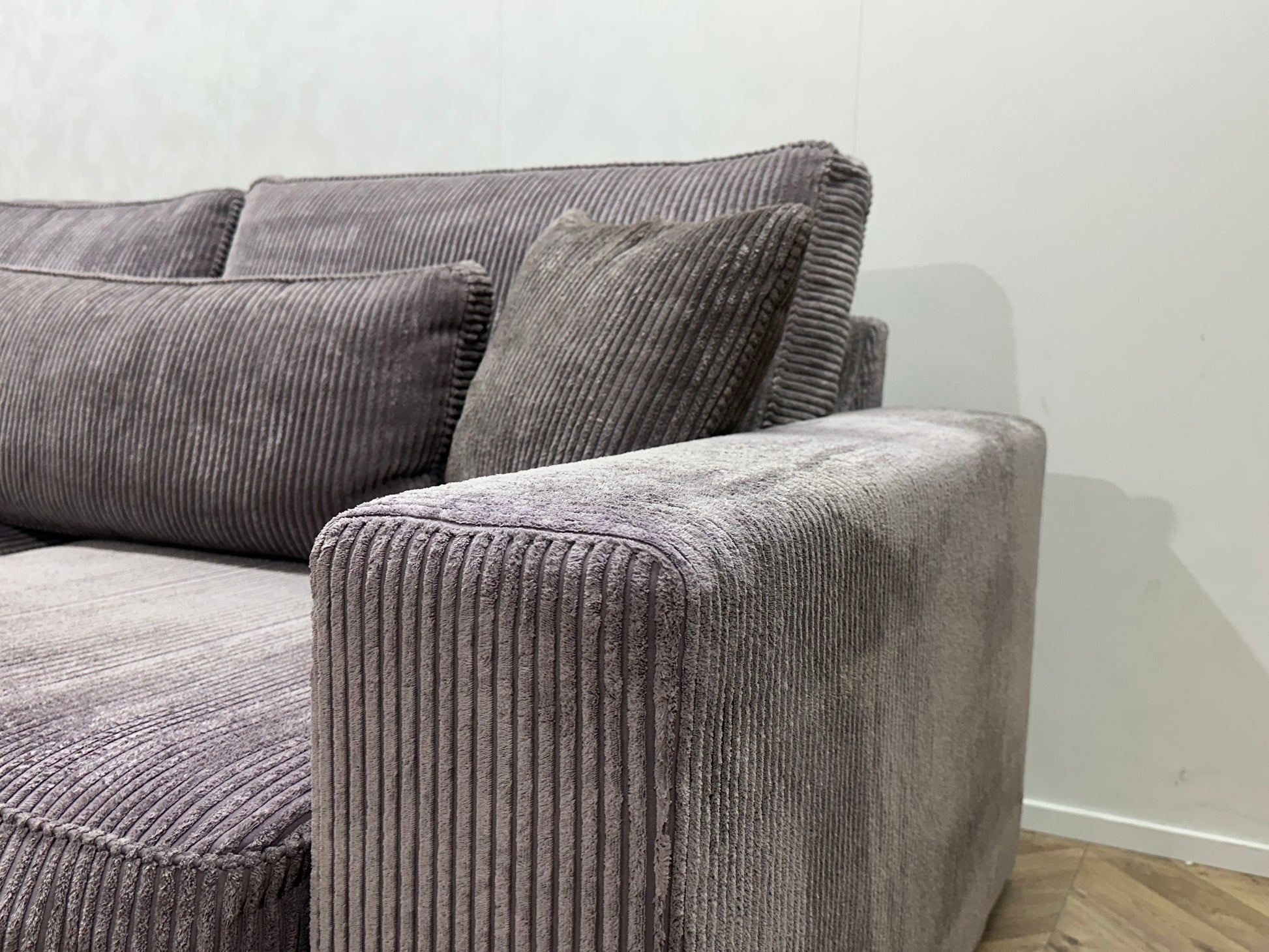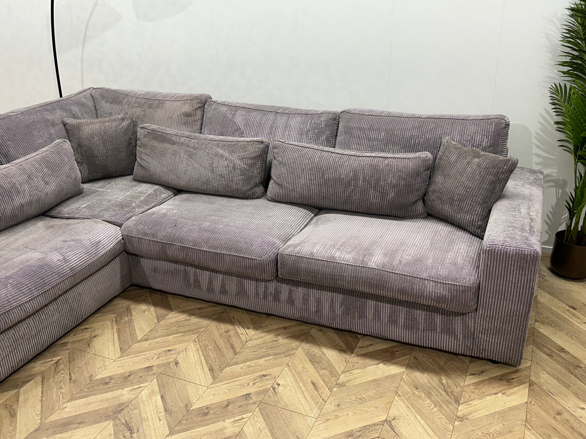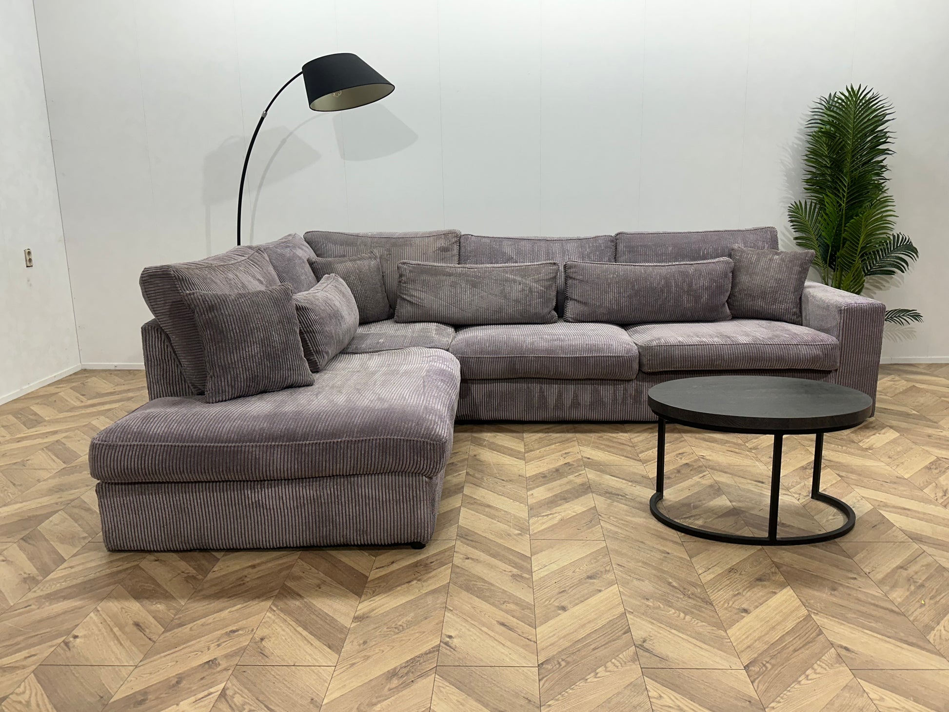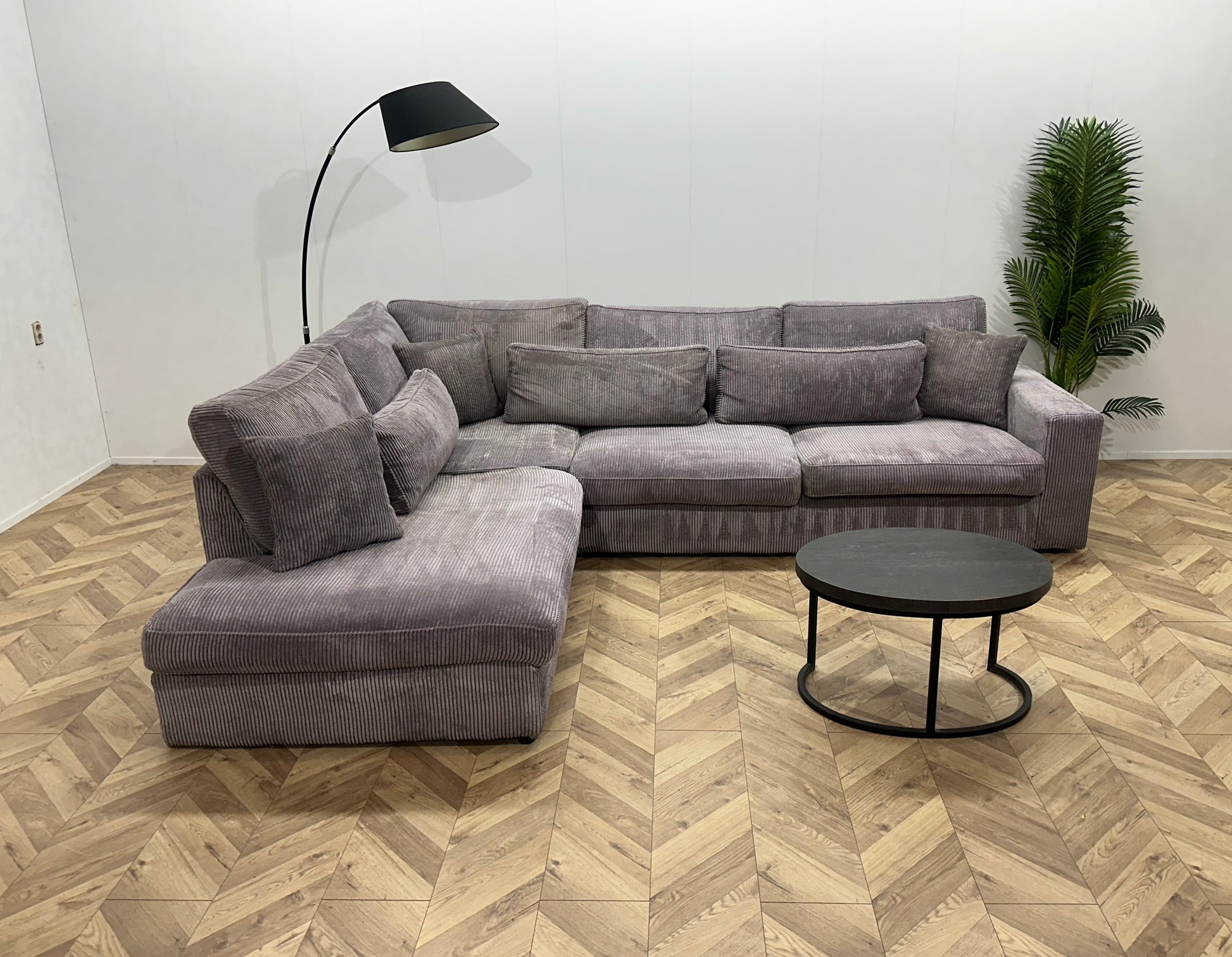 Licht Grijze Ribstof Hoekbank ~ Losse Kussens Met Afneembare Hoezen