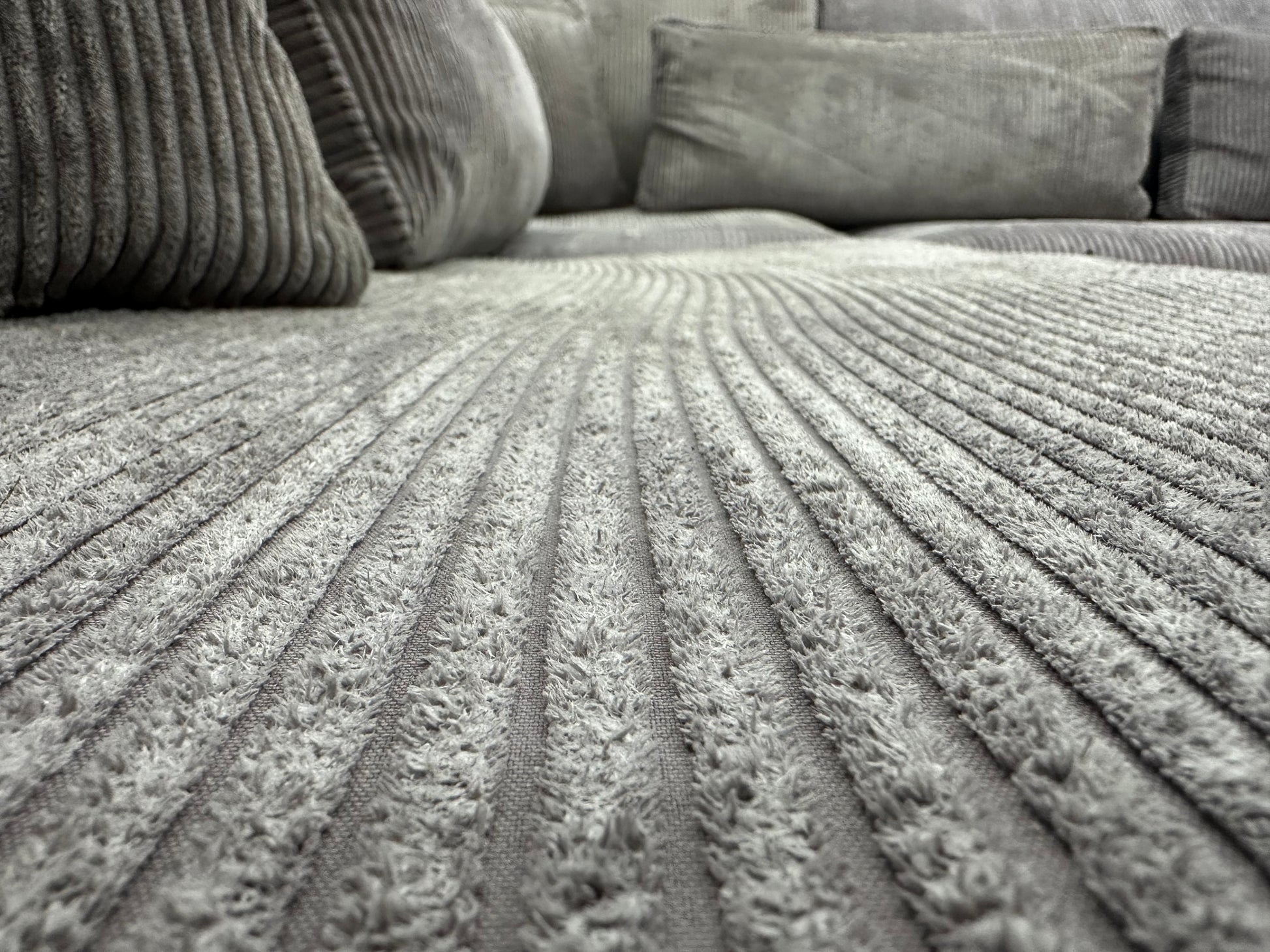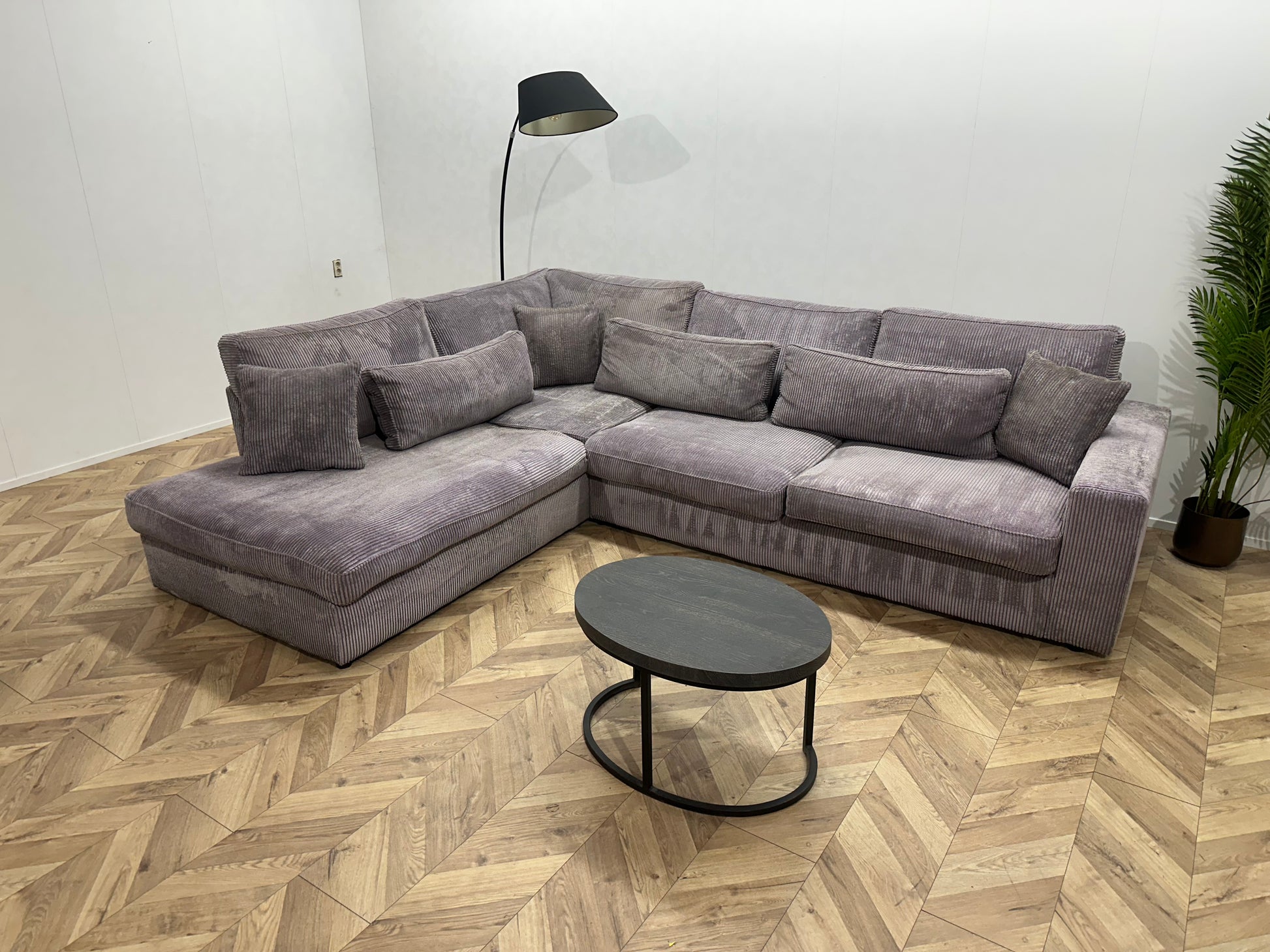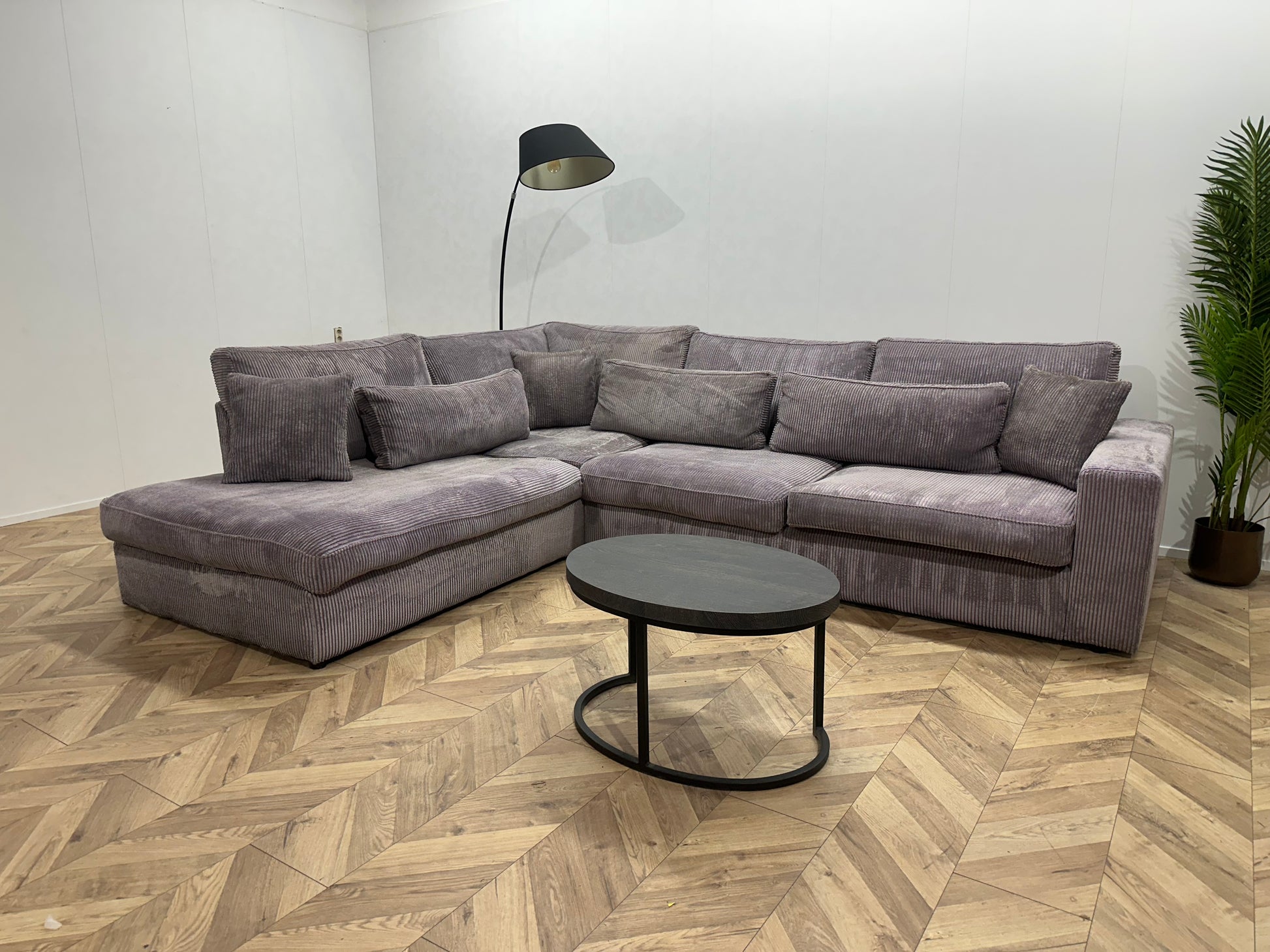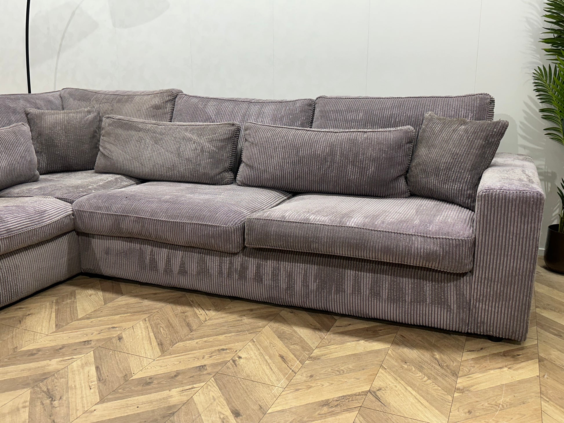 Licht Grijze Ribstof Hoekbank ~ Losse Kussens Met Afneembare Hoezen
