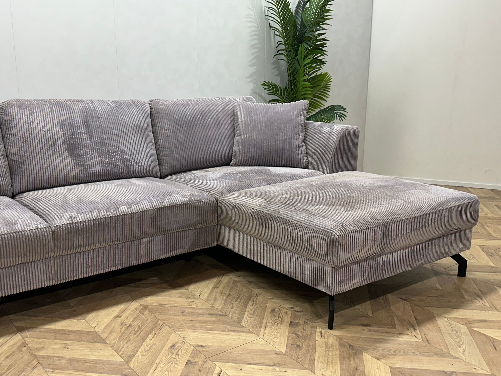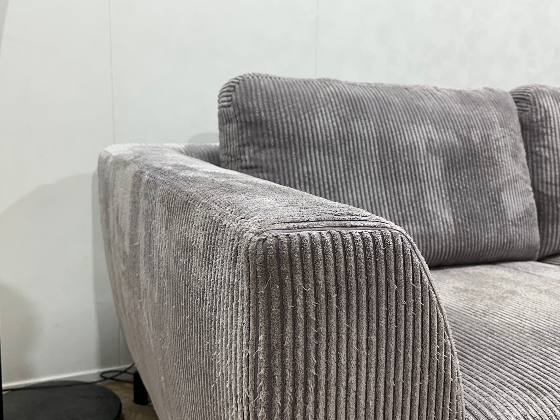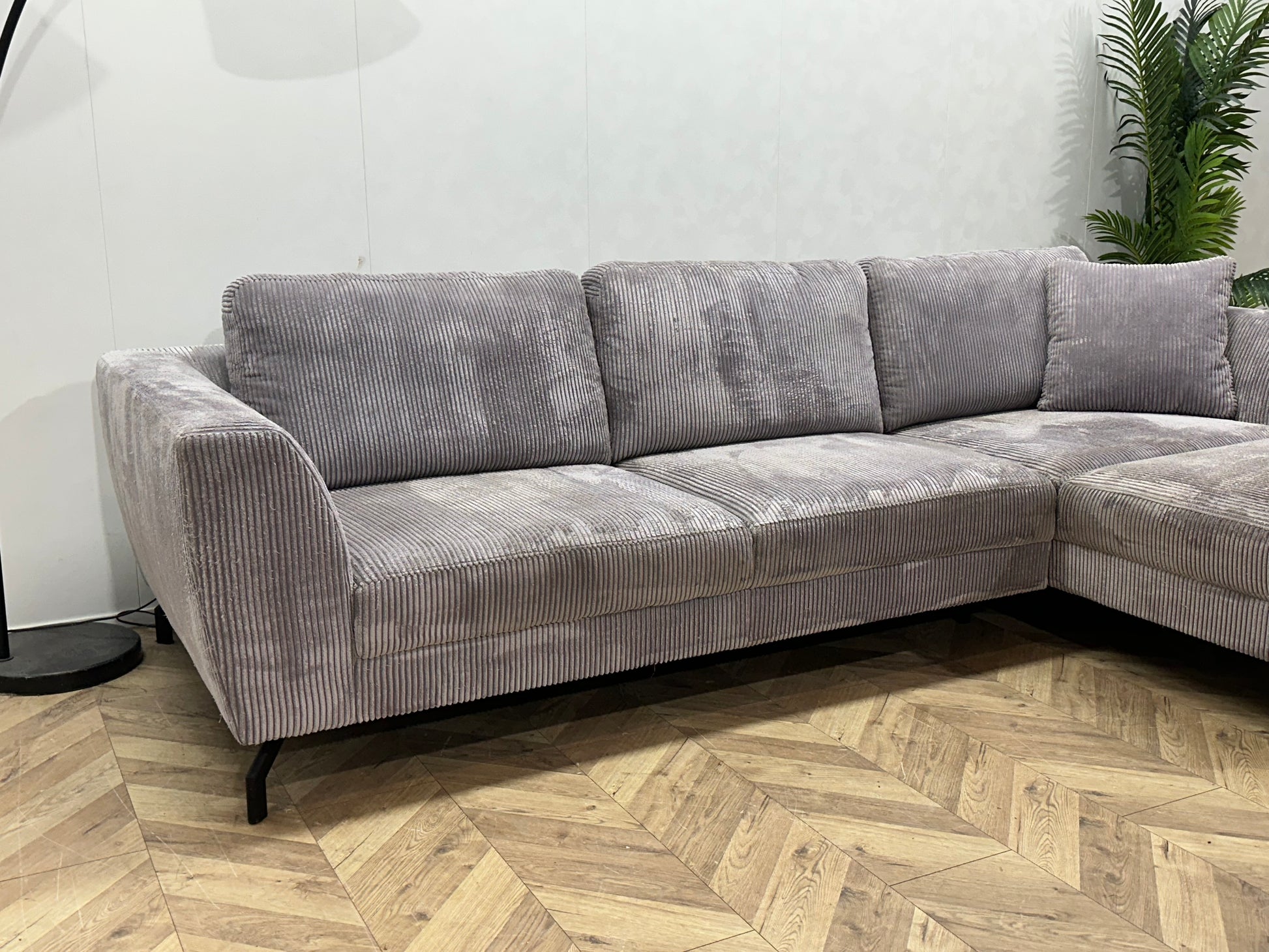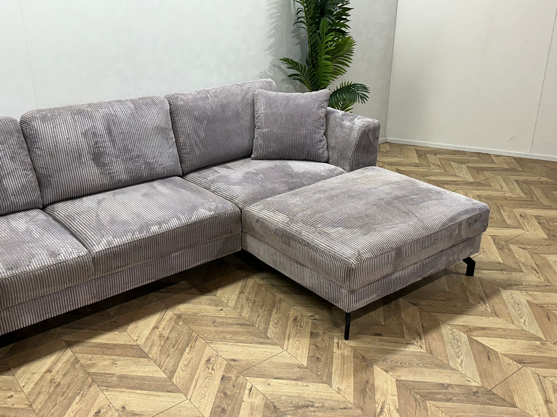 Licht Grijze Ribstof Hoekbank ~ Losse Rugkussens Met Afneembare Hoezen
