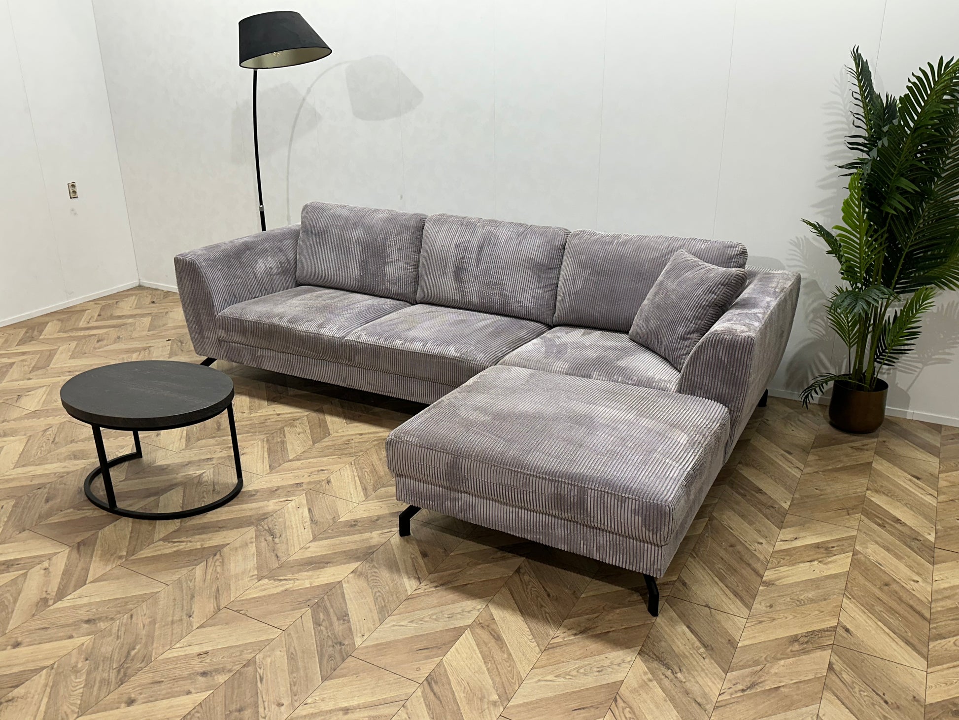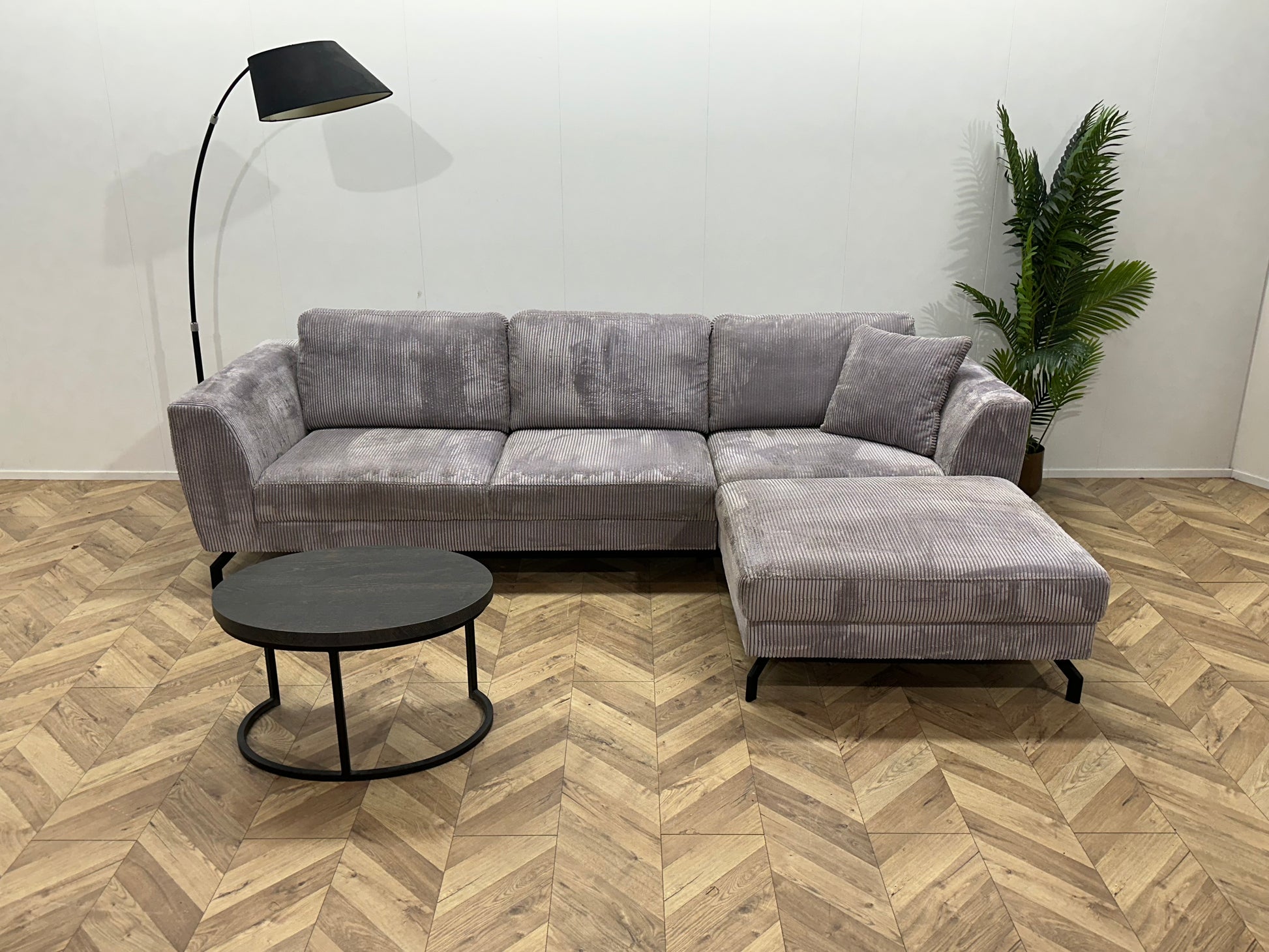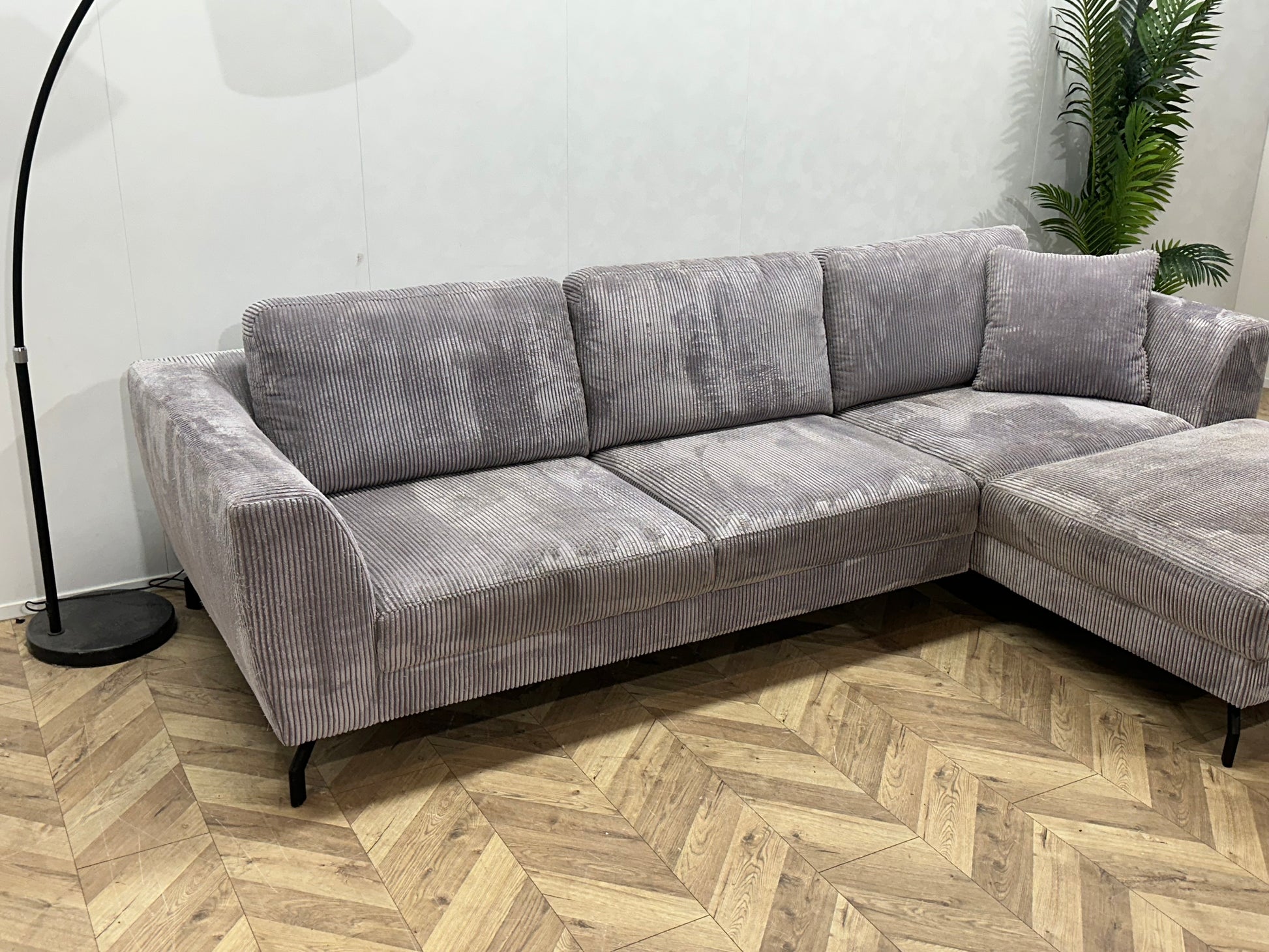 Licht Grijze Ribstof Hoekbank ~ Losse Rugkussens Met Afneembare Hoezen
