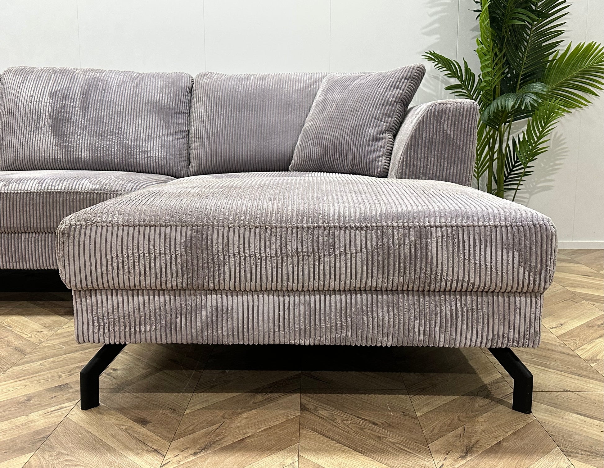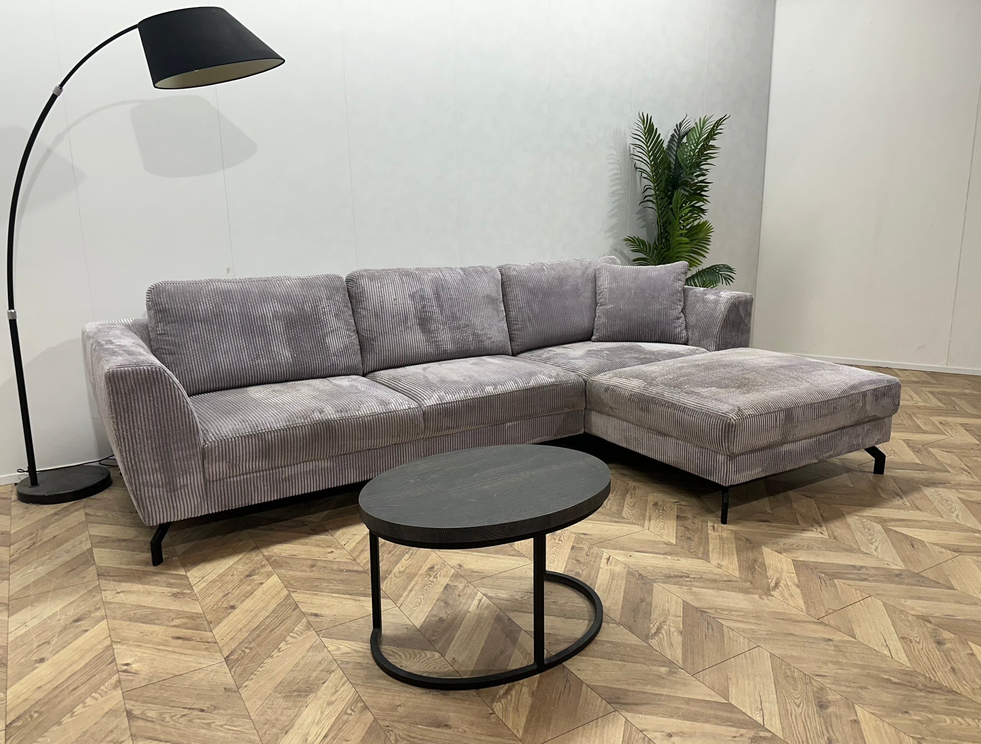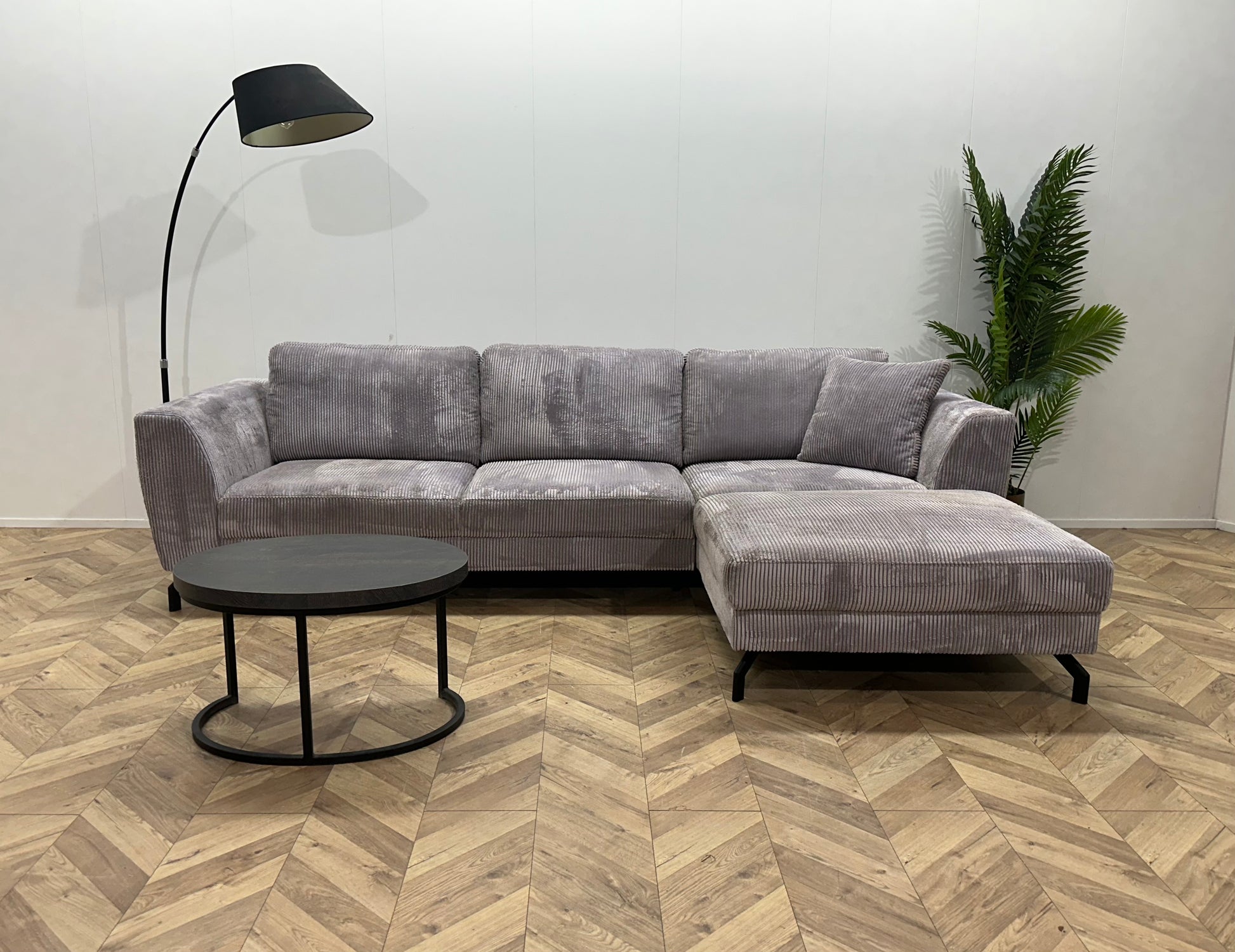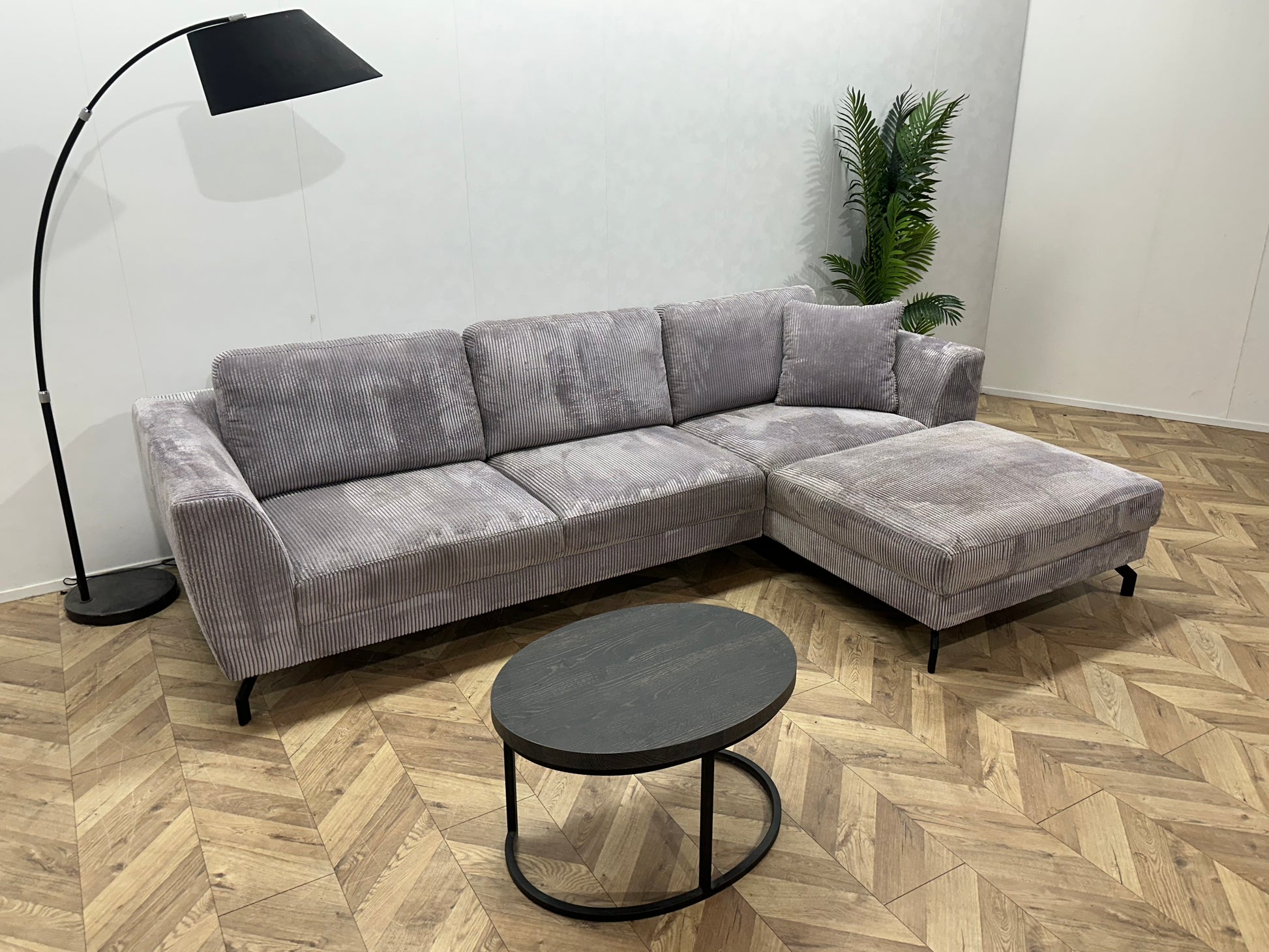 Licht Grijze Ribstof Hoekbank ~ Losse Rugkussens Met Afneembare Hoezen