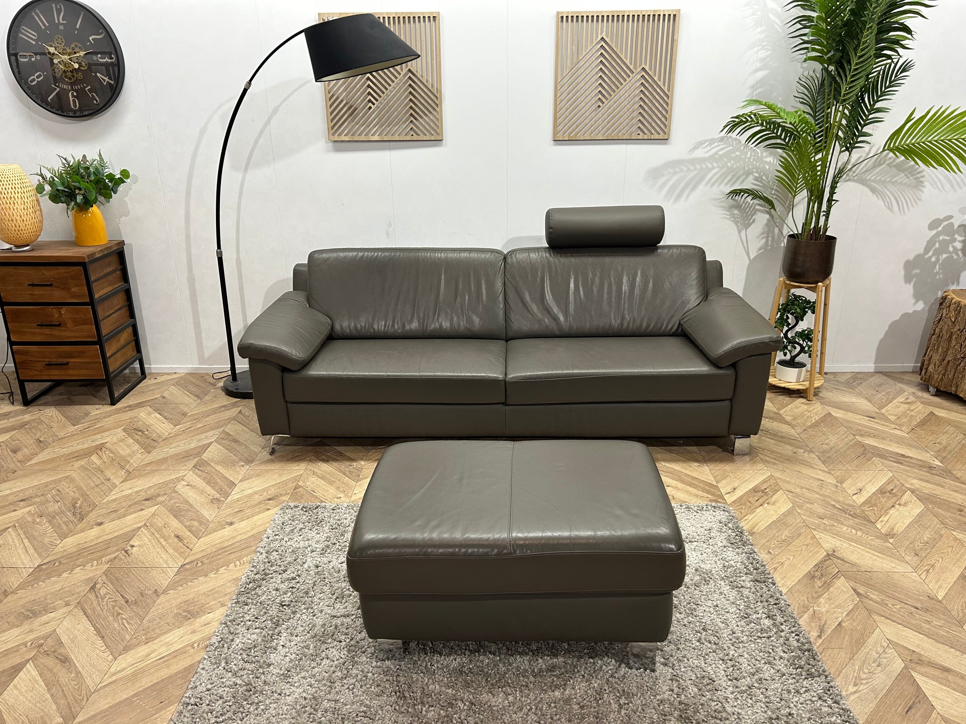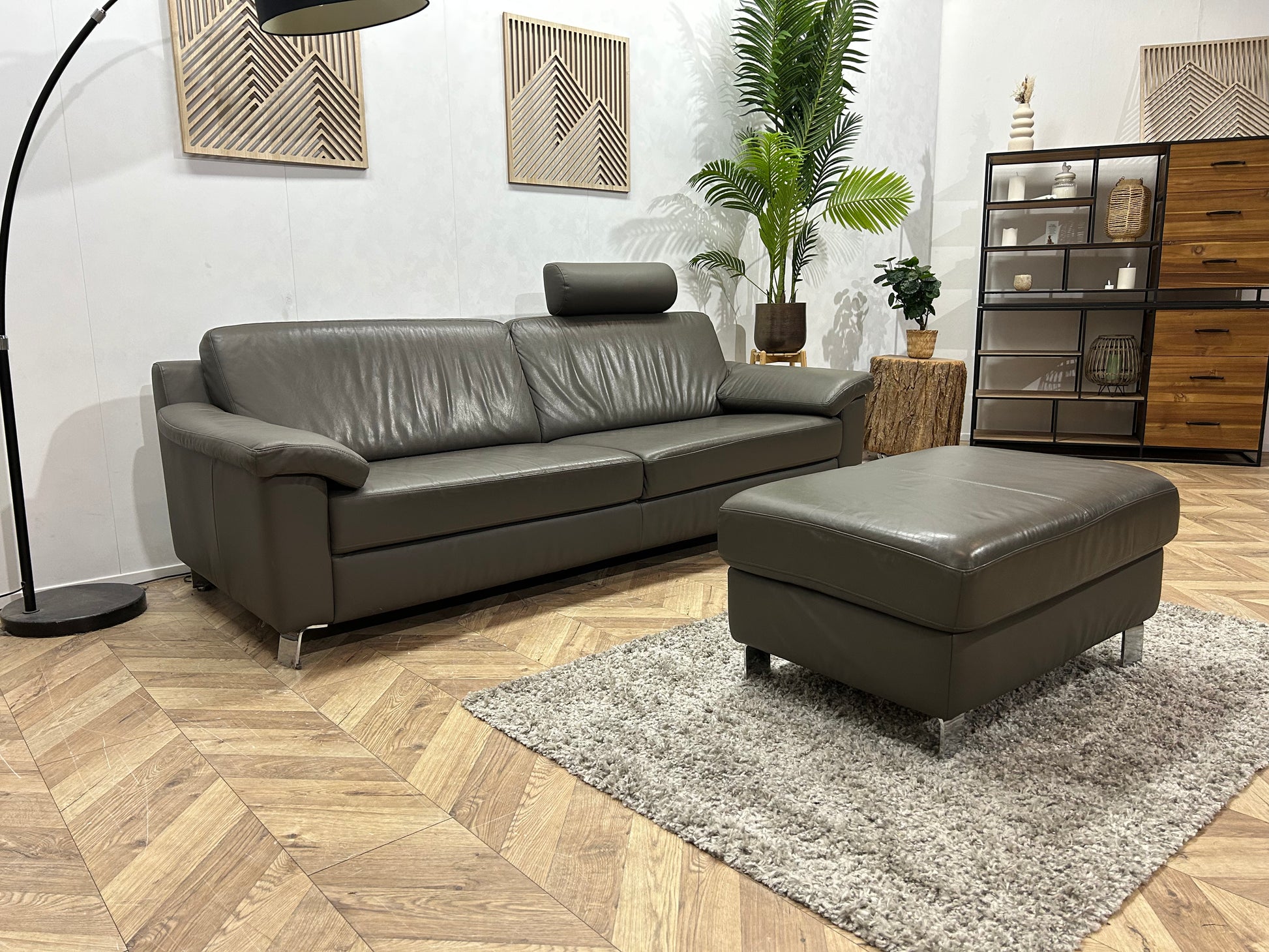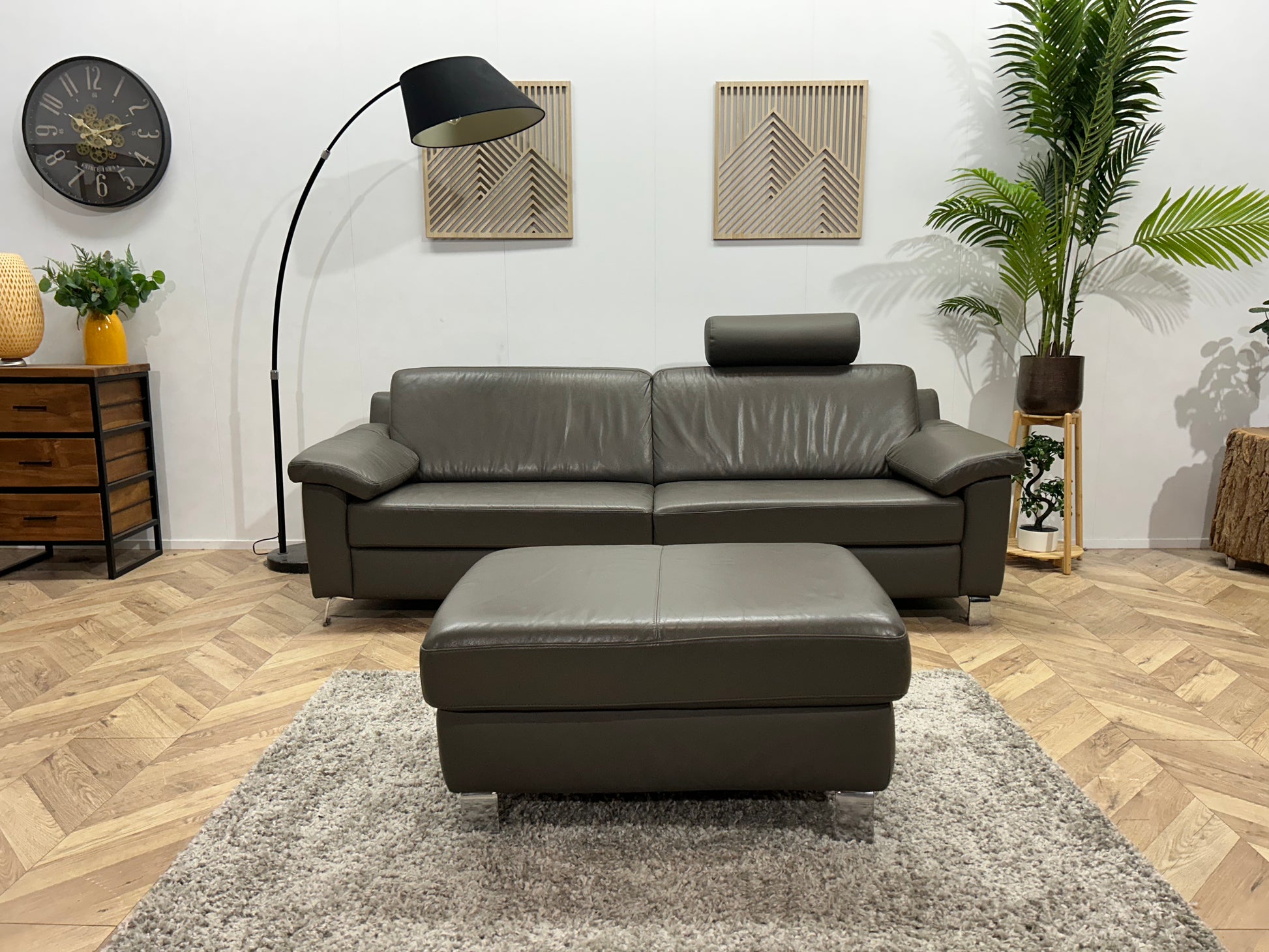 Montèl Grijze Echt Lederen 2,5 Zits Bank Inc Hocker