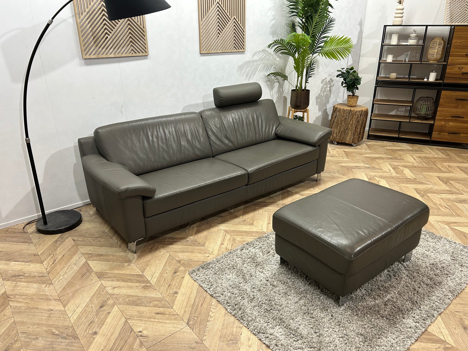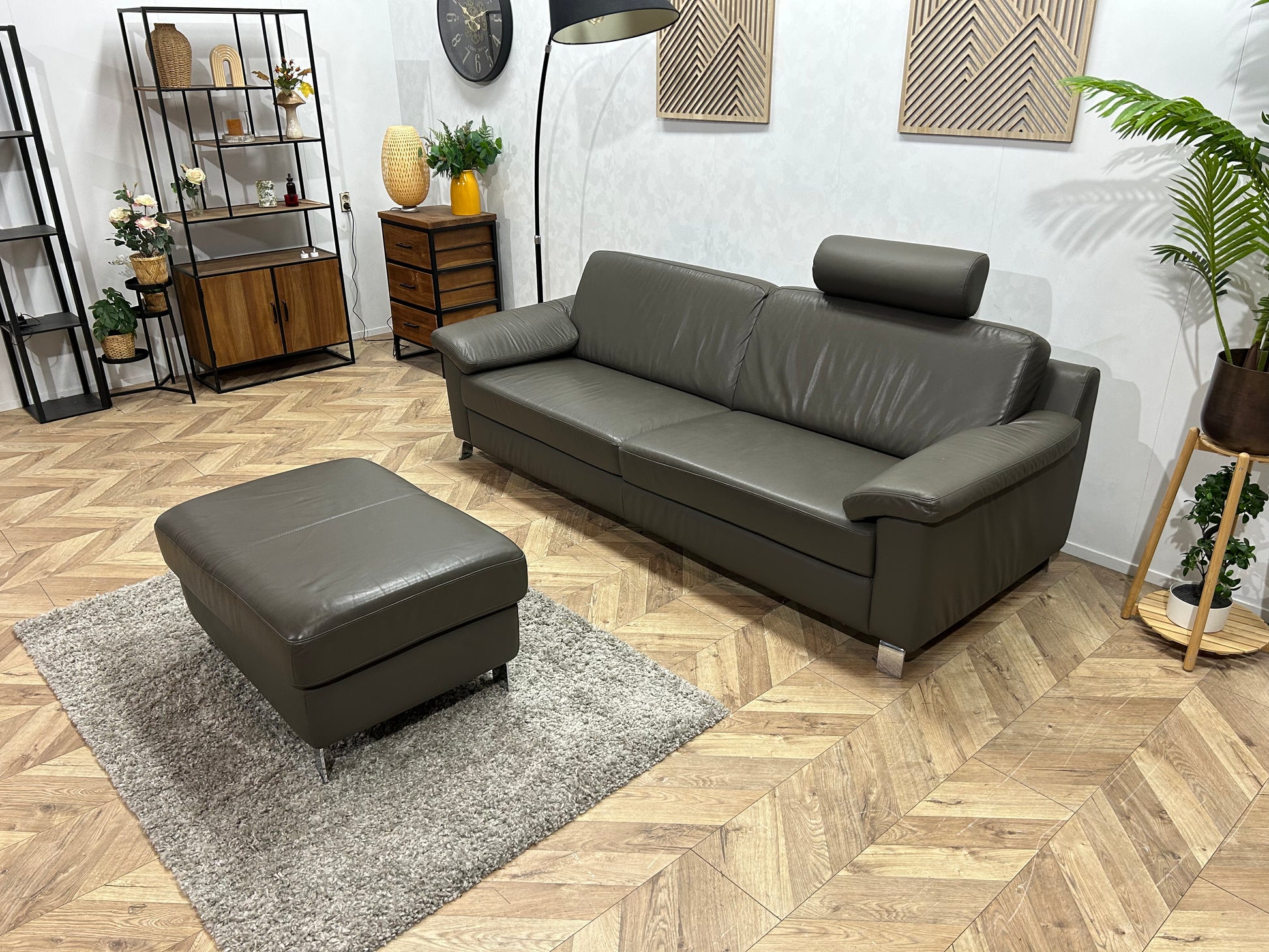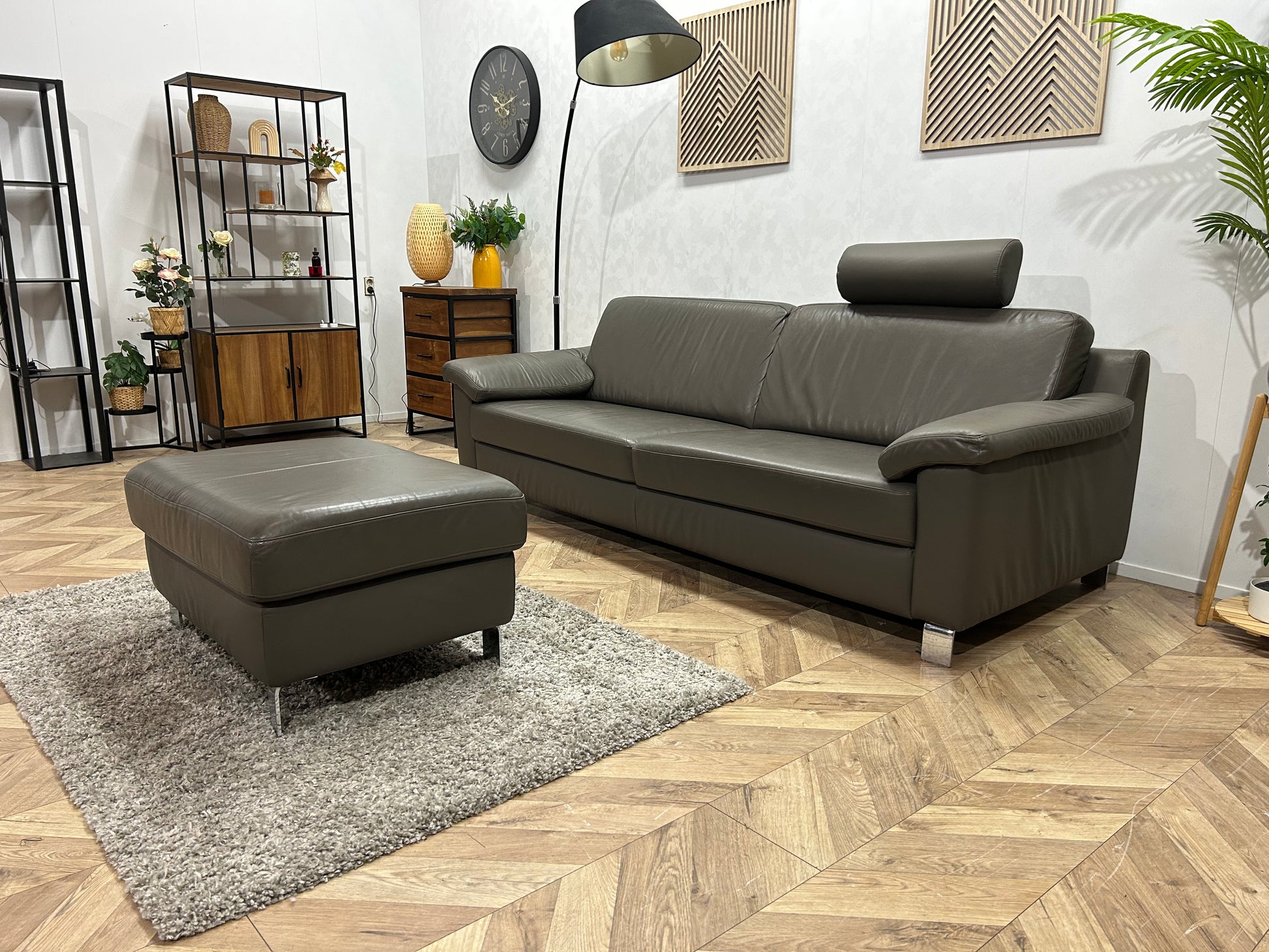 Montèl Grijze Echt Lederen 2,5 Zits Bank Inc Hocker