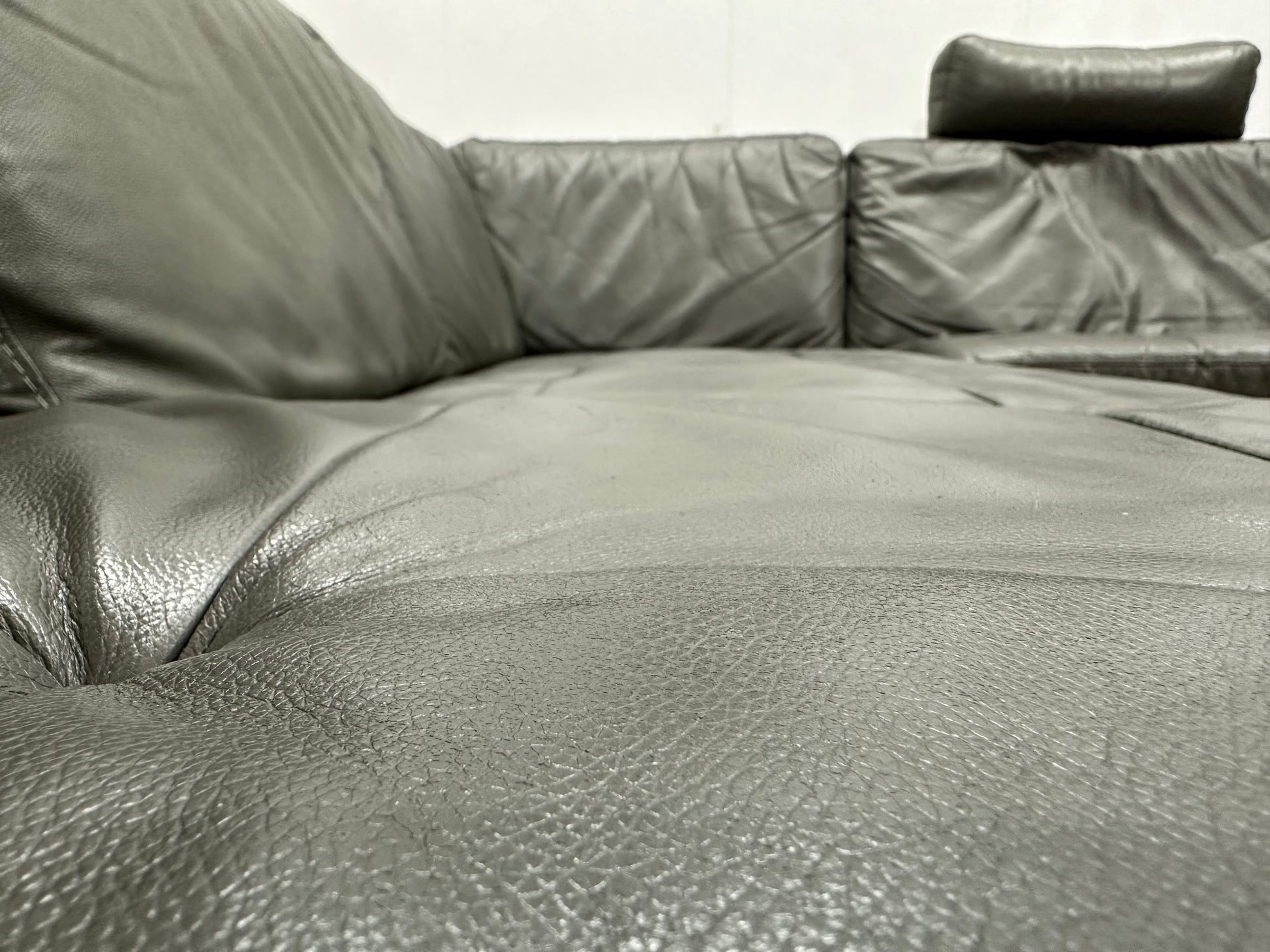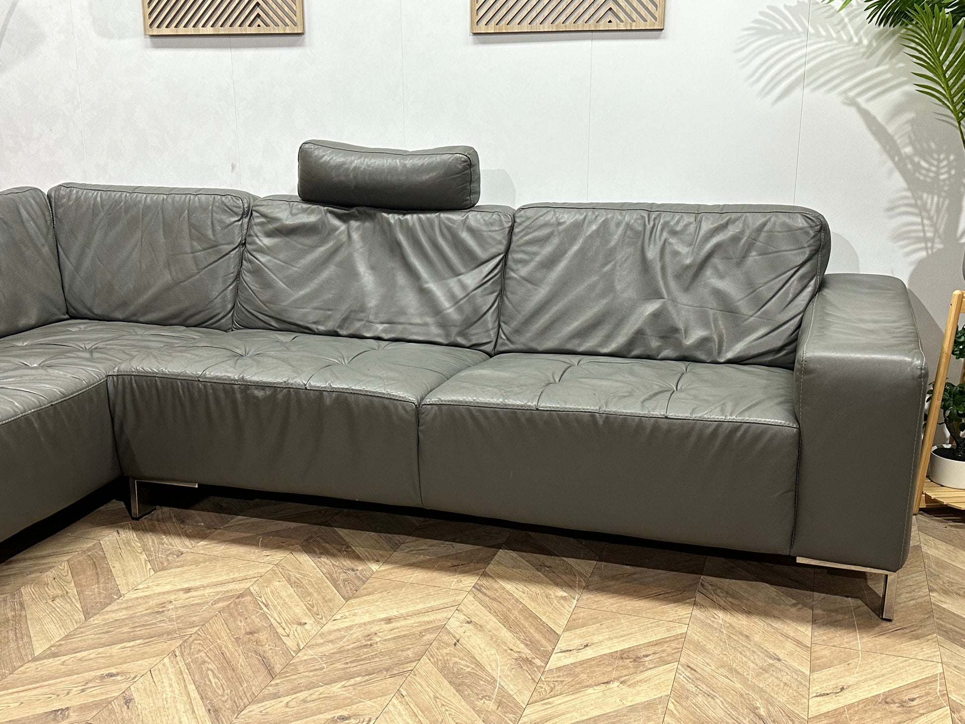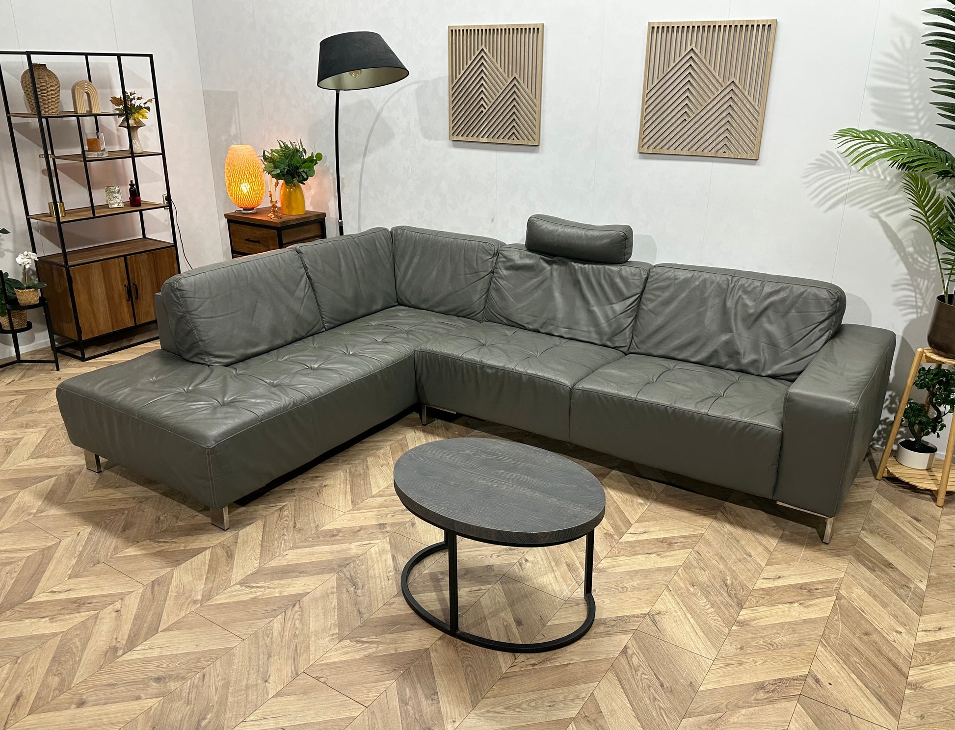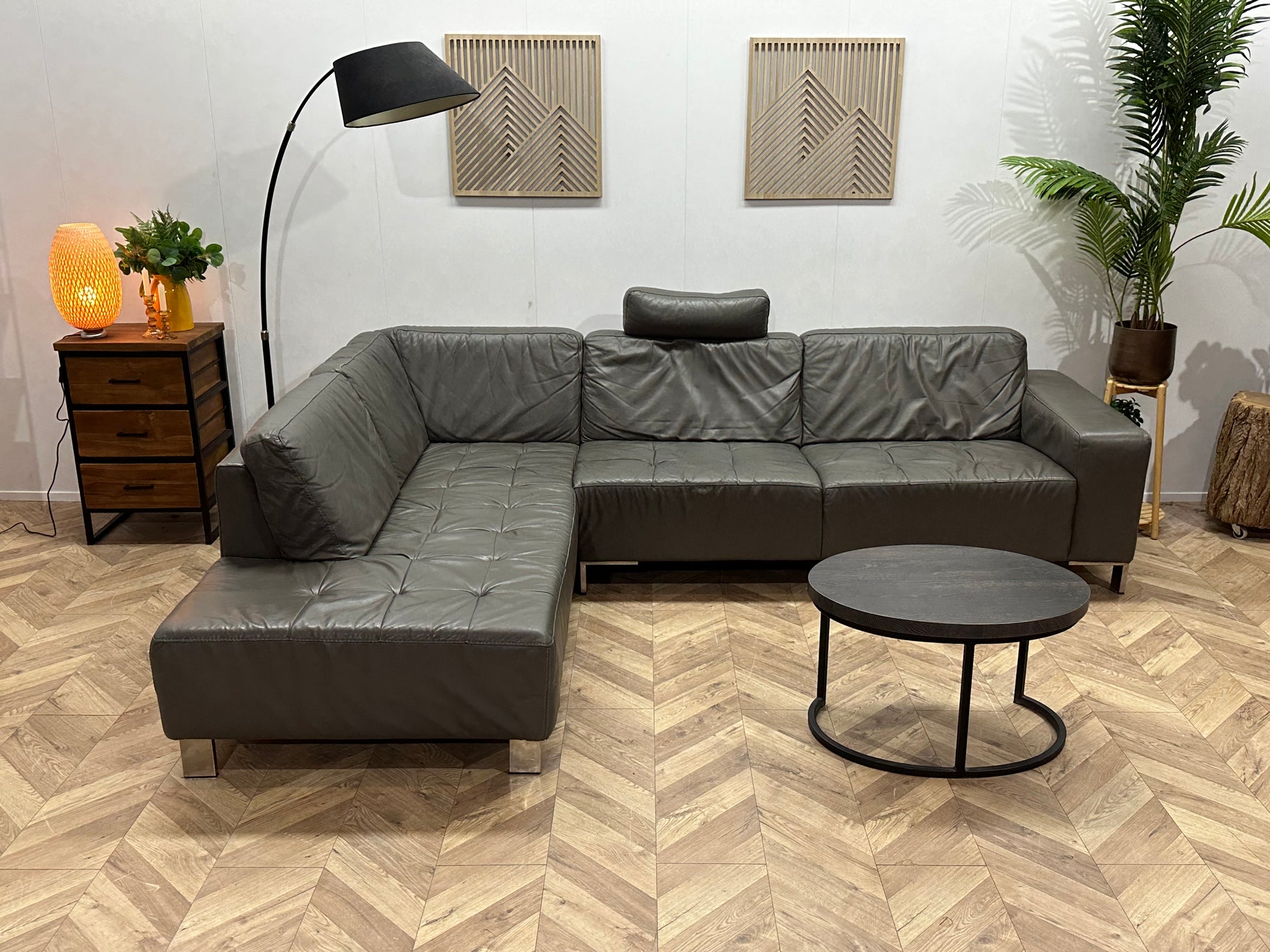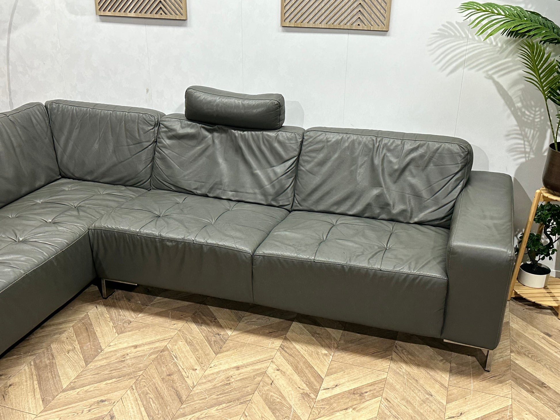 Montèl Grijze Echt Lederen Hoekbank ~ Vaste Kussens