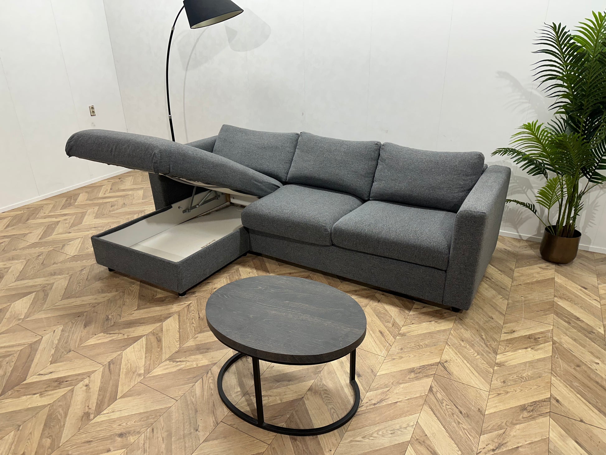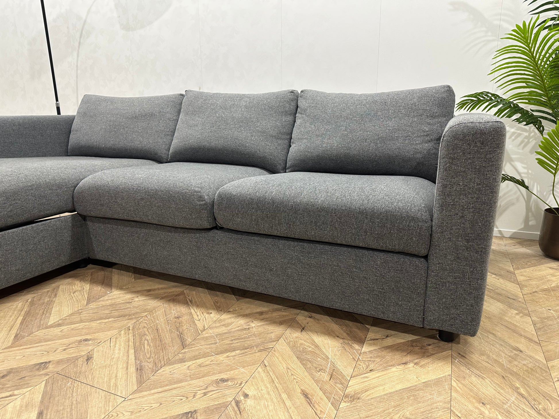 Grijze Hoekbank ~ Opbergruimte ~ Losse Kussens Met Afneembare Hoezen