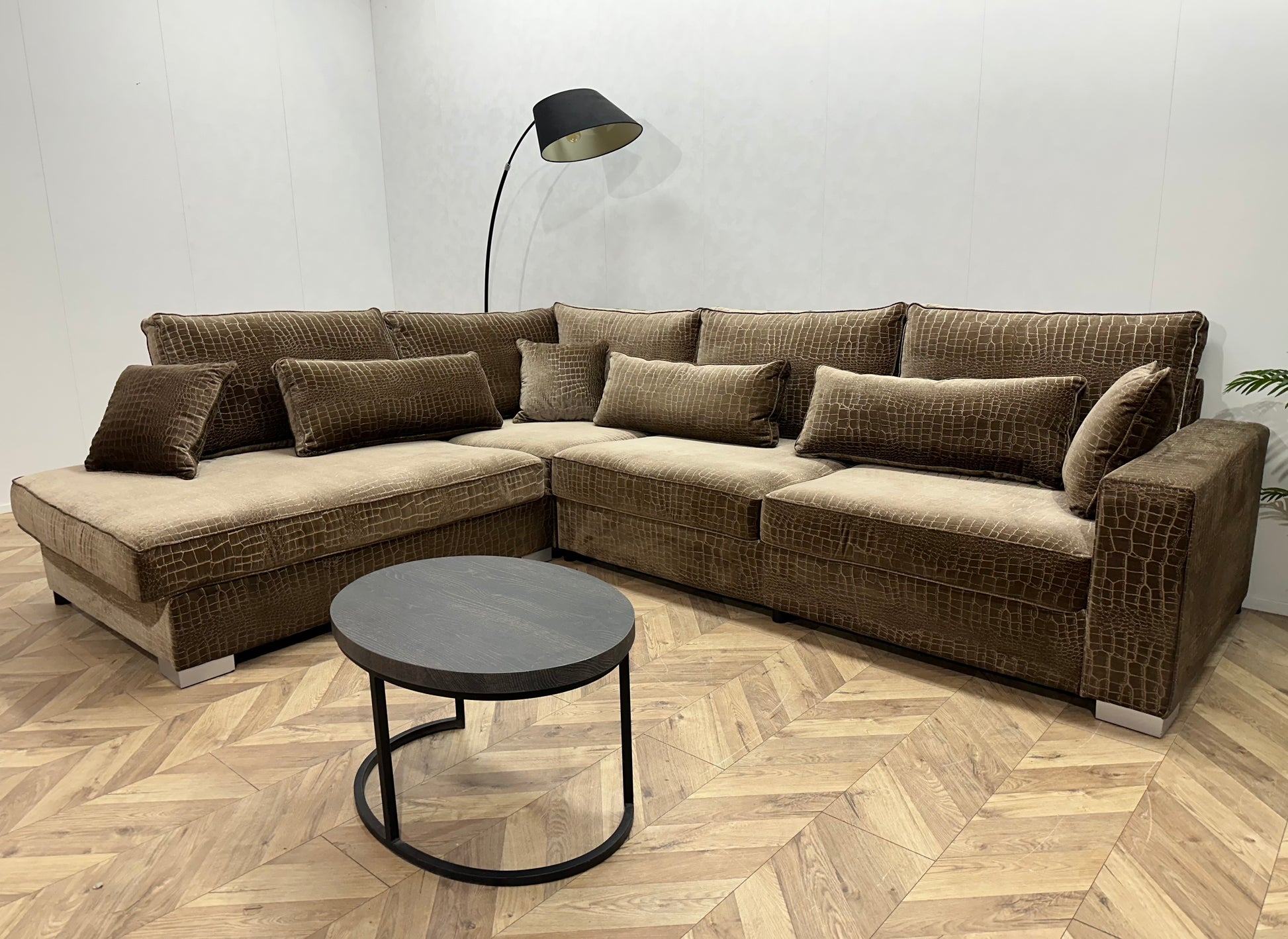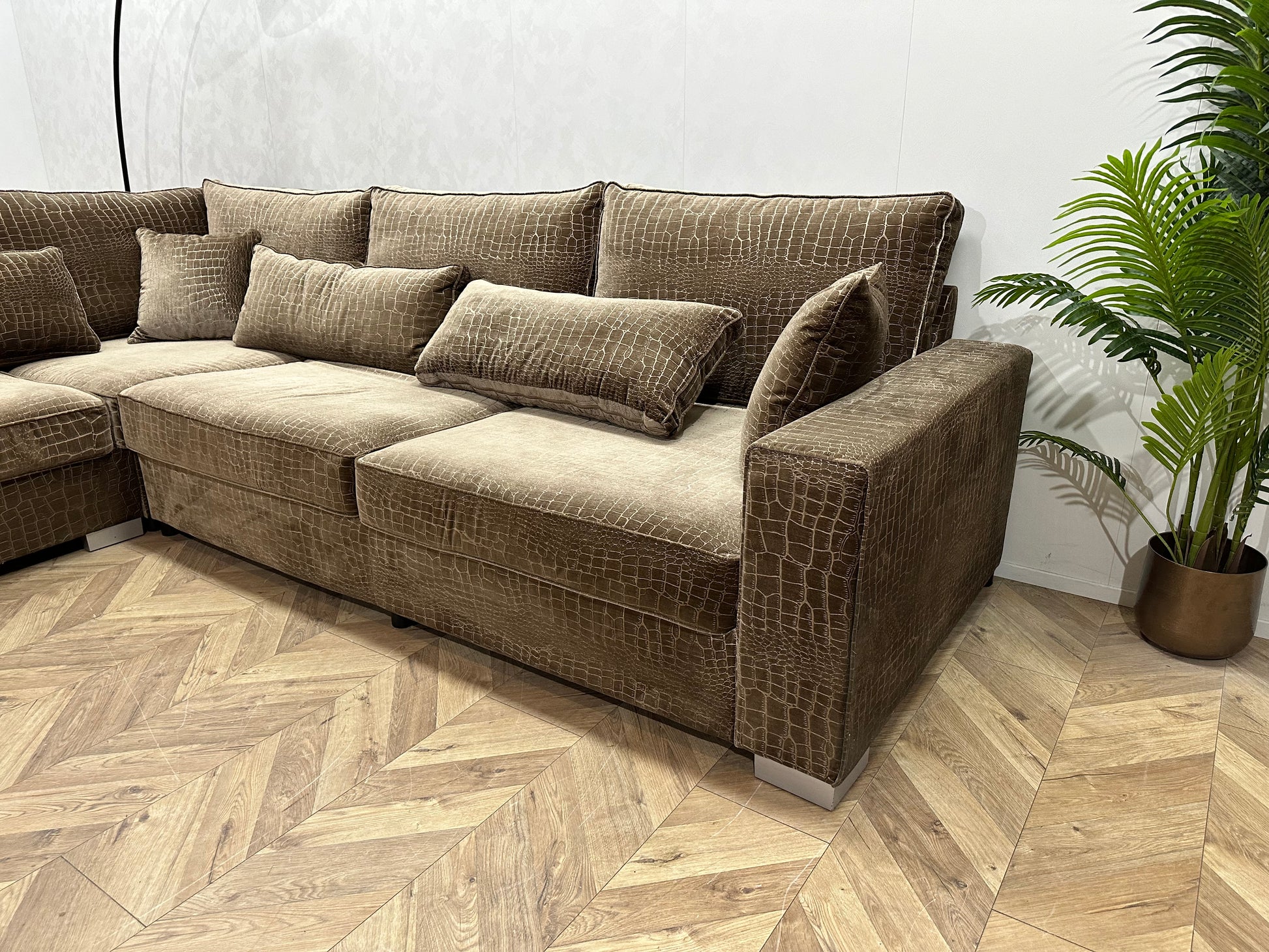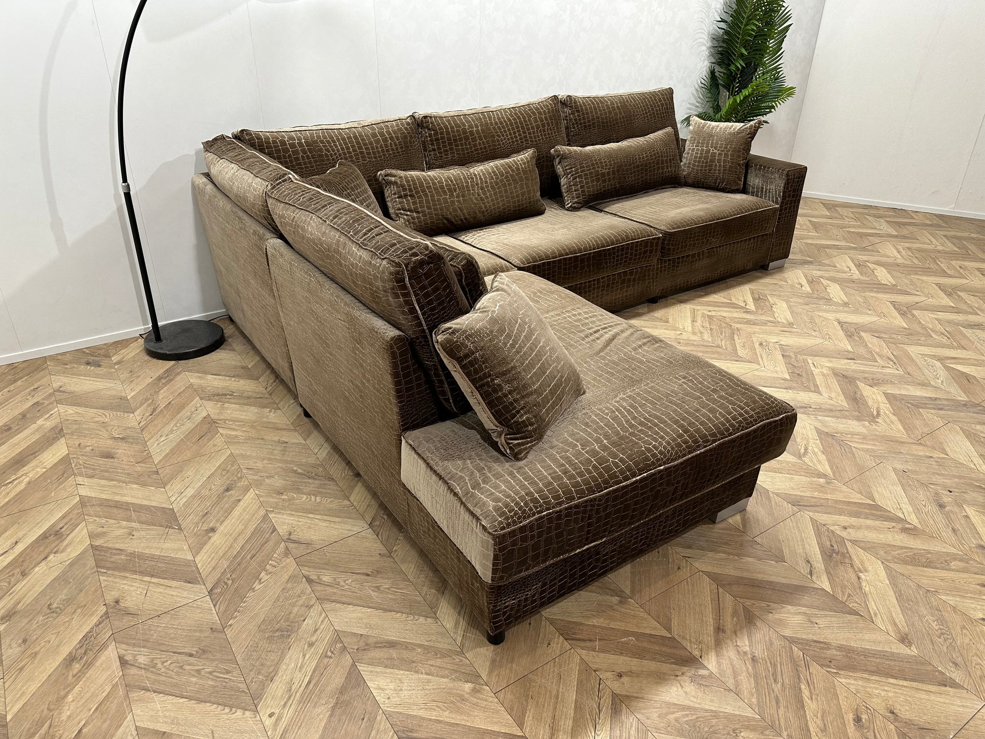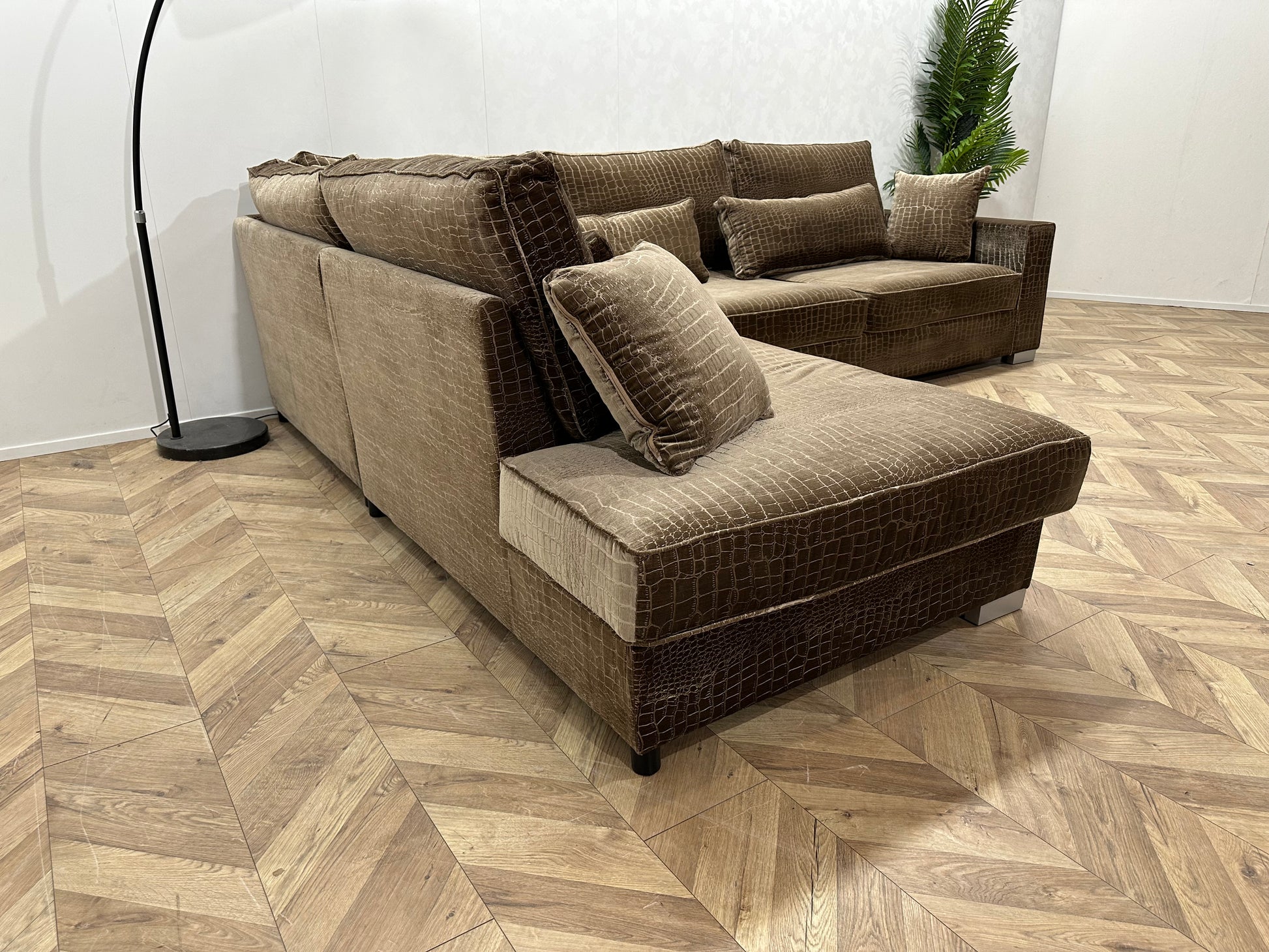 Bruine Croco Stof Hoekbank ~ Nieuwstaat