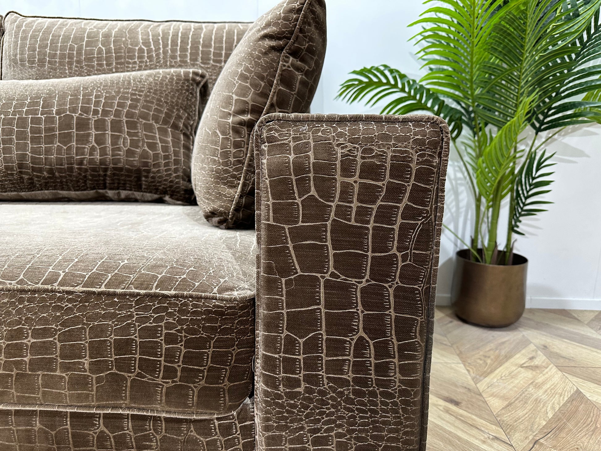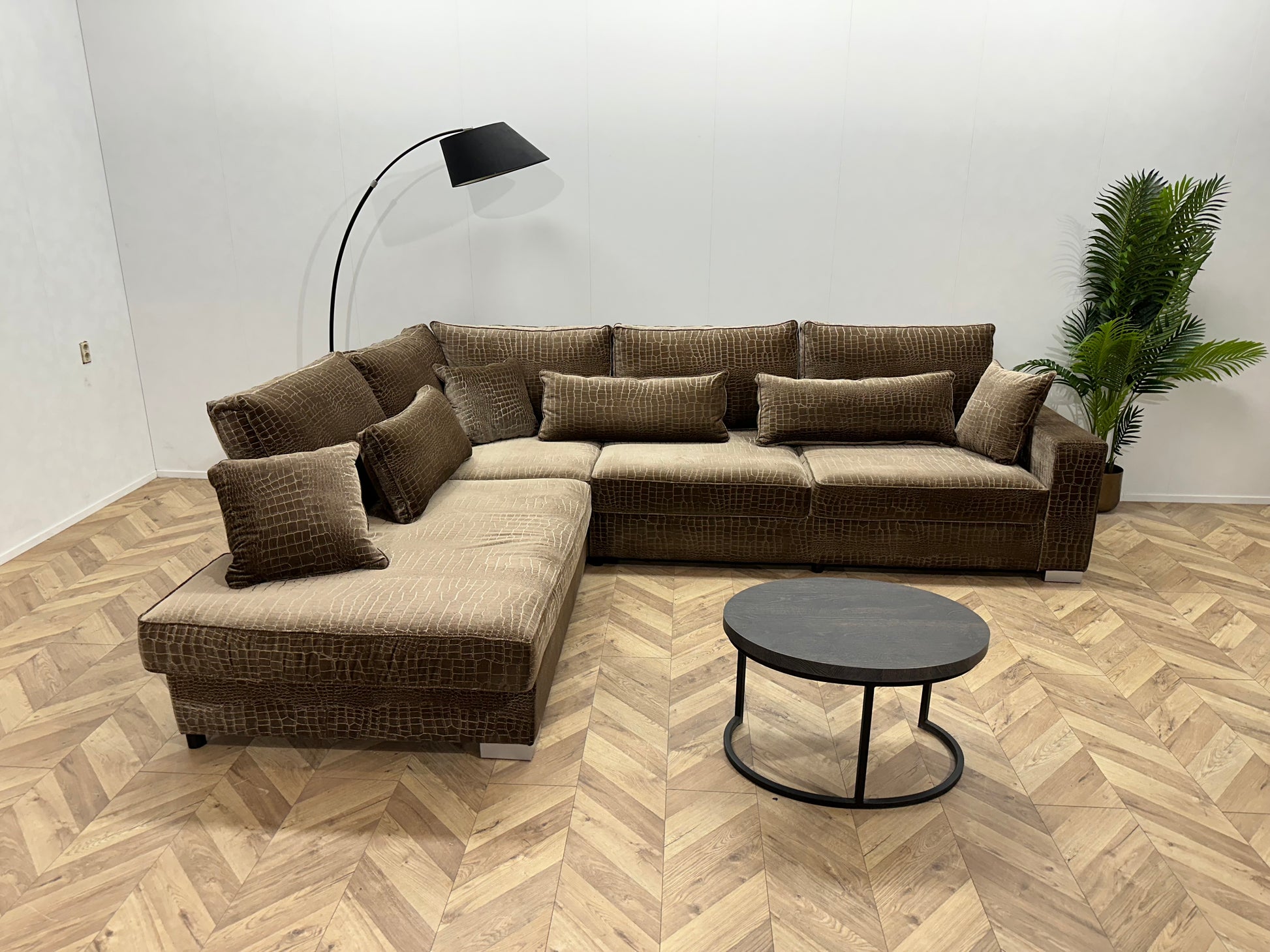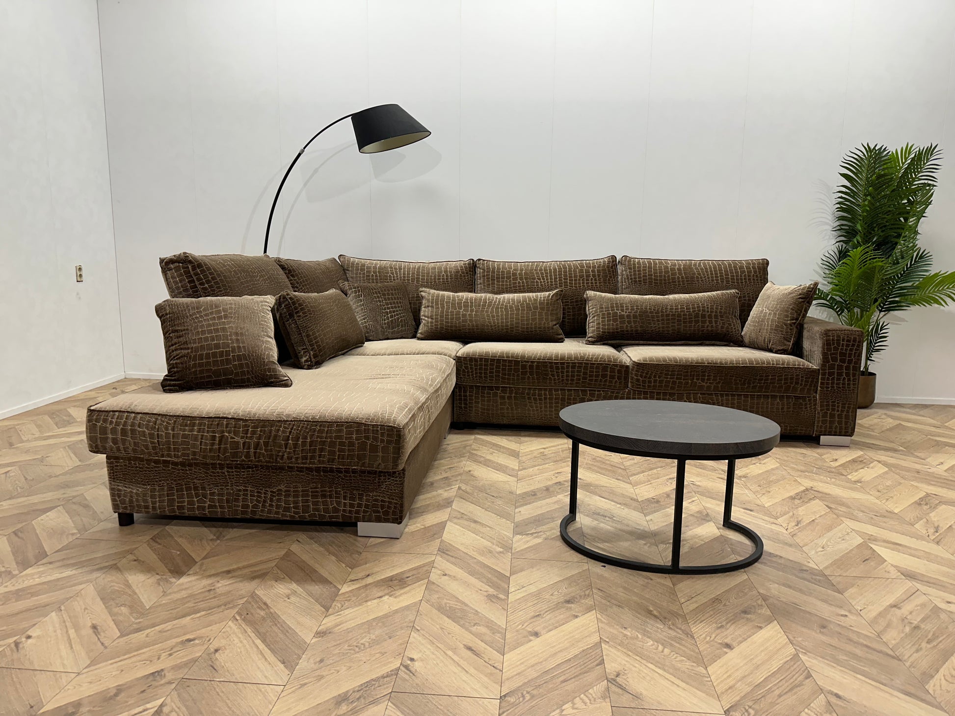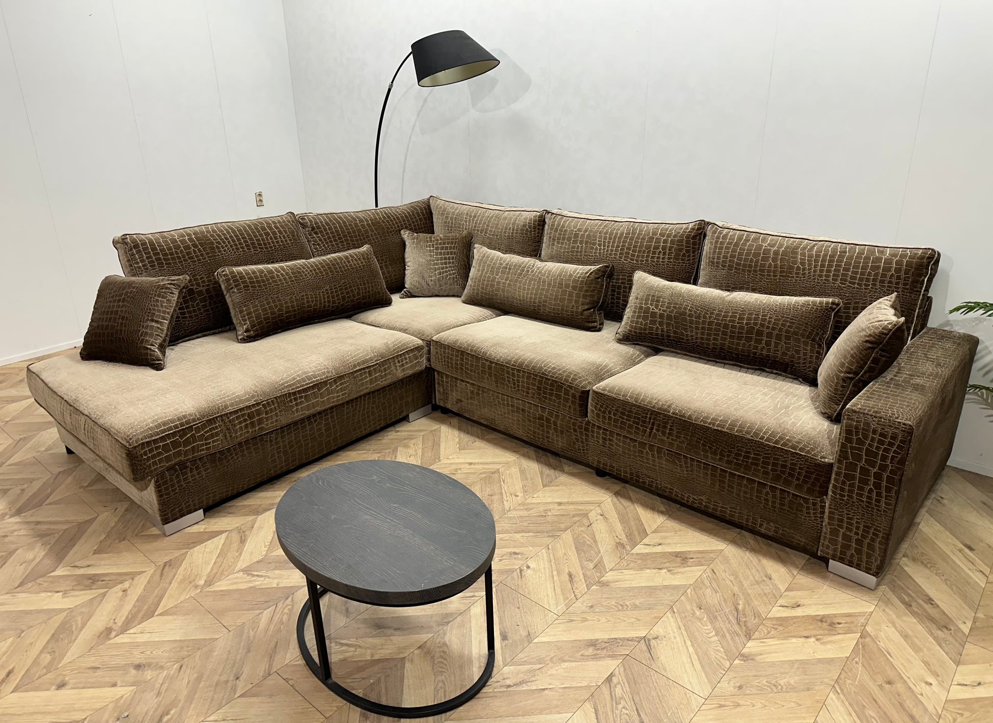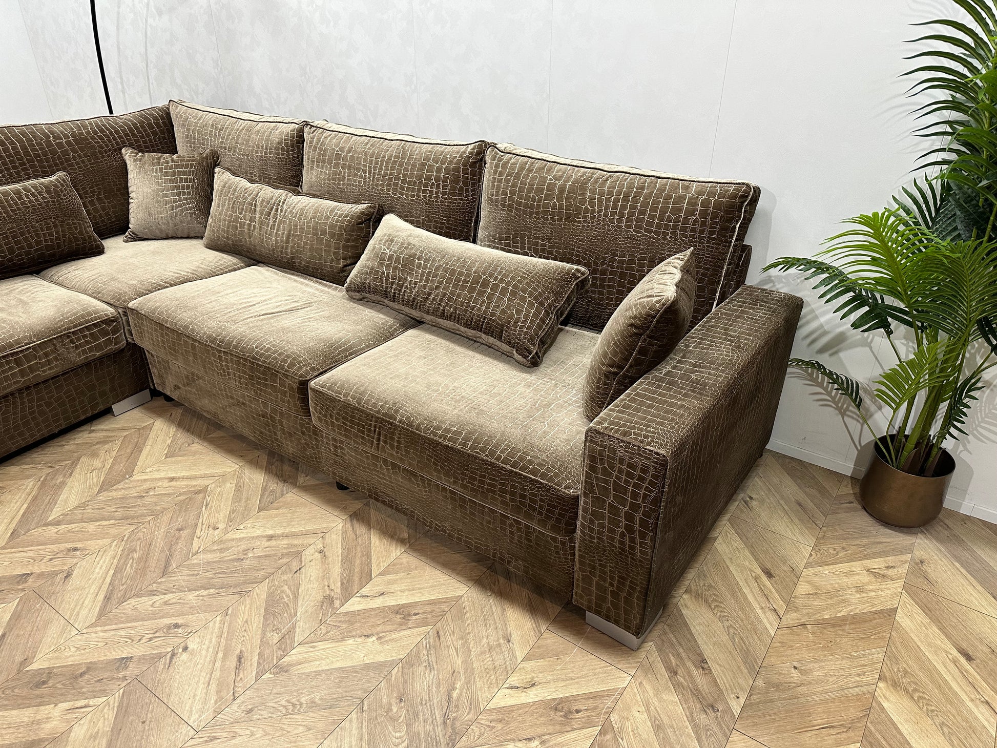 Bruine Croco Stof Hoekbank ~ Nieuwstaat