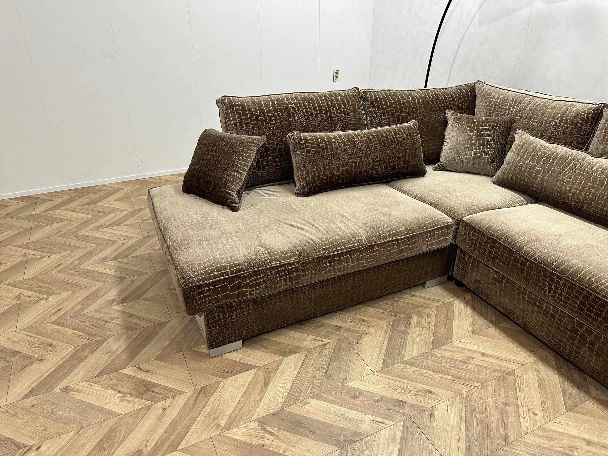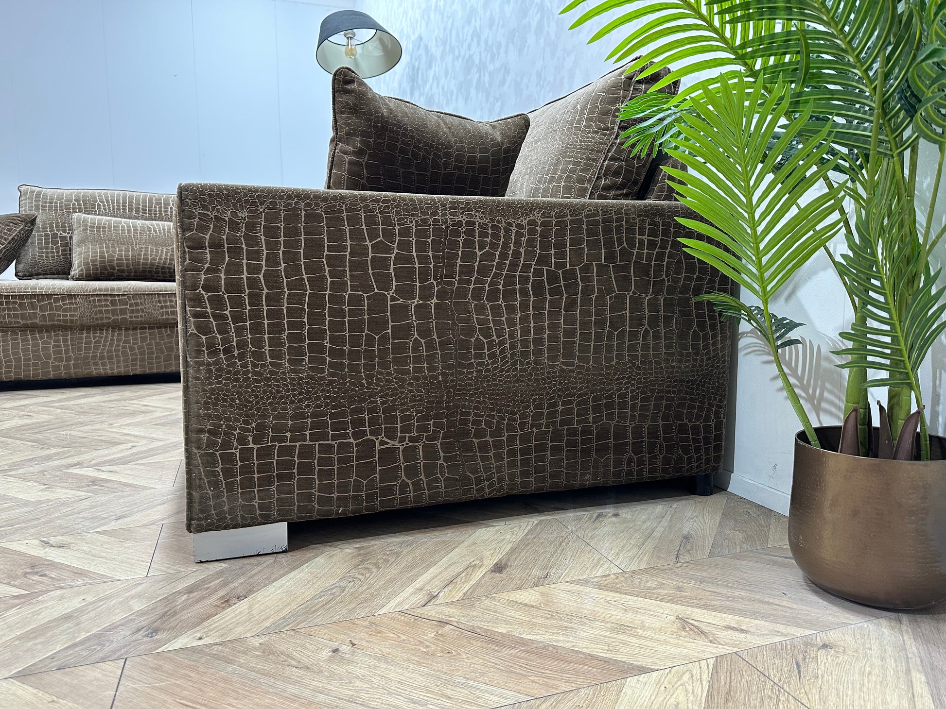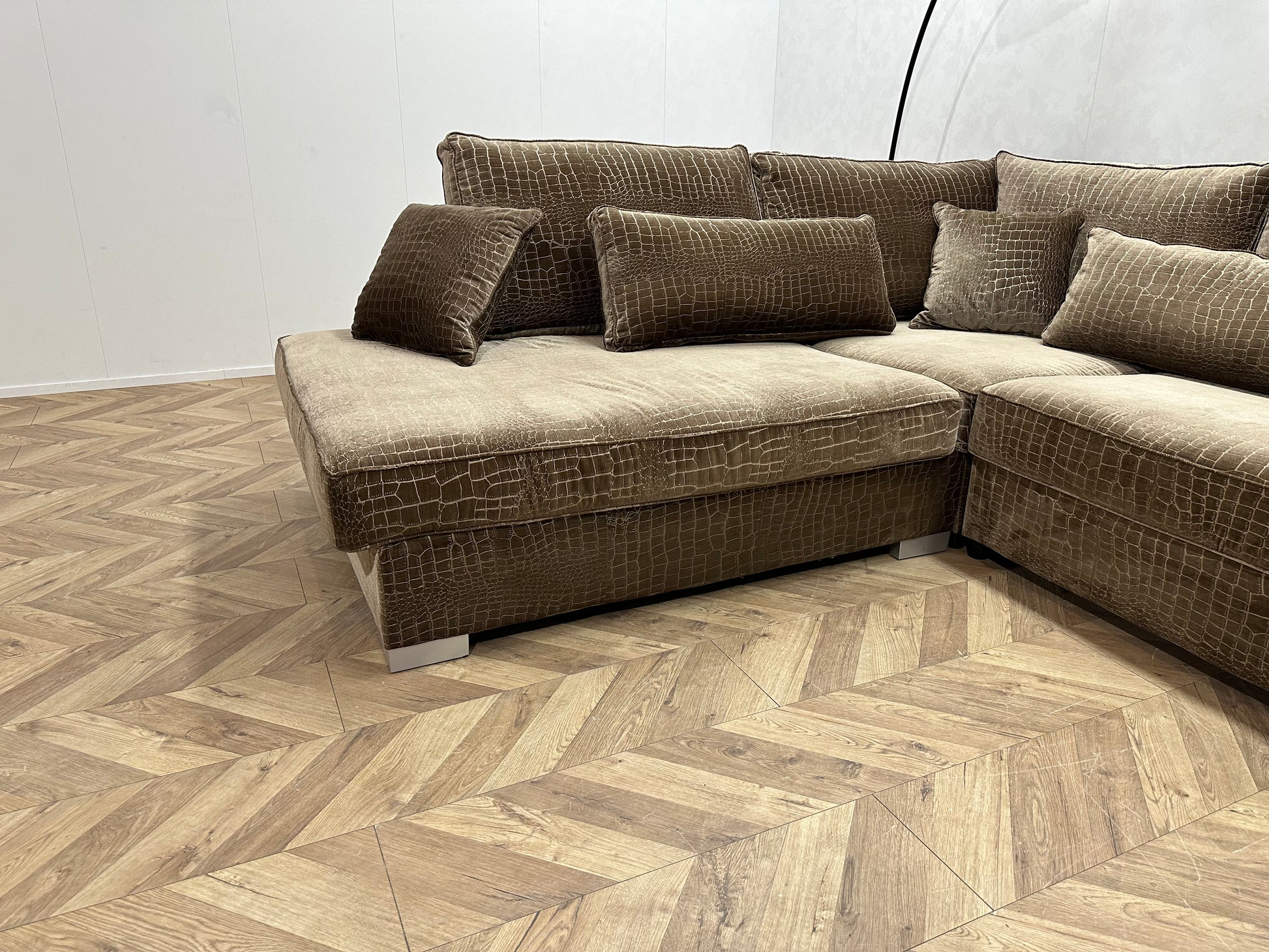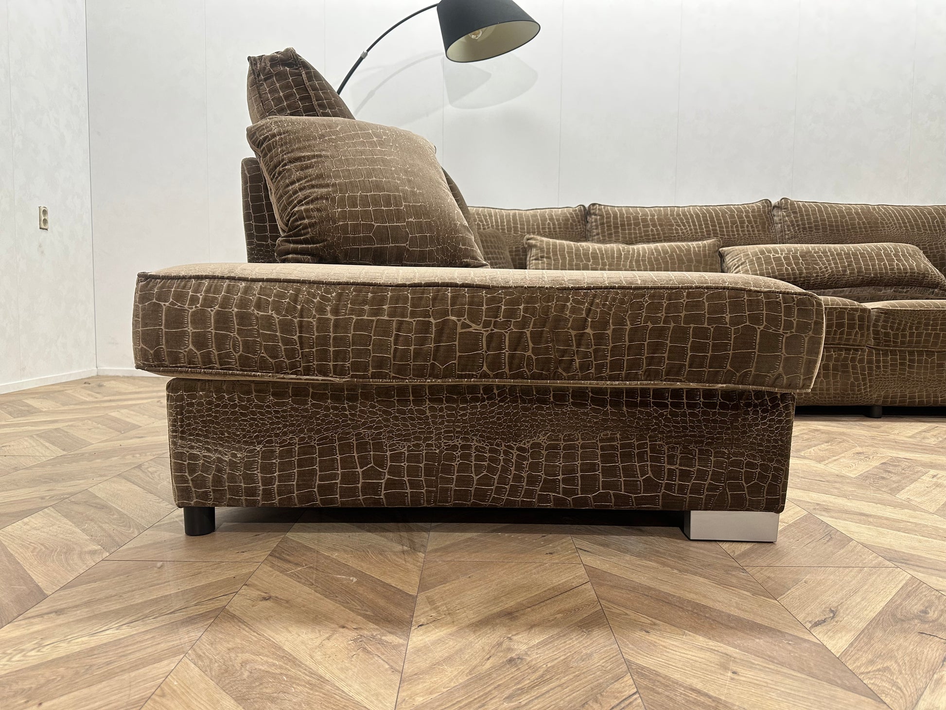 Bruine Croco Stof Hoekbank ~ Nieuwstaat