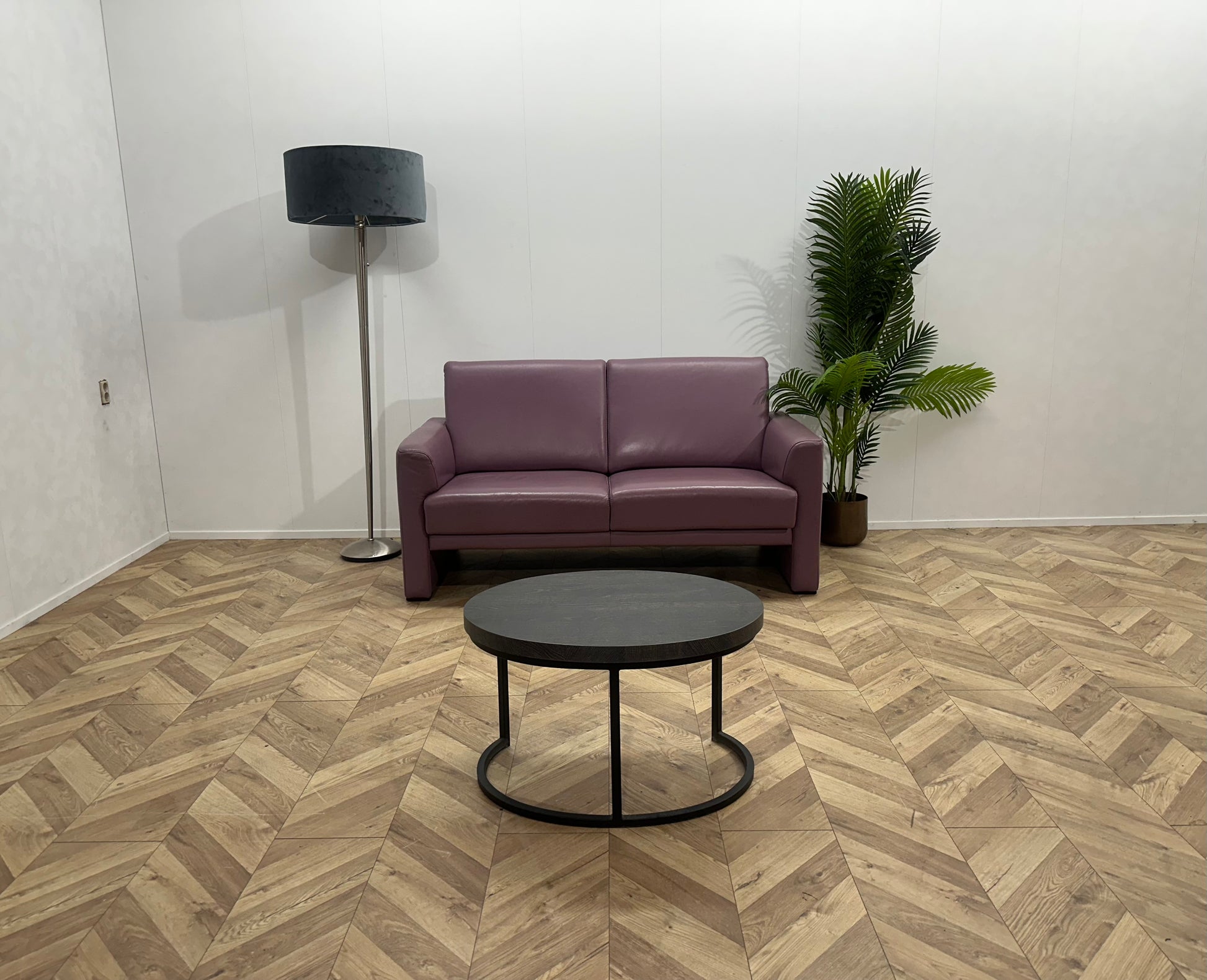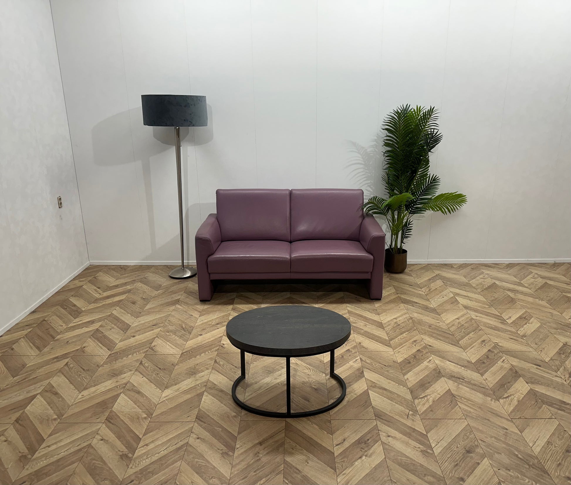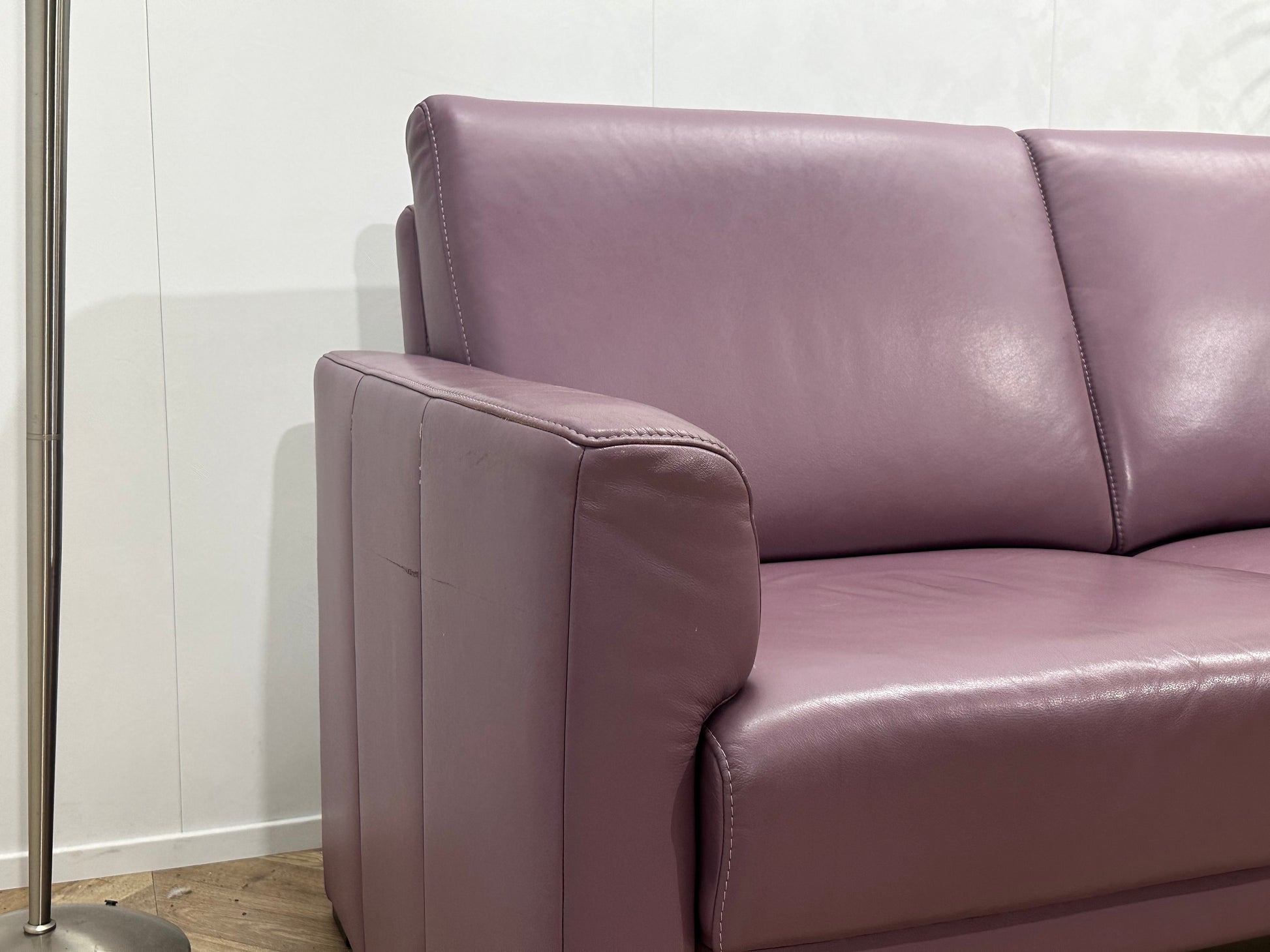 Paarse Echt Lederen 2-Zits Bank ~ Vaste Kussens