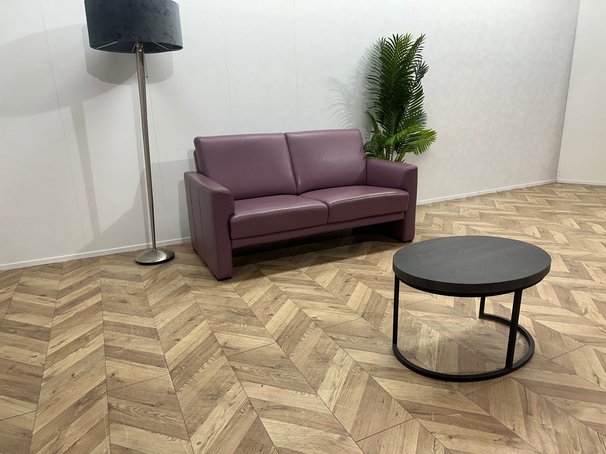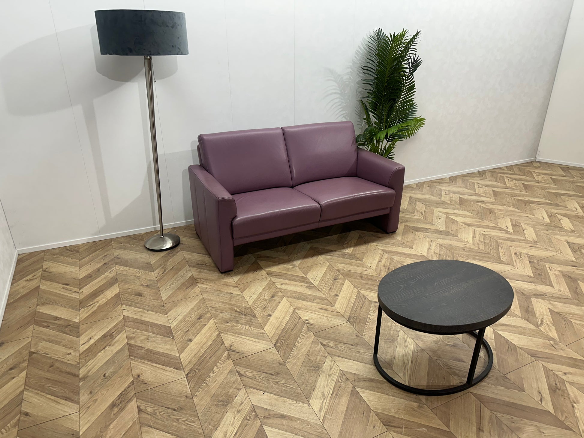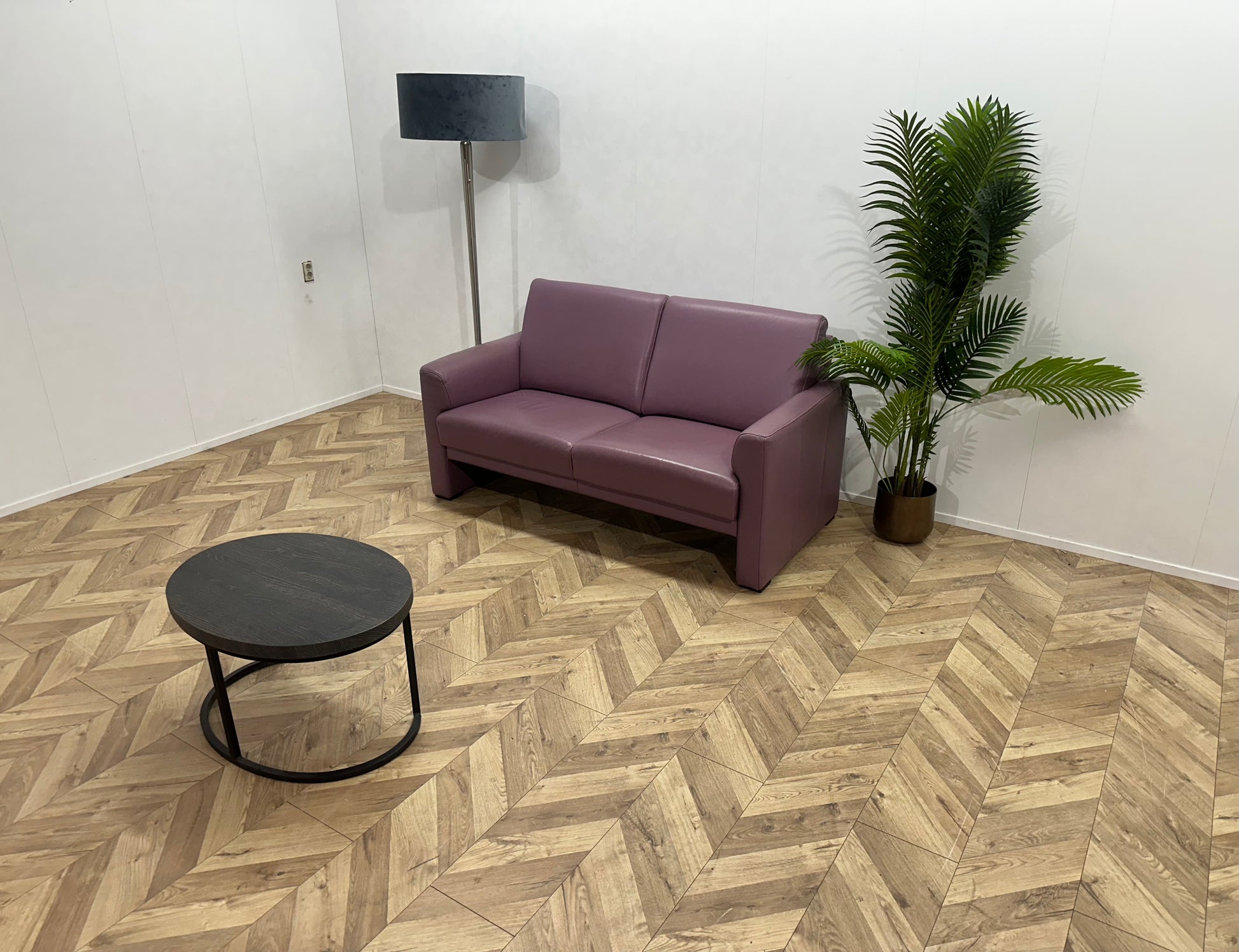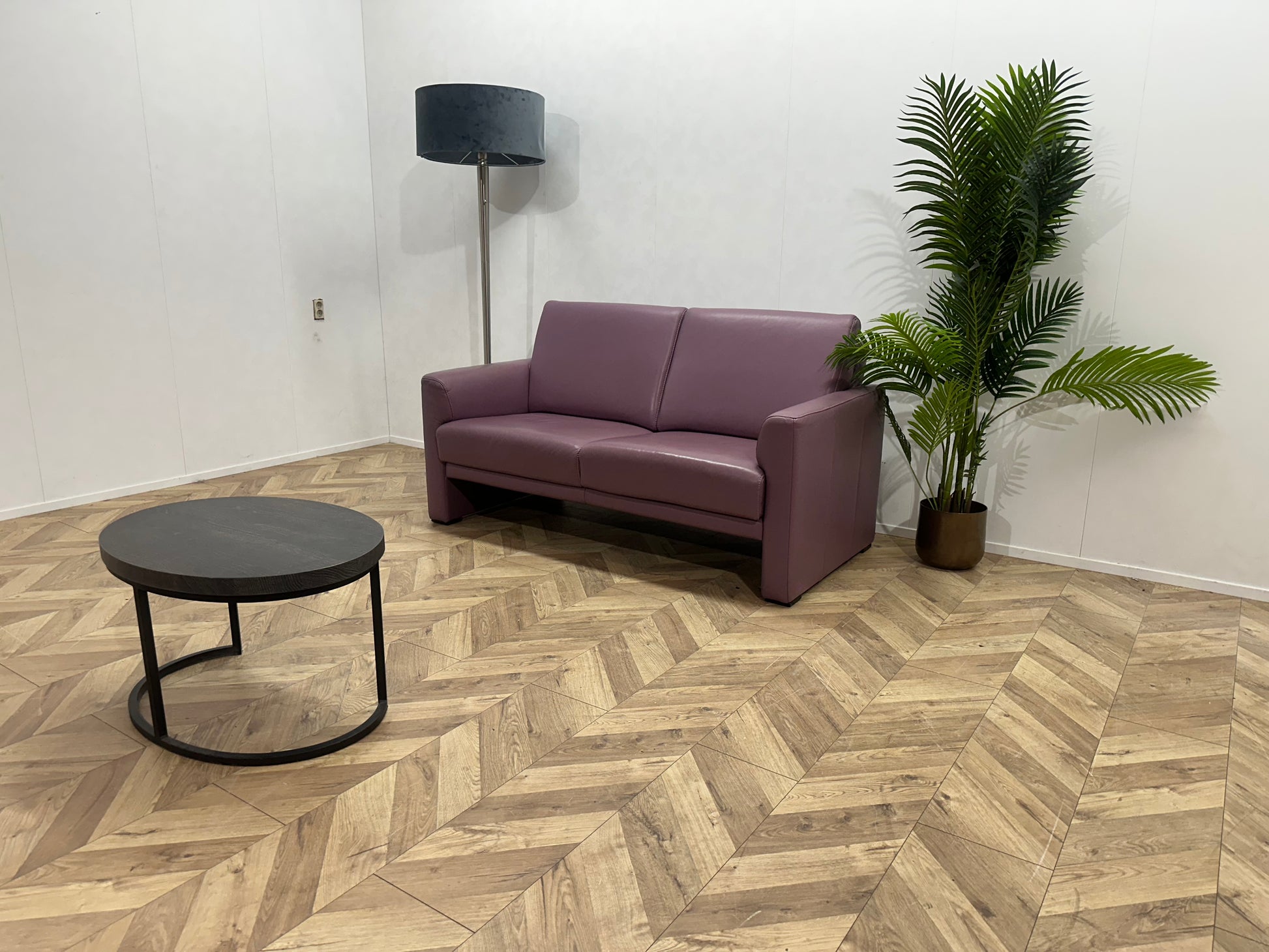 Paarse Echt Lederen 2-Zits Bank ~ Vaste Kussens