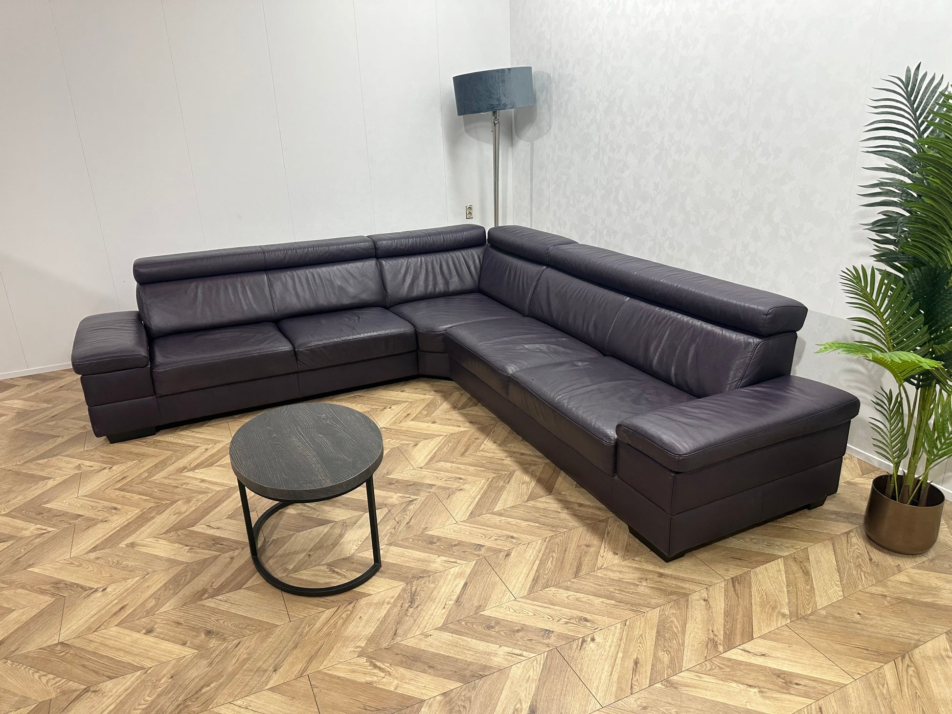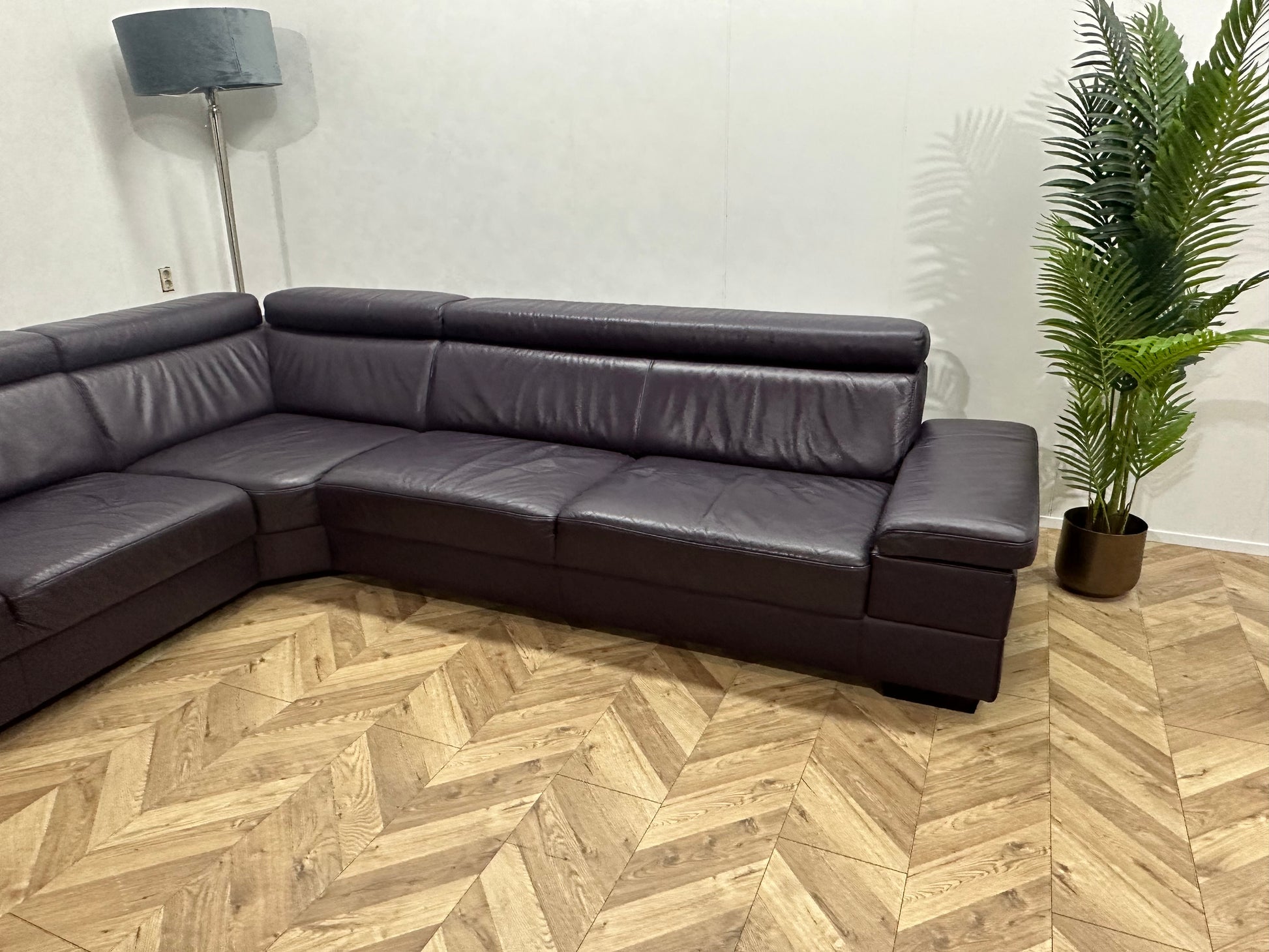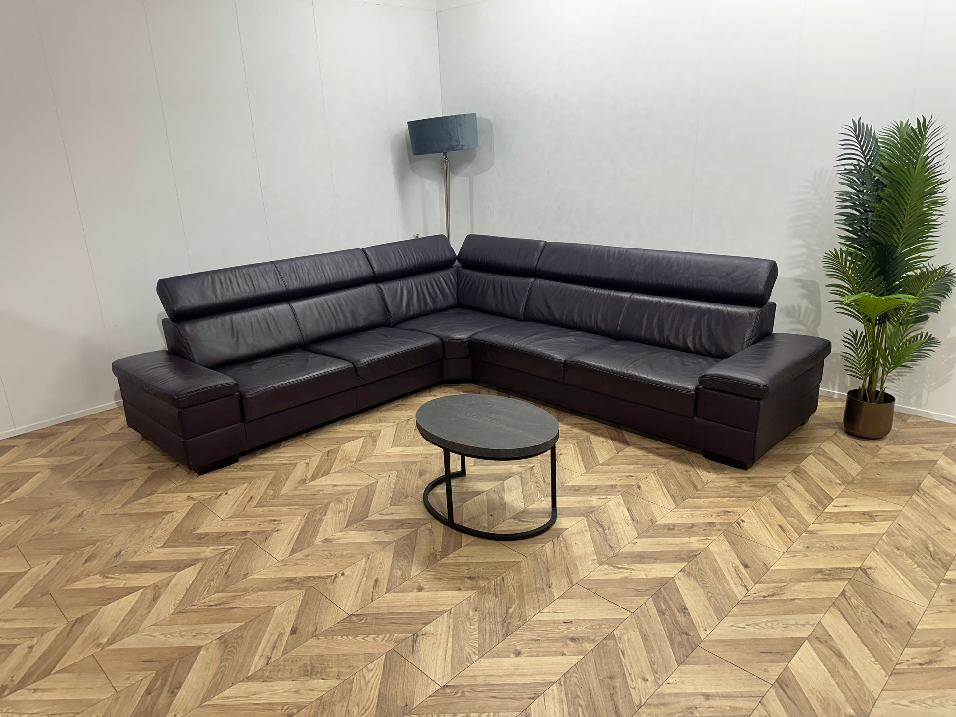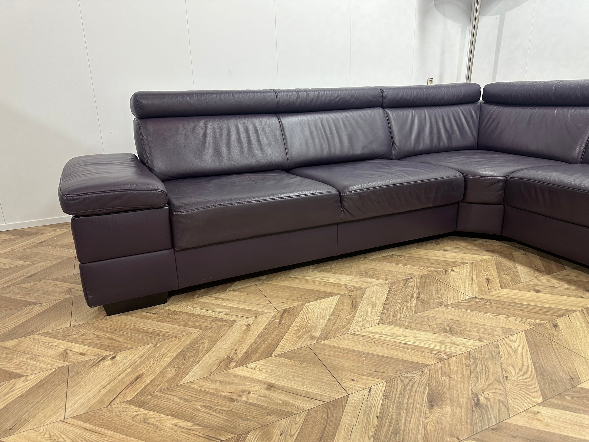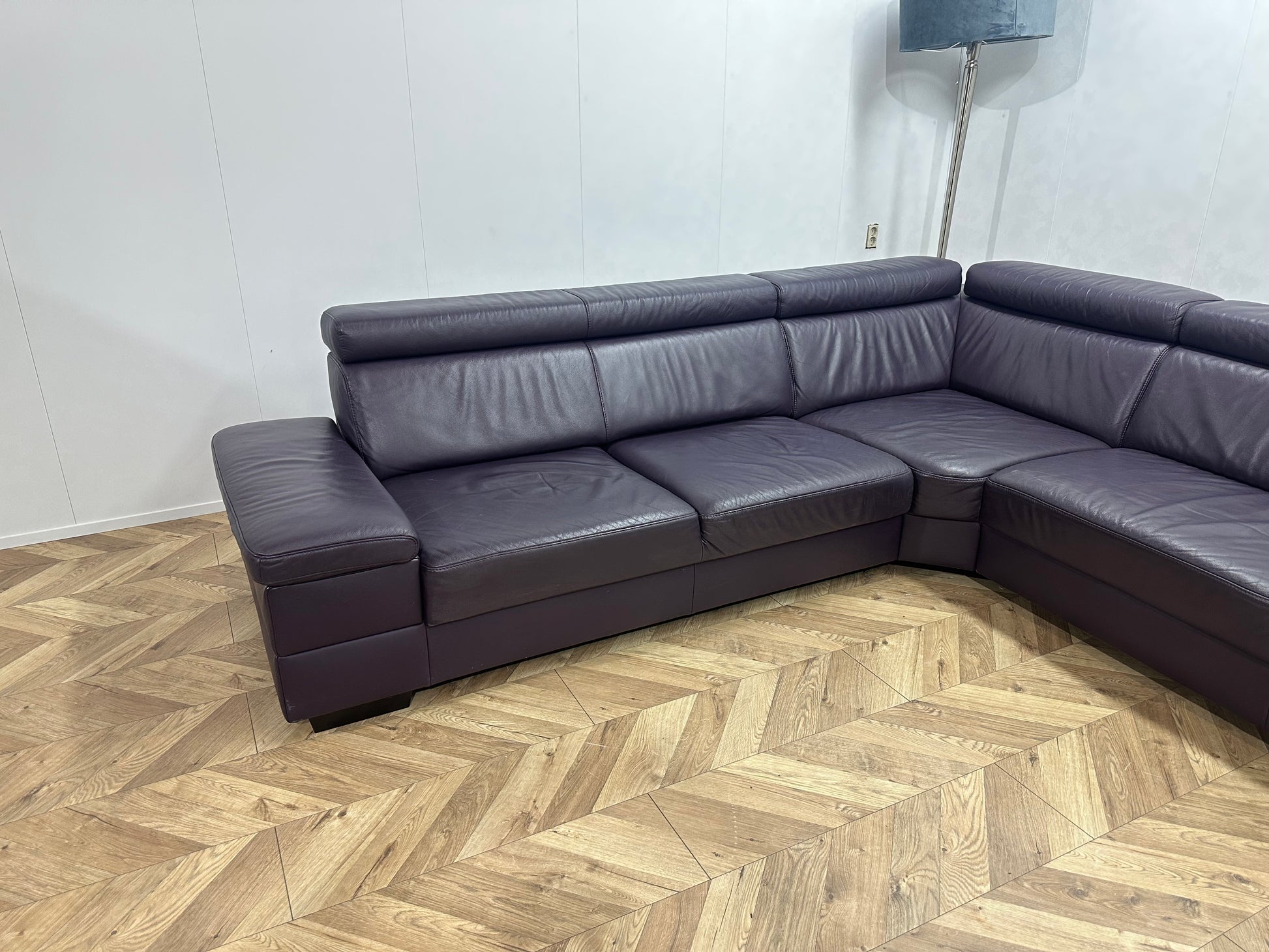 Paarse Echt Lederen Hoekbank ~ Verstelbare Hoofdsteunen ~ Uitschuifbare Zittingen