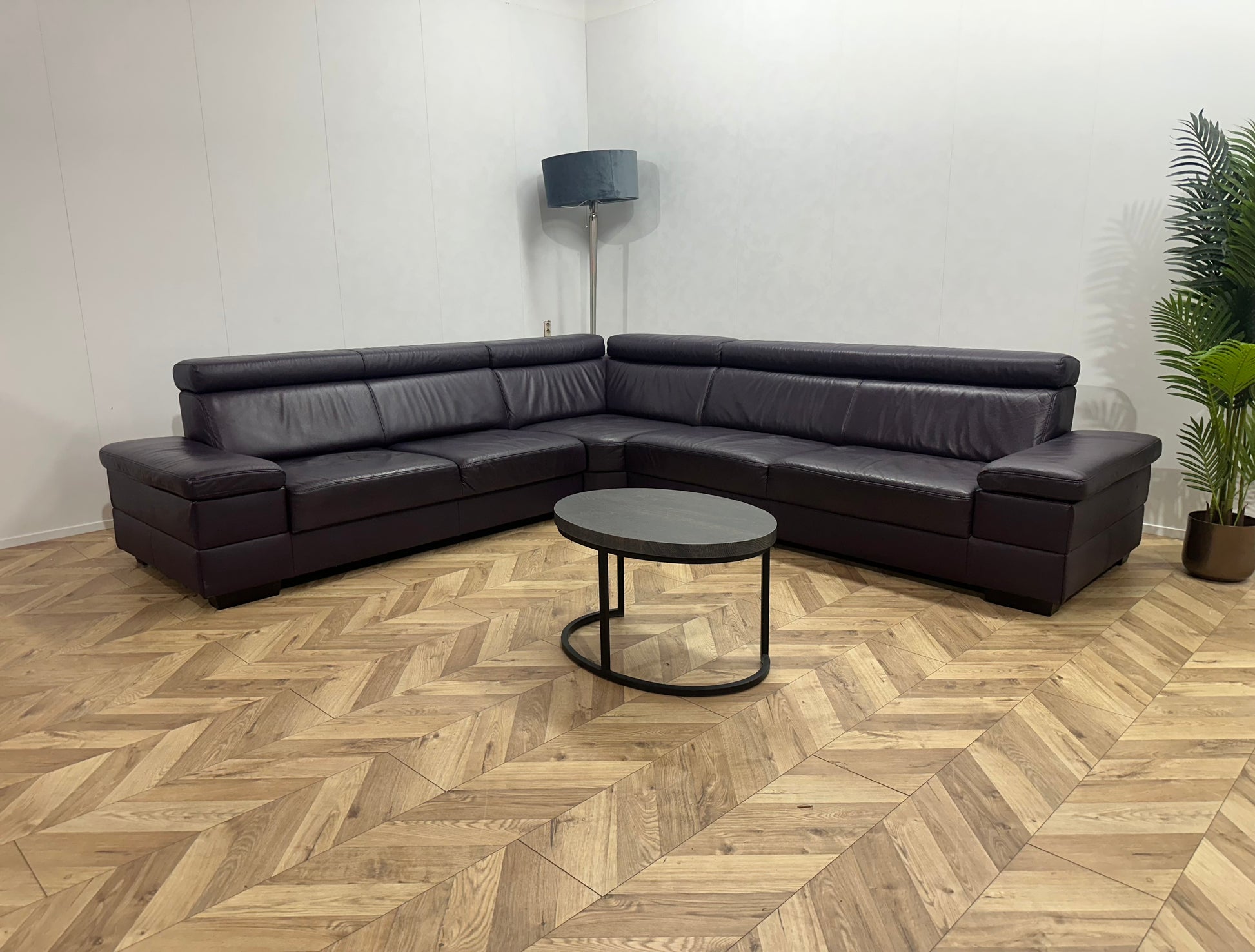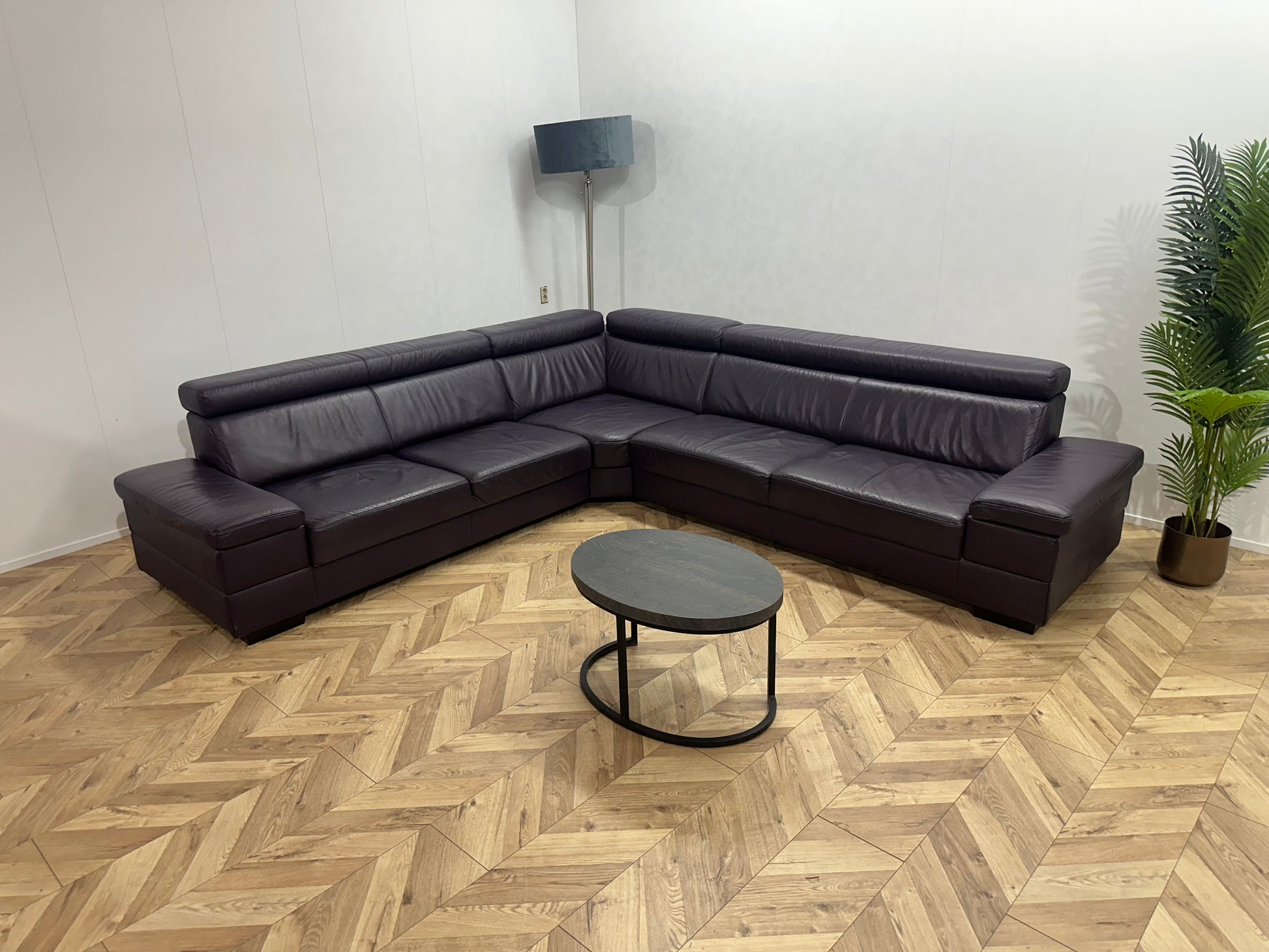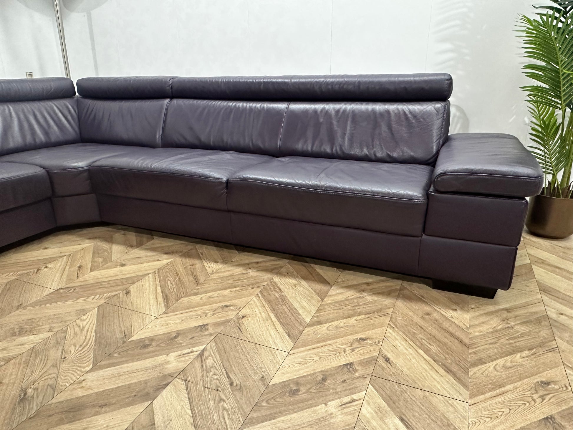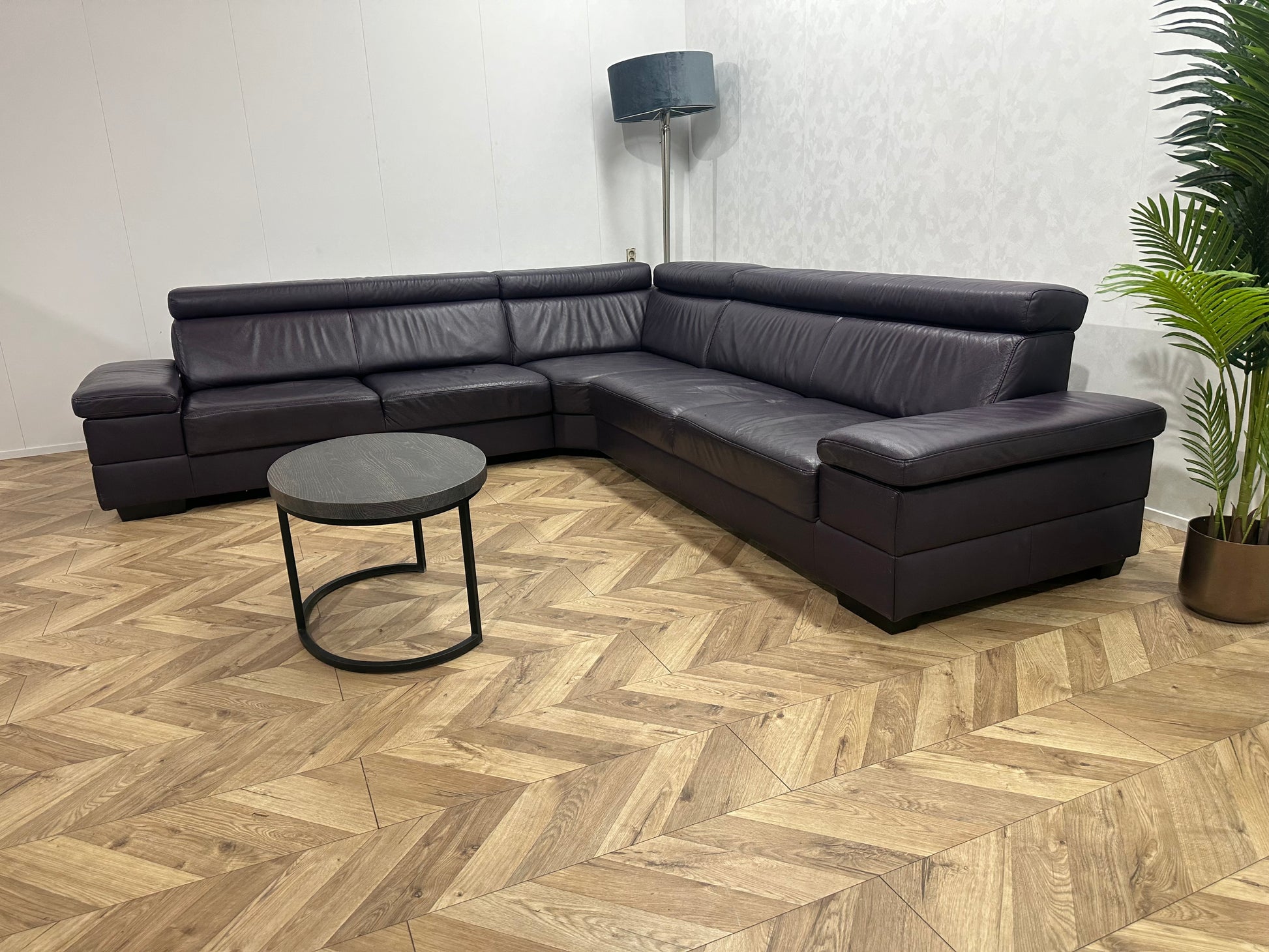 Paarse Echt Lederen Hoekbank ~ Verstelbare Hoofdsteunen ~ Uitschuifbare Zittingen