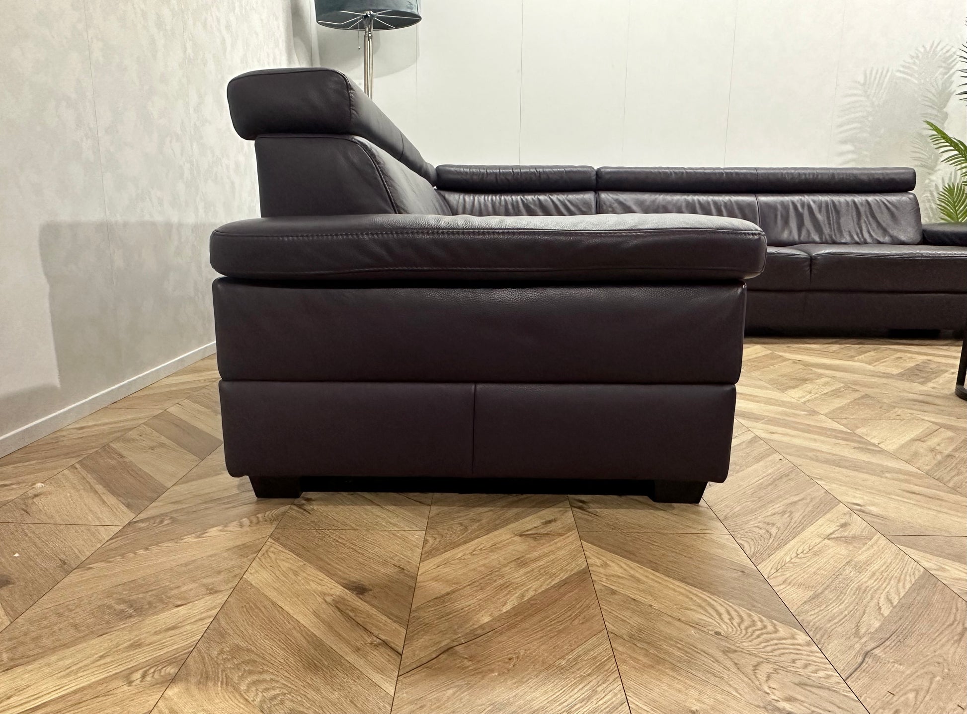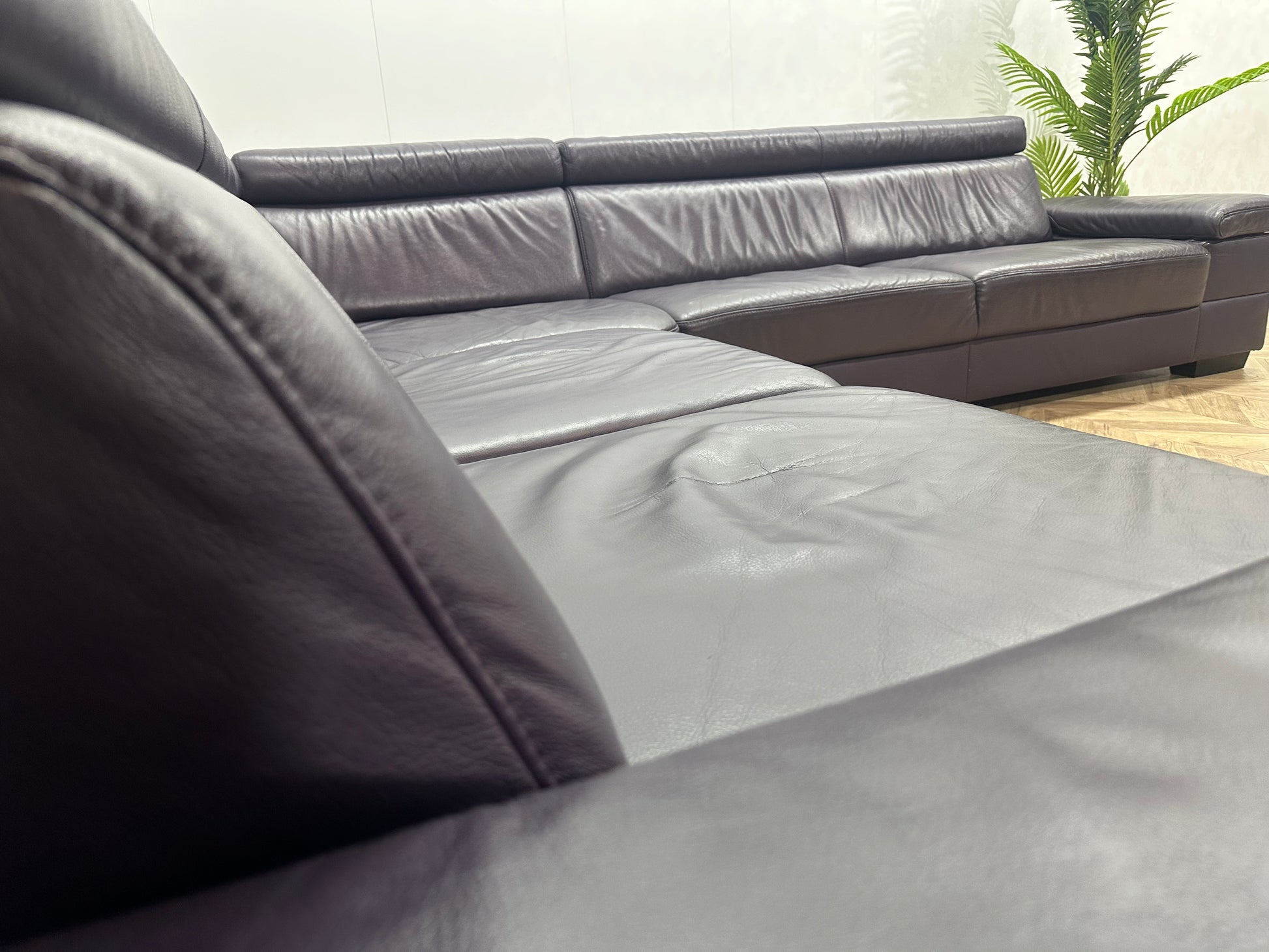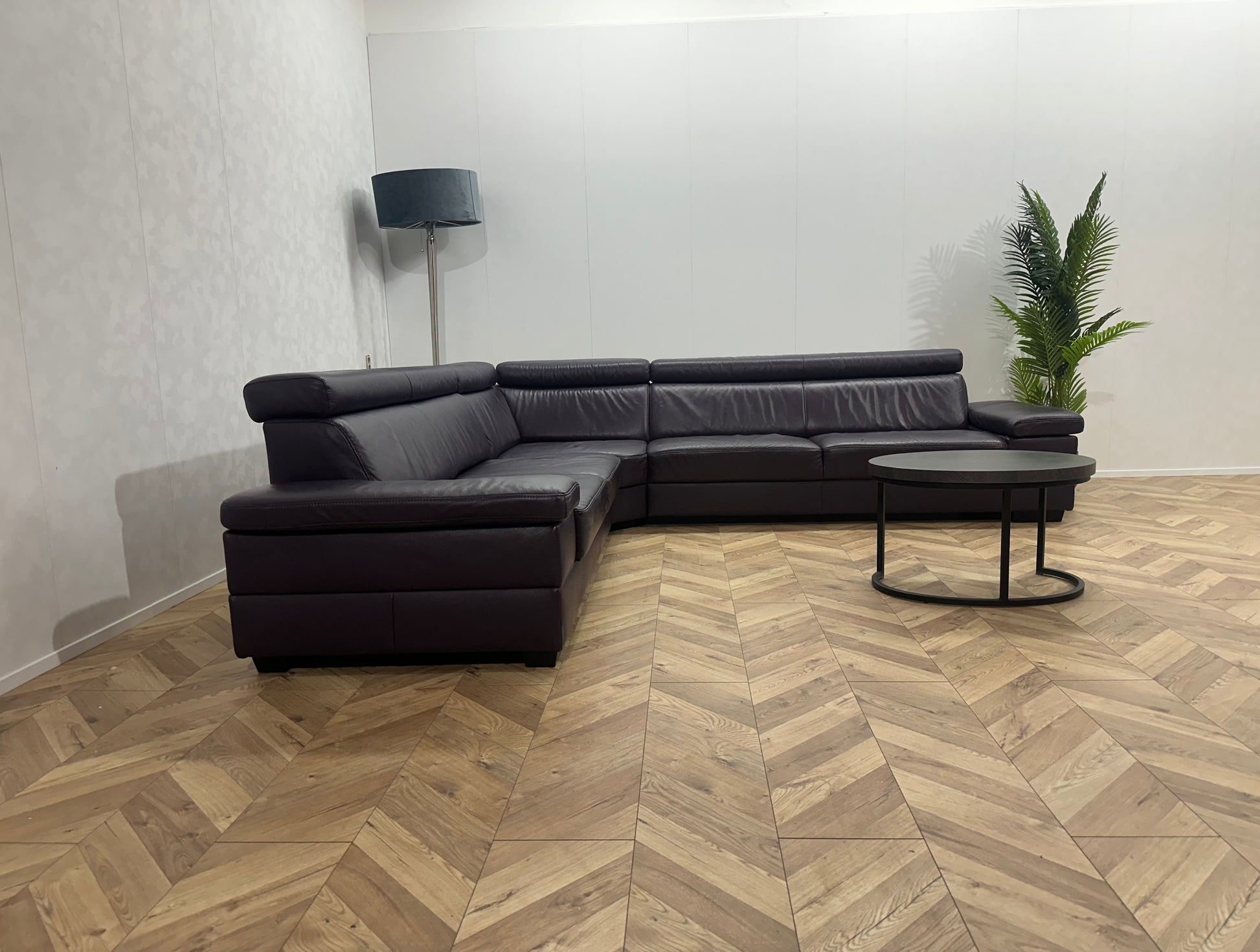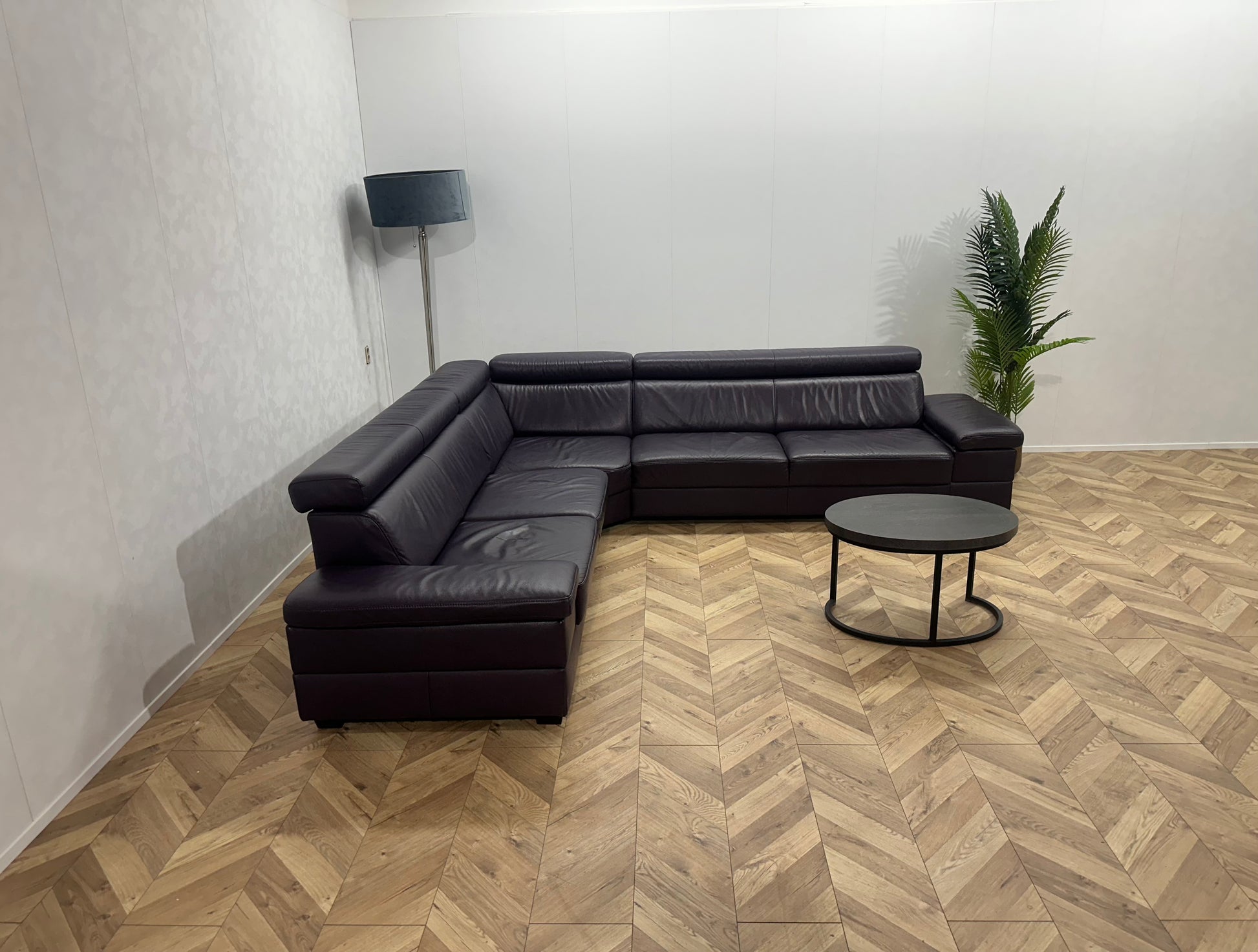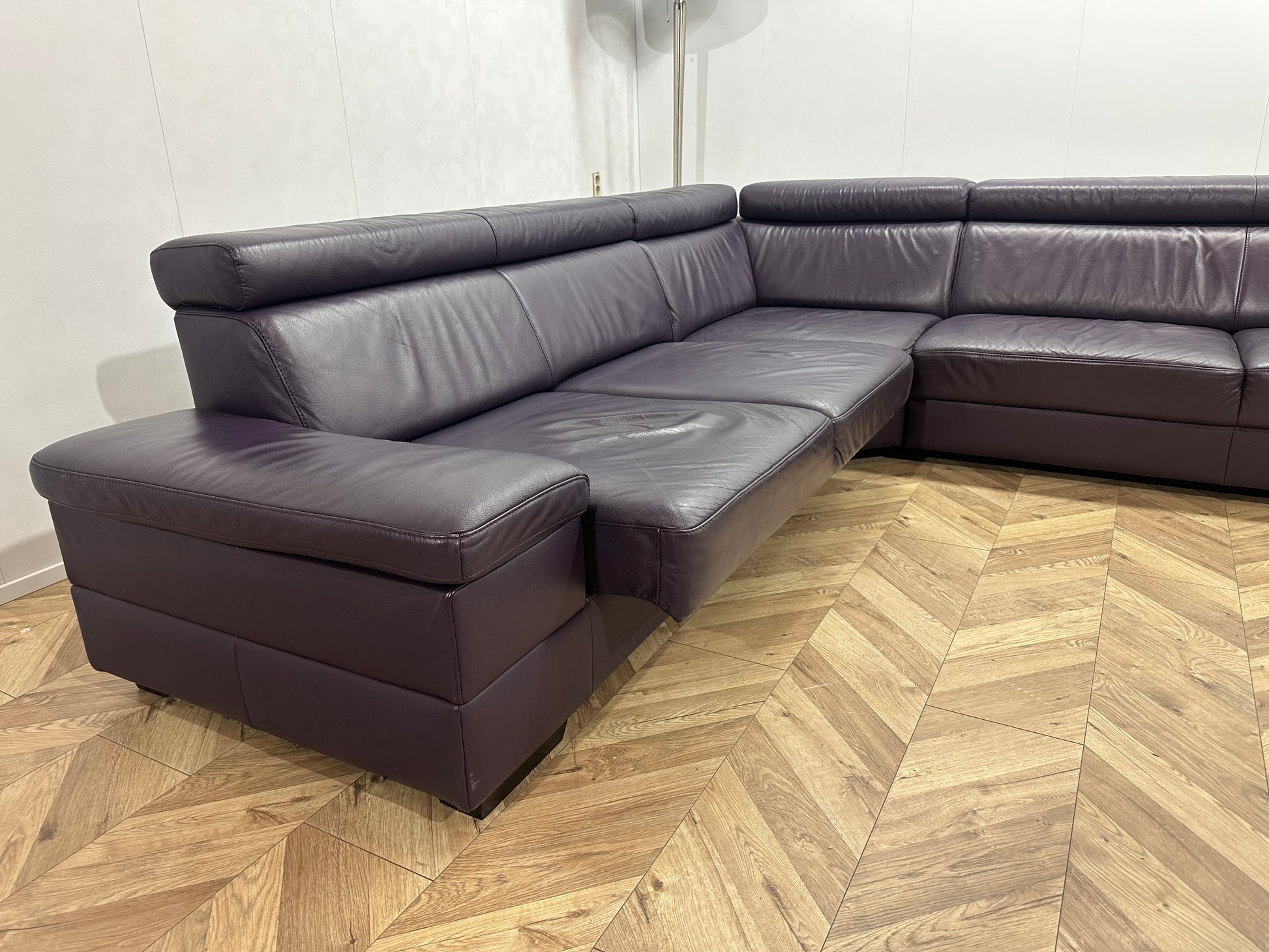 Paarse Echt Lederen Hoekbank ~ Verstelbare Hoofdsteunen ~ Uitschuifbare Zittingen