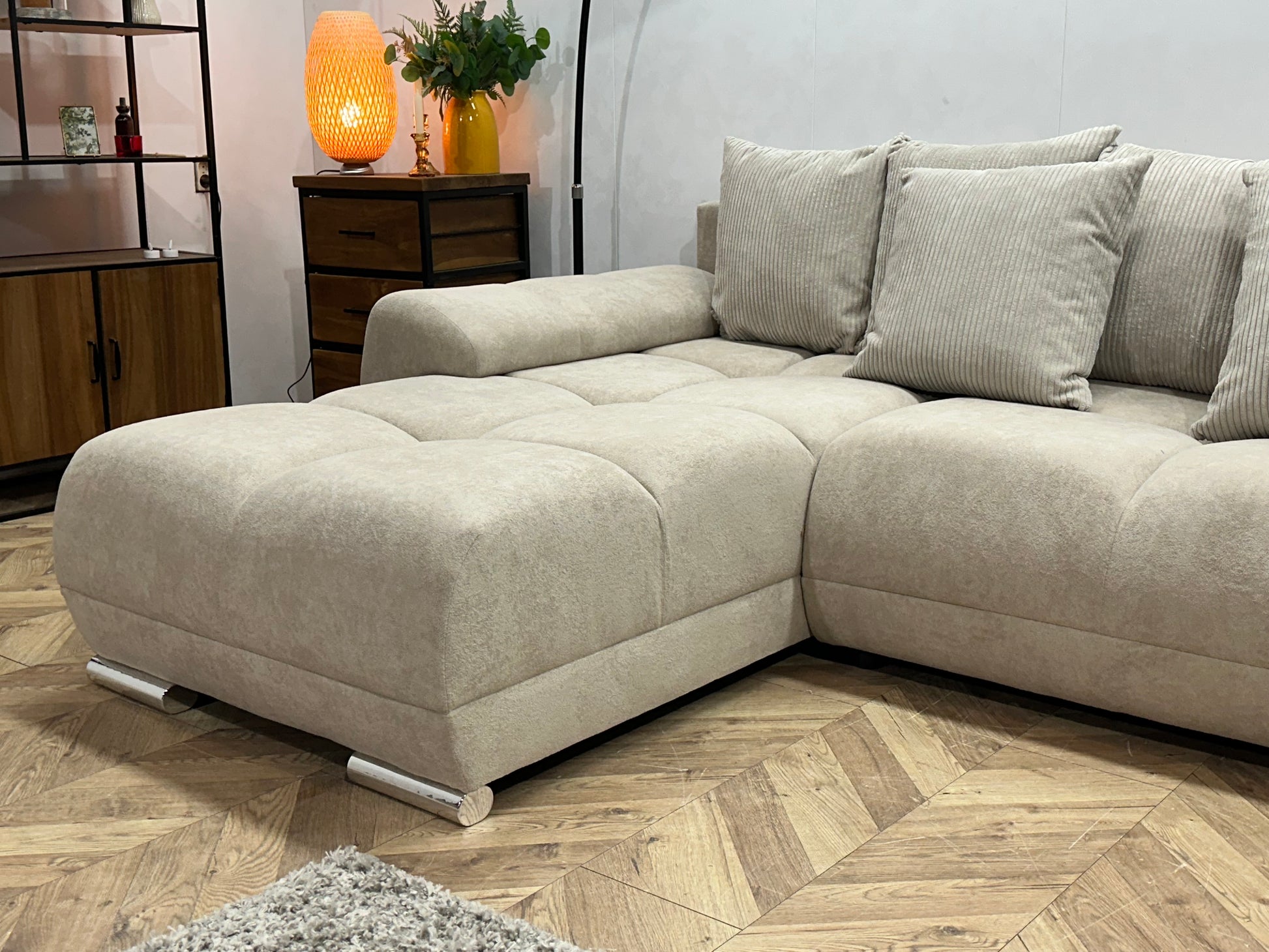 !Showroommodel! Crème Velvet U Bank ~ Losse Ribstof Rugkussens