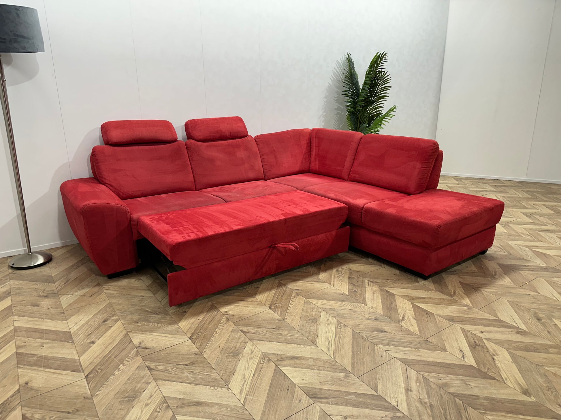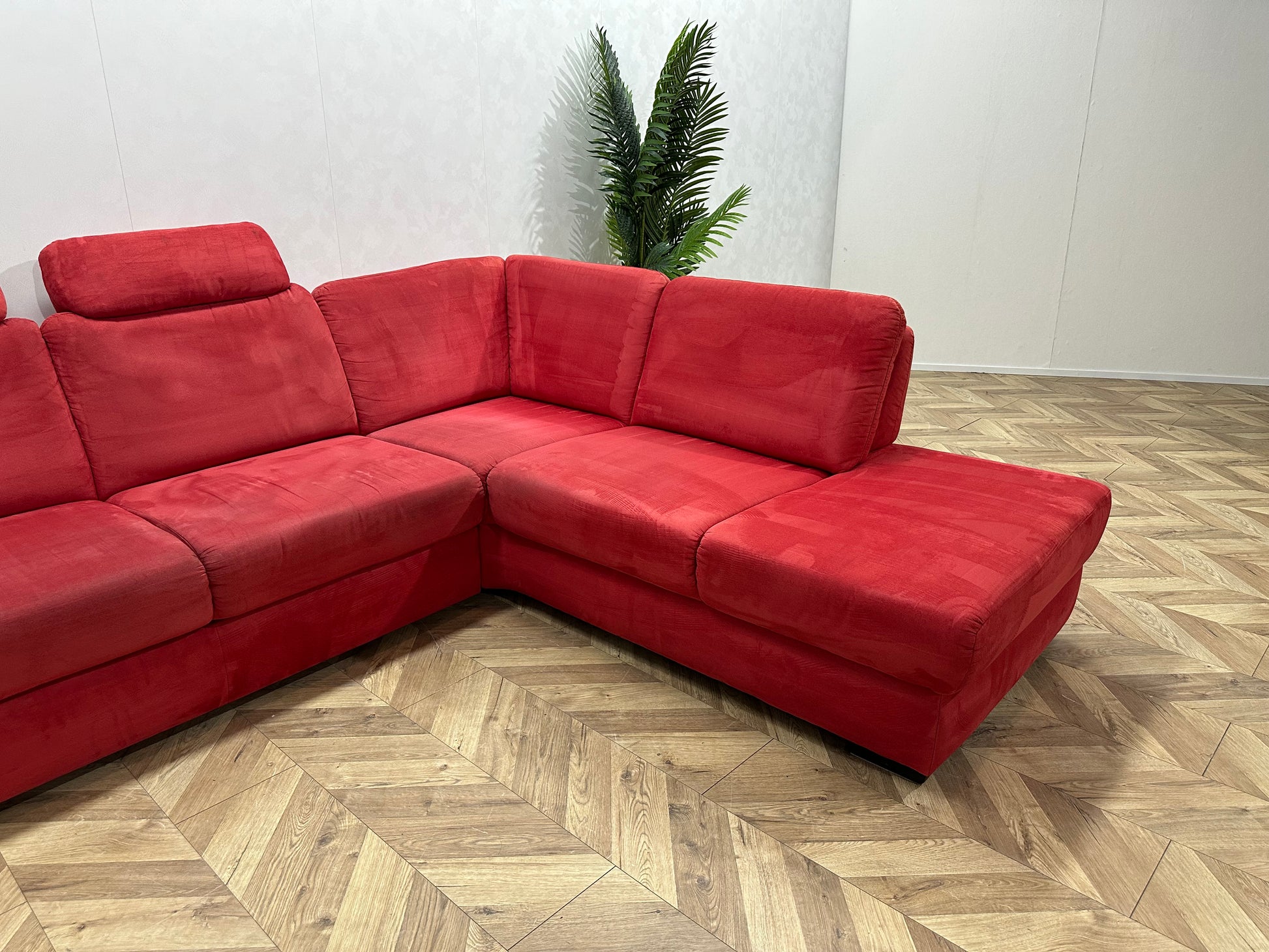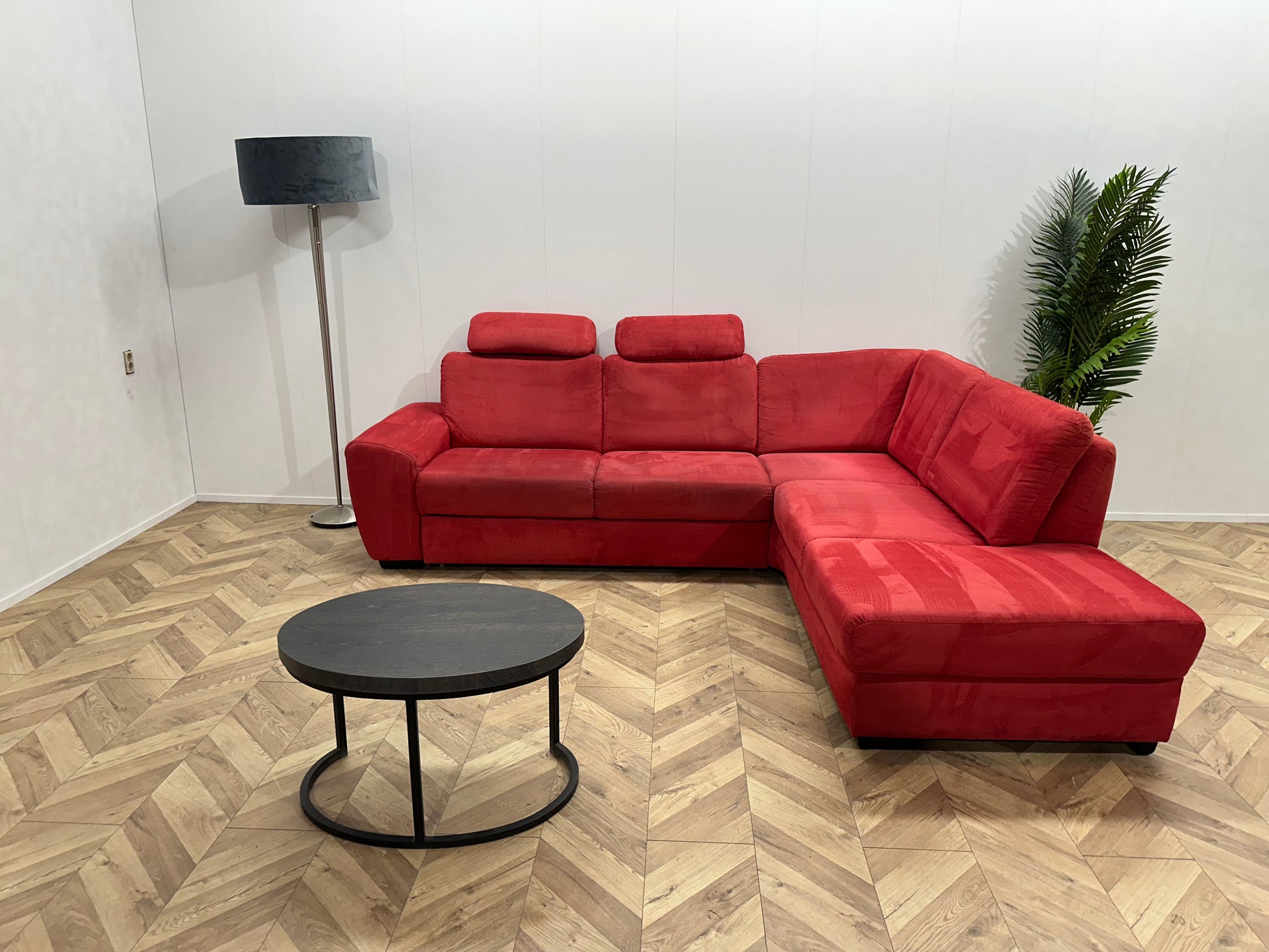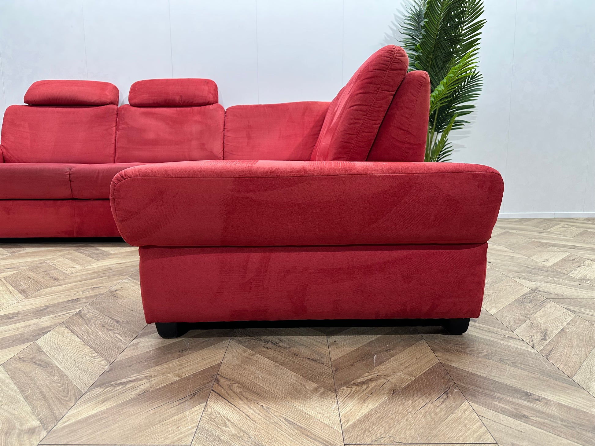 Rode Suède Stof Hoekbank ~ Slaapfunctie