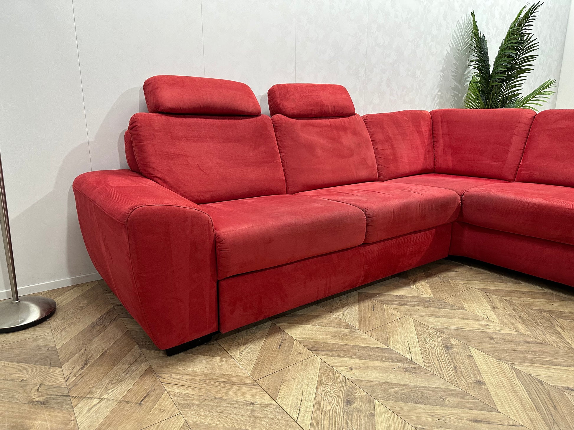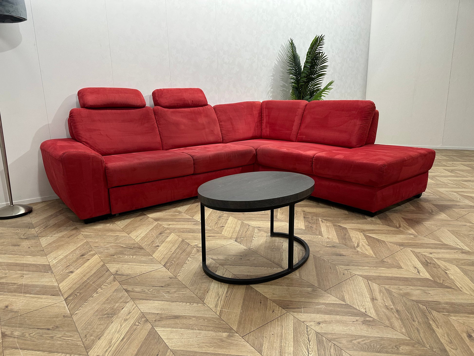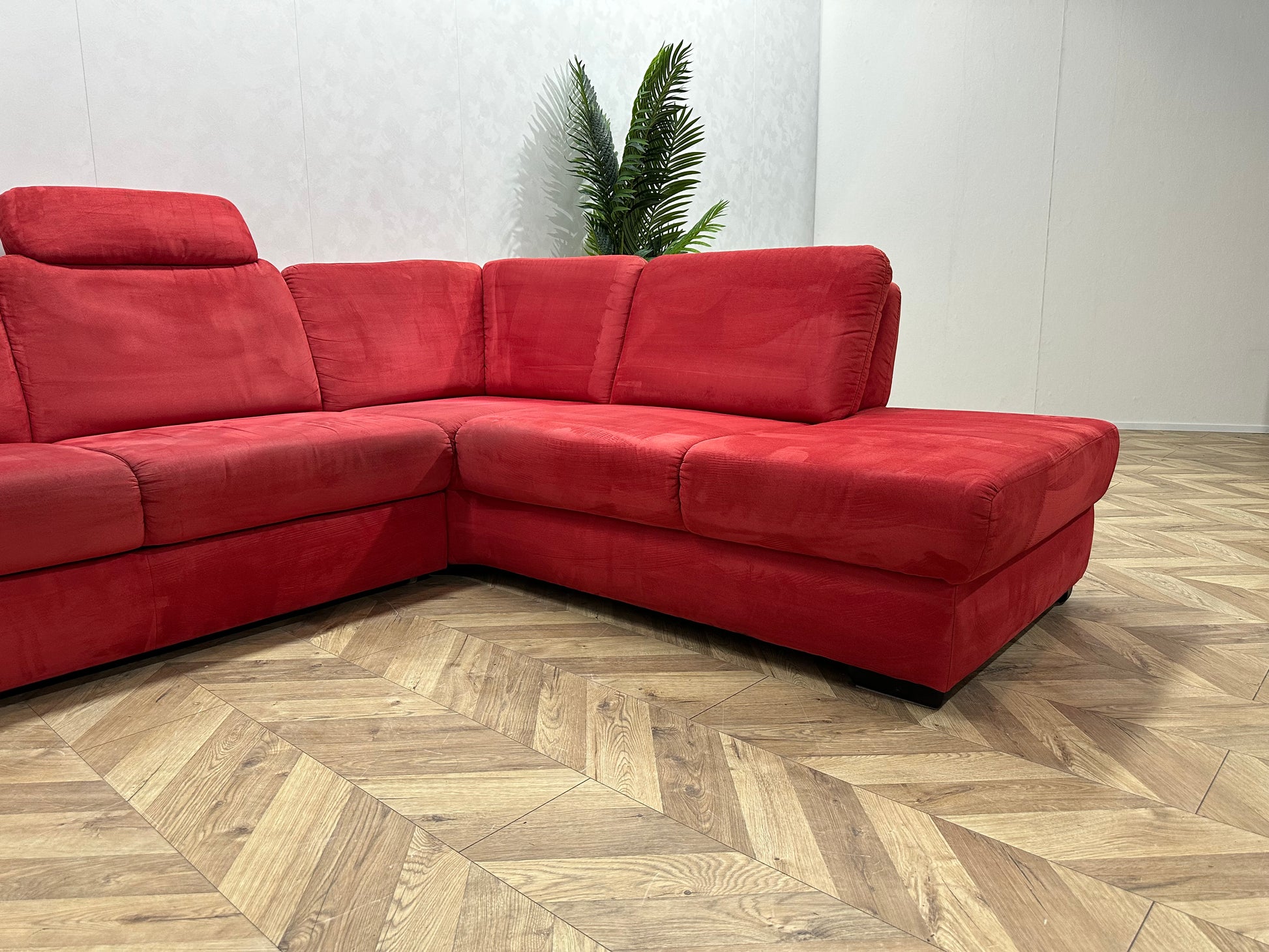 Rode Suède Stof Hoekbank ~ Slaapfunctie