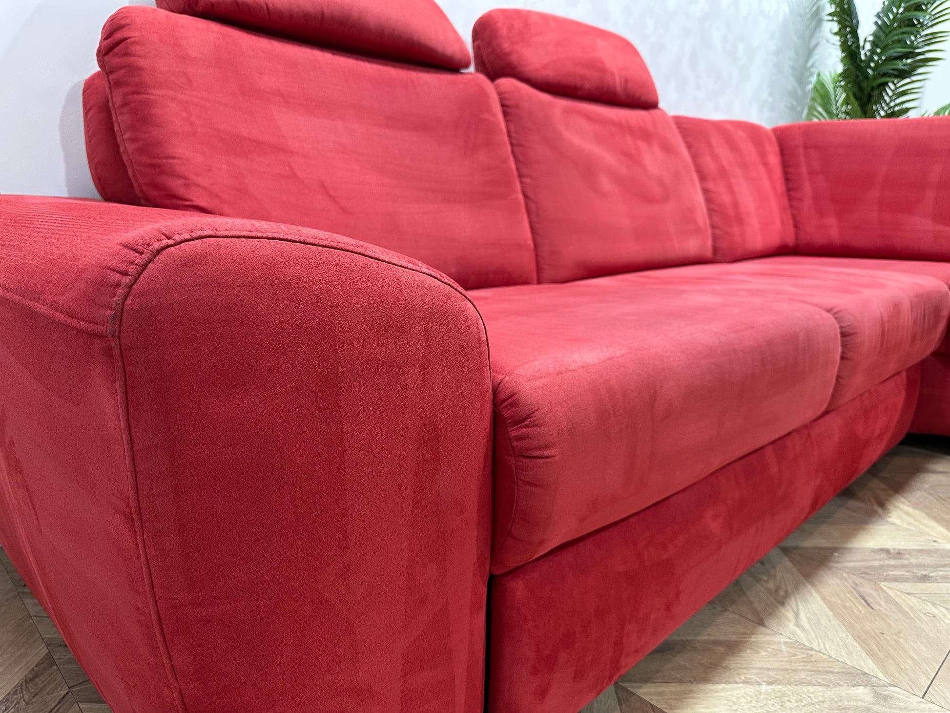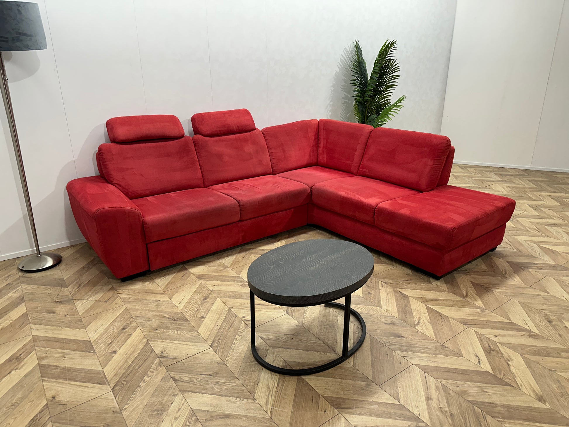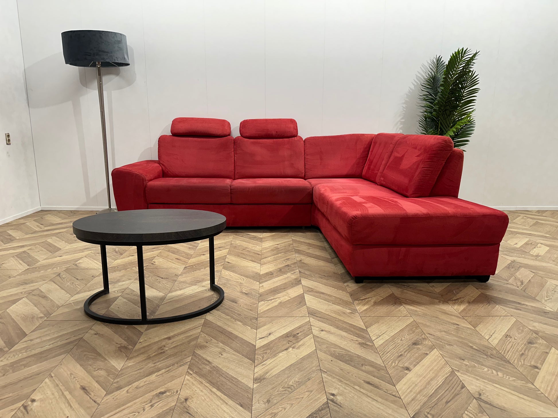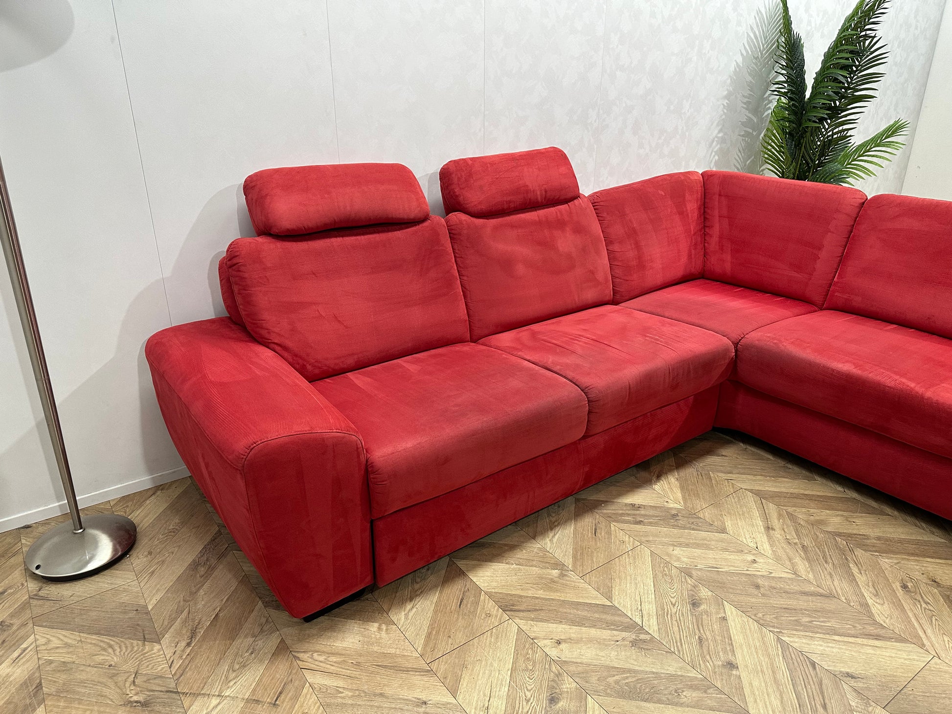 Rode Suède Stof Hoekbank ~ Slaapfunctie