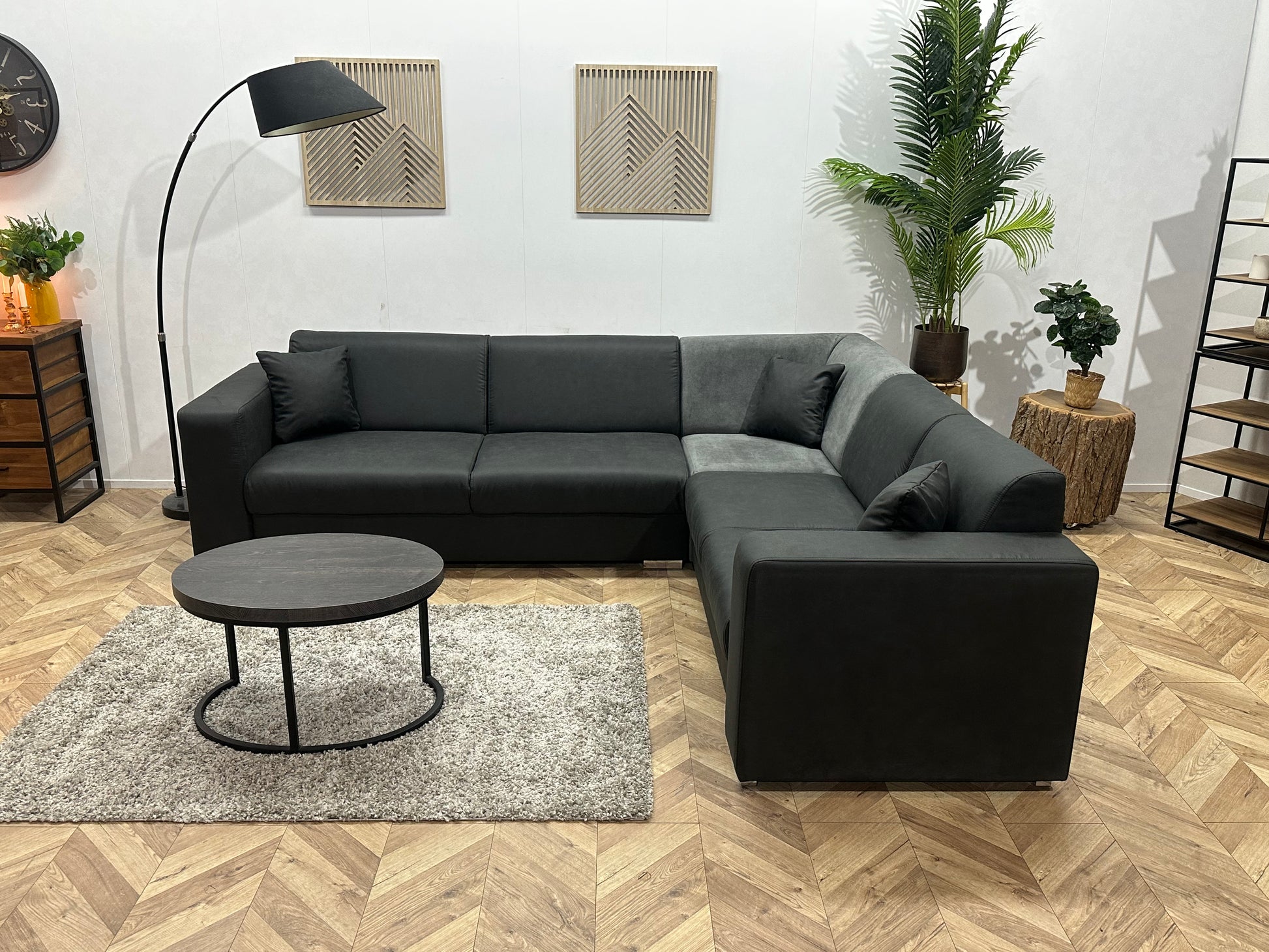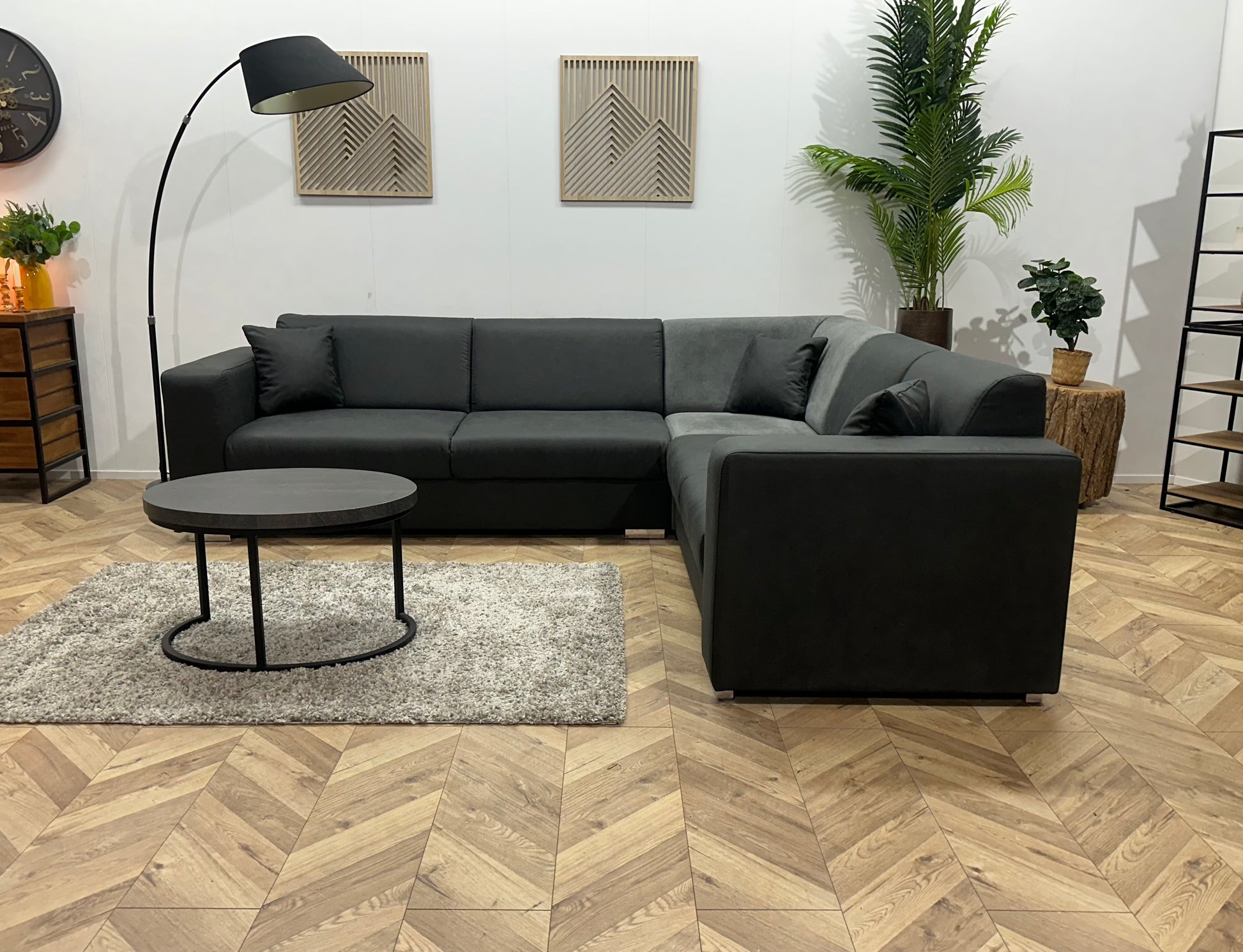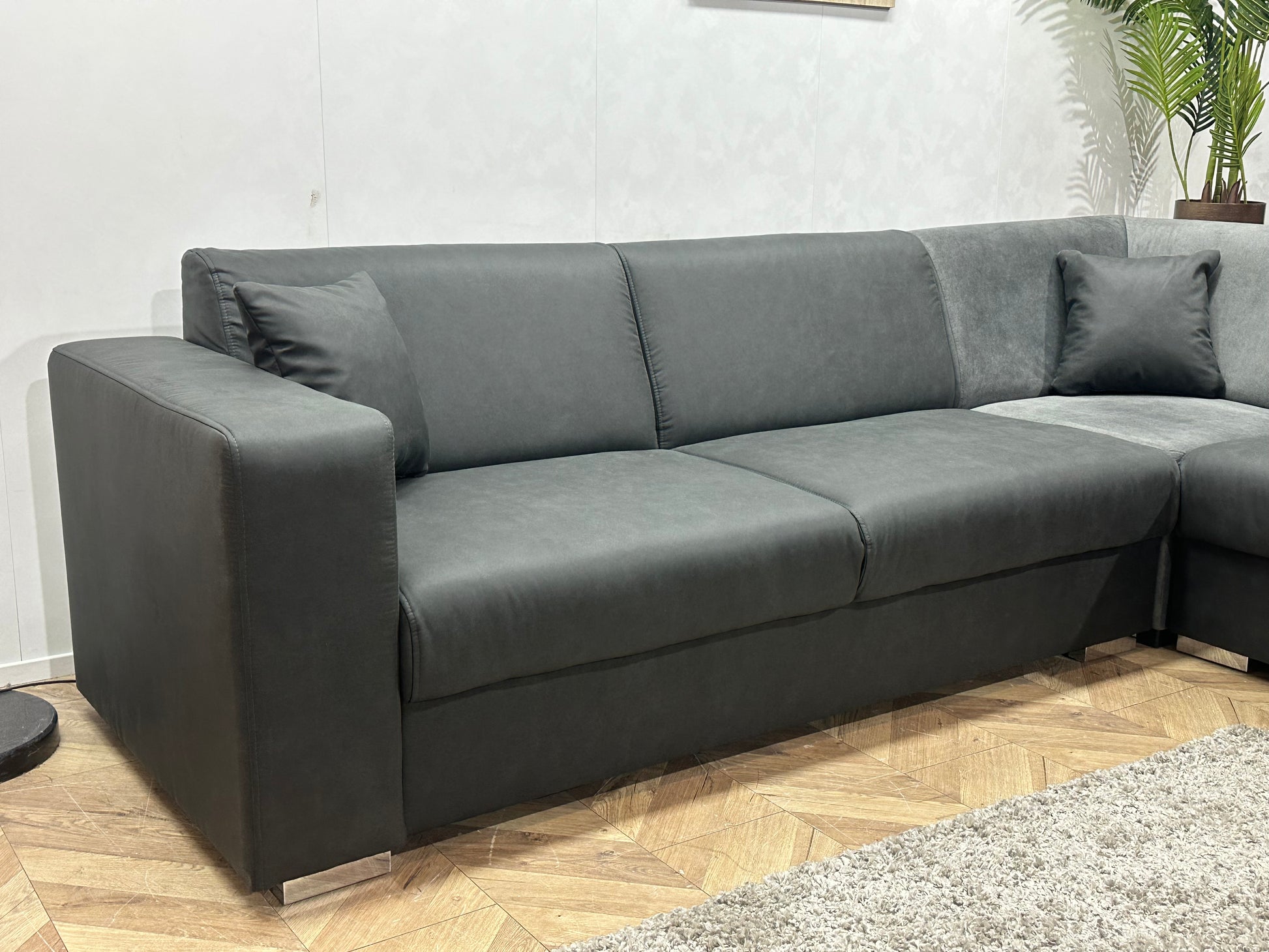 !Showroommodel! Antraciet/Grijze Suède Lederen/Velvet Hoekbank