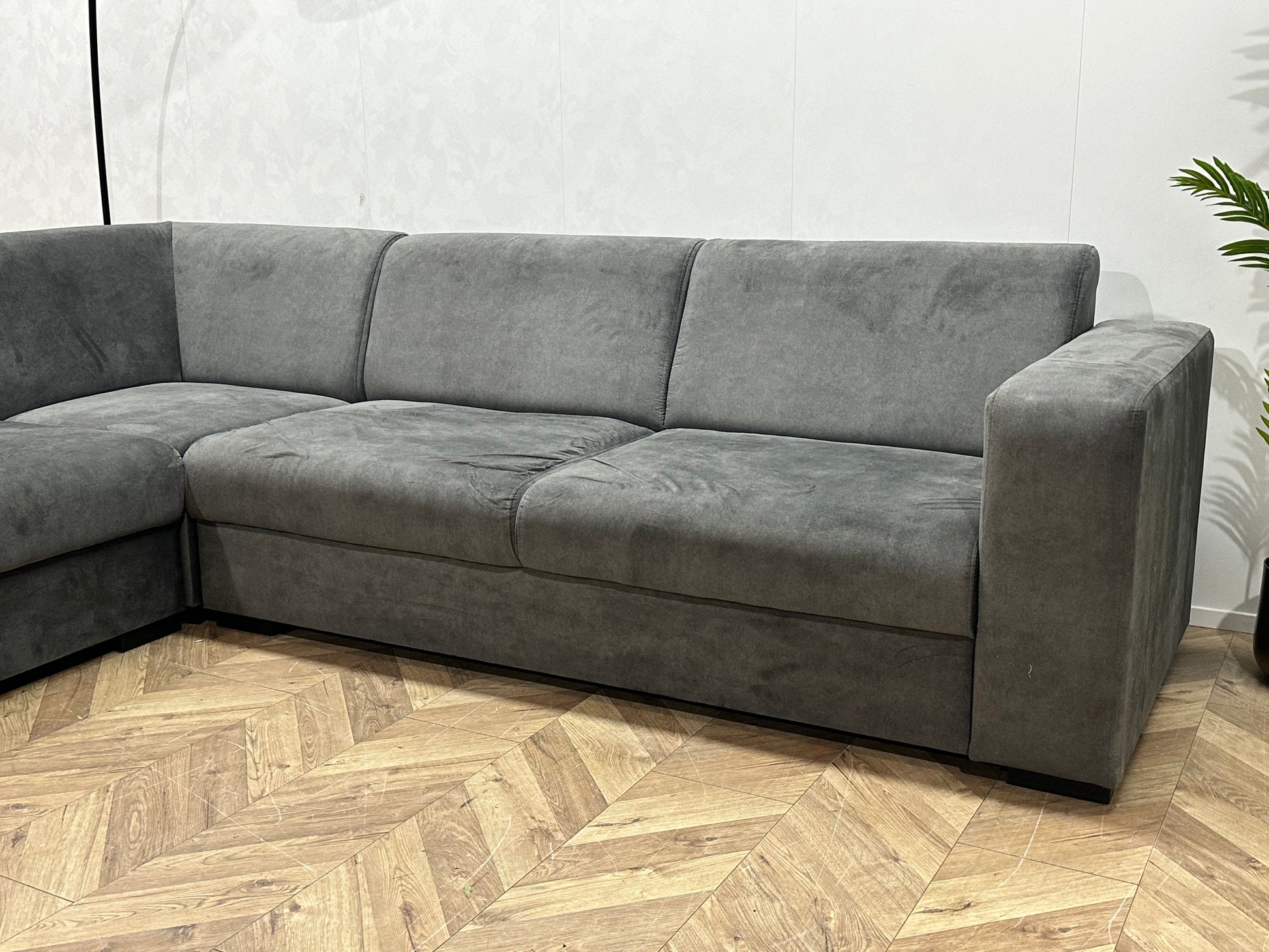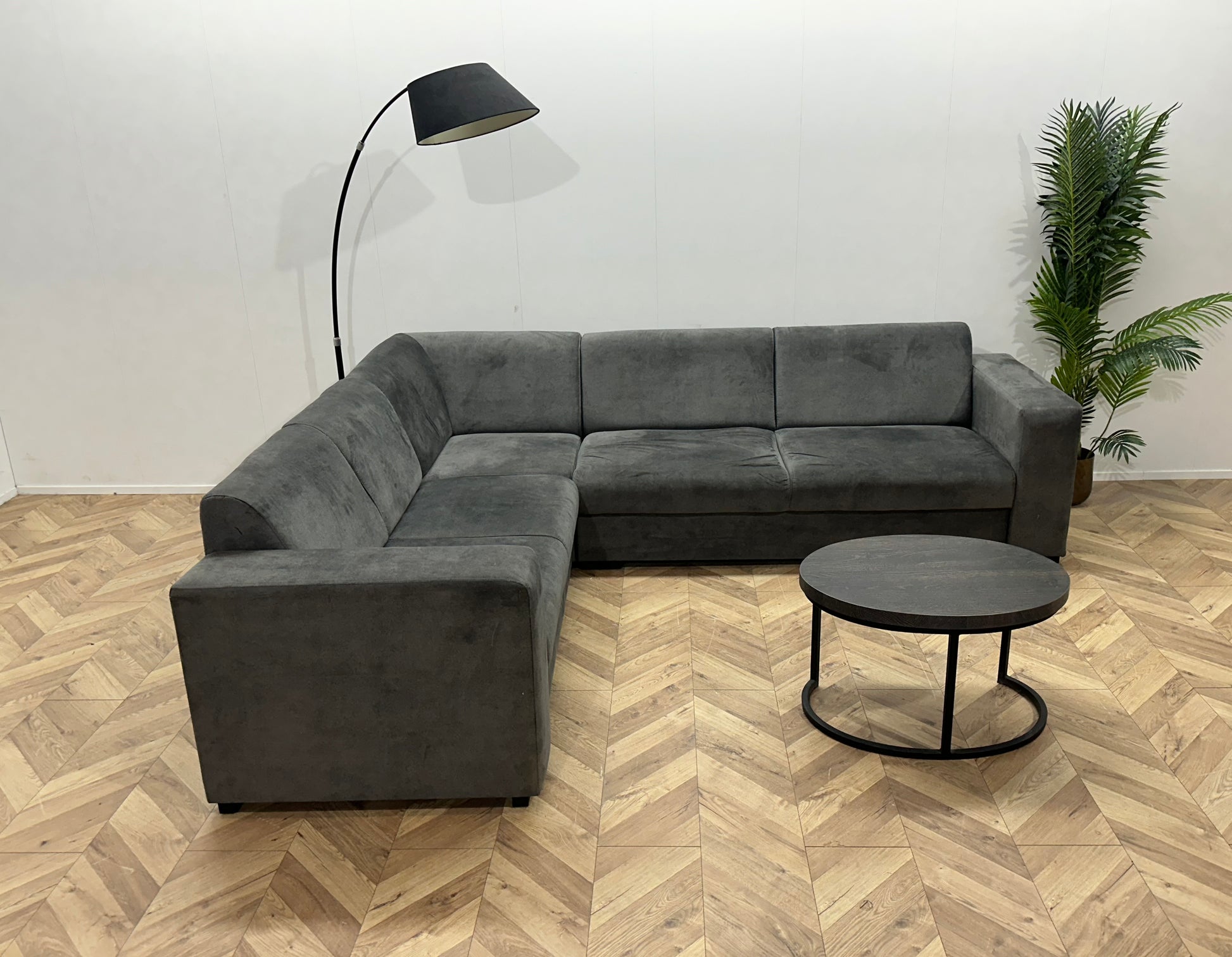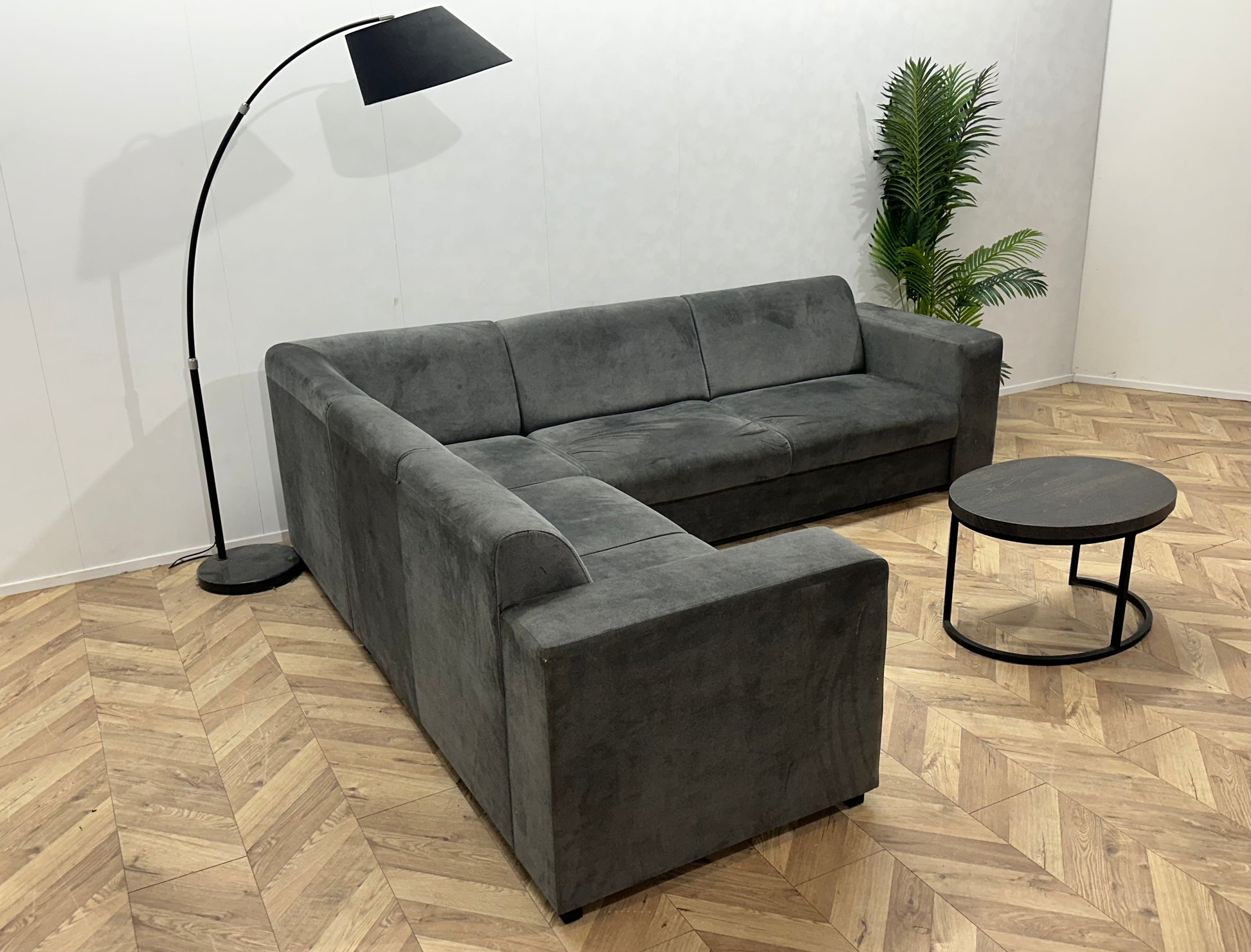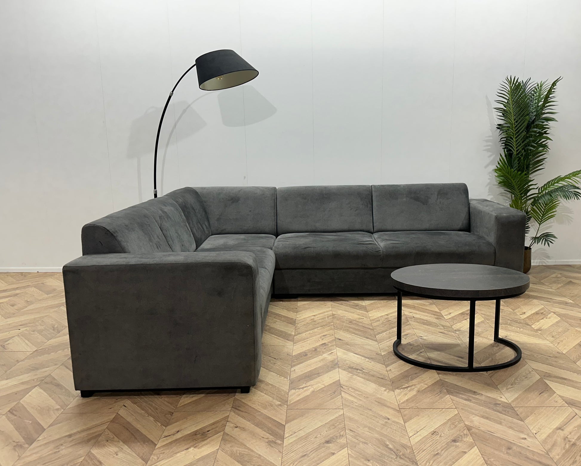 Antraciet Velvet Hoekbank ~ Vaste Kussens