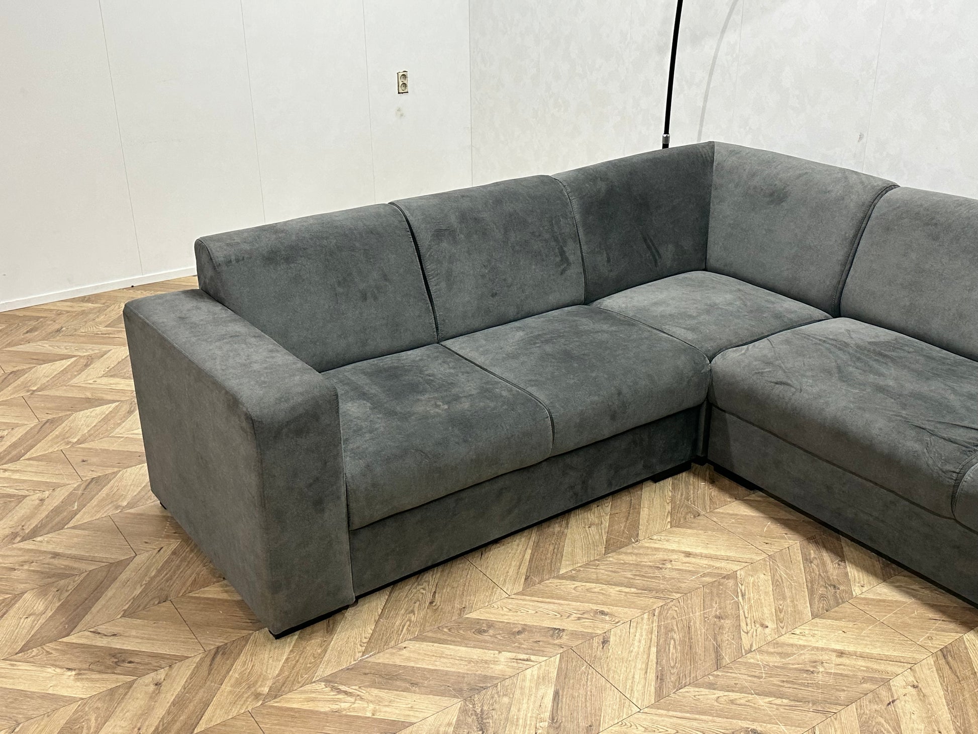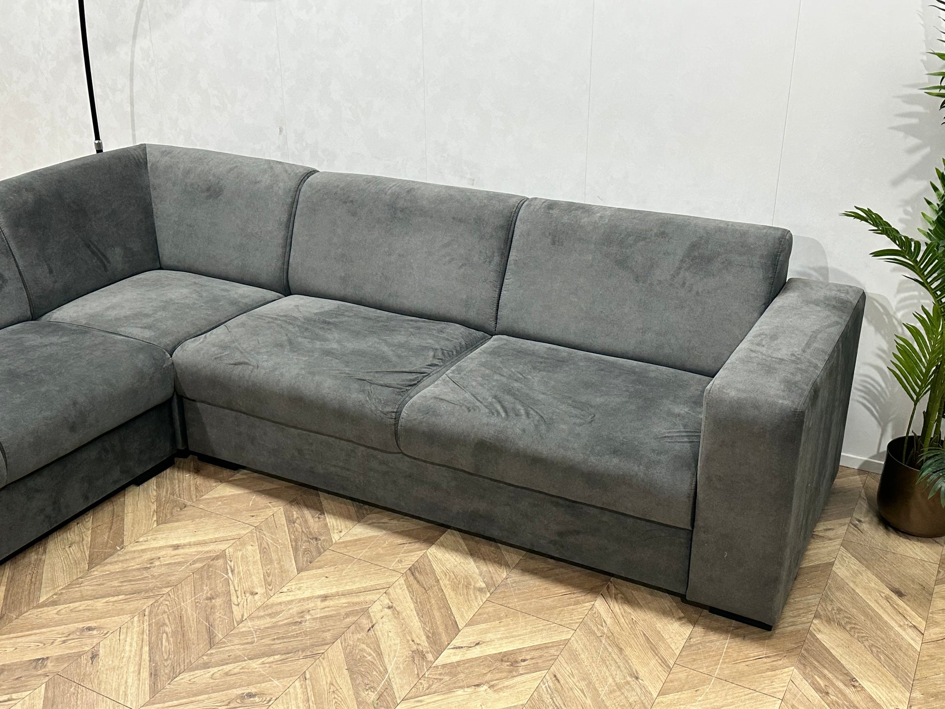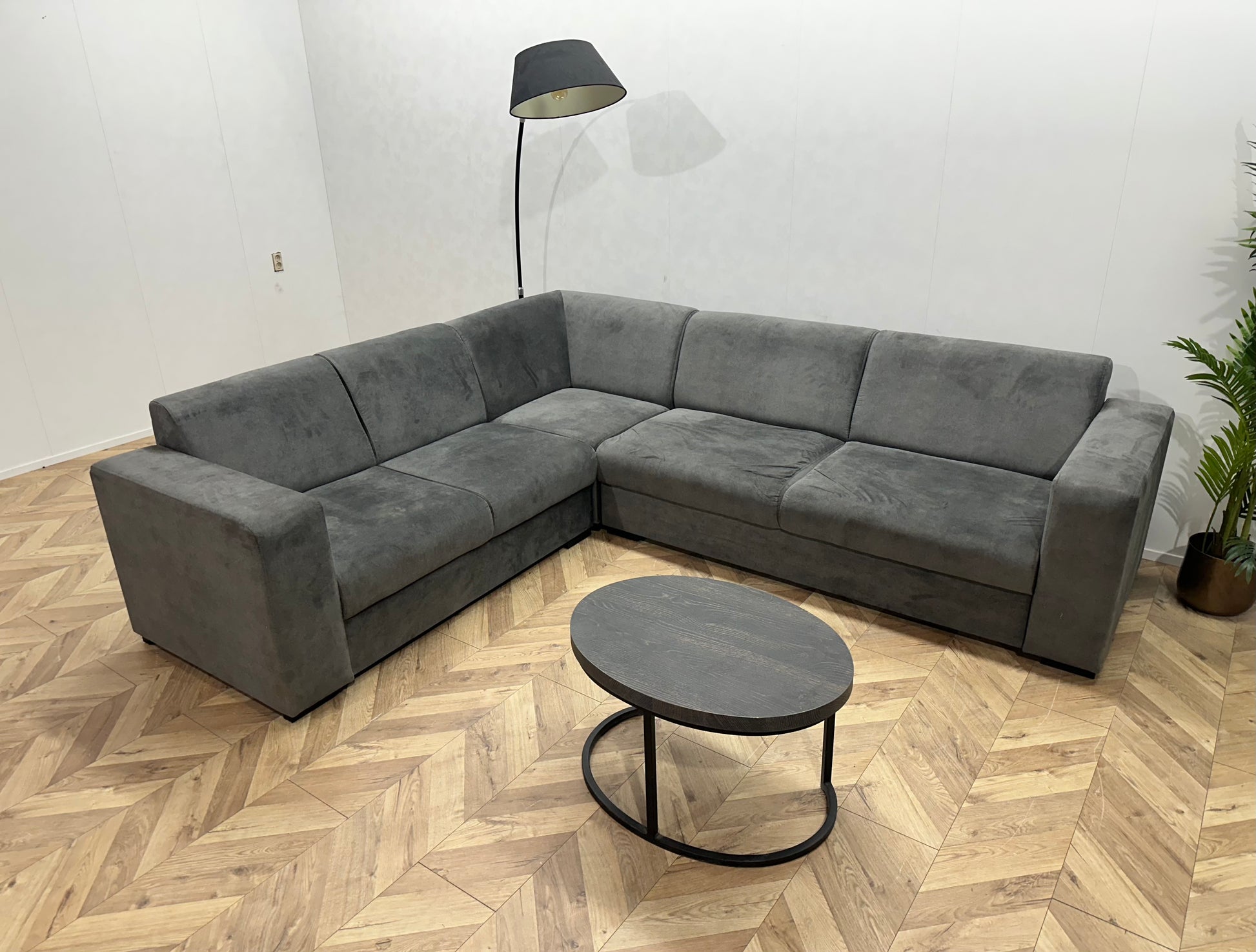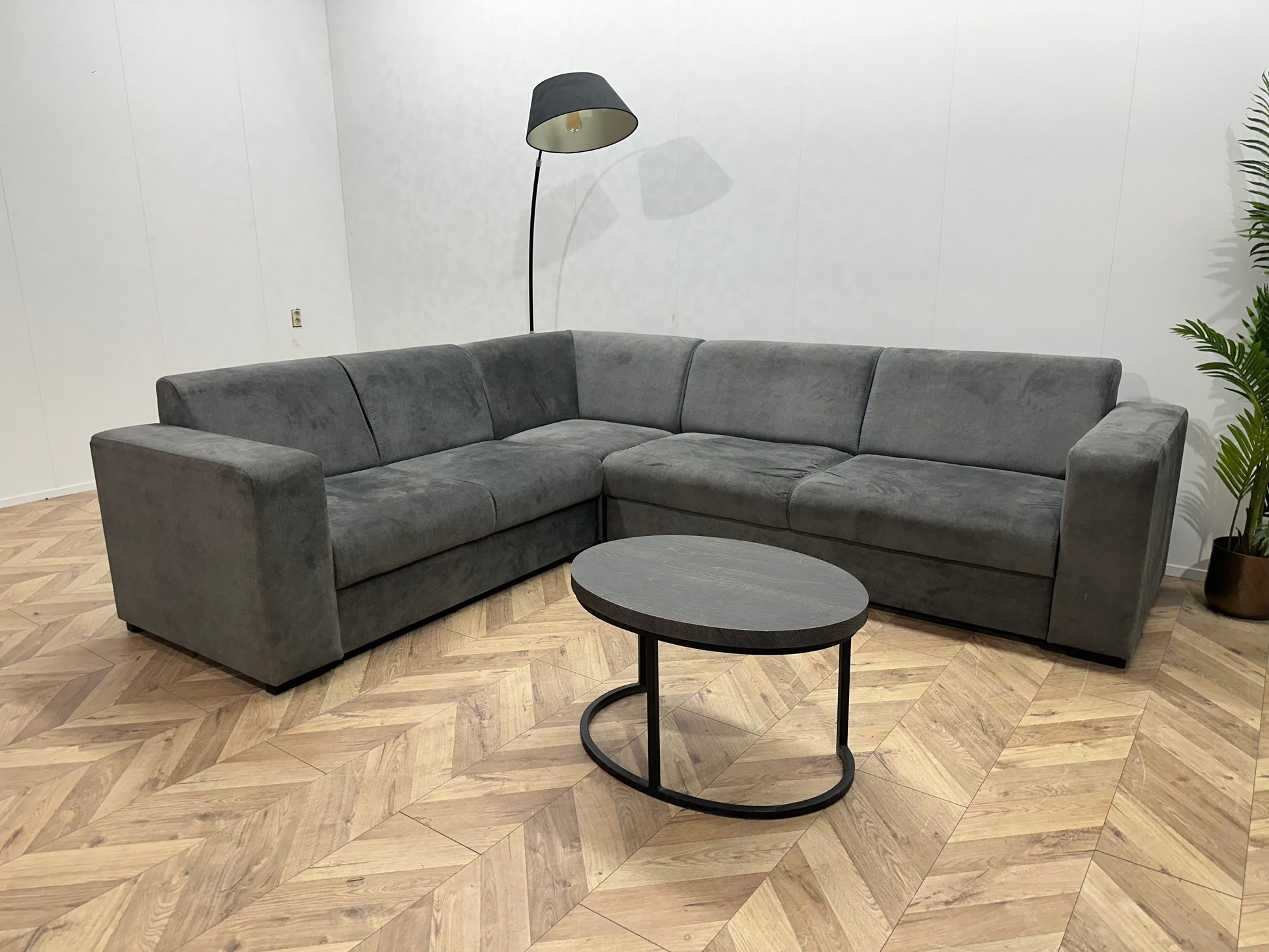 Antraciet Velvet Hoekbank ~ Vaste Kussens