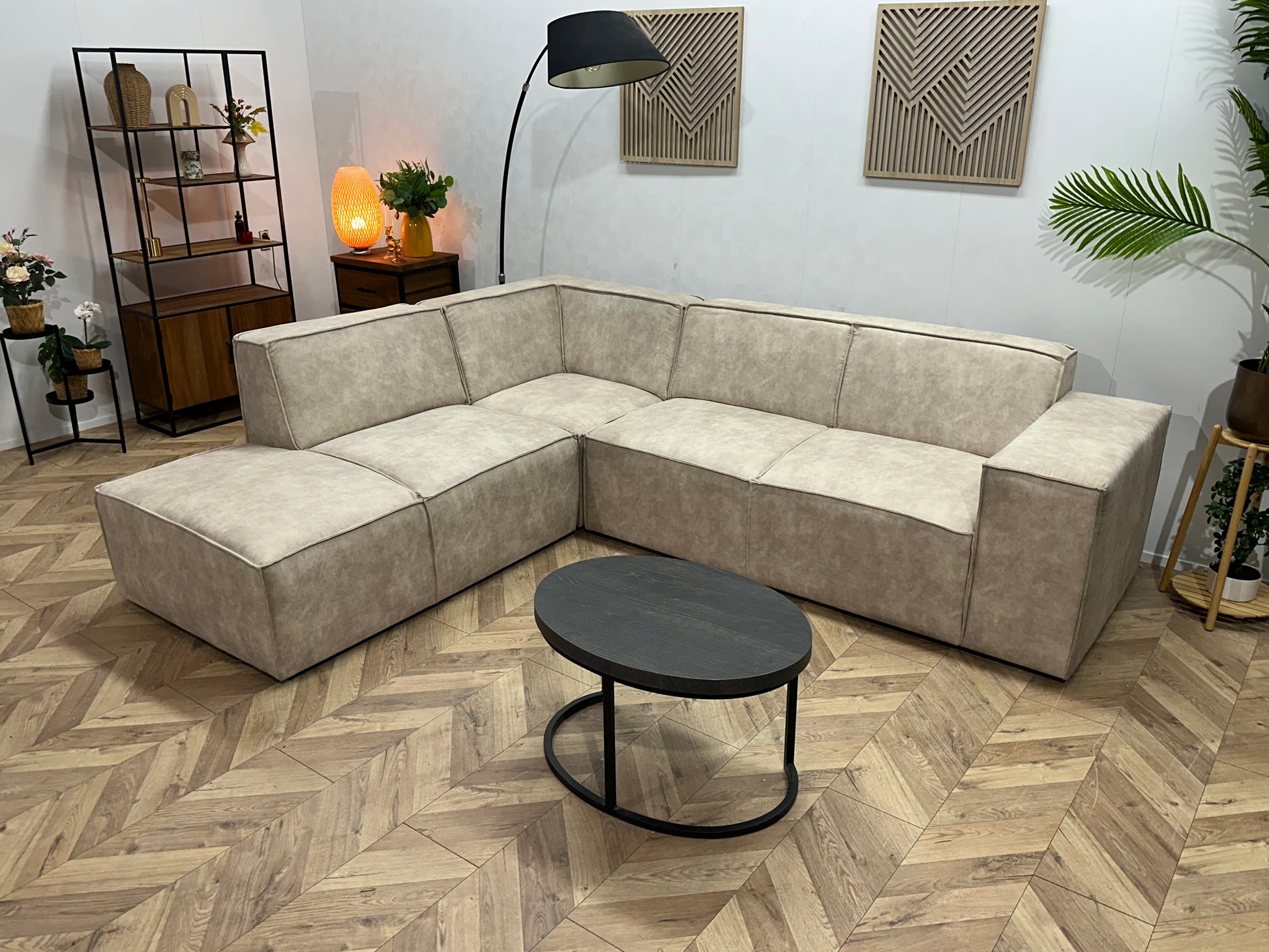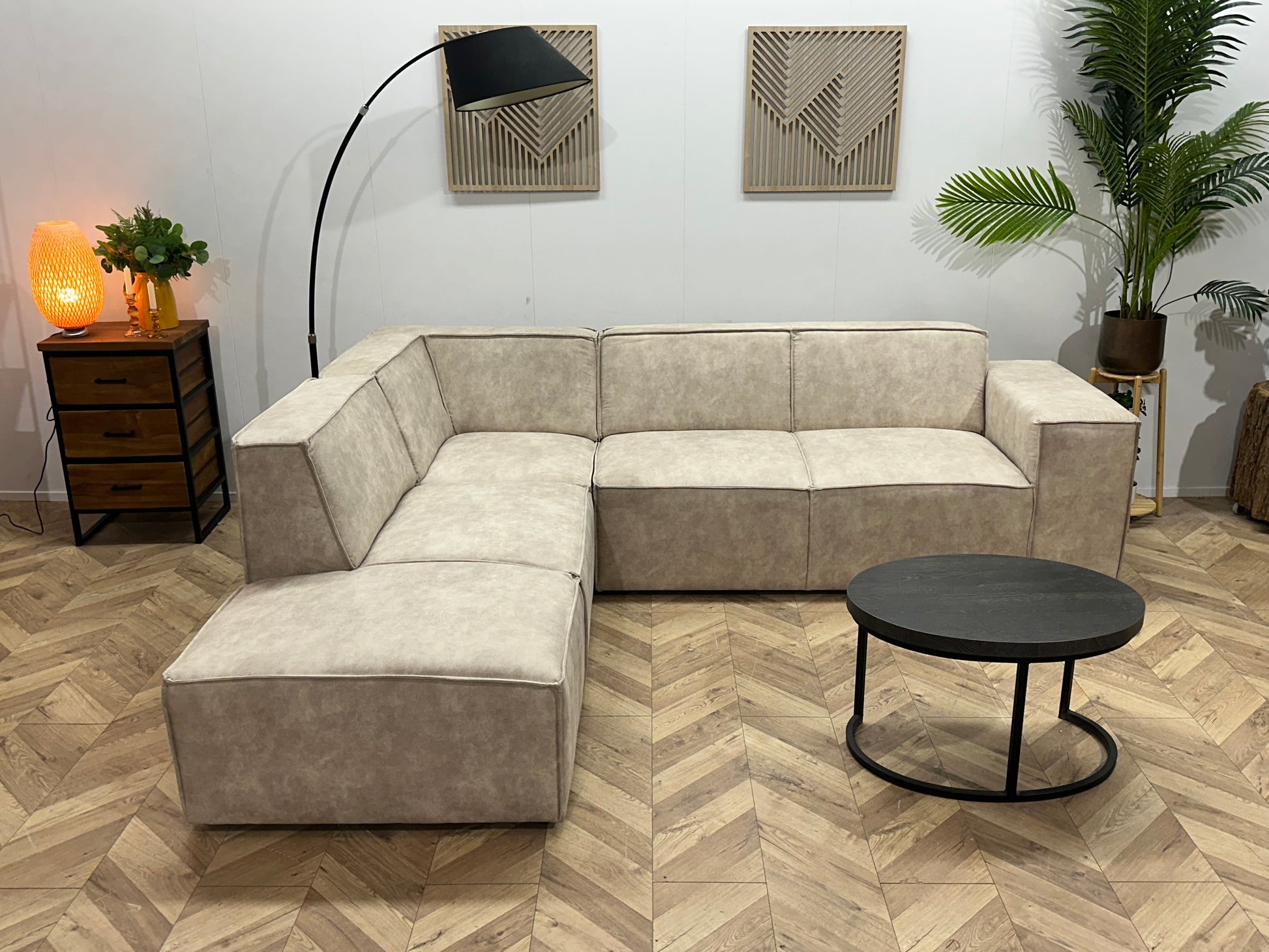 !Showroommodel! Crème Suède Stoffen Hoekbank