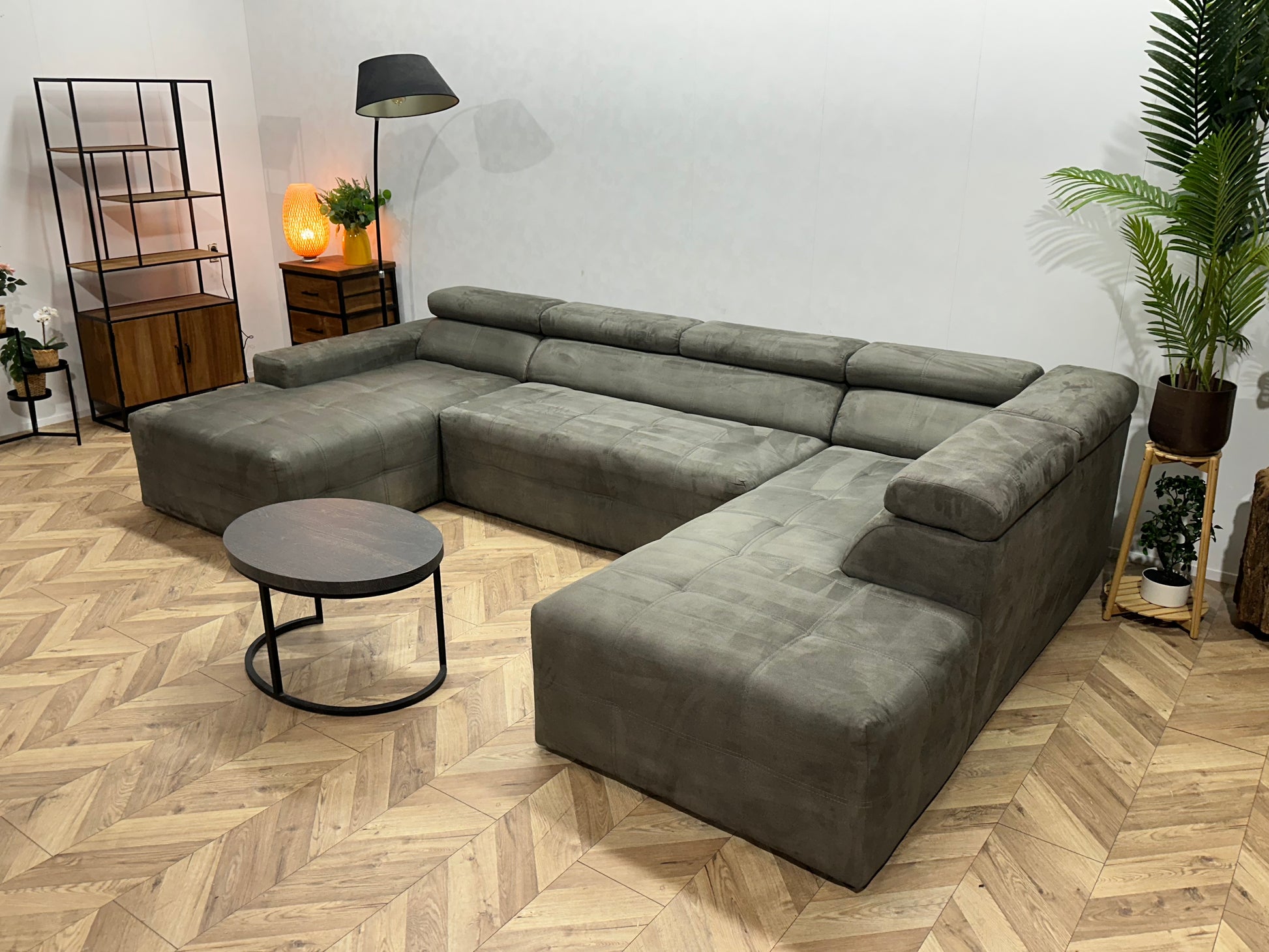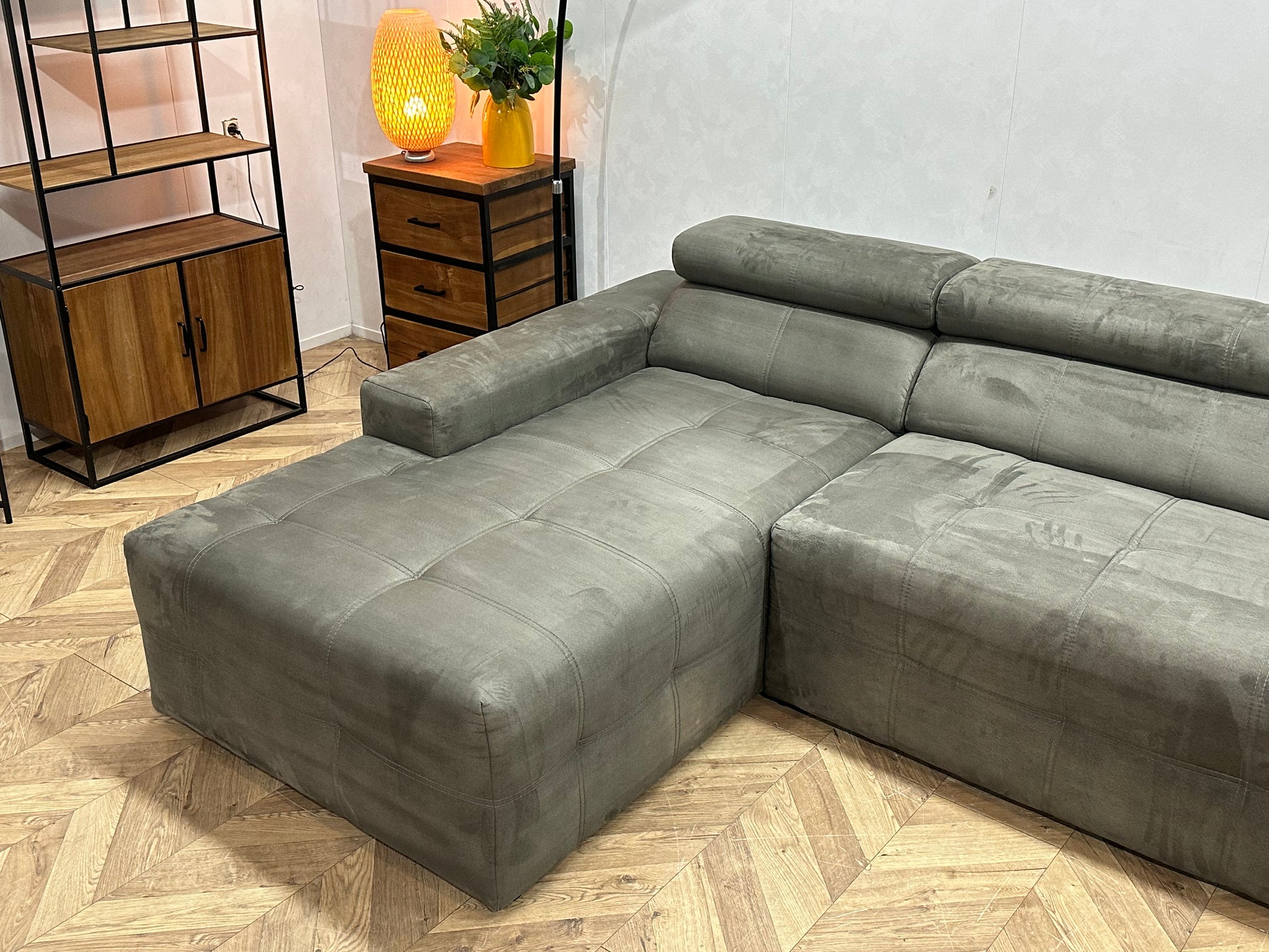 !Showroommodel! Grijze Suède Stoffen U Bank
