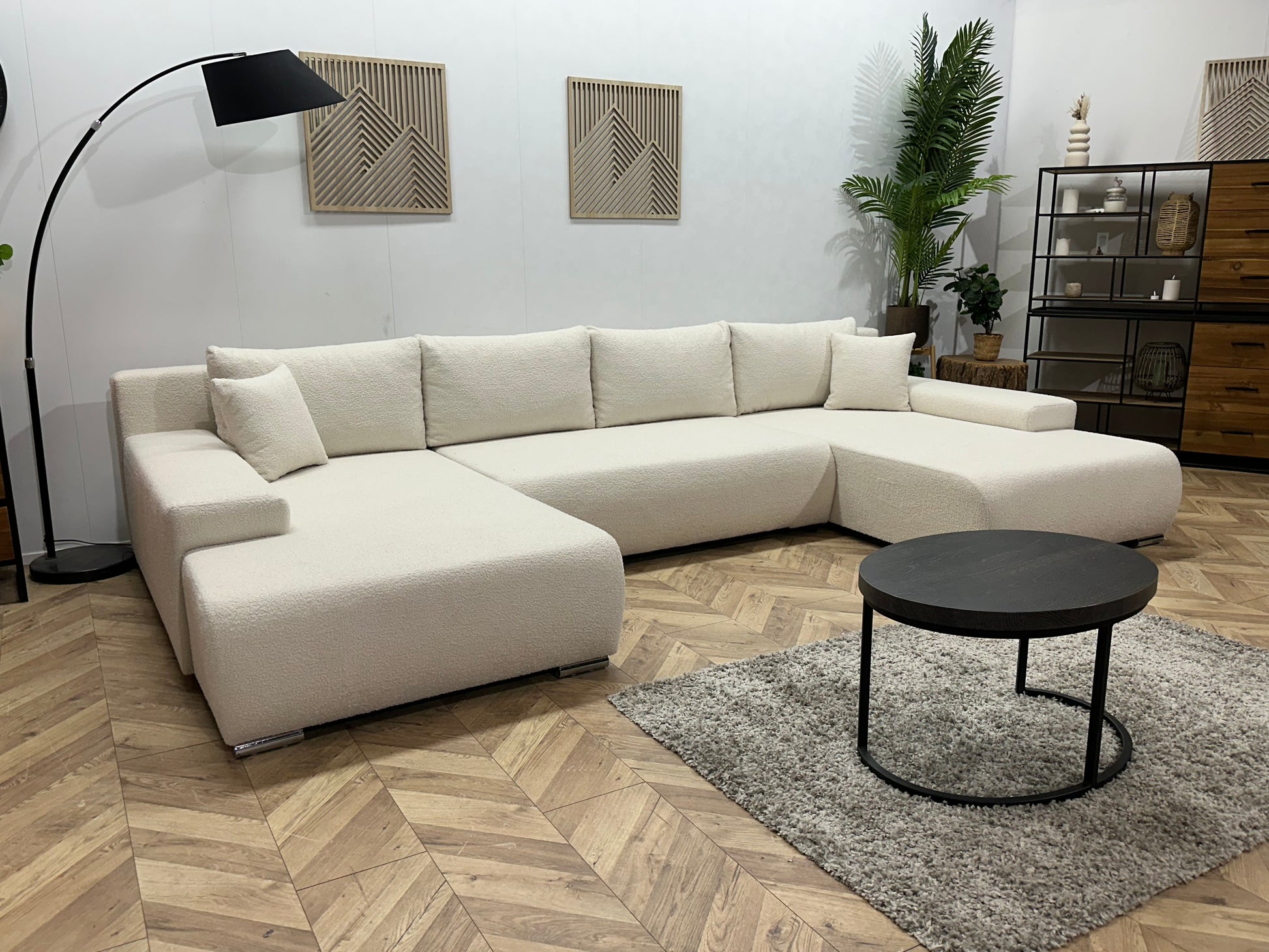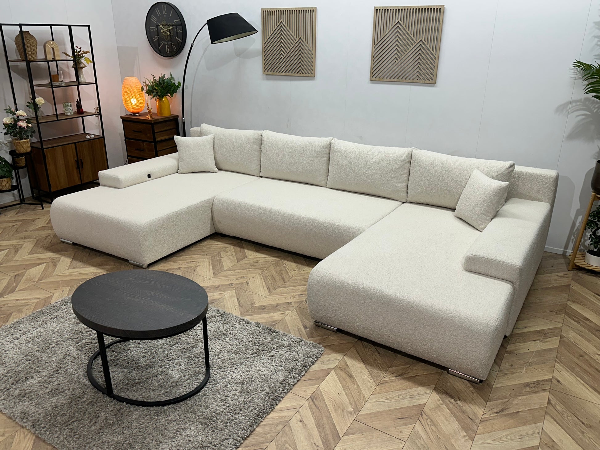 !Showroommodel! Witte Bouclé Stoffen U Bank ~ Oplaadfunctie