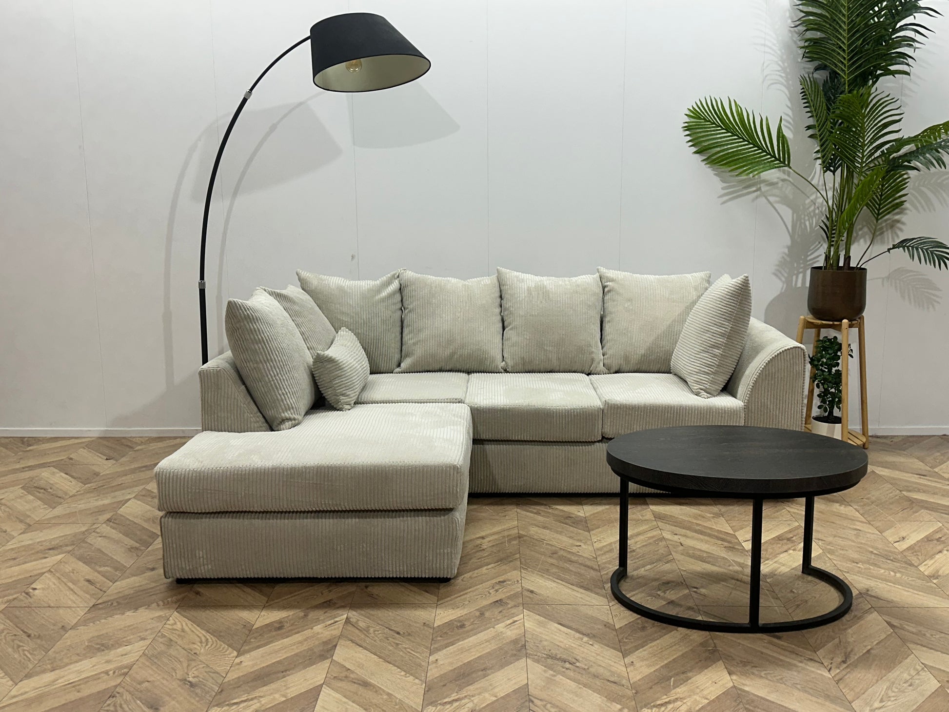 !Showroommodel! Witte/Crème Ribstof Hoekbank