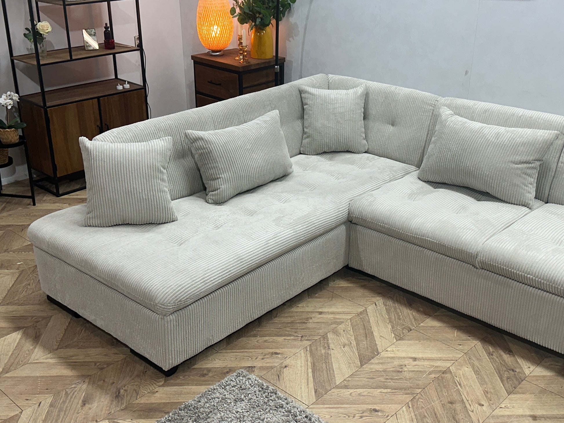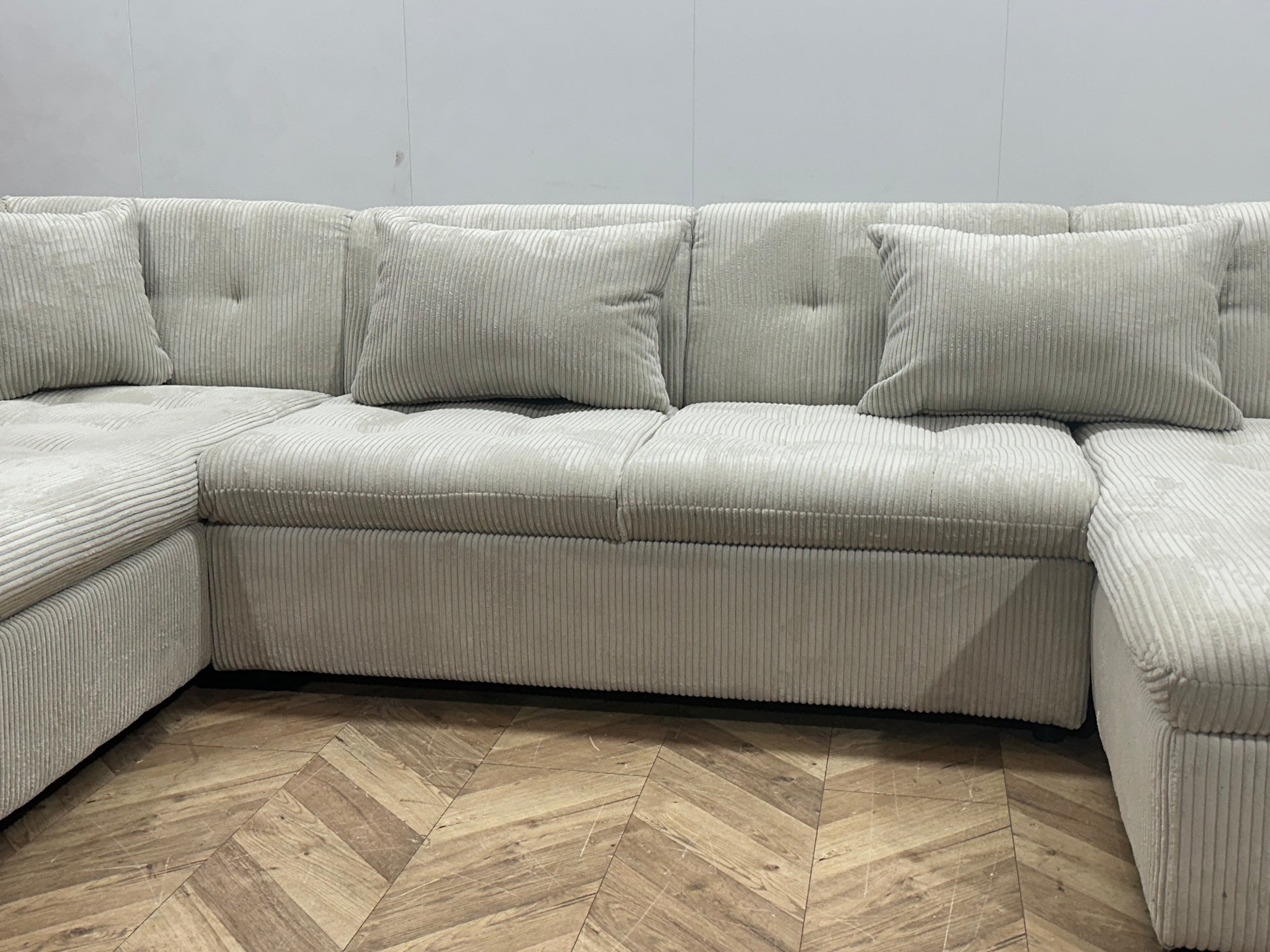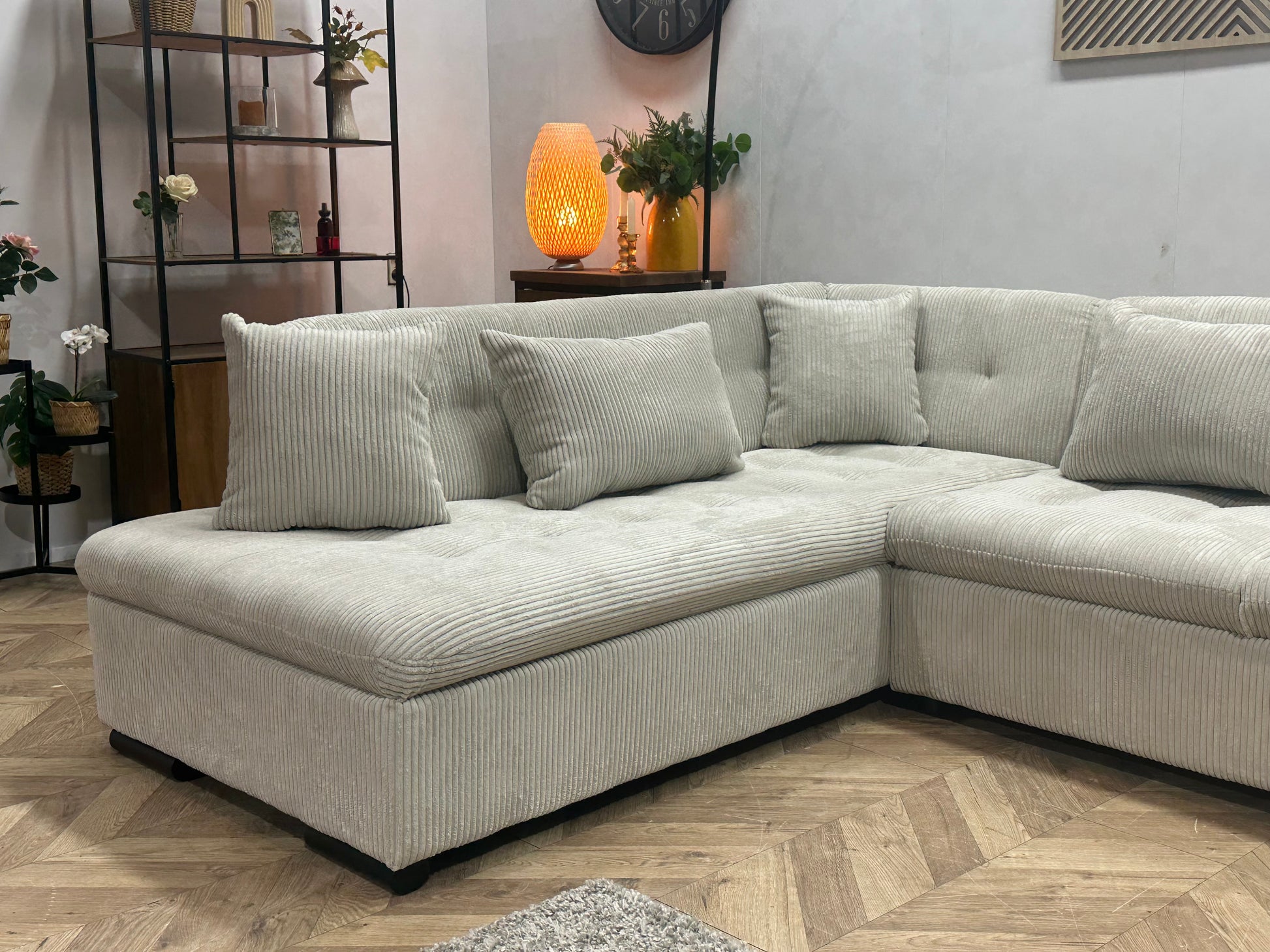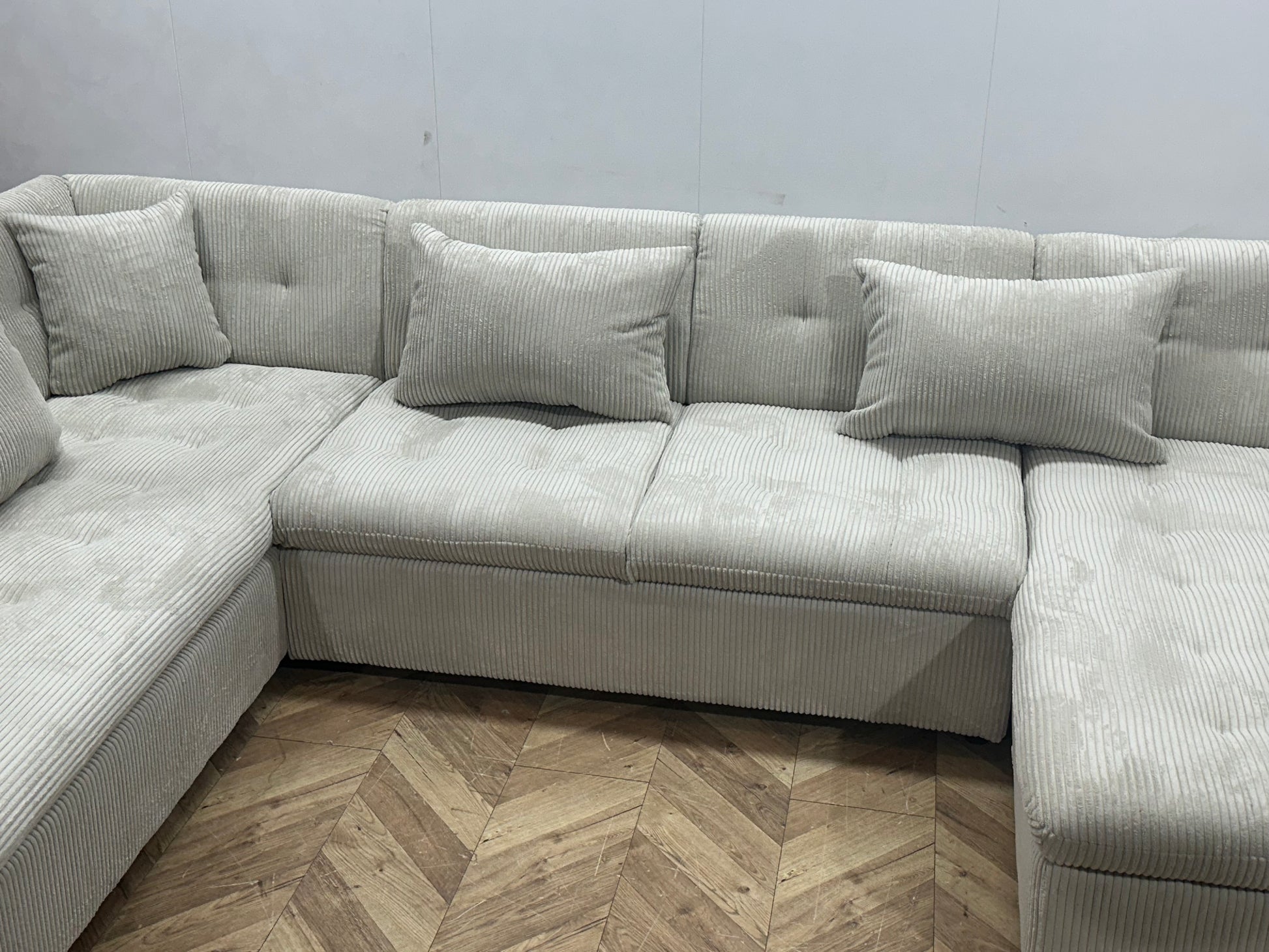 !Showroommodel! Witte Ribstof Hoekbank