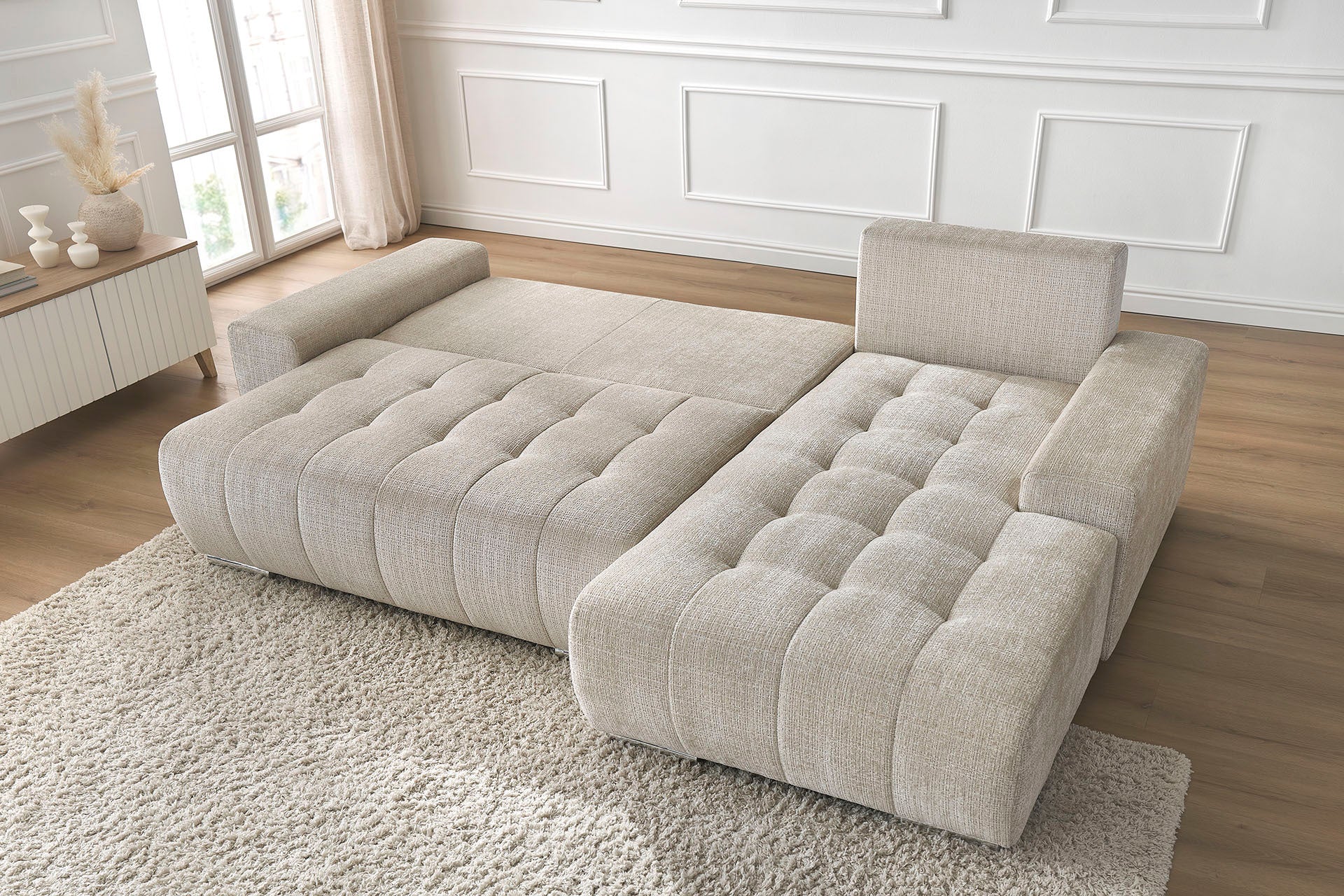 De Suzanne is beschikbaar in zowel een linkse als een rechtse hoekopstelling, waardoor hij zich eenvoudig laat aanpassen aan de indeling van je kamer.