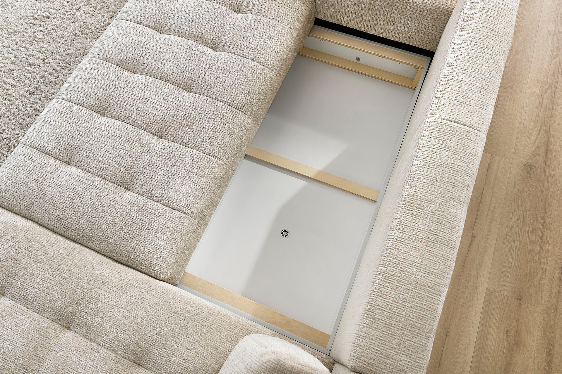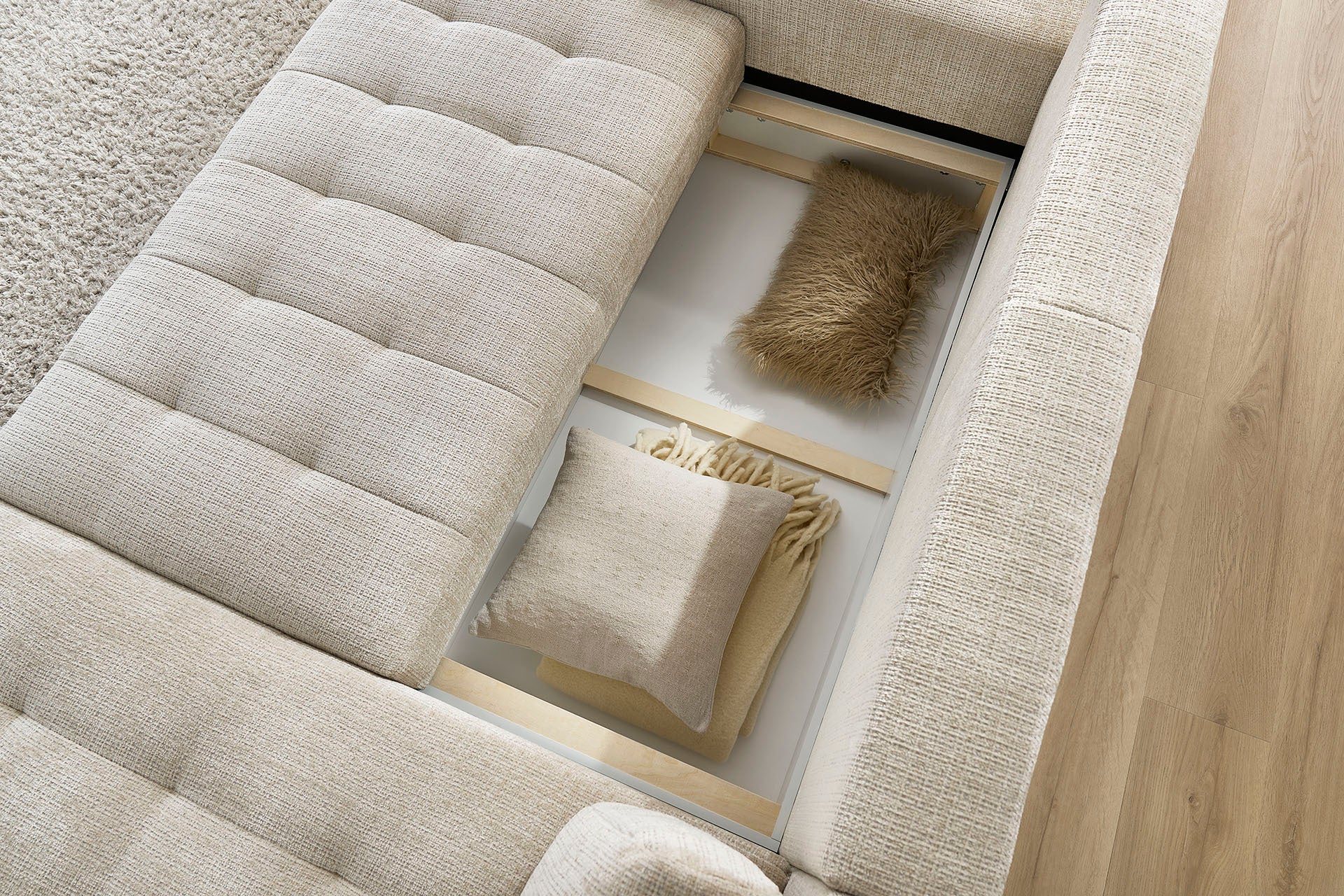 - Opbergvak: ideaal voor plaids, kussens of beddengoed