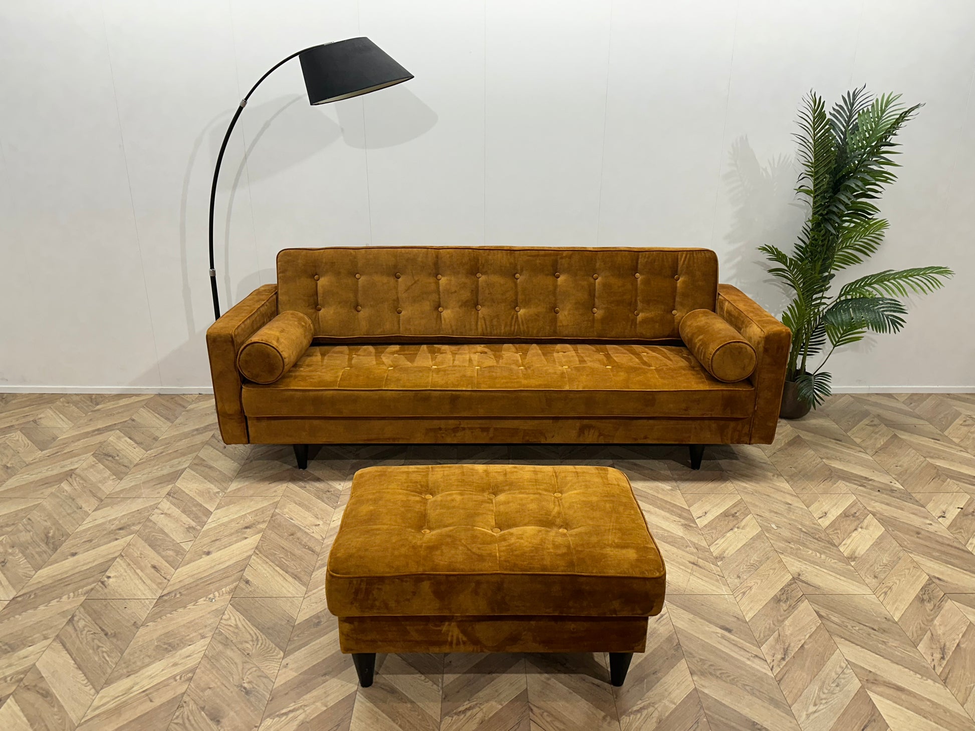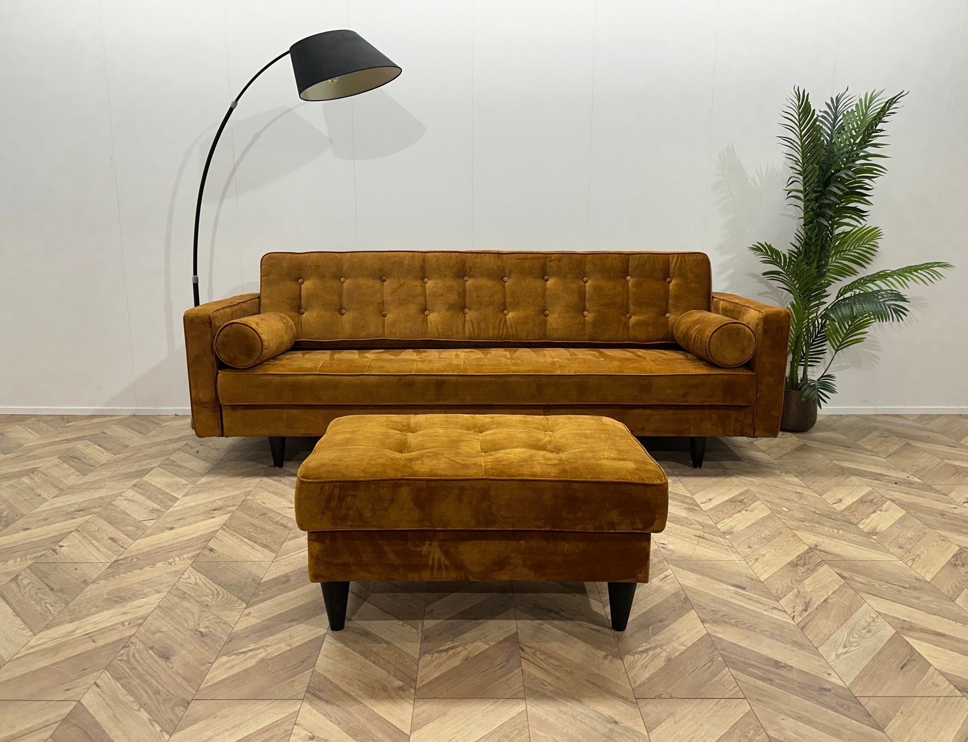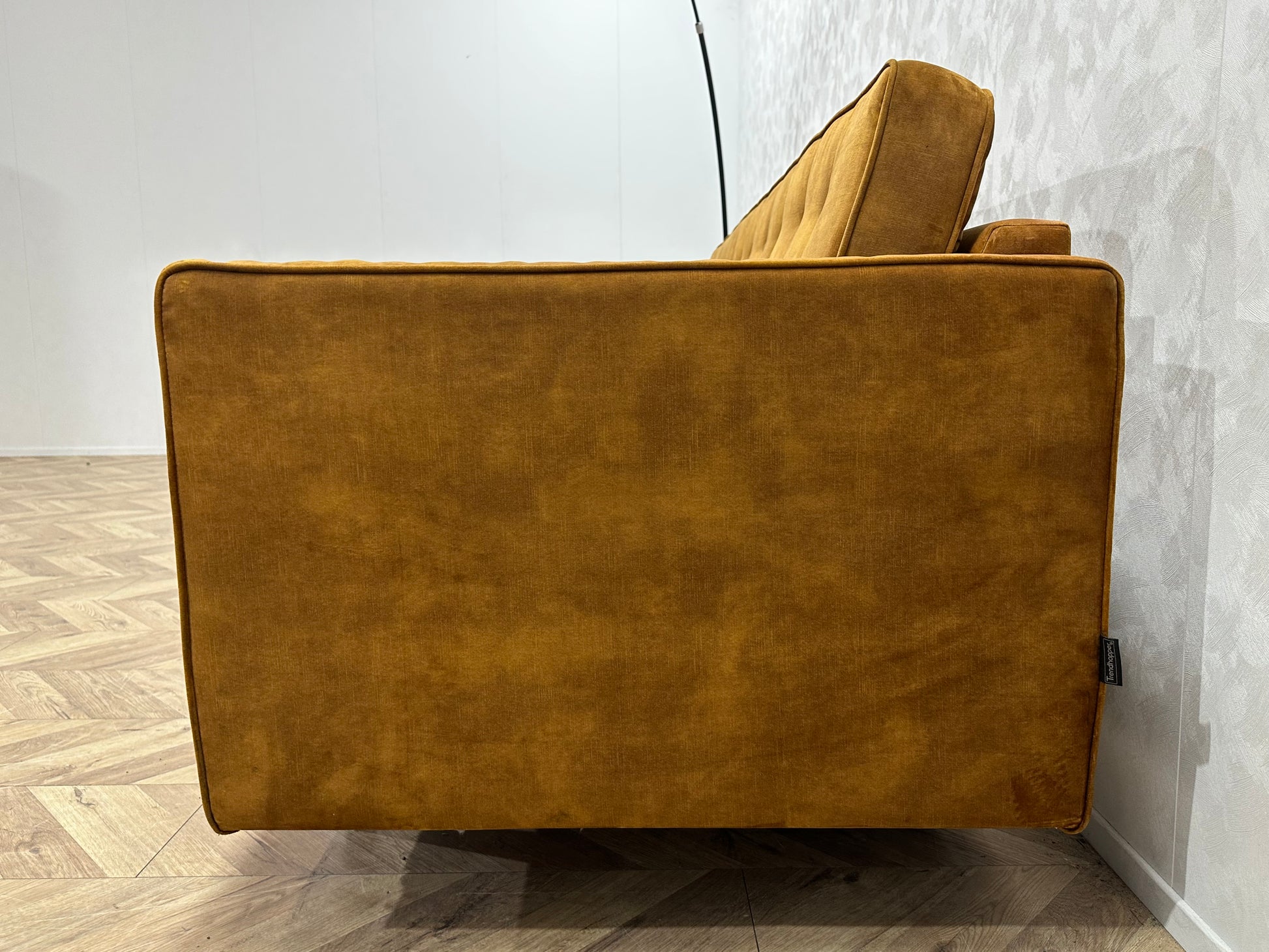 Trendhopper Gele Velvet 2.5-Zits Bank Inc Hocker ~ Losse Rugkussens Met Afneembare Hoezen