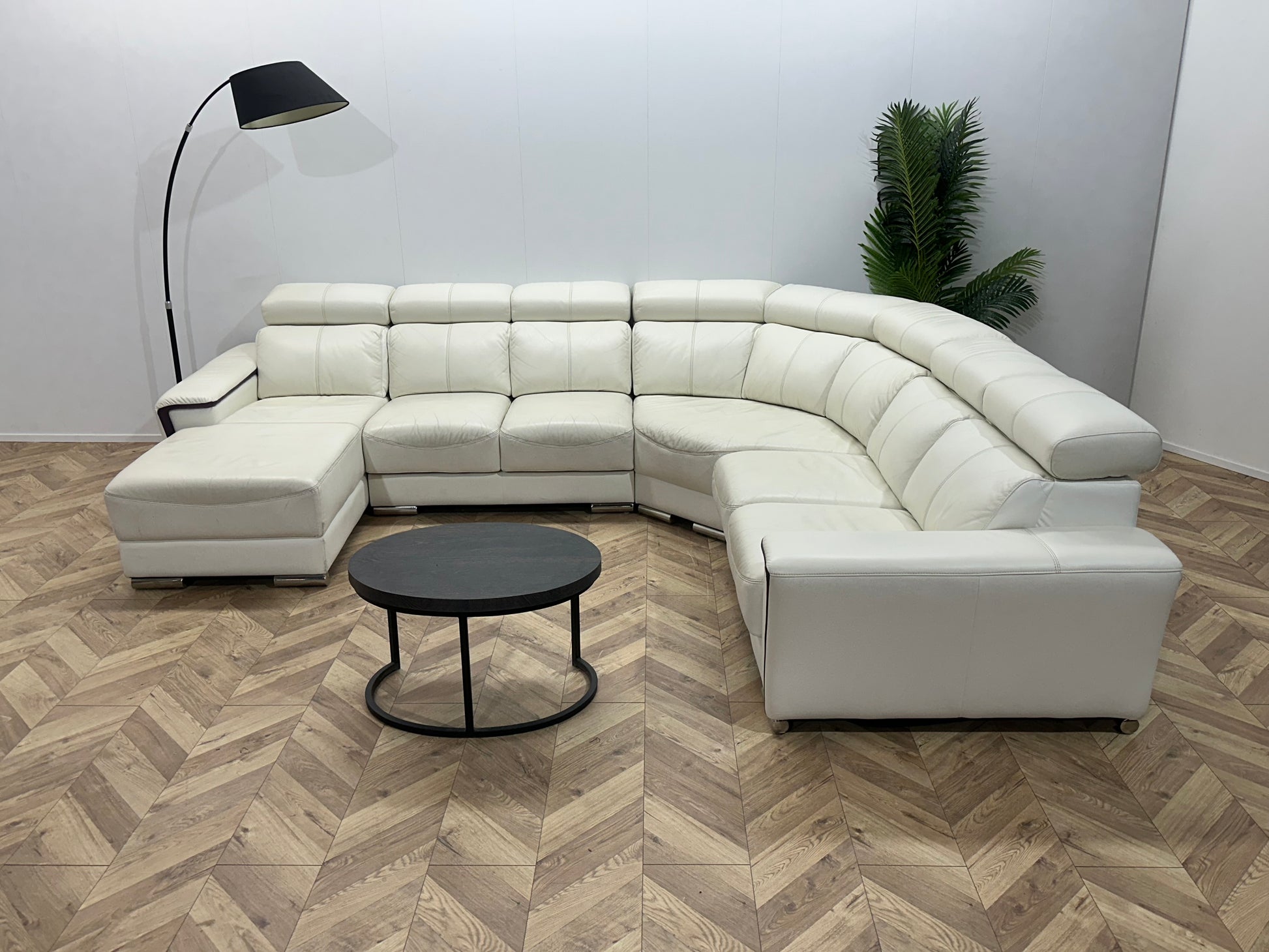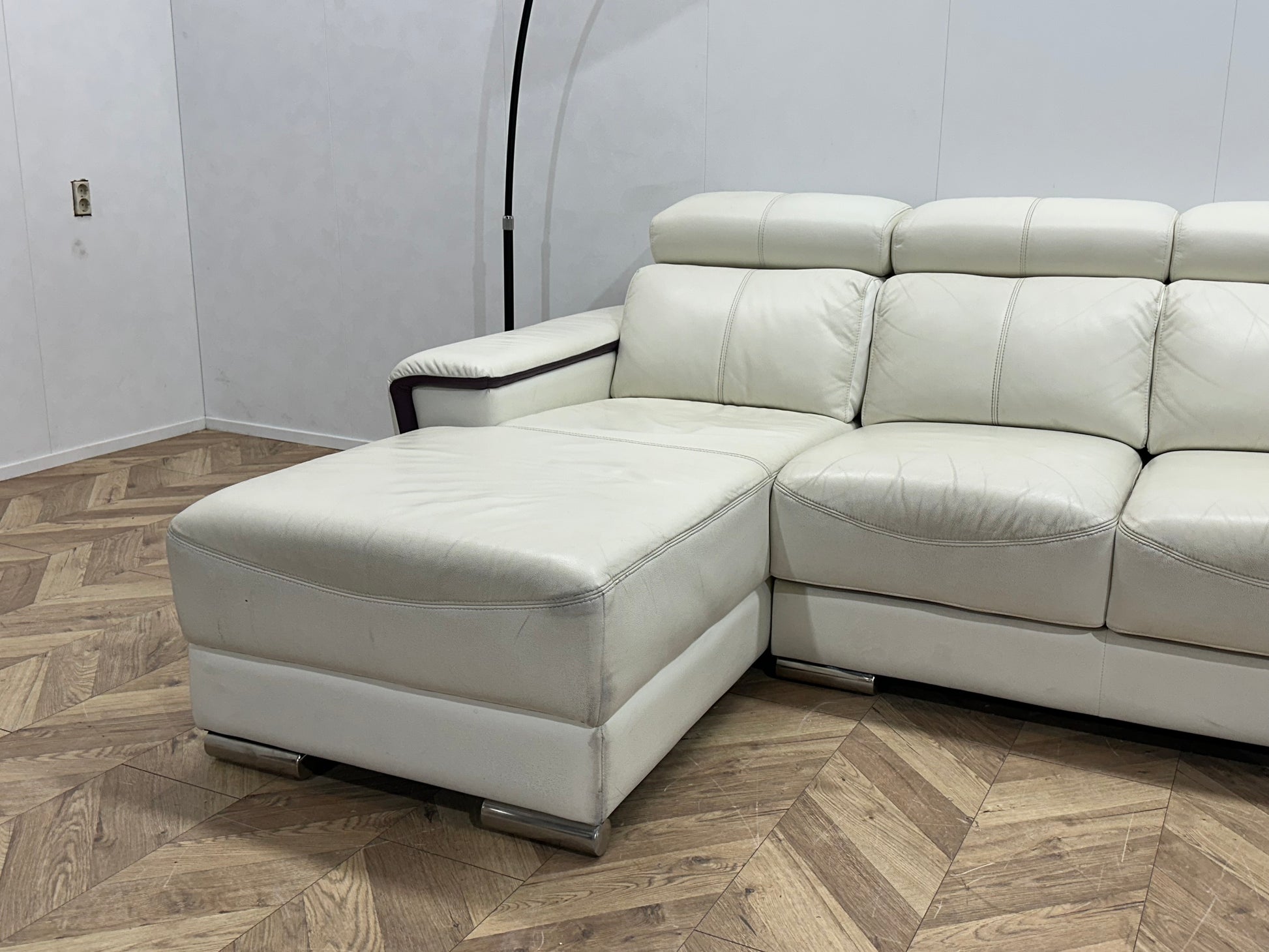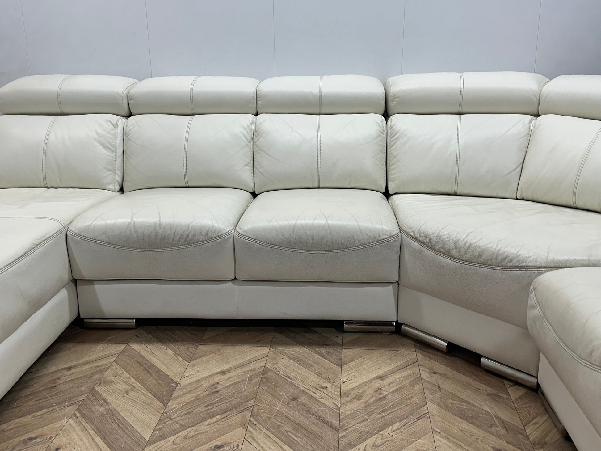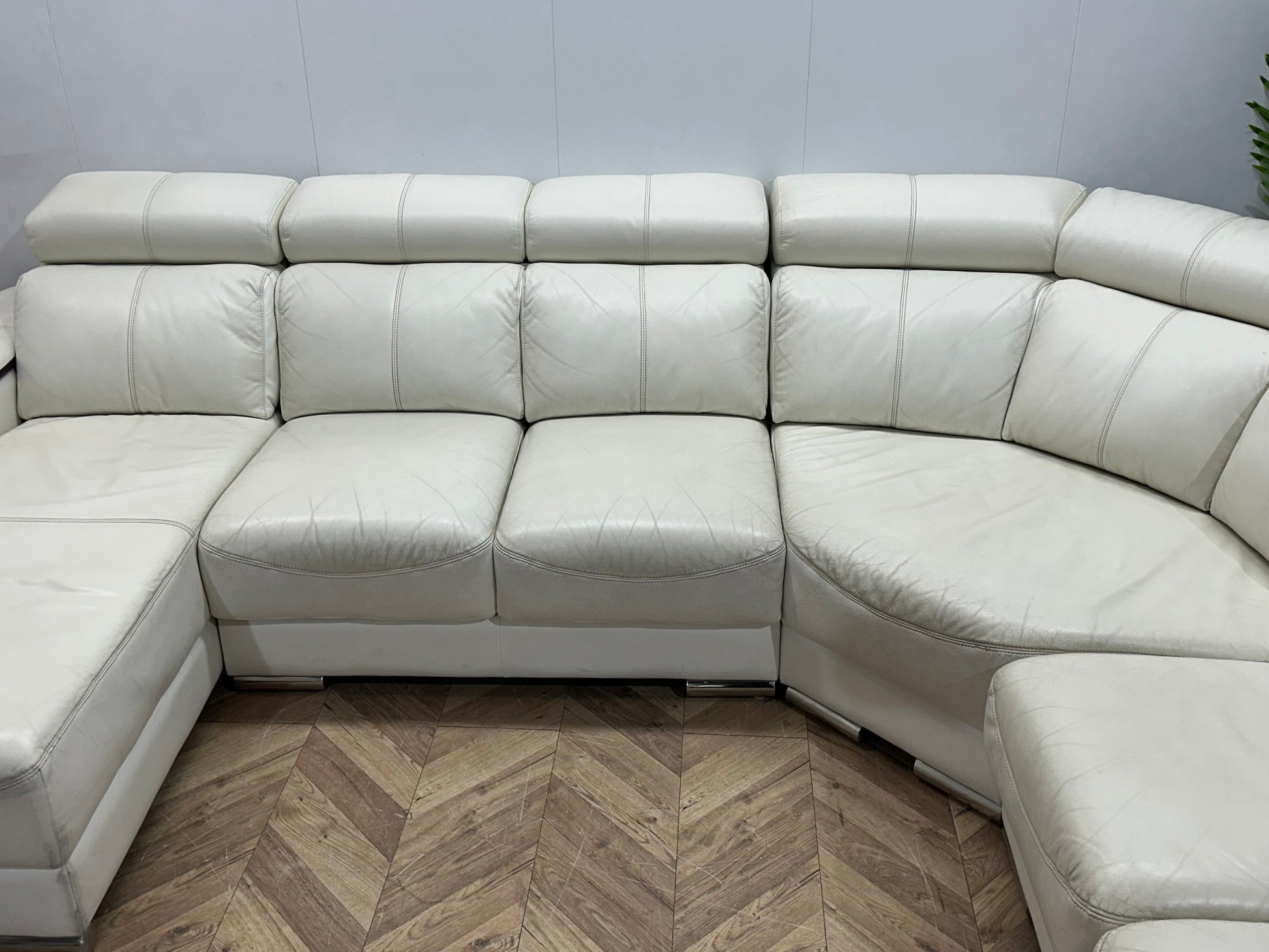 Witte Echt Lederen U Bank ~ Verstelbare Hoofdsteunen ~ Verschuifbare Zittingen