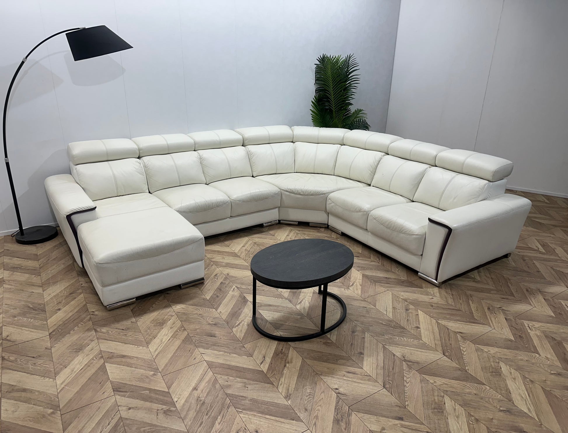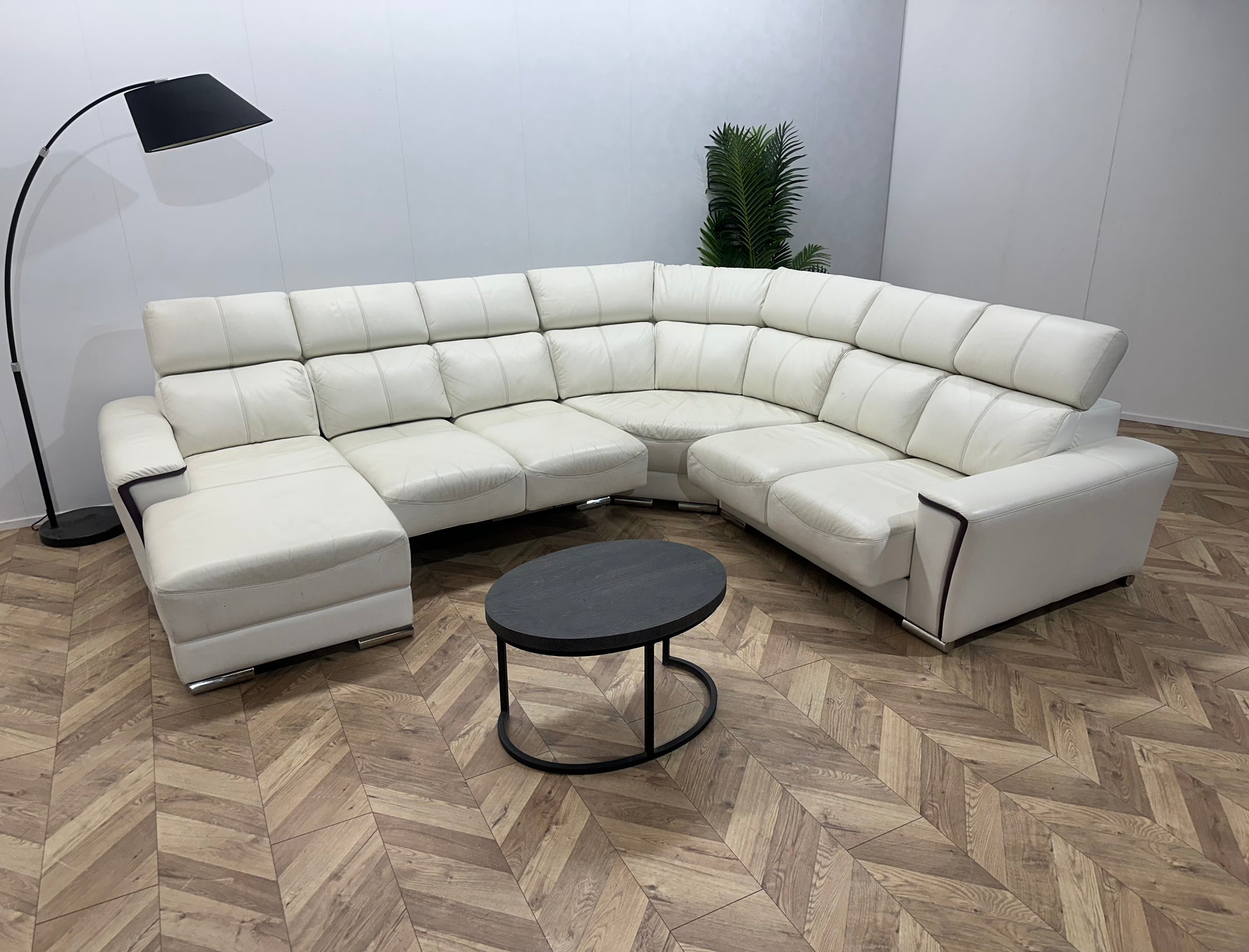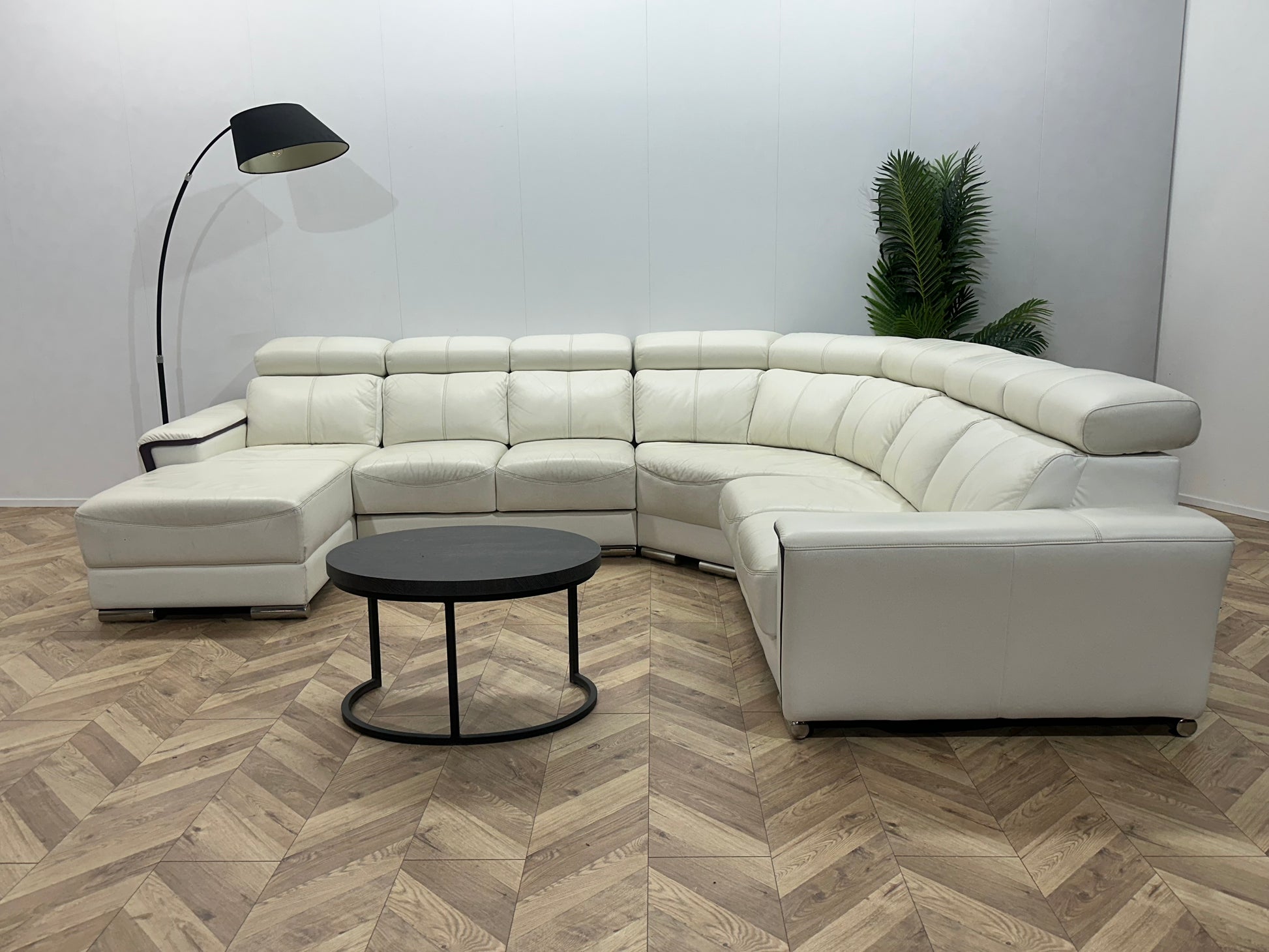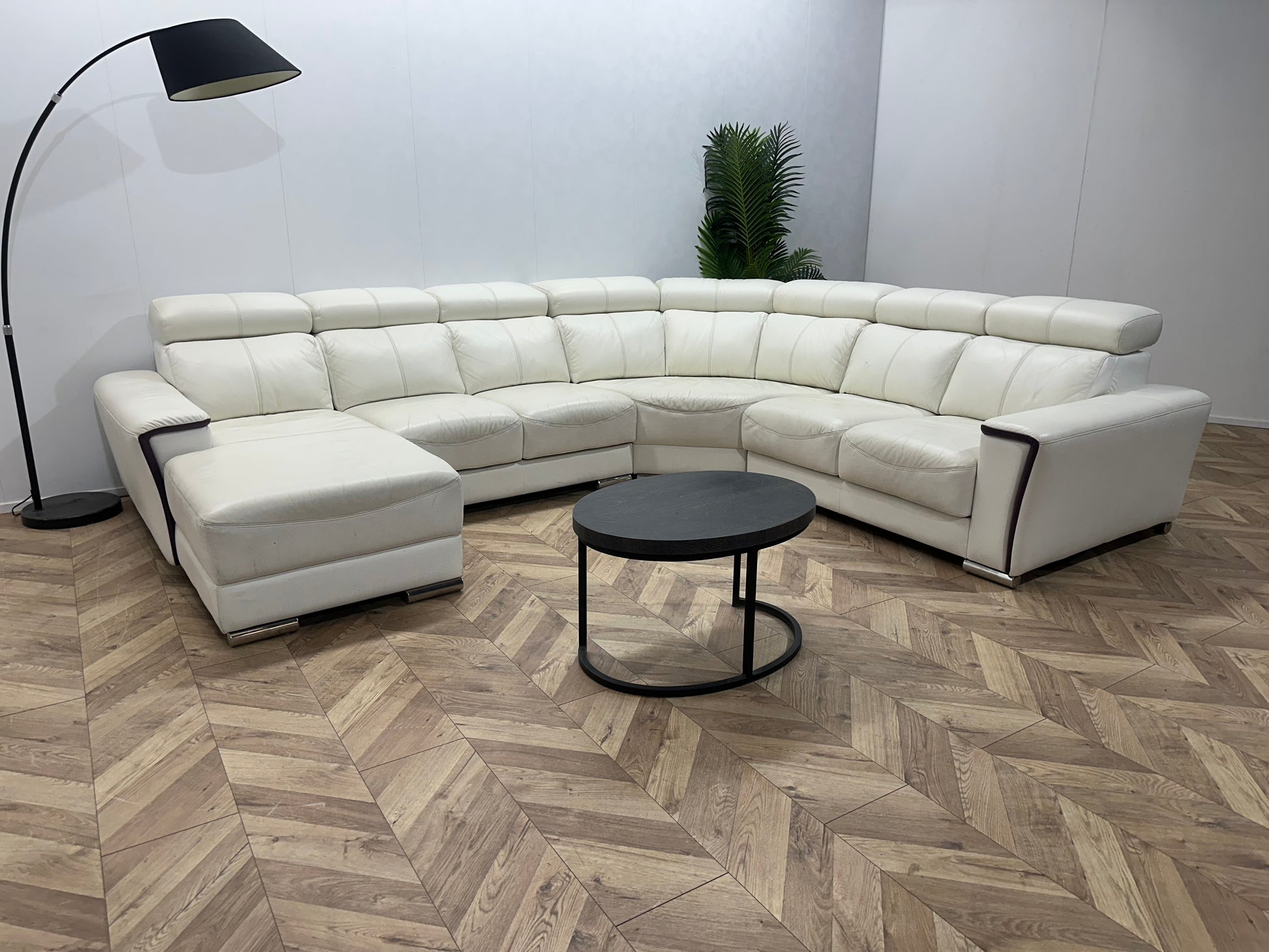 Witte Echt Lederen U Bank ~ Verstelbare Hoofdsteunen ~ Verschuifbare Zittingen