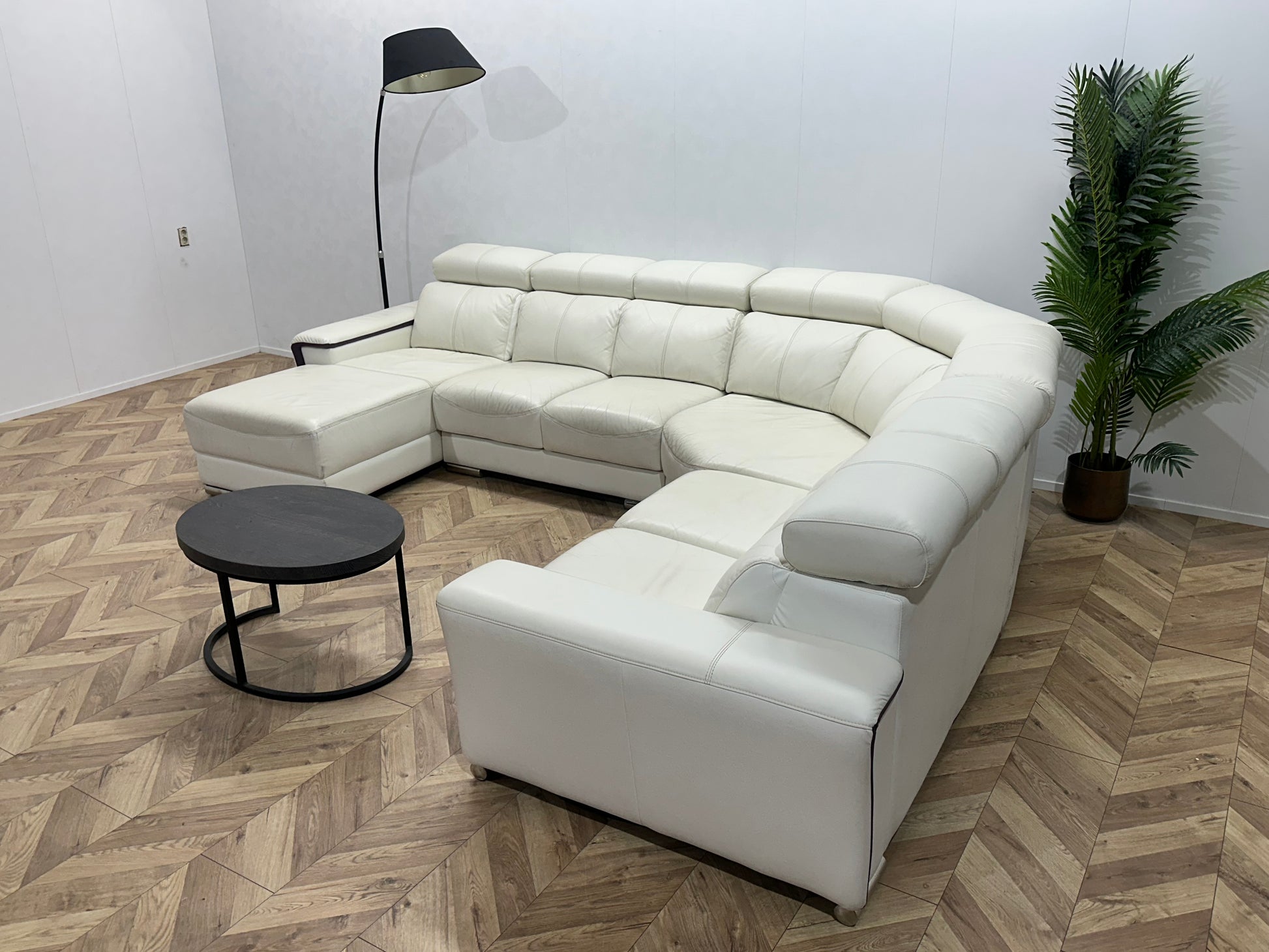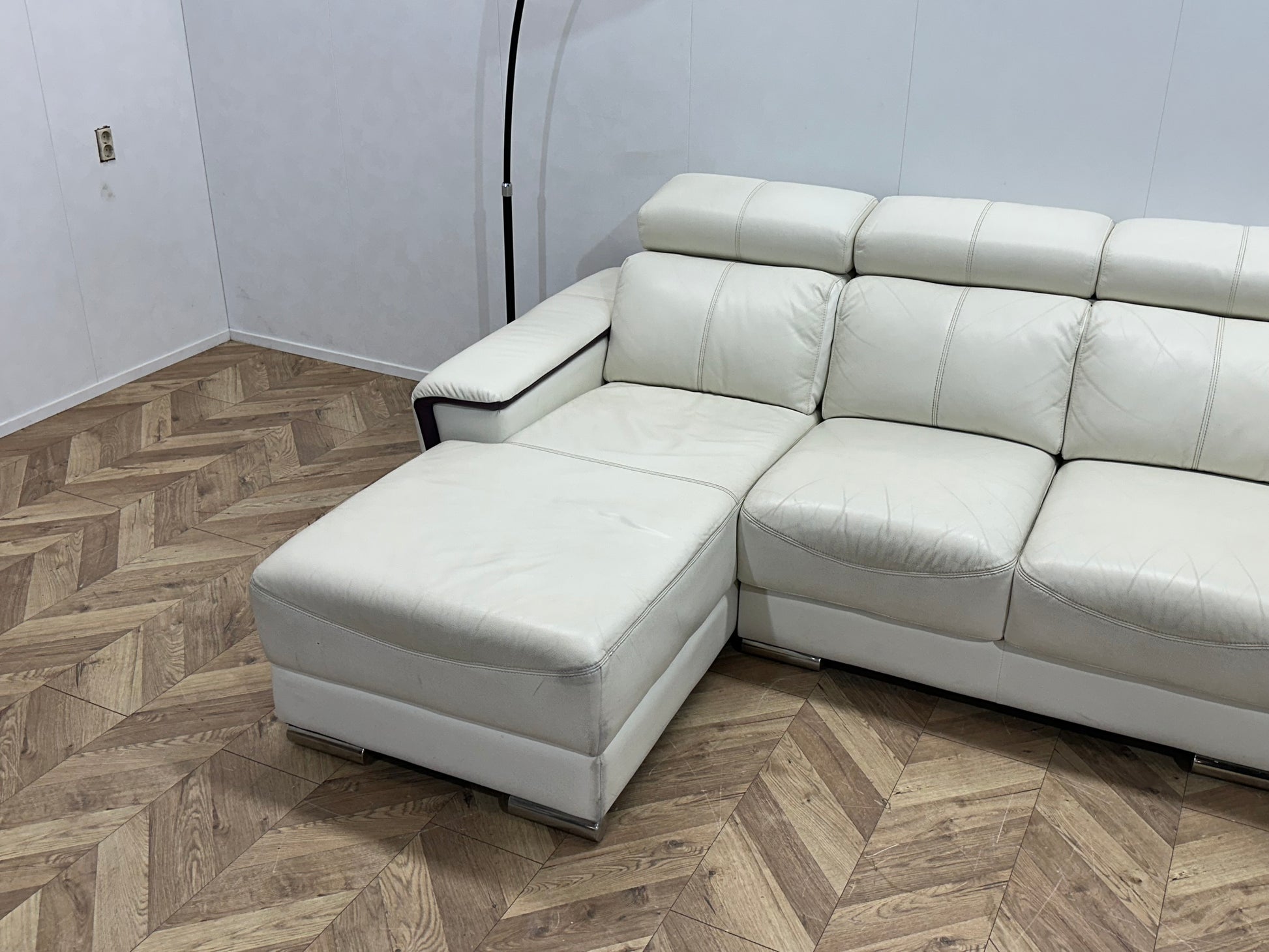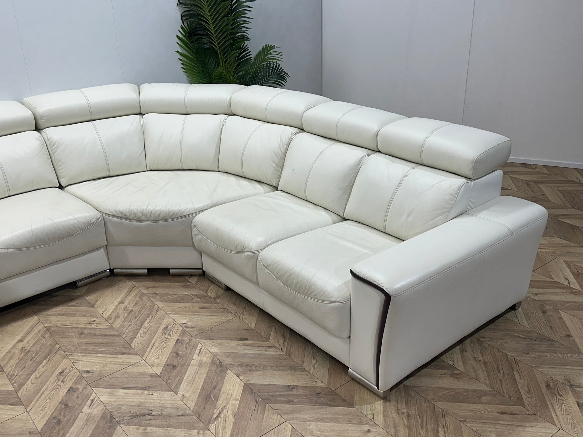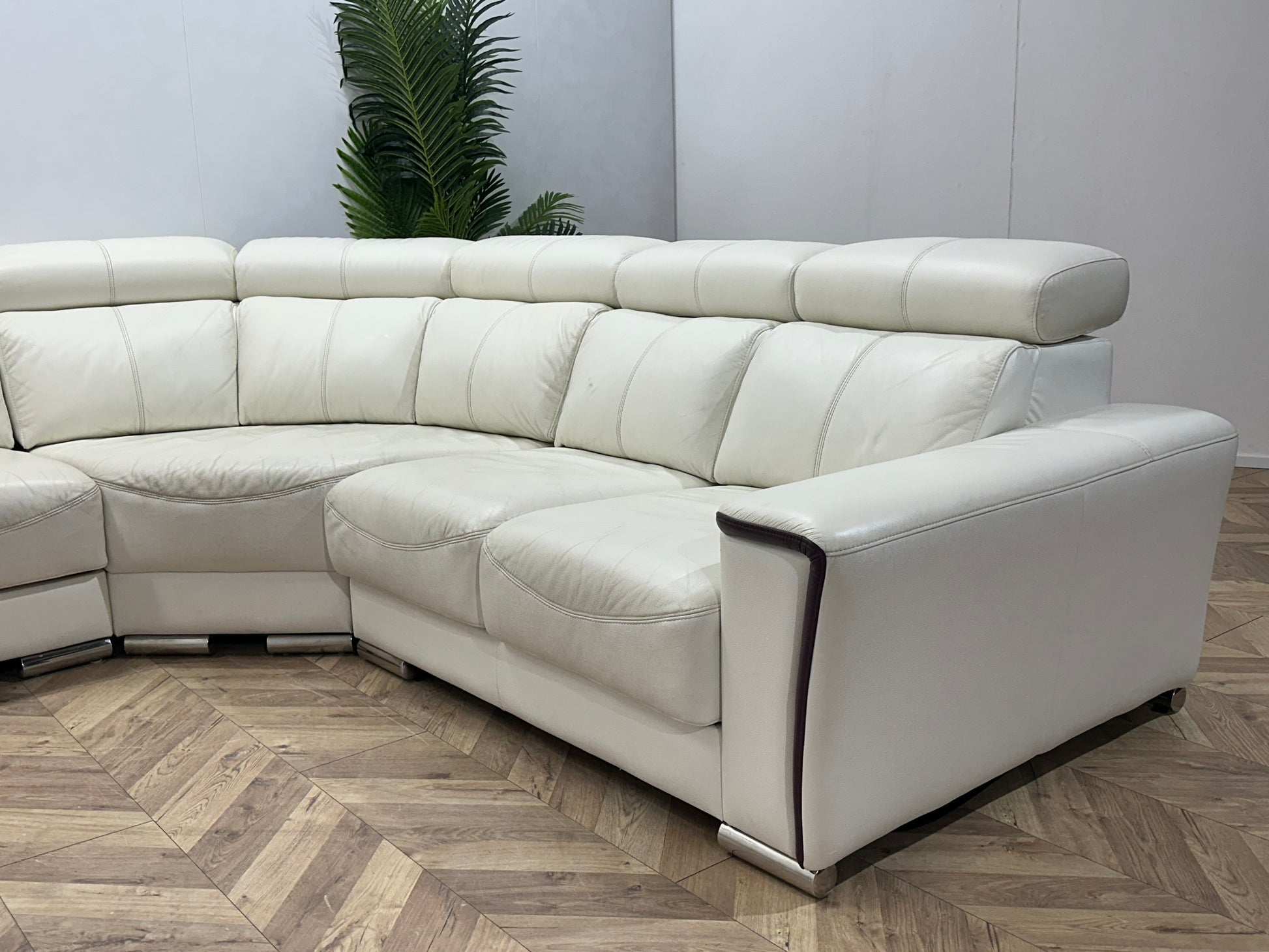 Witte Echt Lederen U Bank ~ Verstelbare Hoofdsteunen ~ Verschuifbare Zittingen