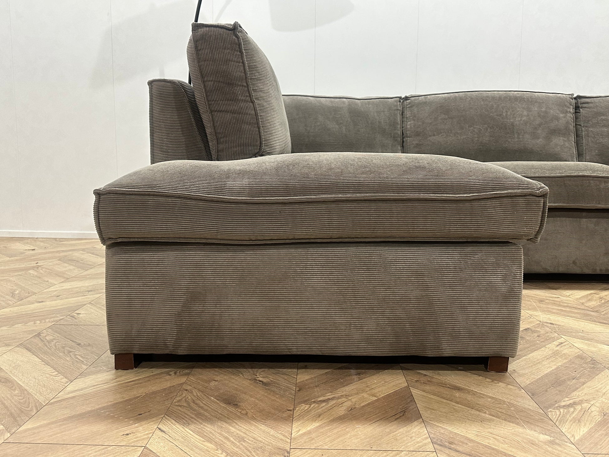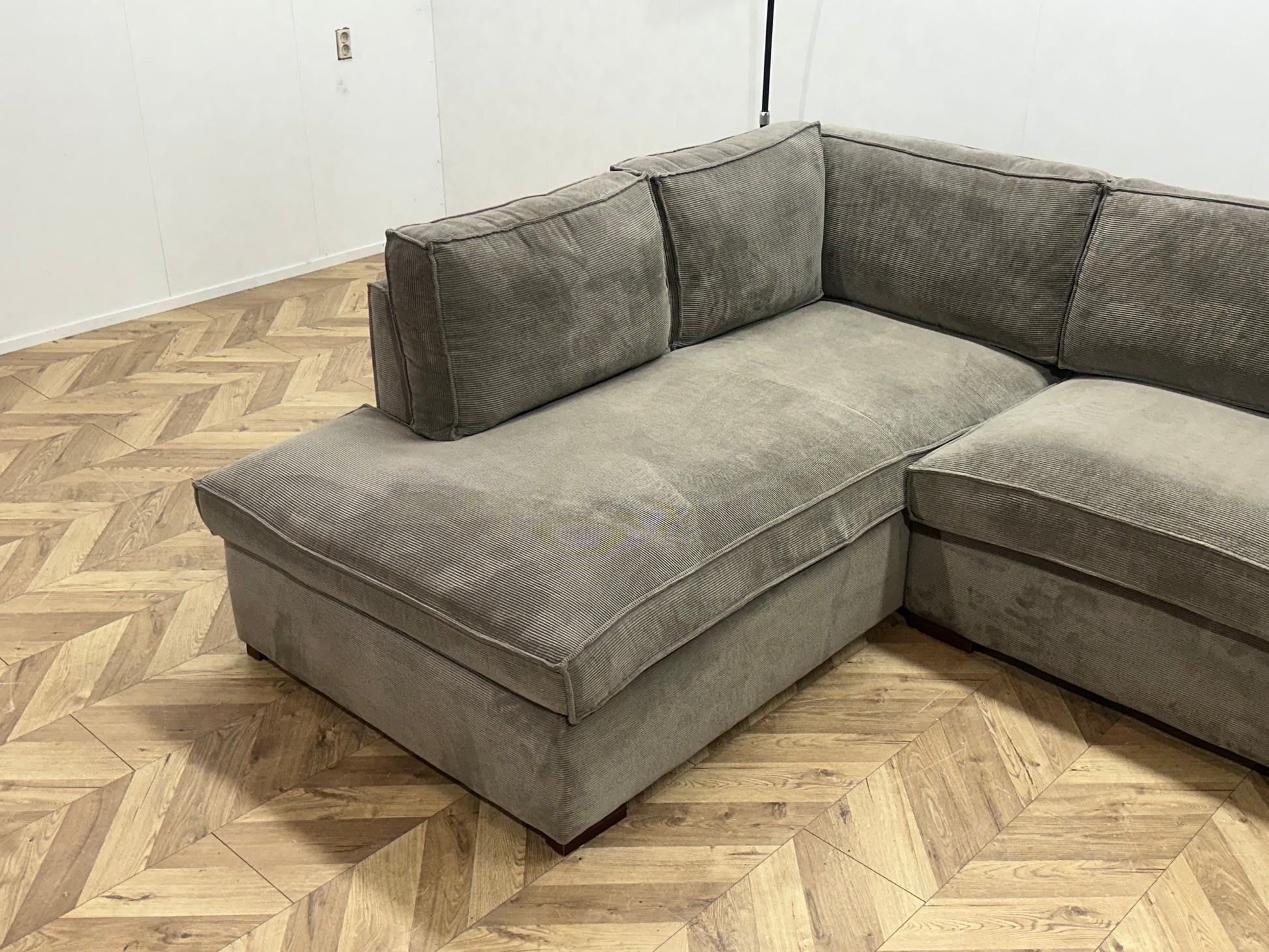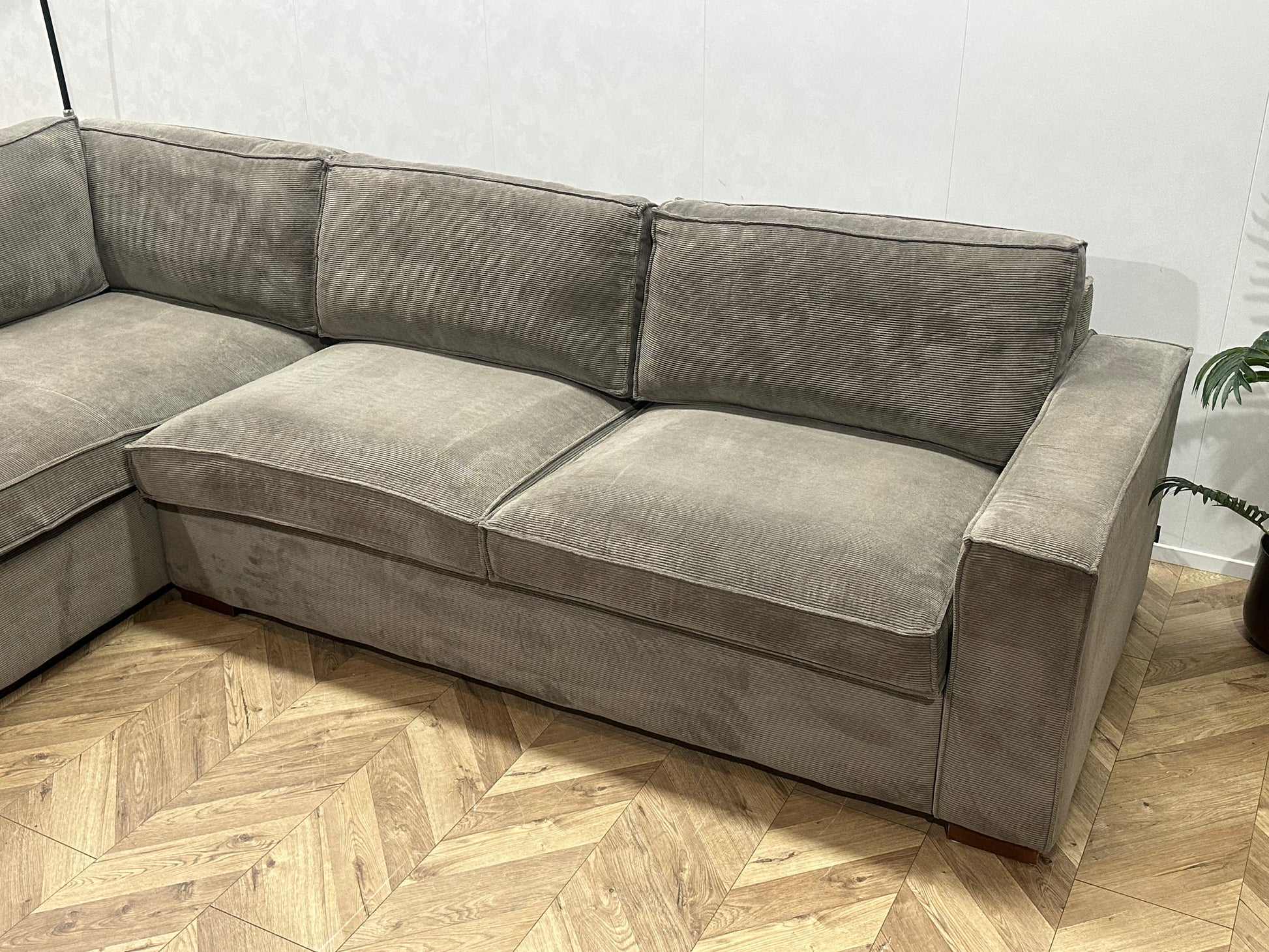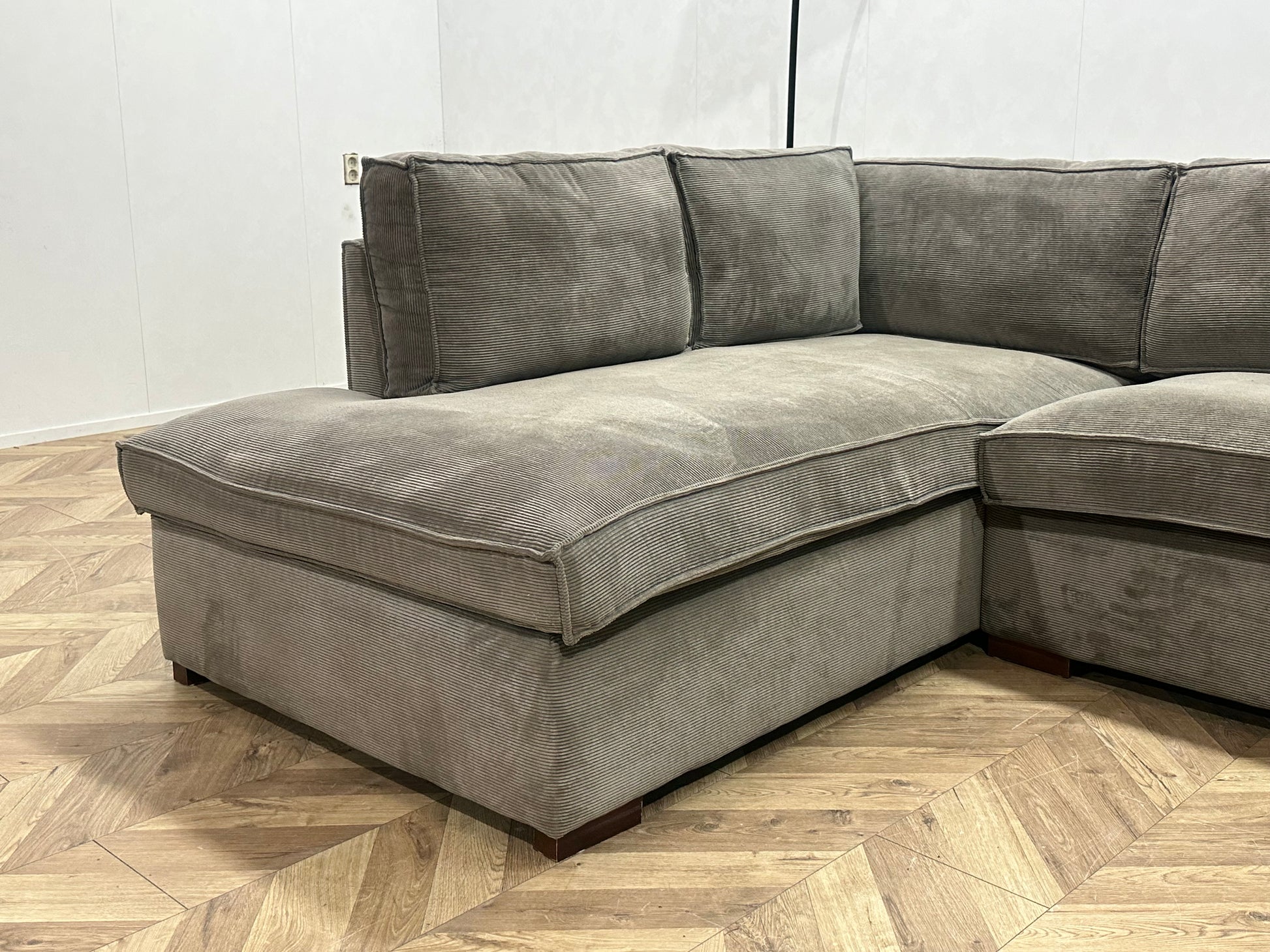 Woood Grijze Ribstof Hoekbank ~ Losse Kussens Met Afneembare Hoezen
