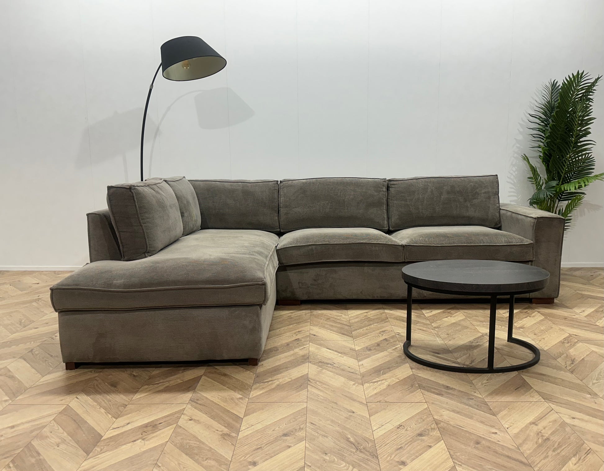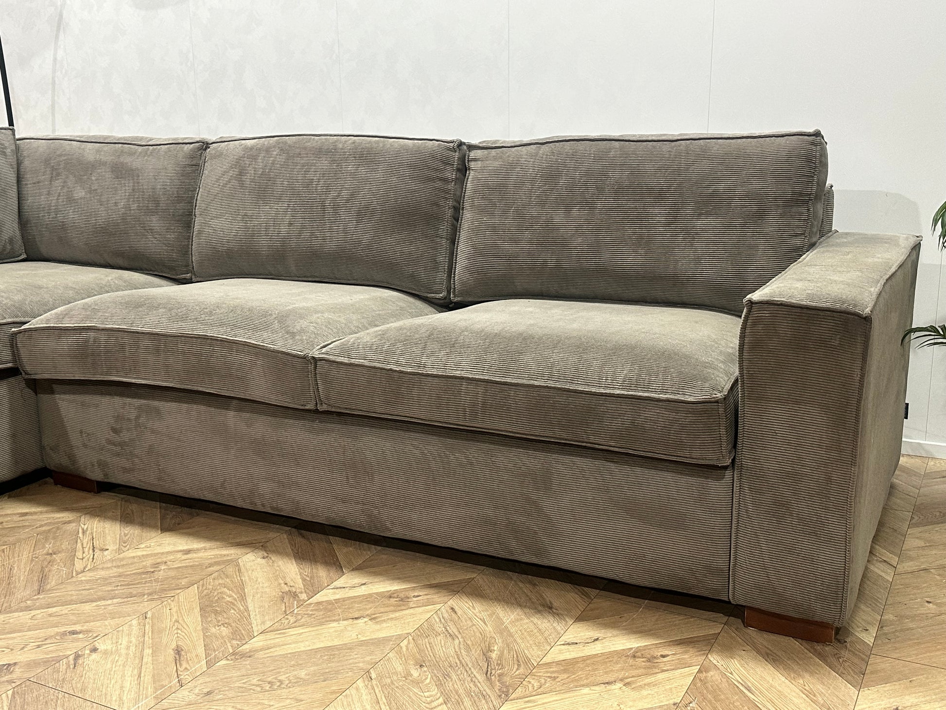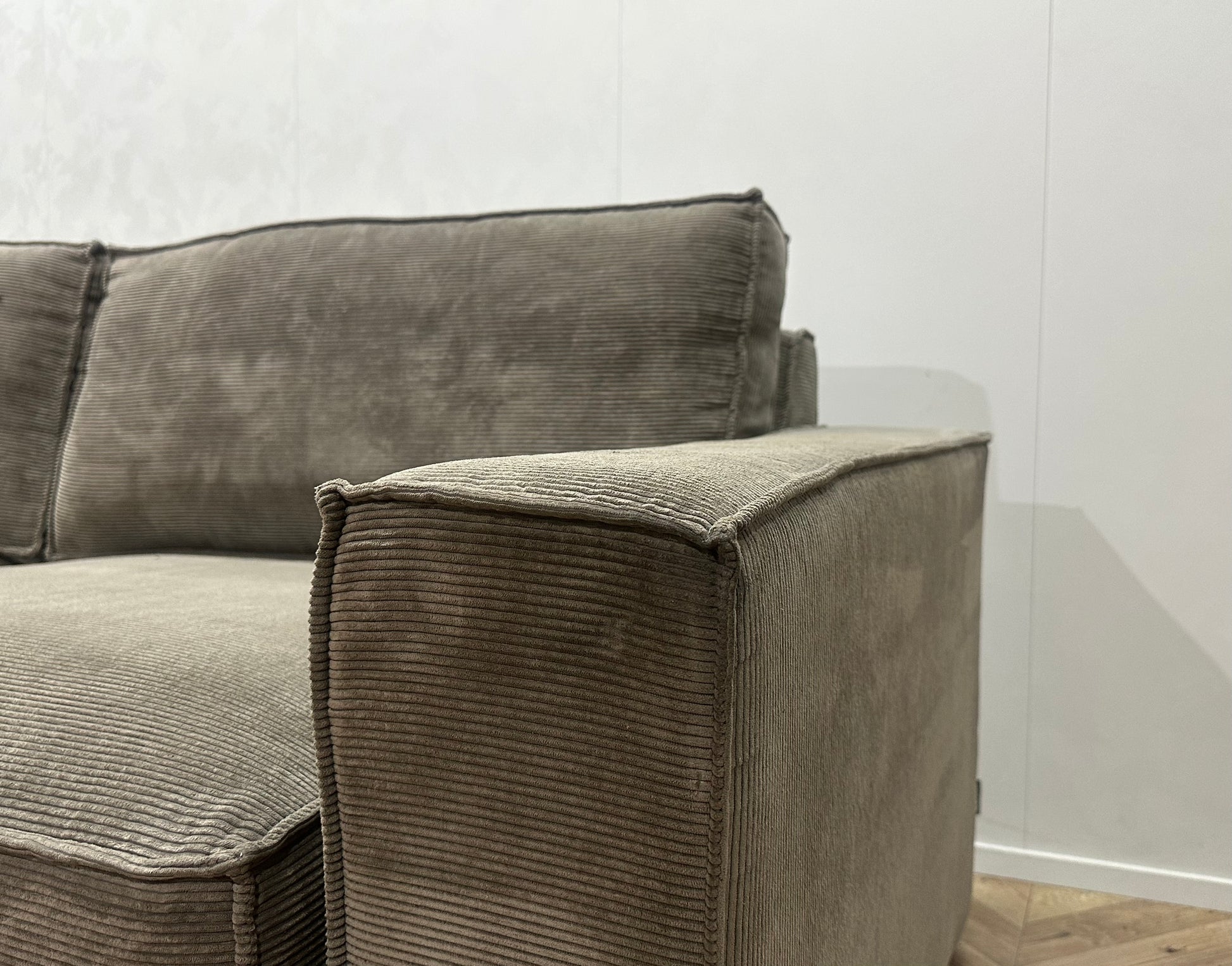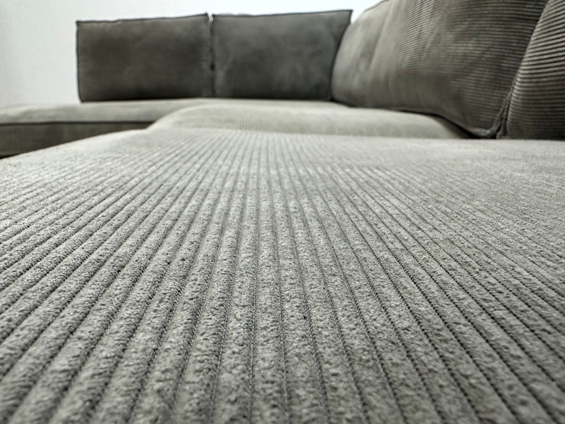 Woood Grijze Ribstof Hoekbank ~ Losse Kussens Met Afneembare Hoezen