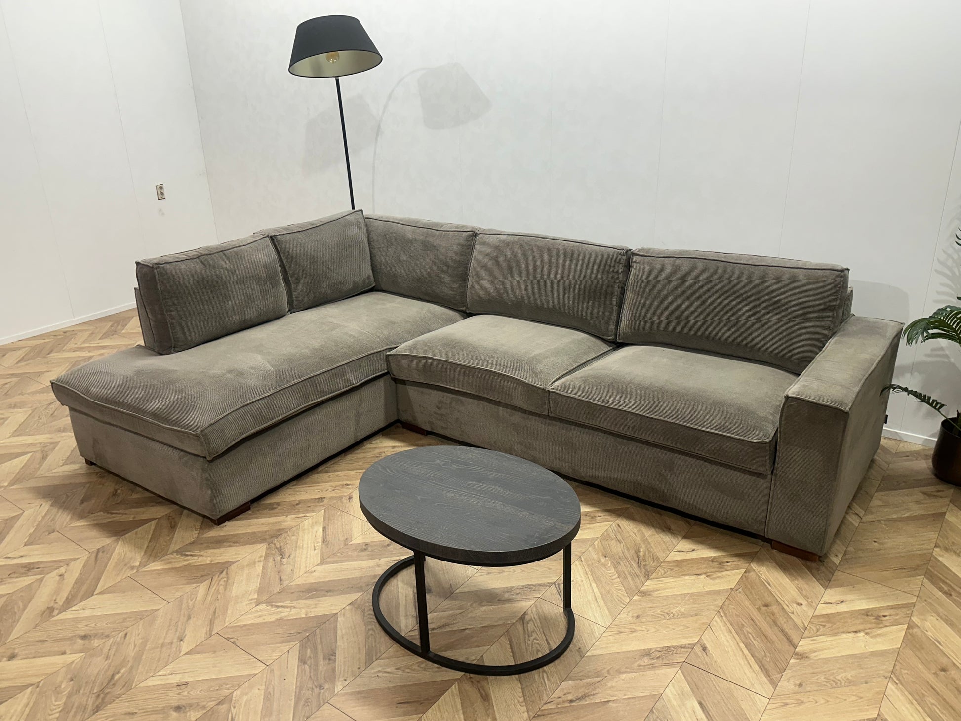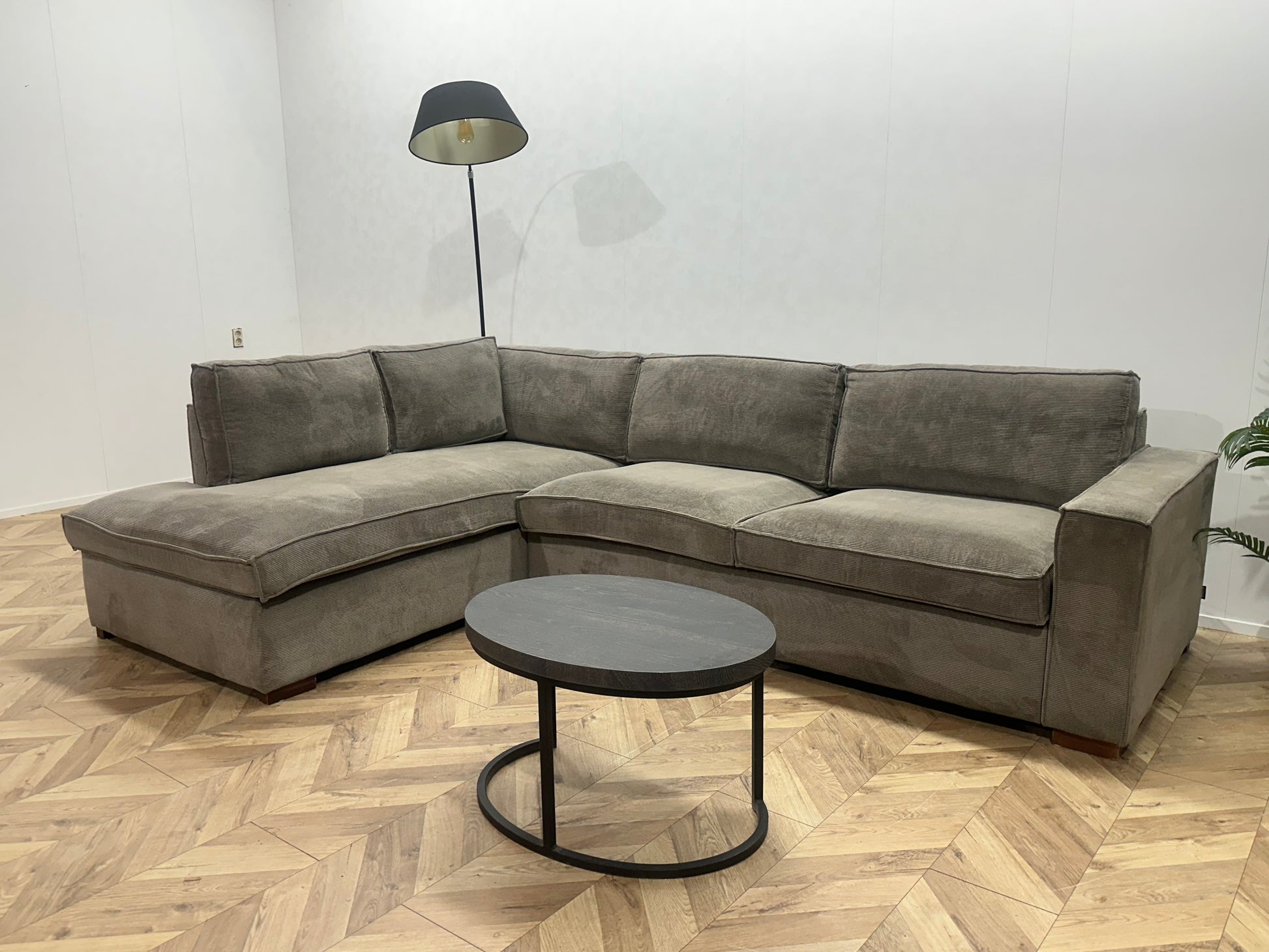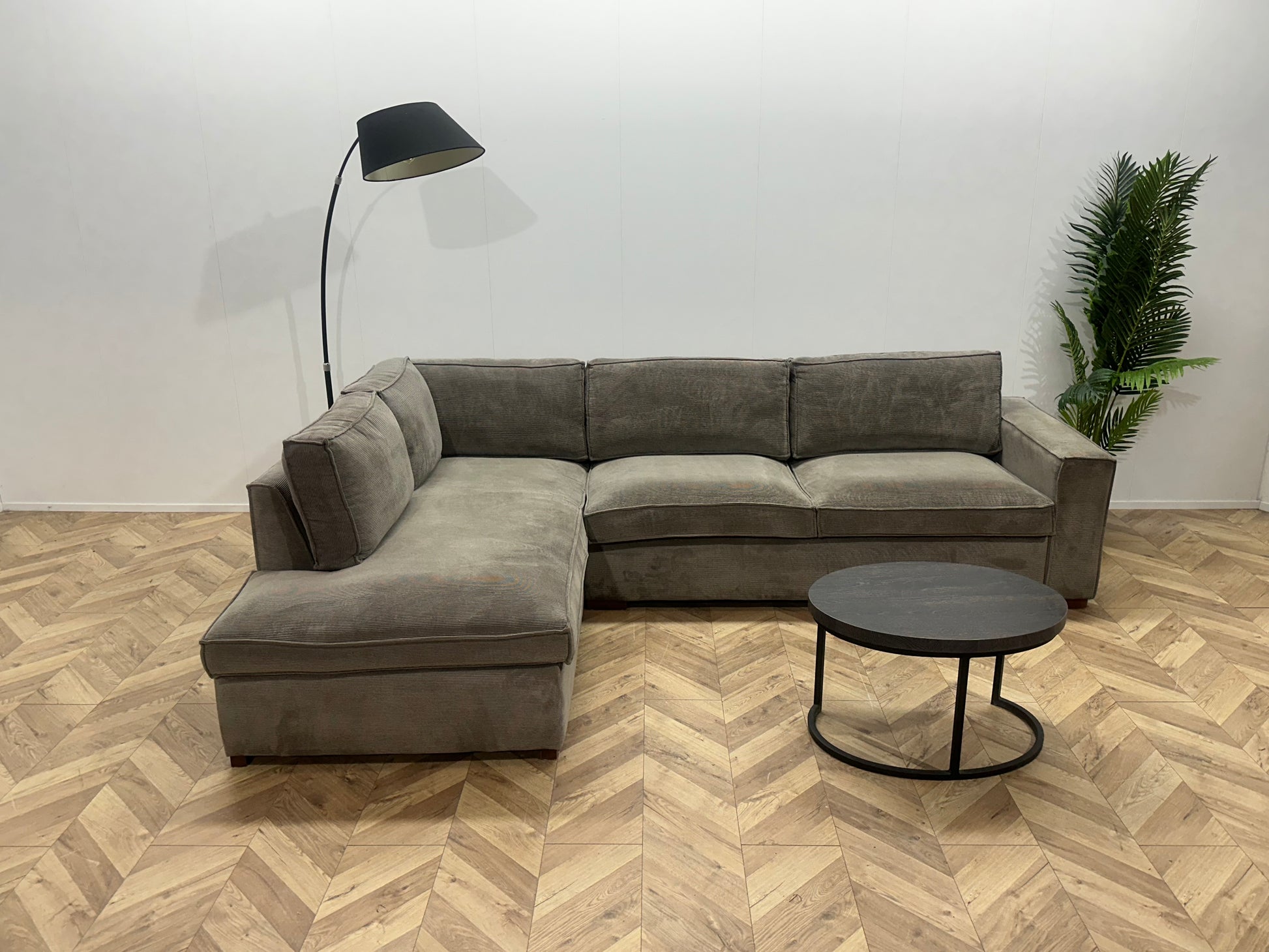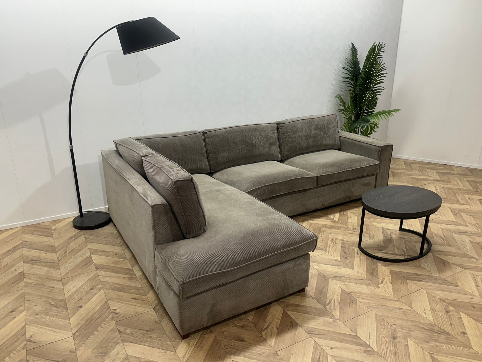 Woood Grijze Ribstof Hoekbank ~ Losse Kussens Met Afneembare Hoezen