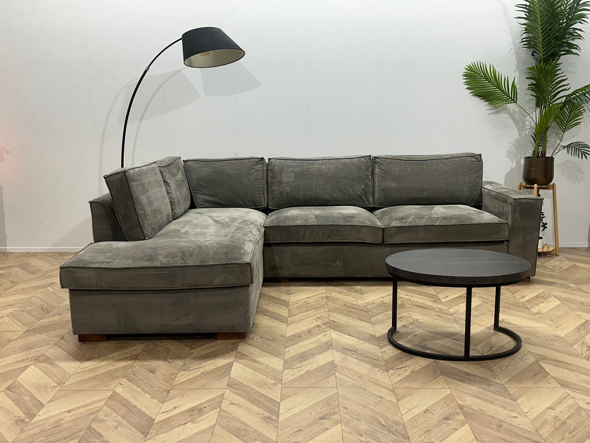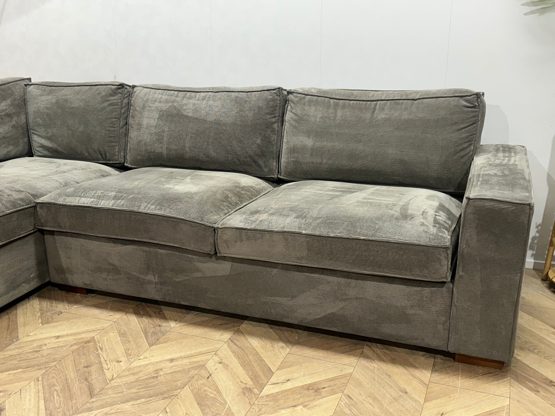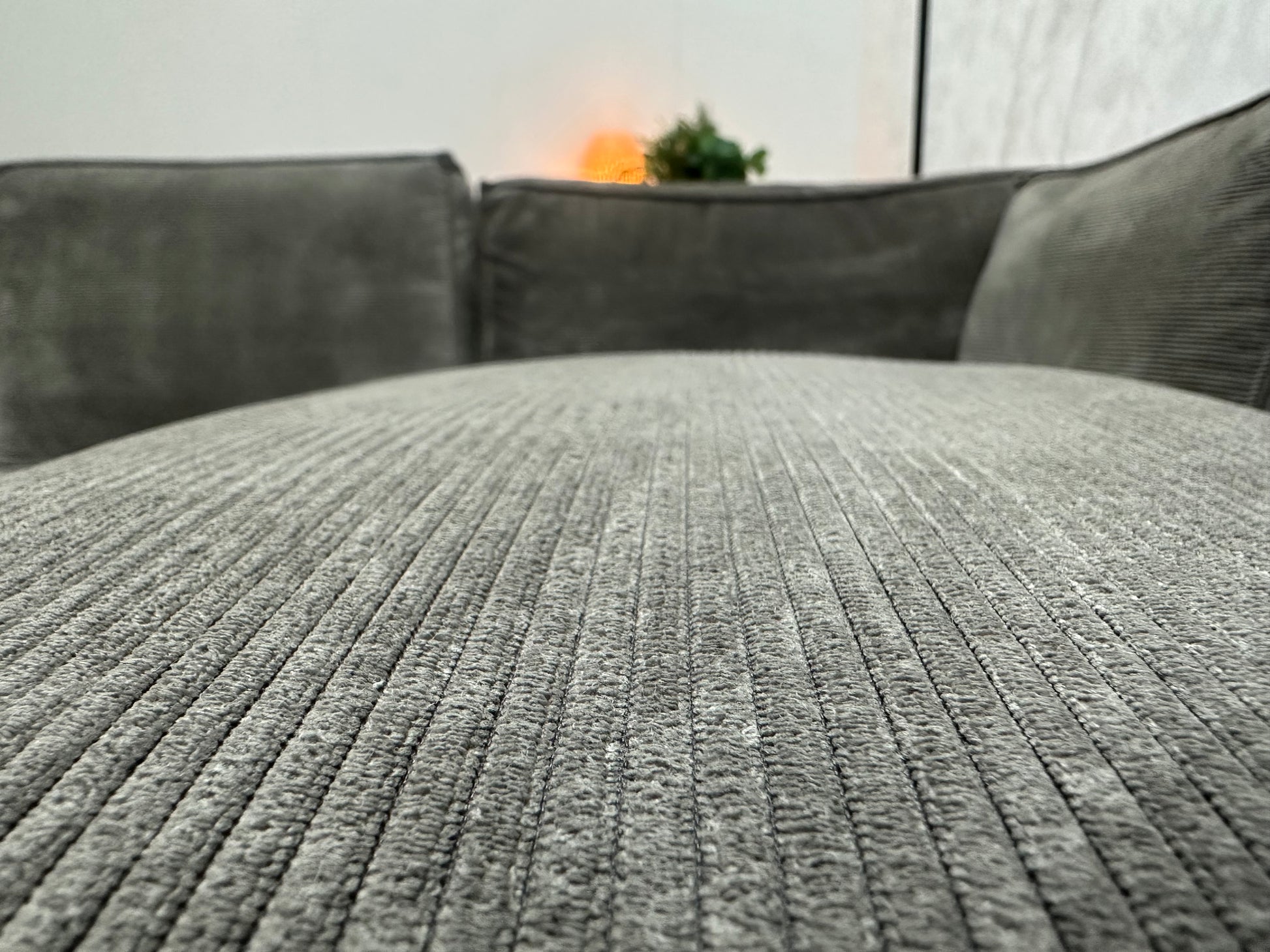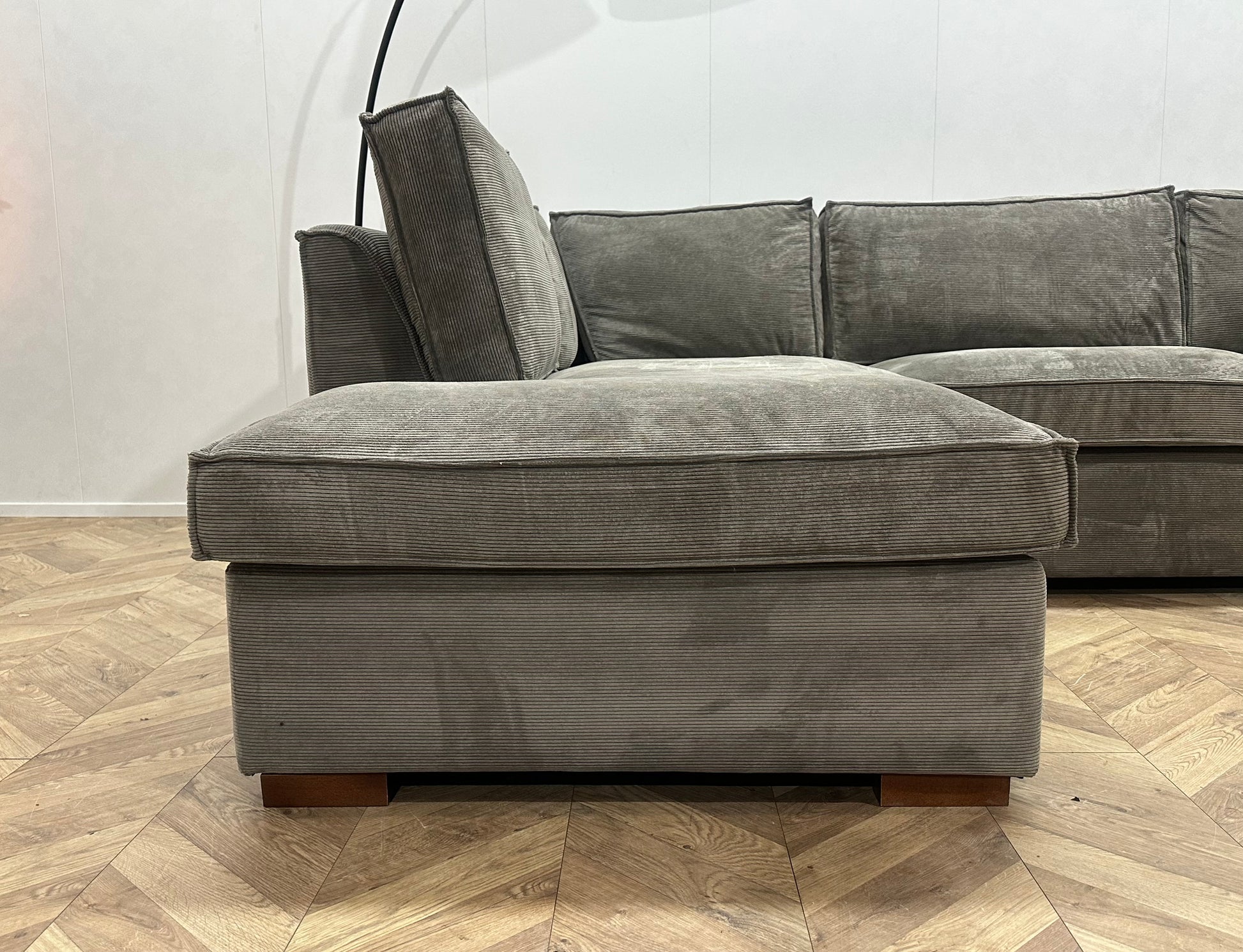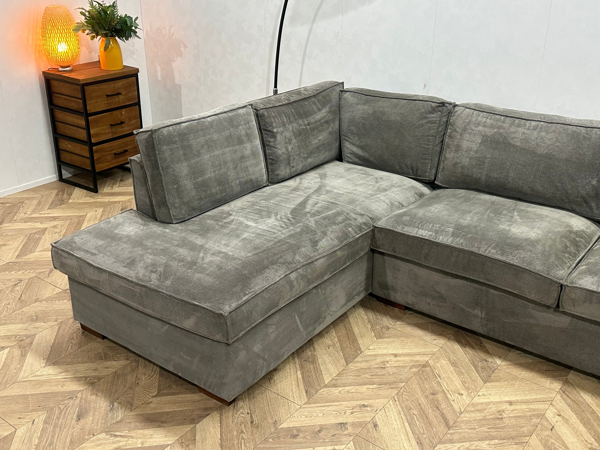 Woood Grijze Ribstof Hoekbank ~ Losse Rugkussens Met Afneembare Hoezen