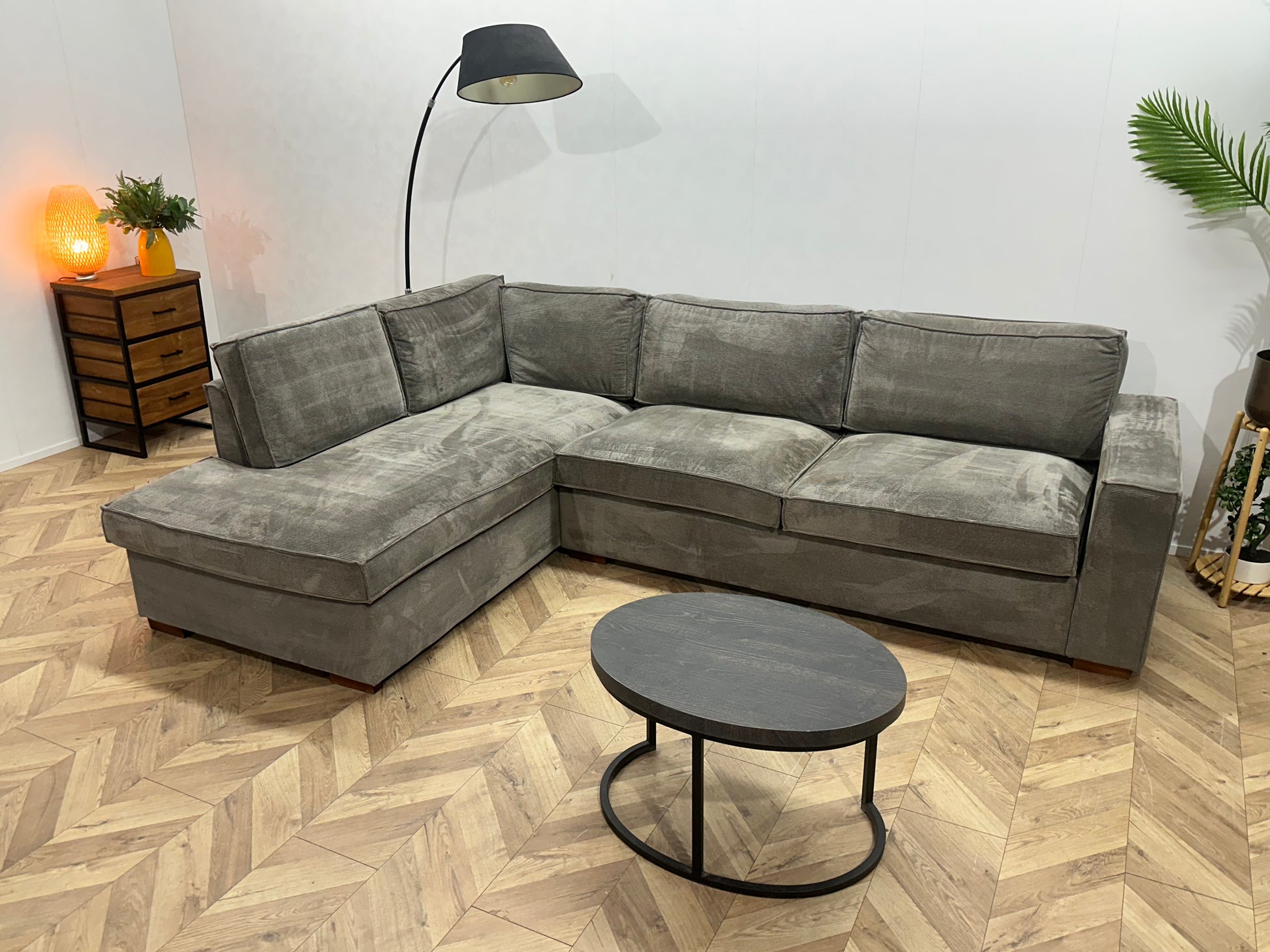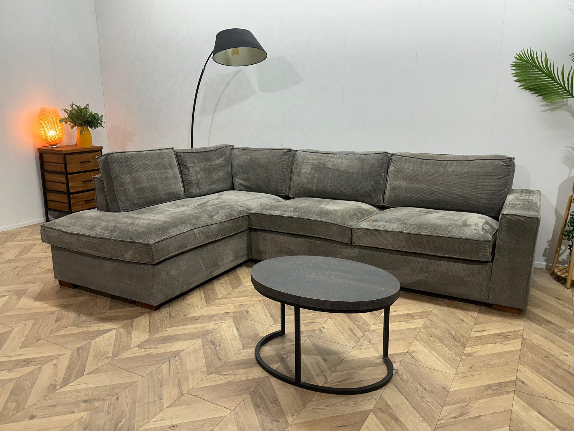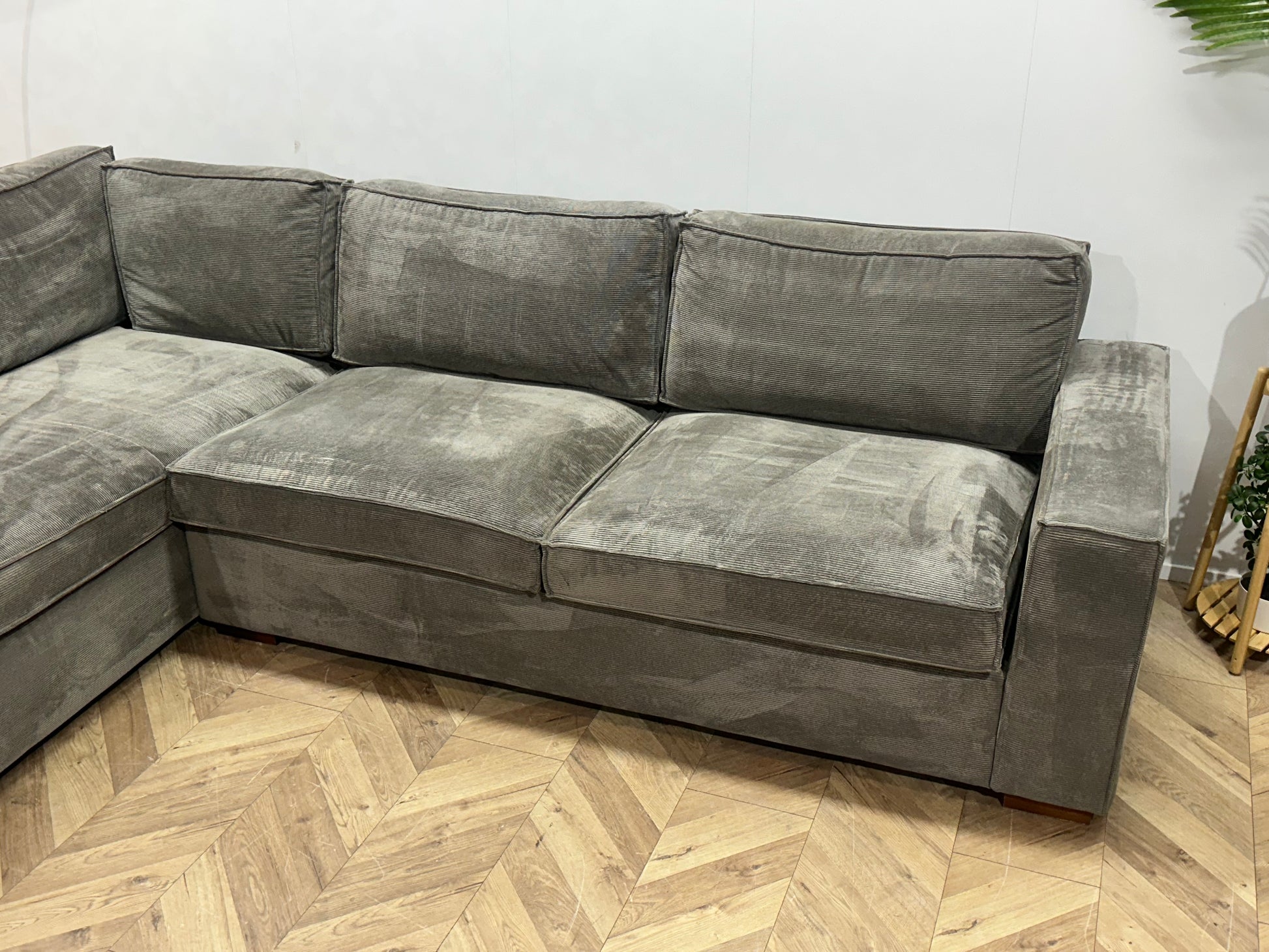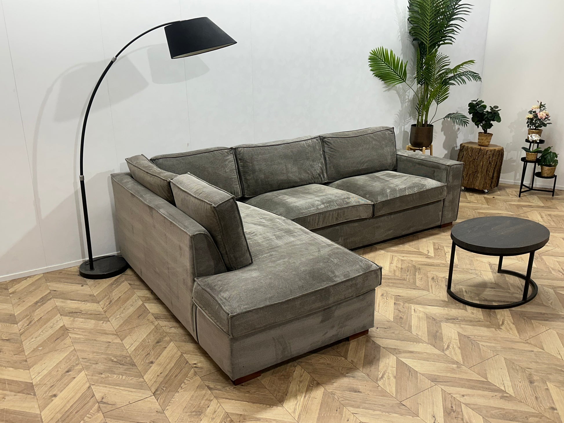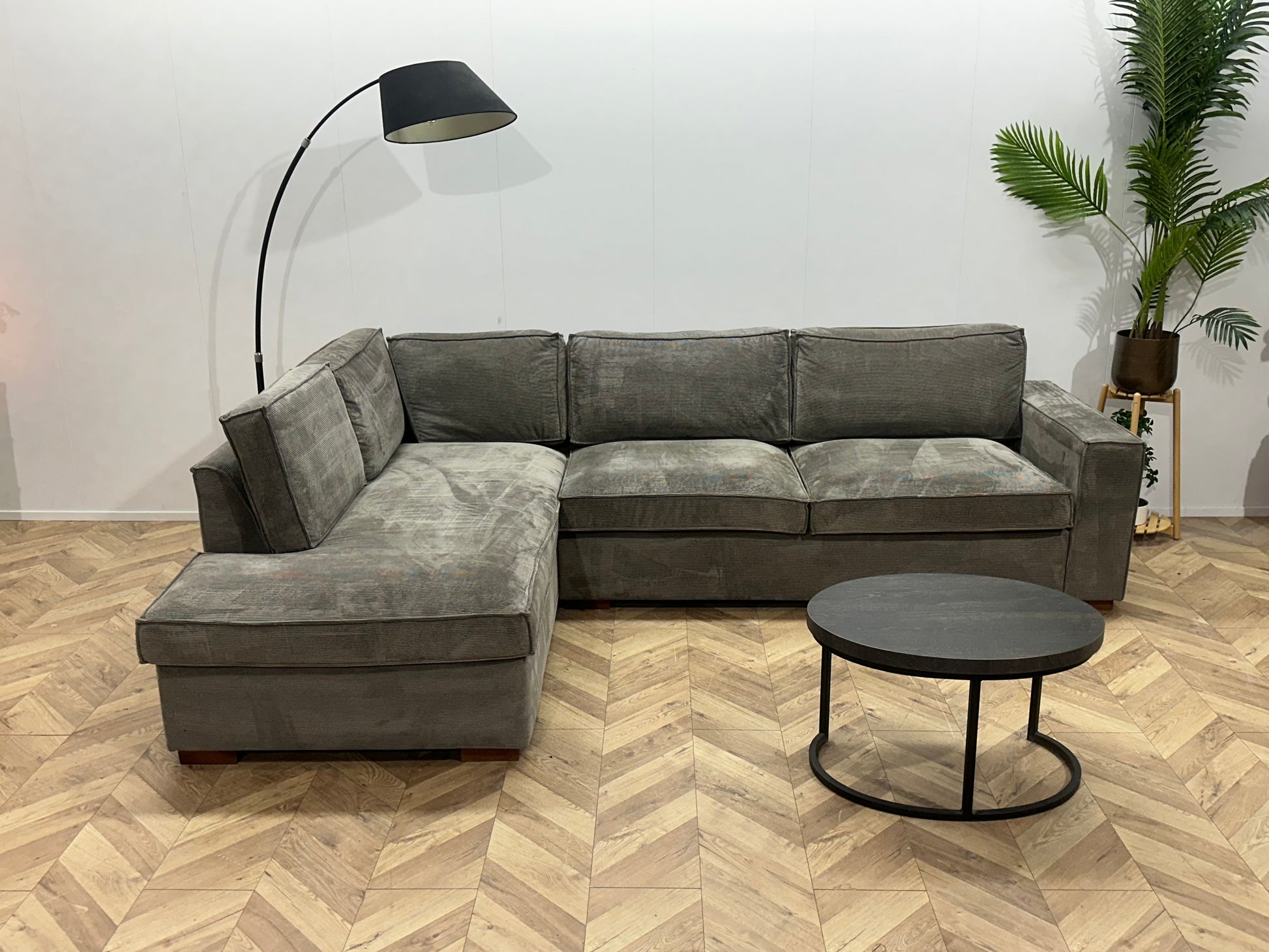 Woood Grijze Ribstof Hoekbank ~ Losse Rugkussens Met Afneembare Hoezen