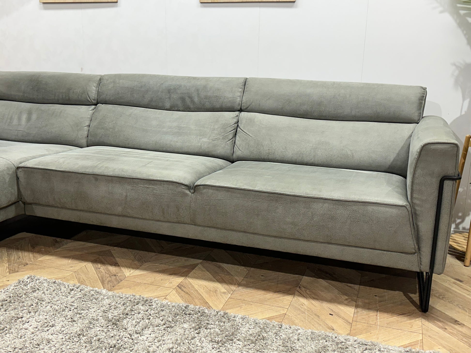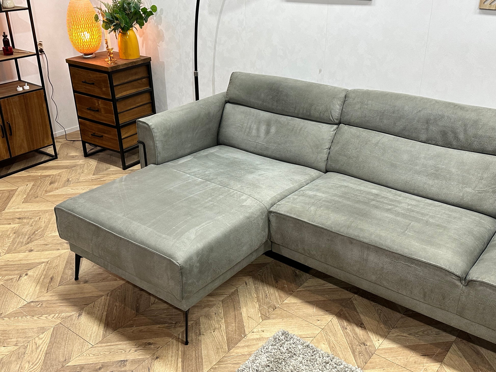 Xooon Grijze Suede Stoffen Hoekbank ~ Nieuwstaat