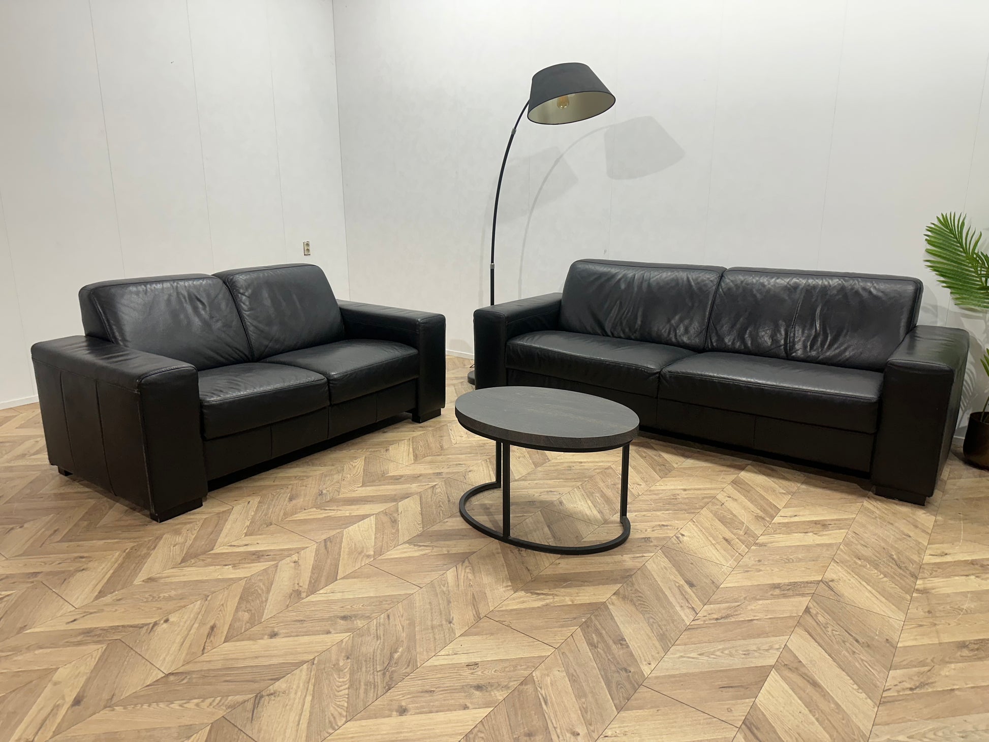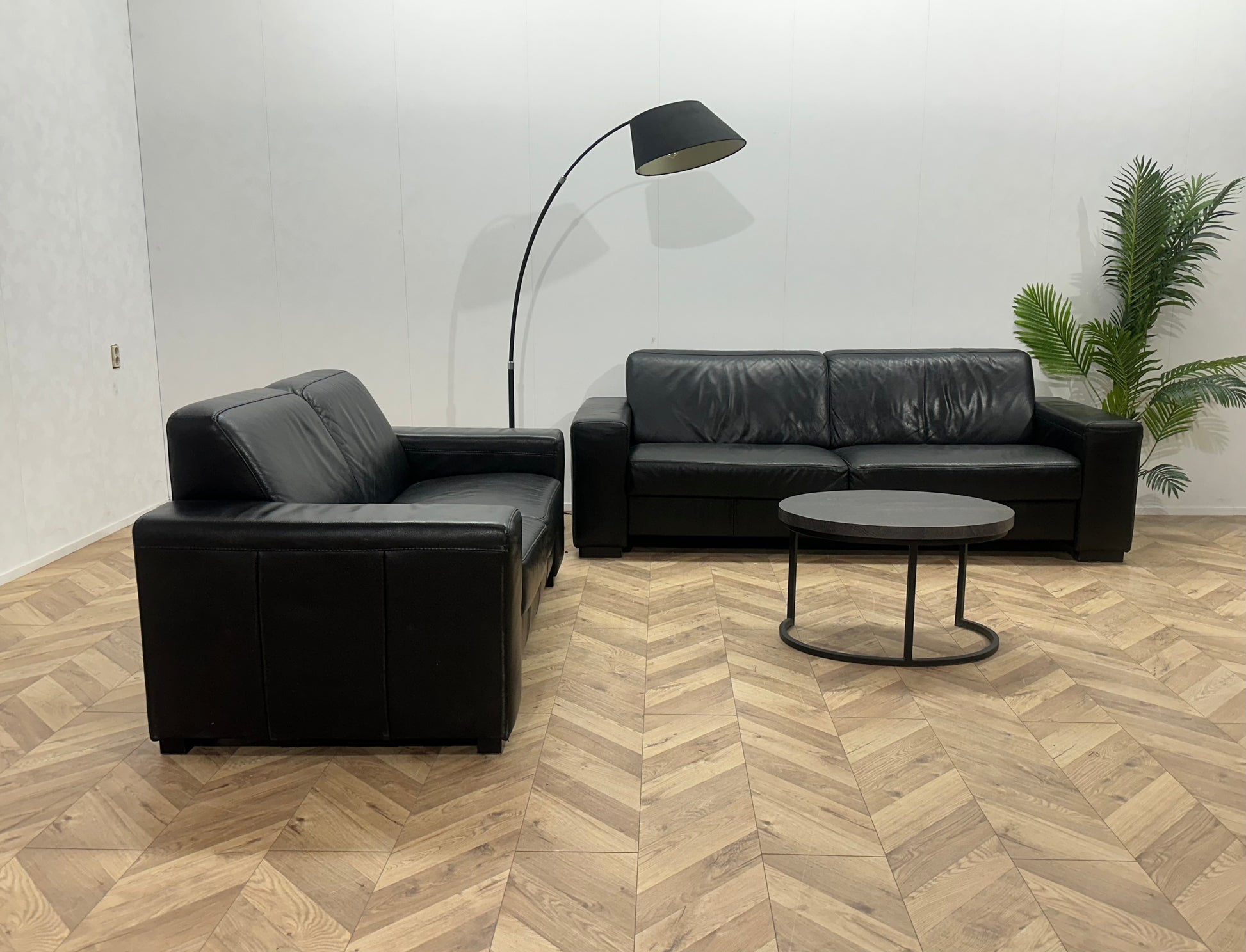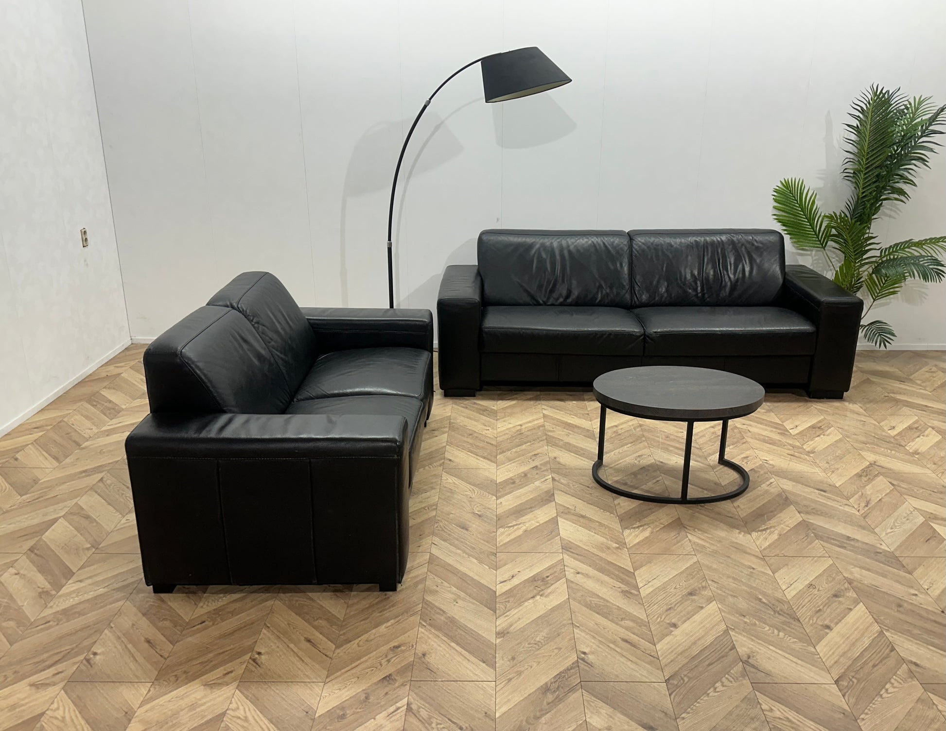 Zwart Echt Lederen Banken Set ~ Vaste Kussens