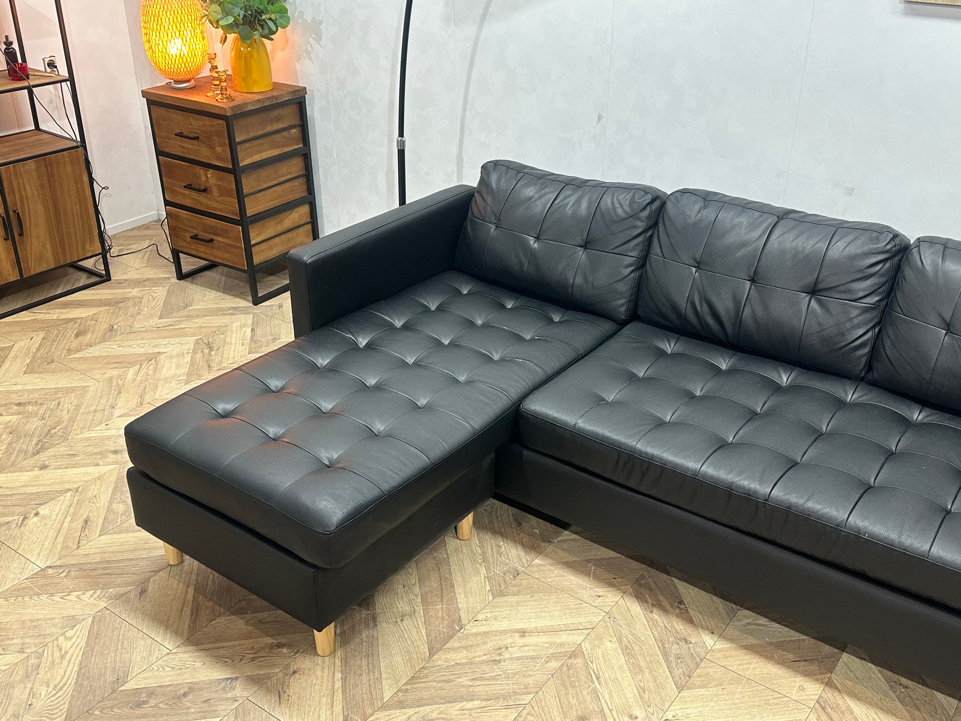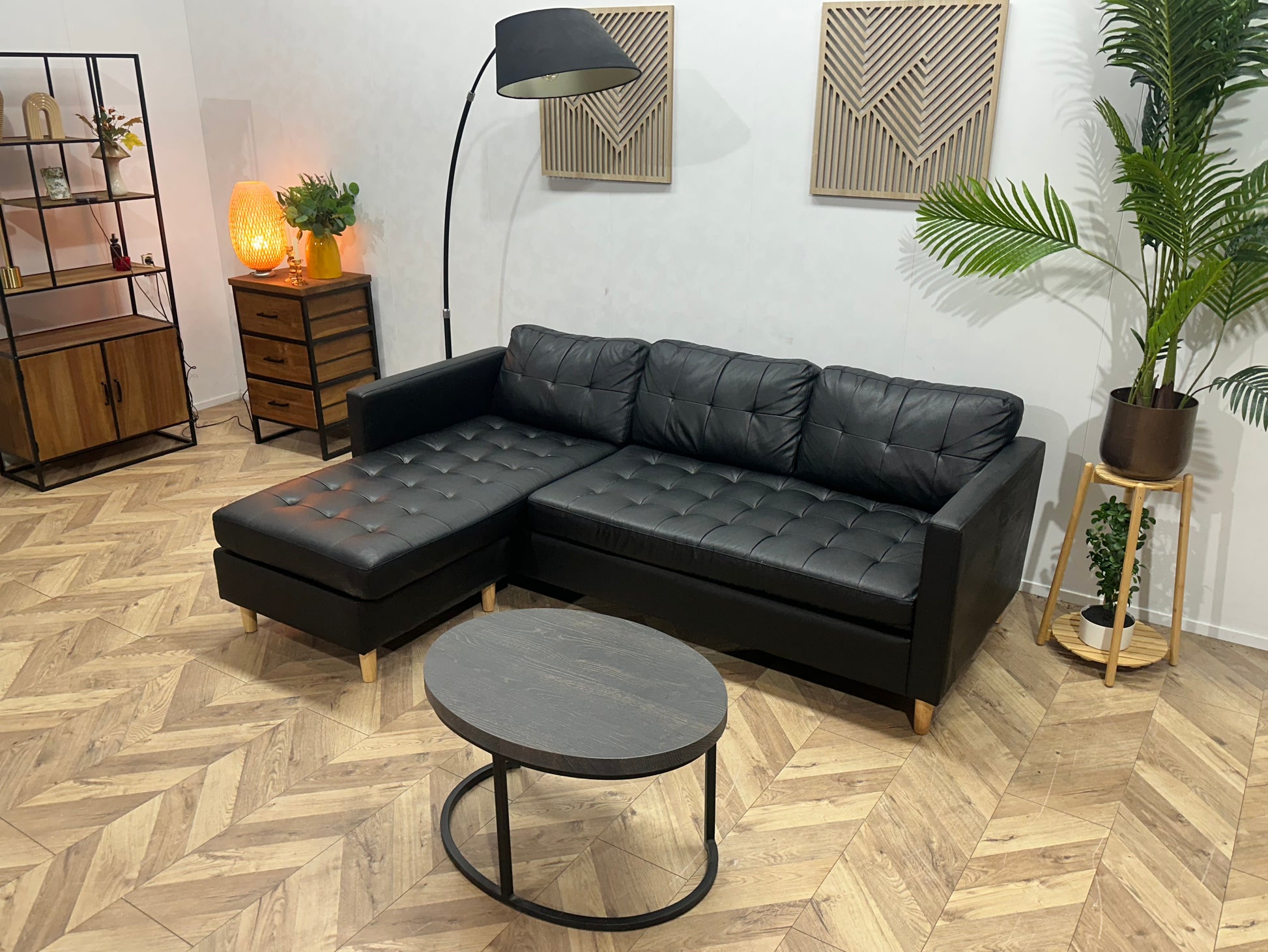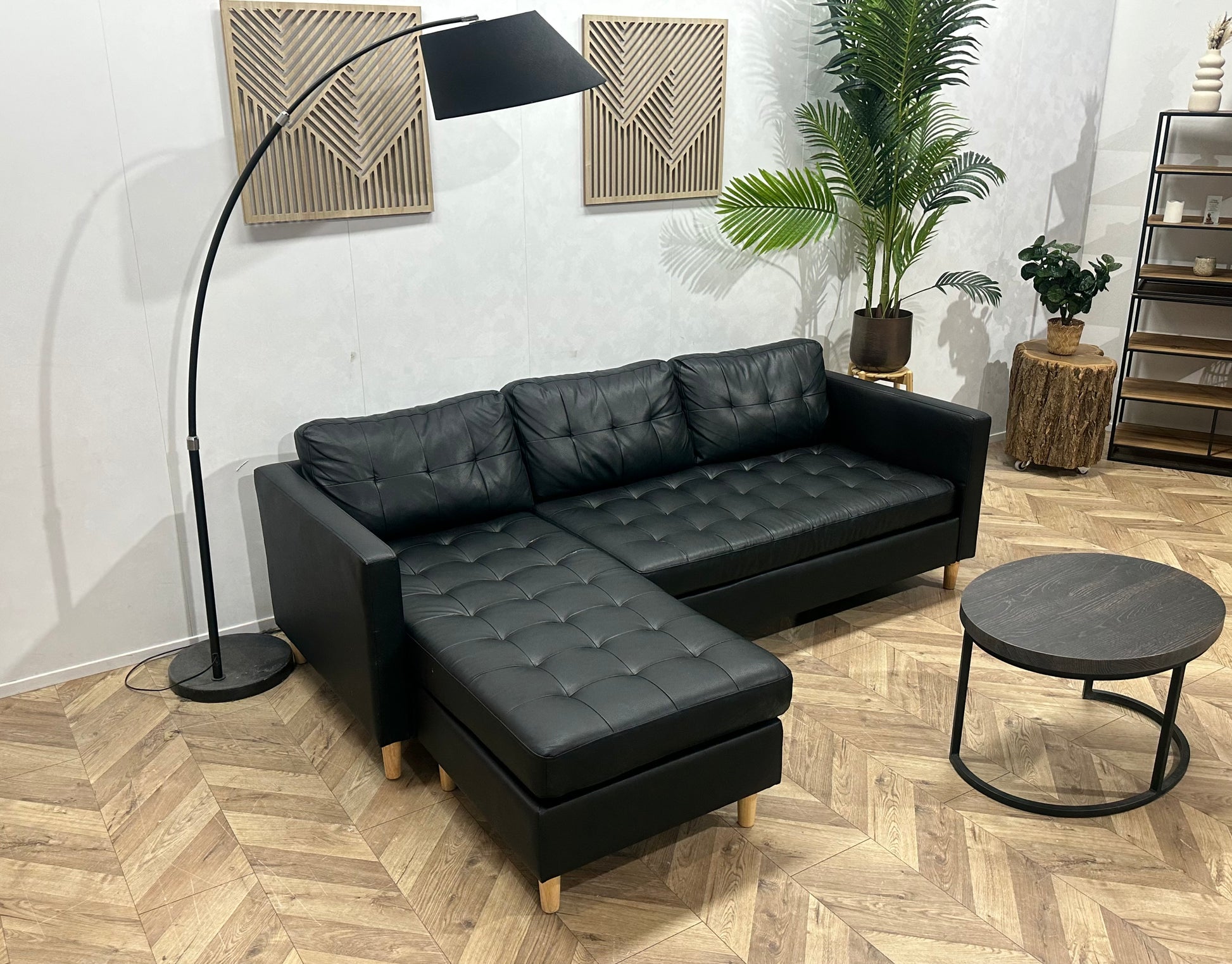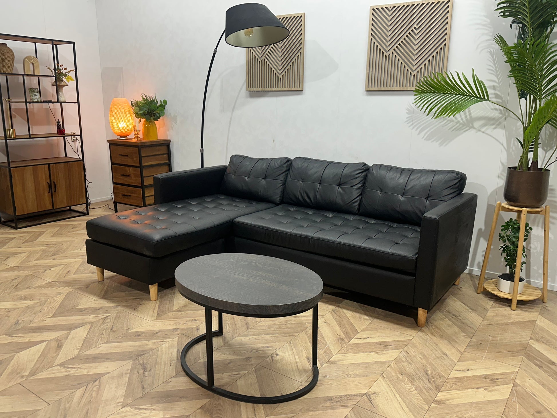 Zwart Echt Lederen Hoekbank ~ Losse Kussens Met Afneembare Hoezen