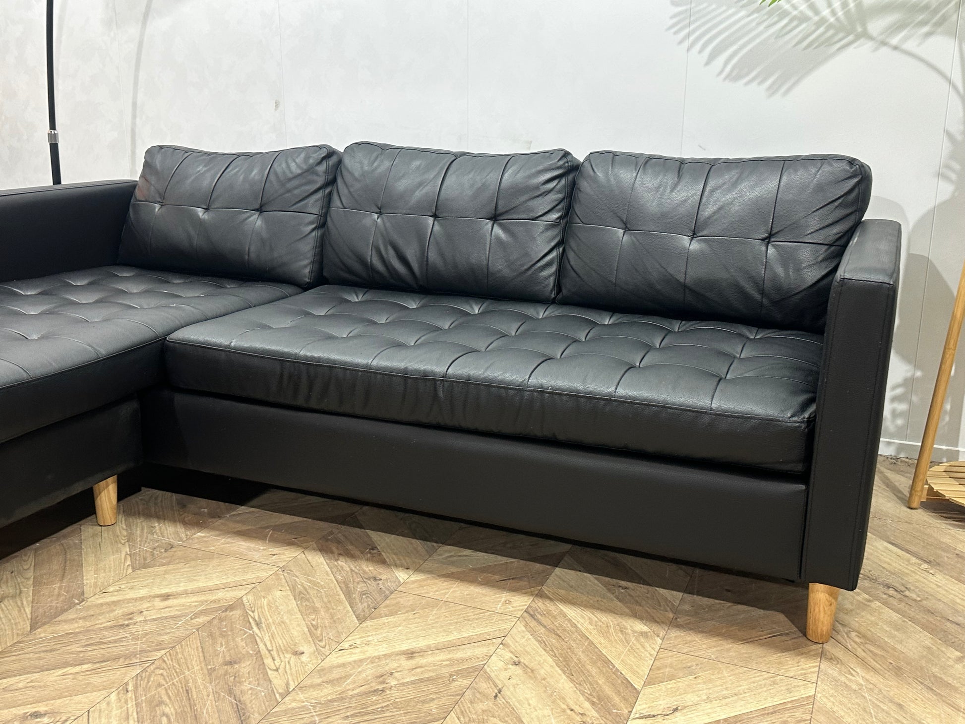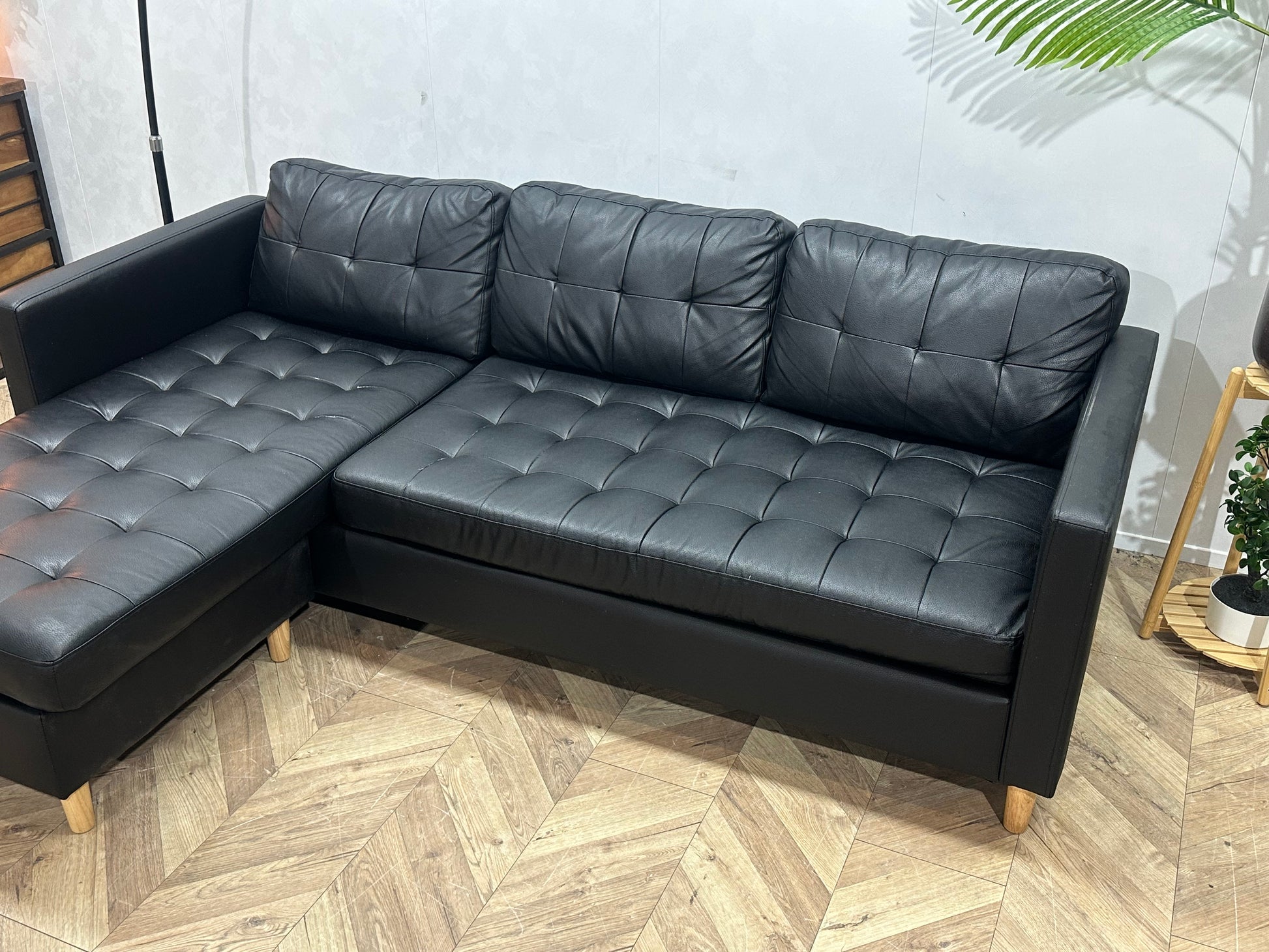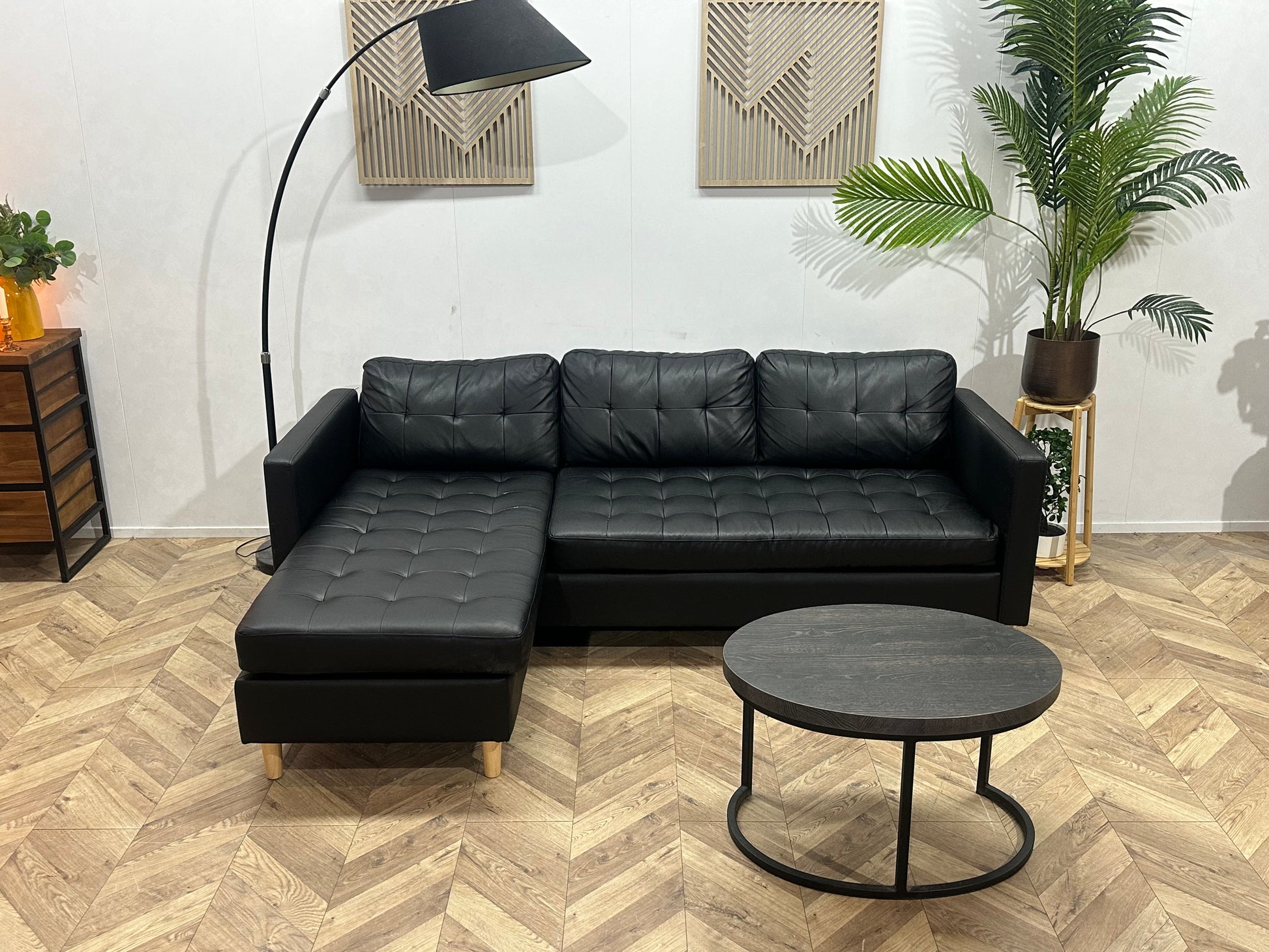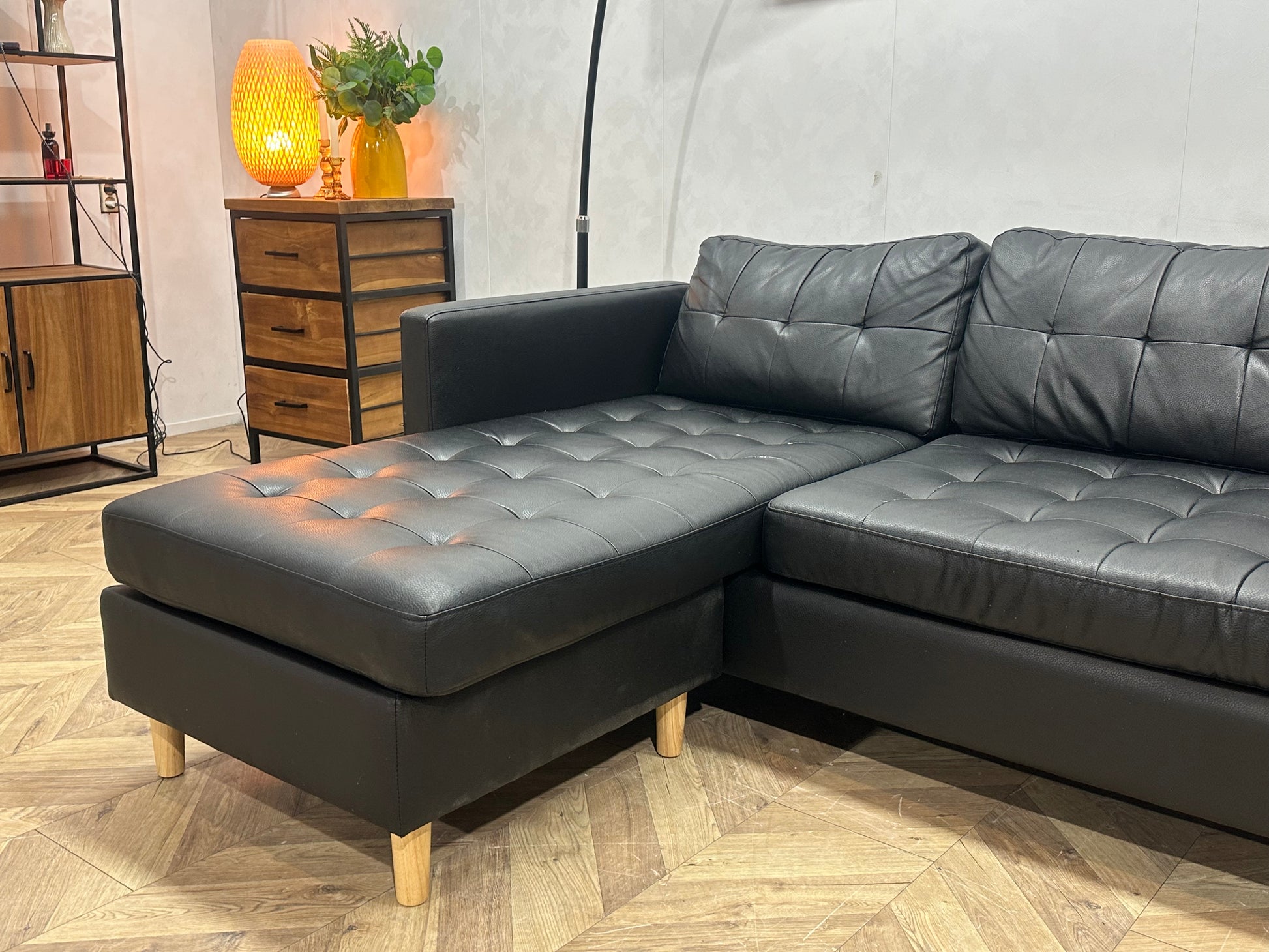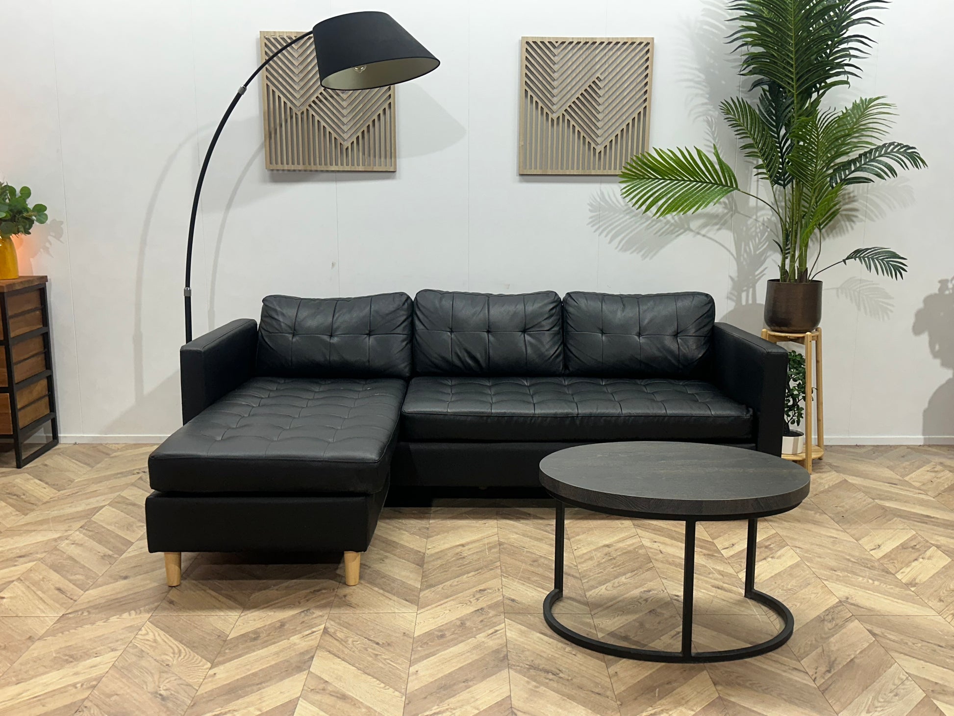 Zwart Echt Lederen Hoekbank ~ Losse Kussens Met Afneembare Hoezen