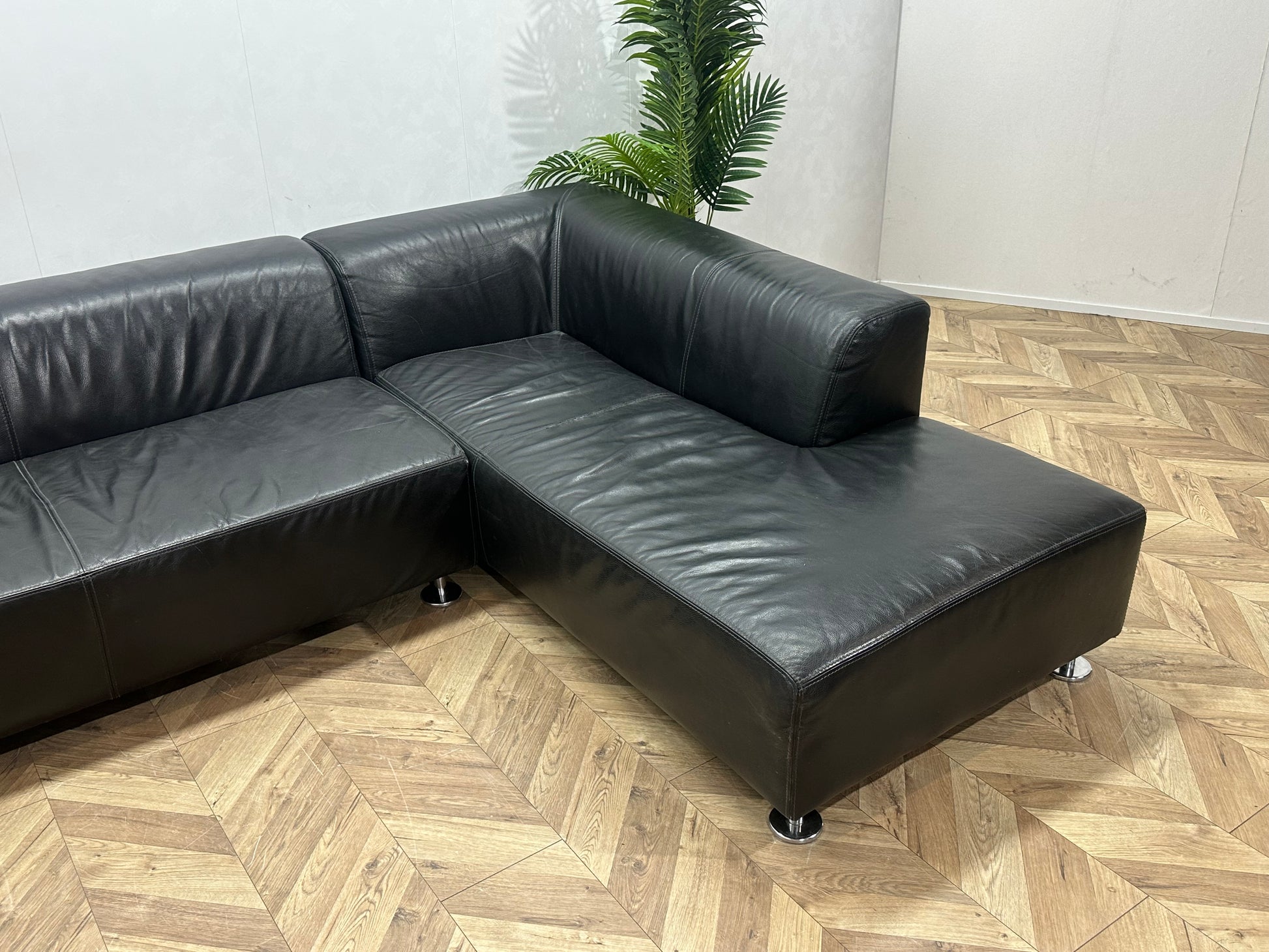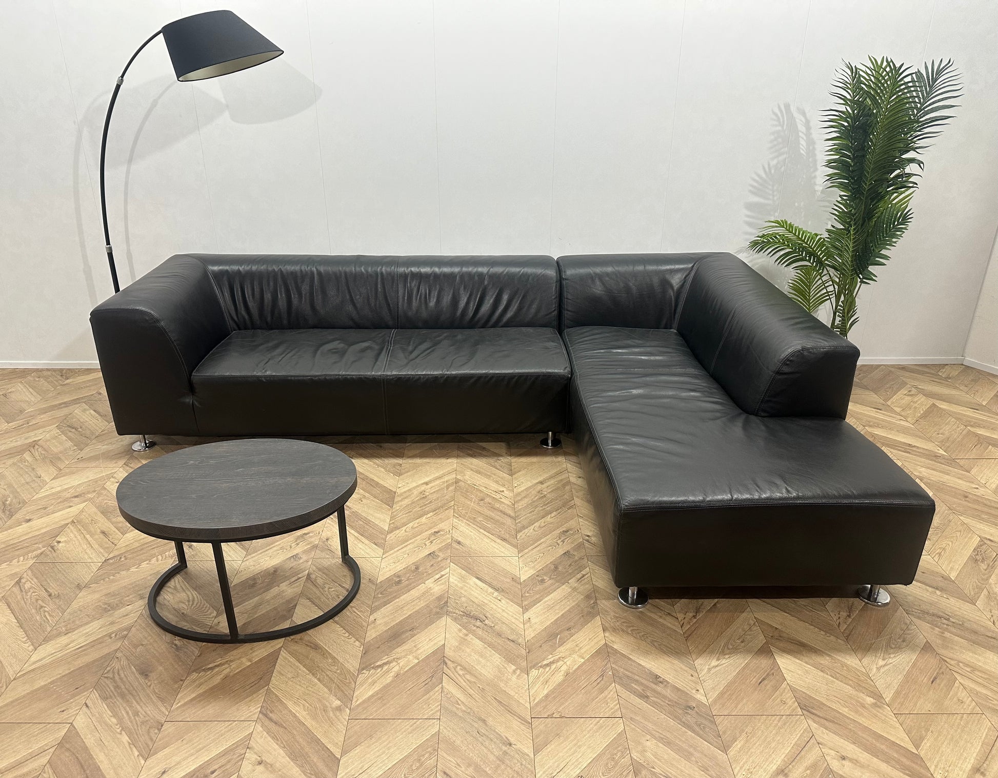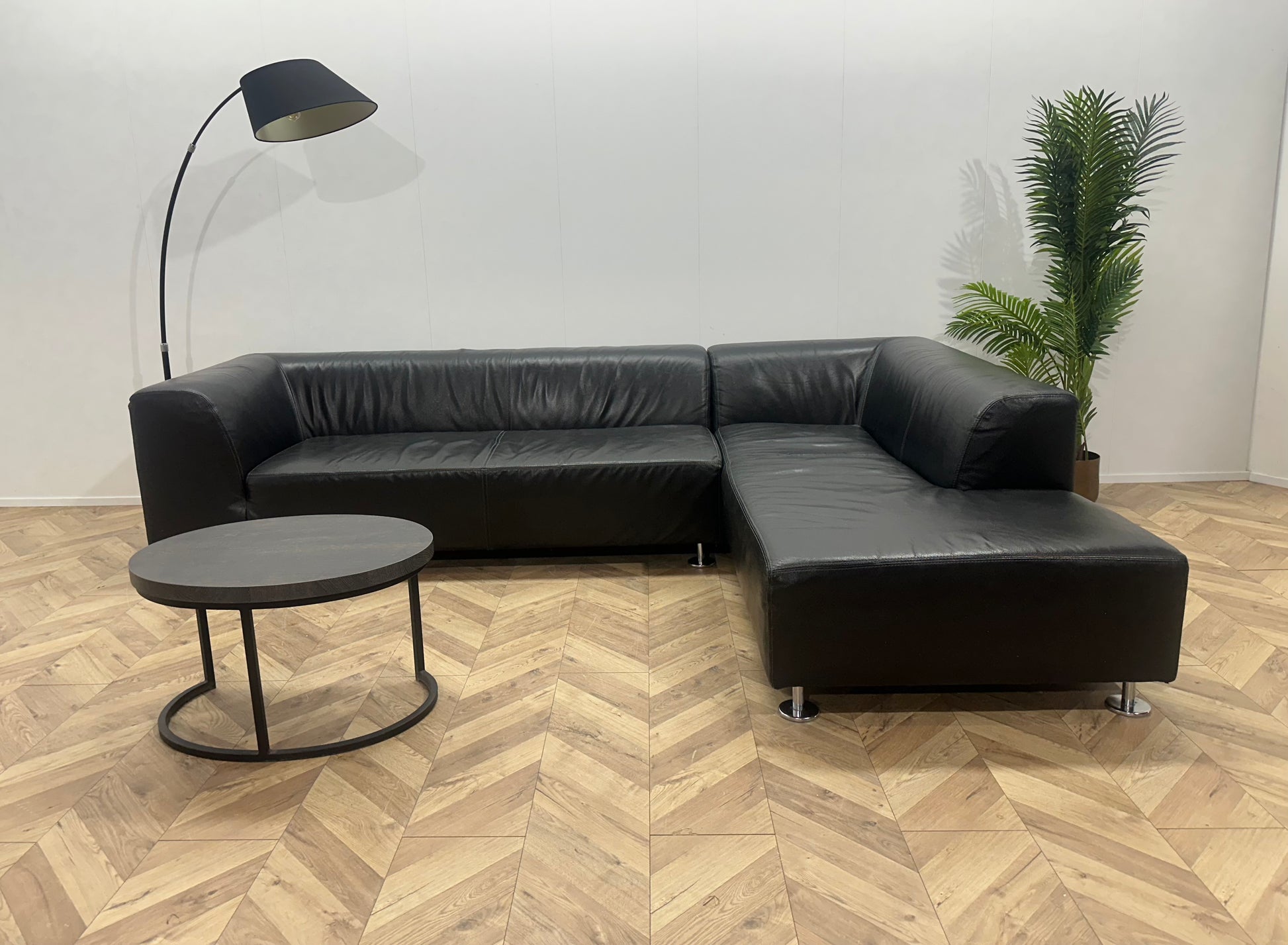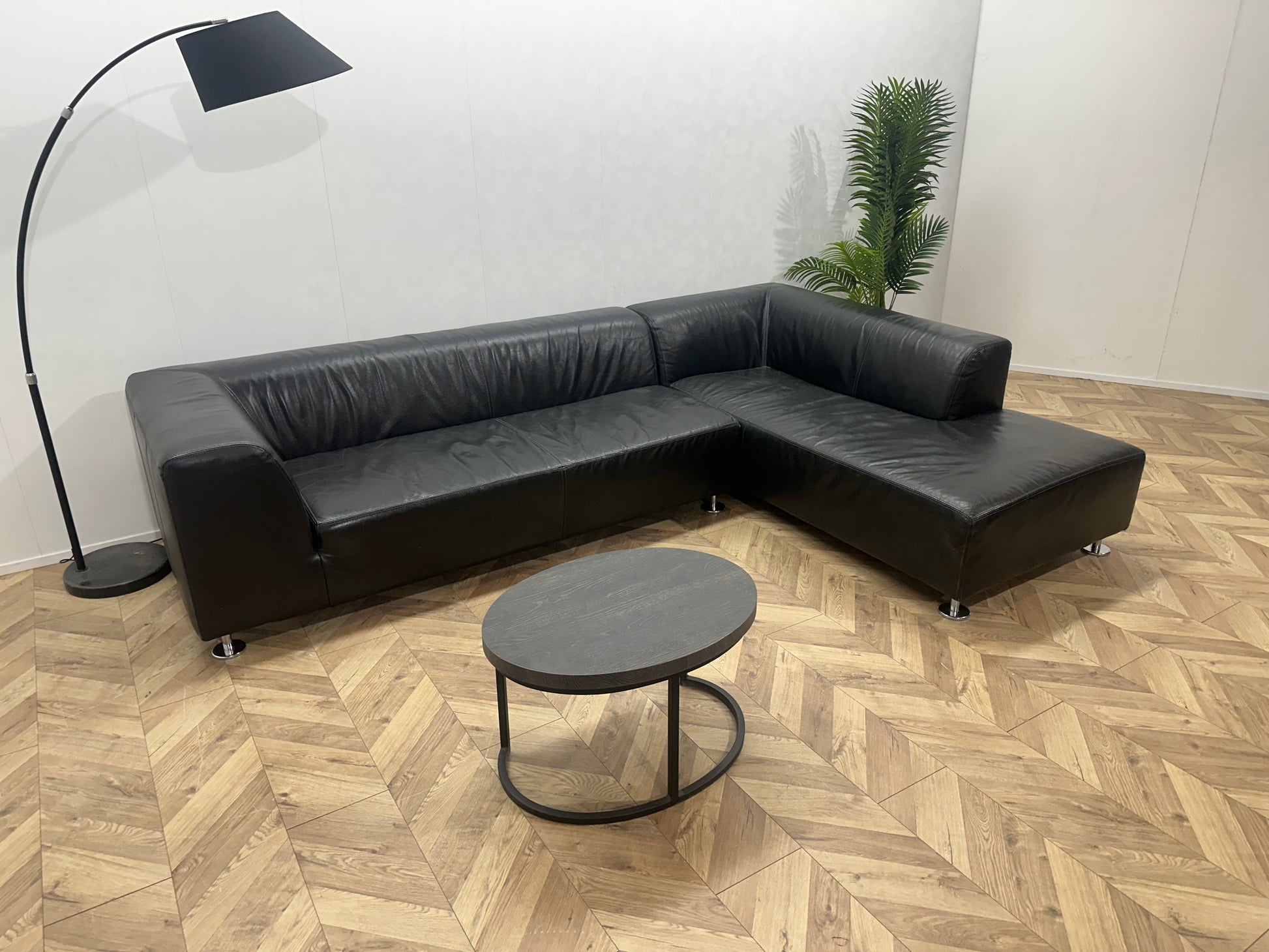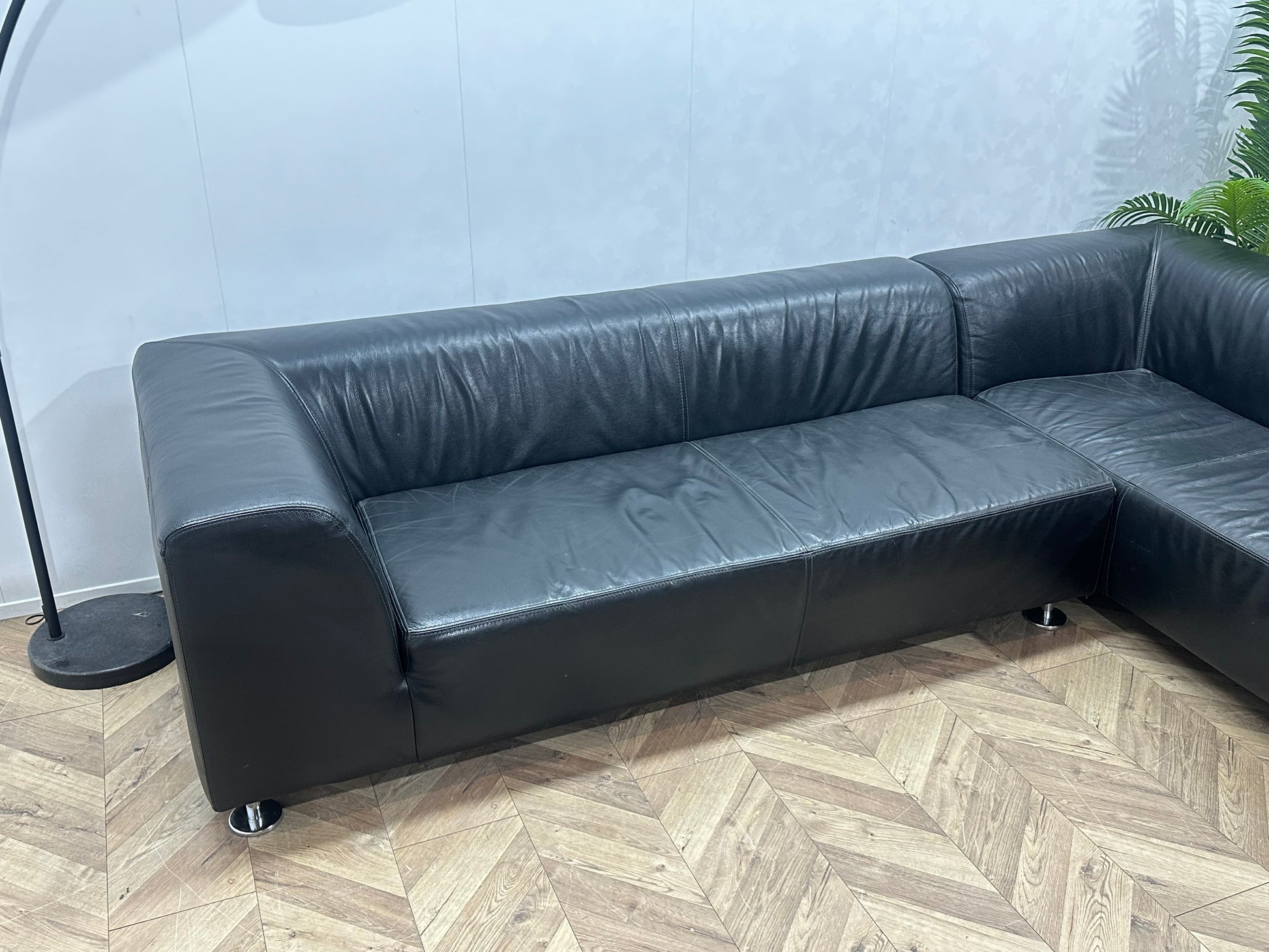 Zwart Echt Lederen Hoekbank ~ Vaste Kussens