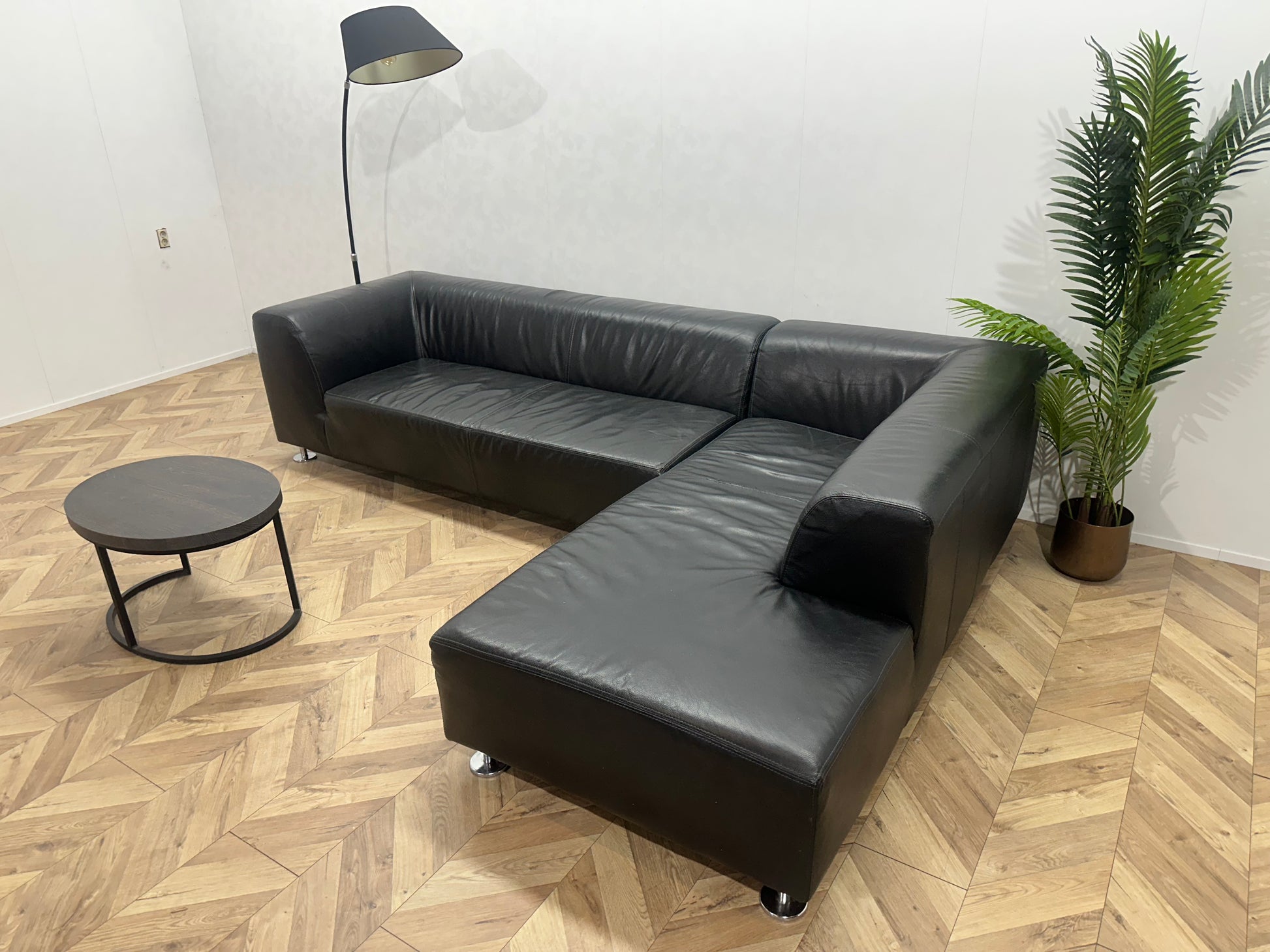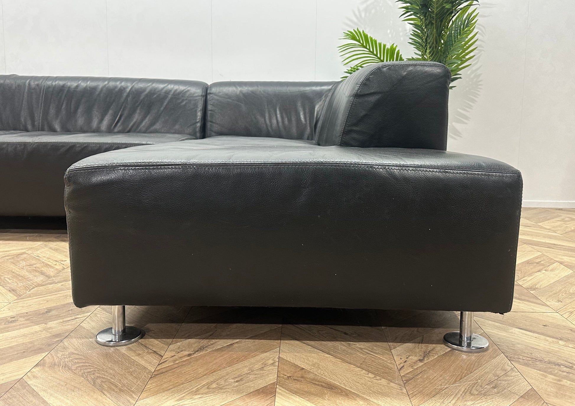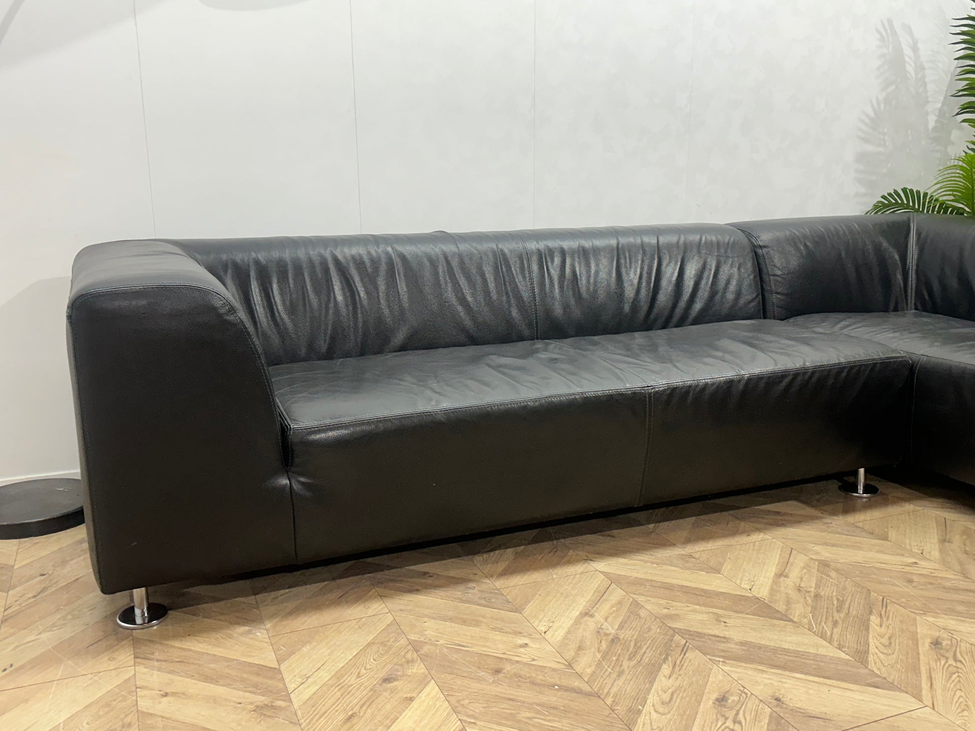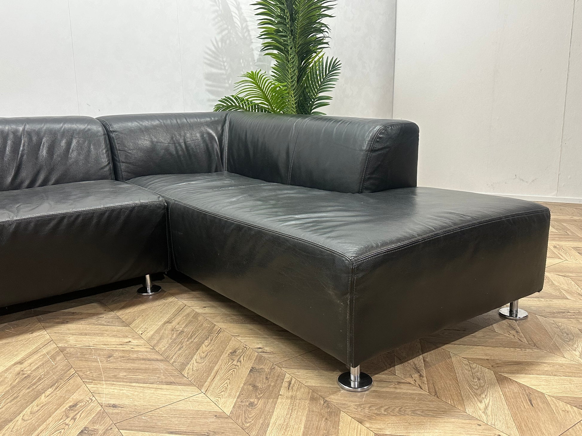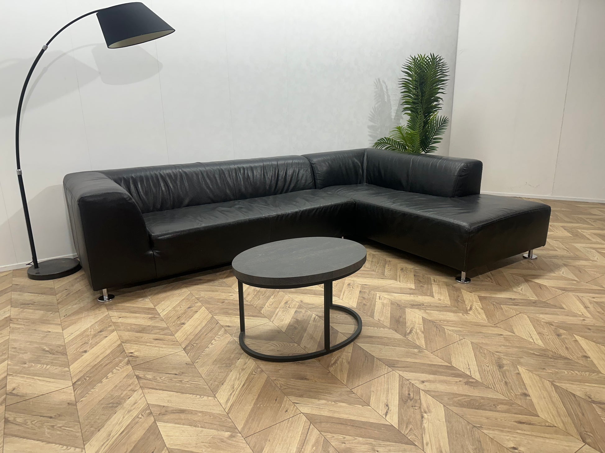 Zwart Echt Lederen Hoekbank ~ Vaste Kussens