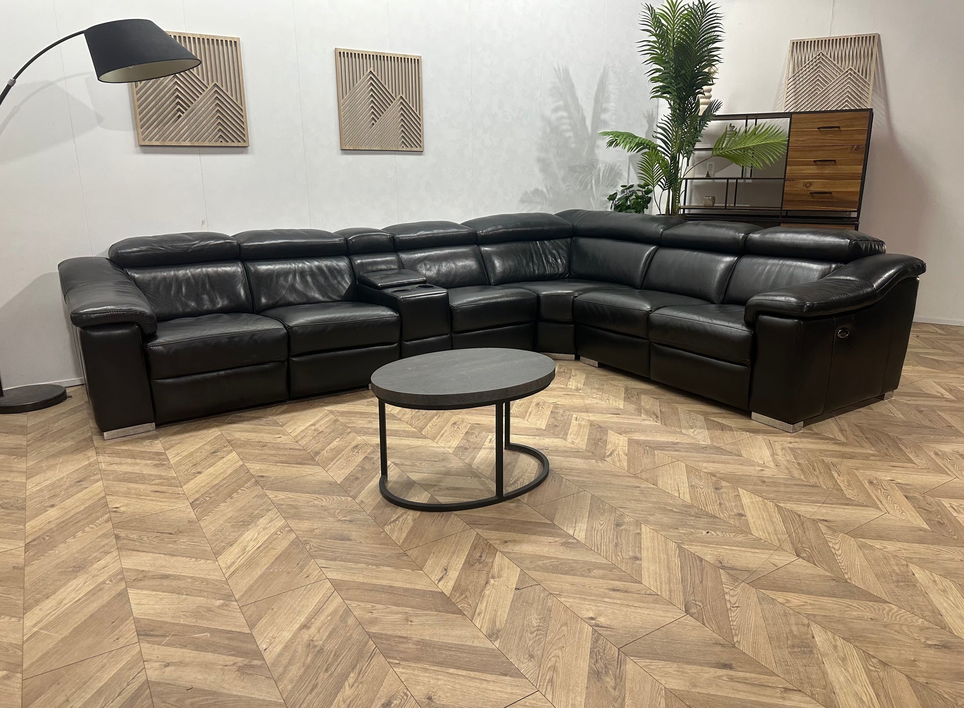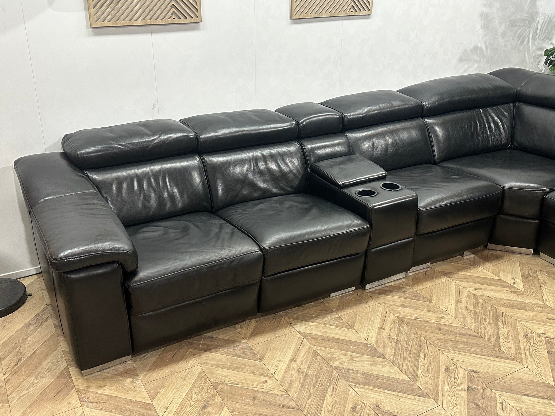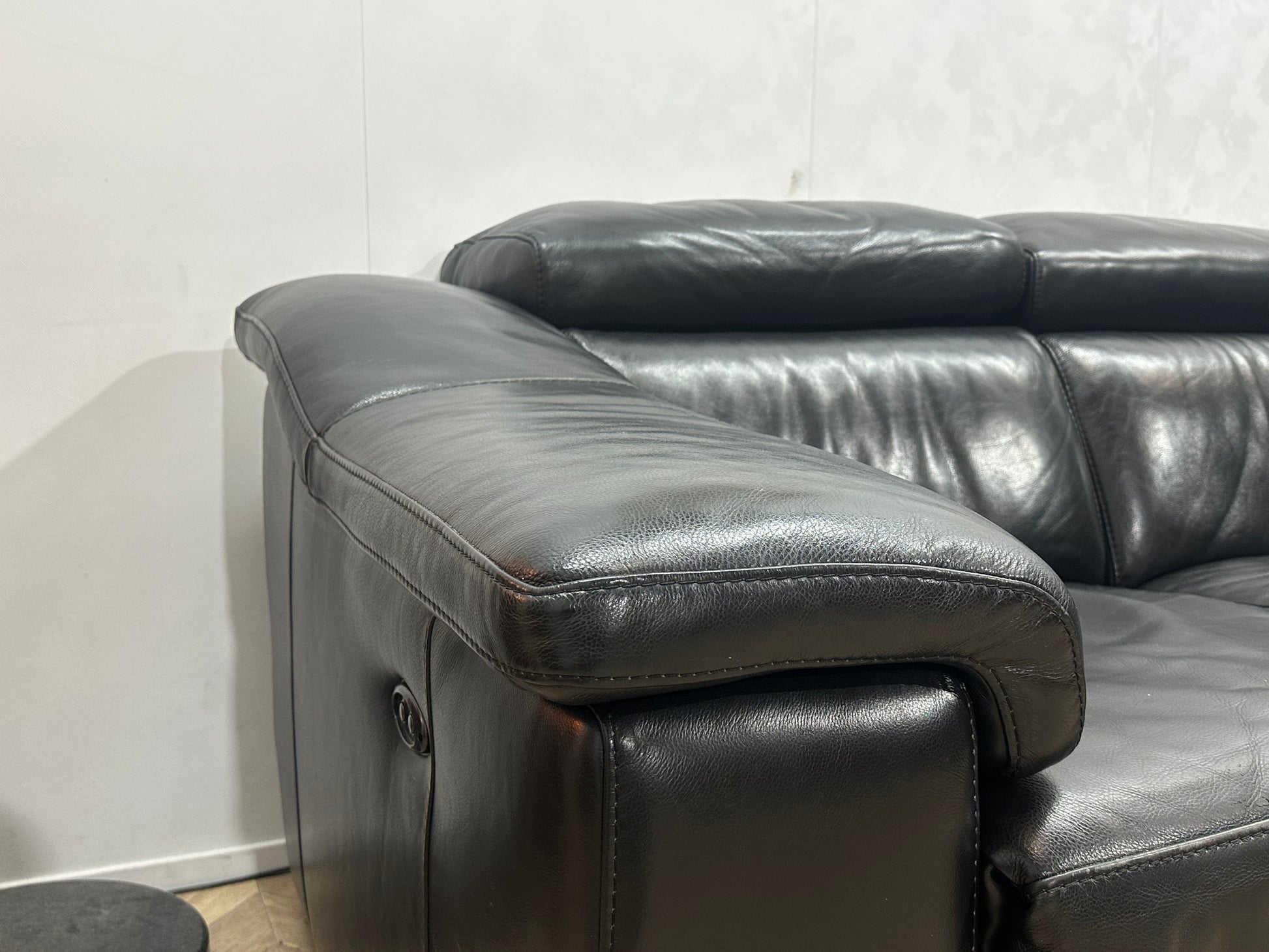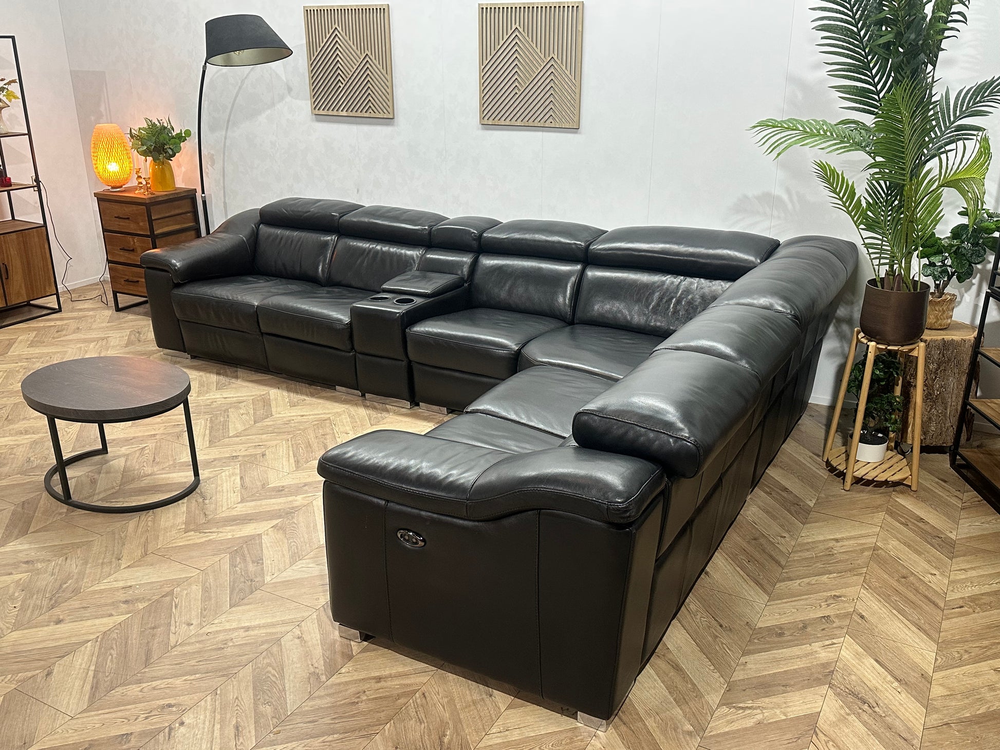 Zwart Echt Lederen Ruime Hoekbank ~ Relaxfunctie ~ Kleine Opbergruimte ~ Verstelbare Hoofdsteunen