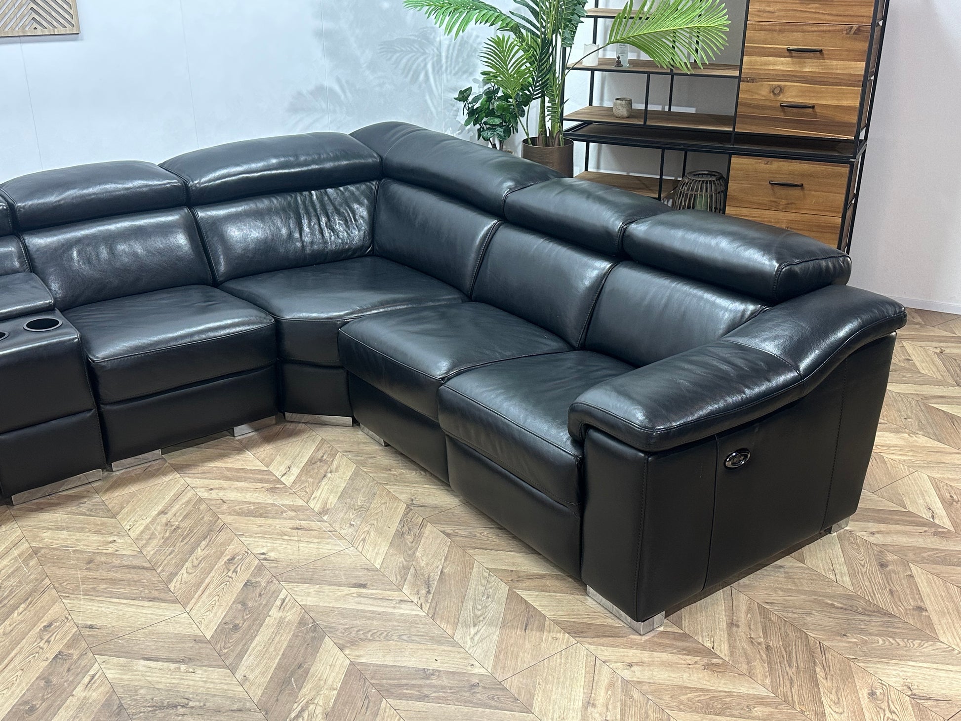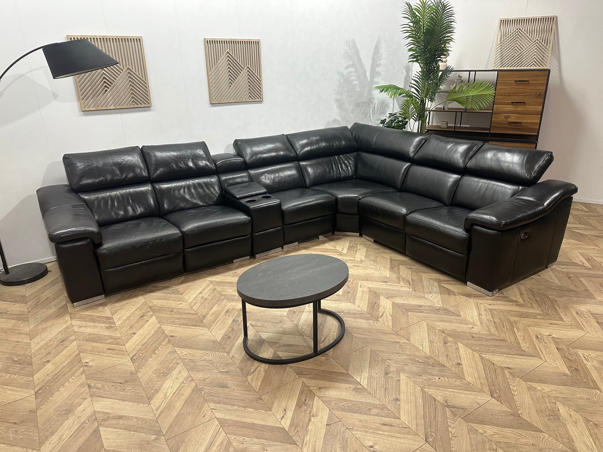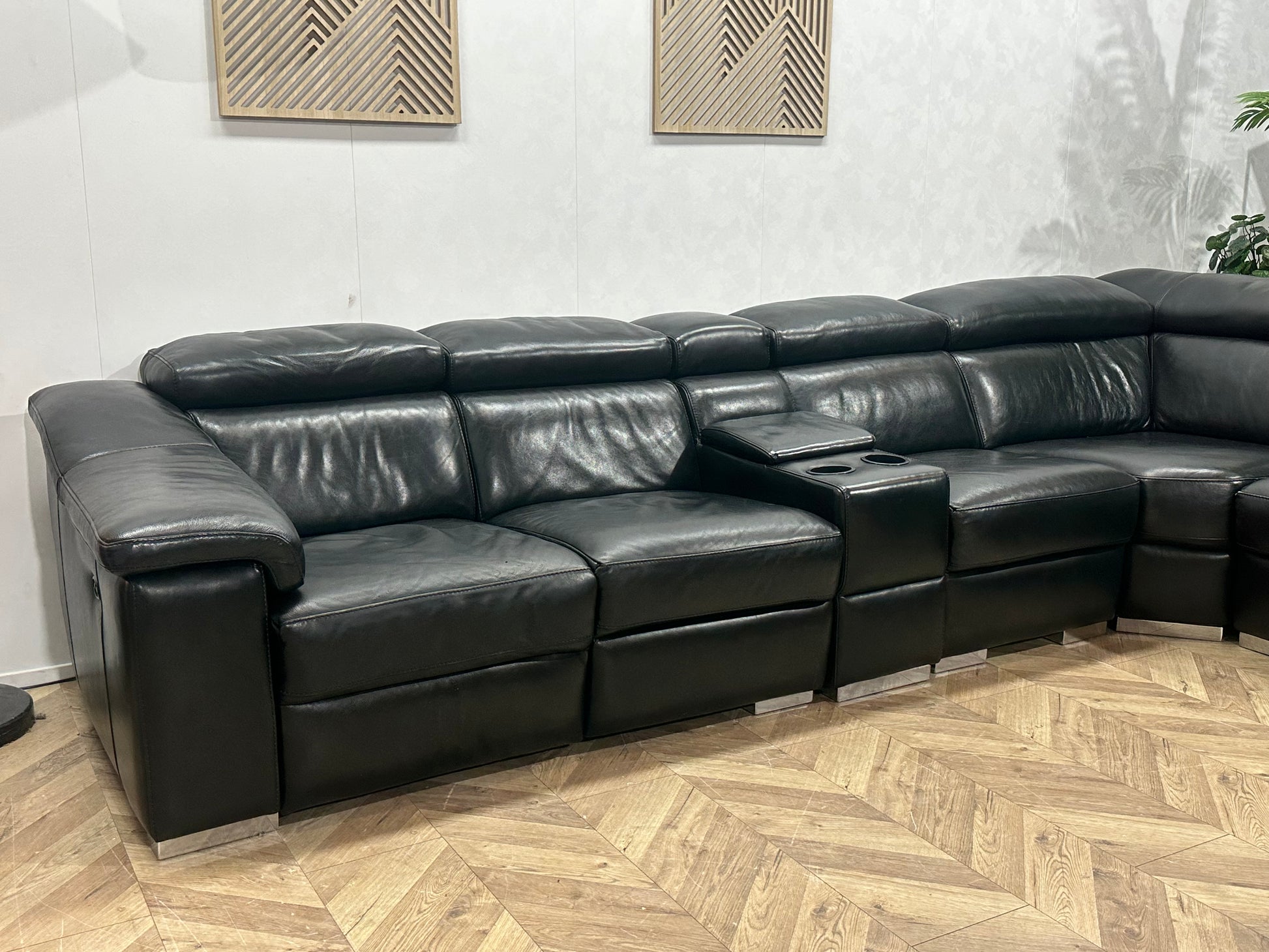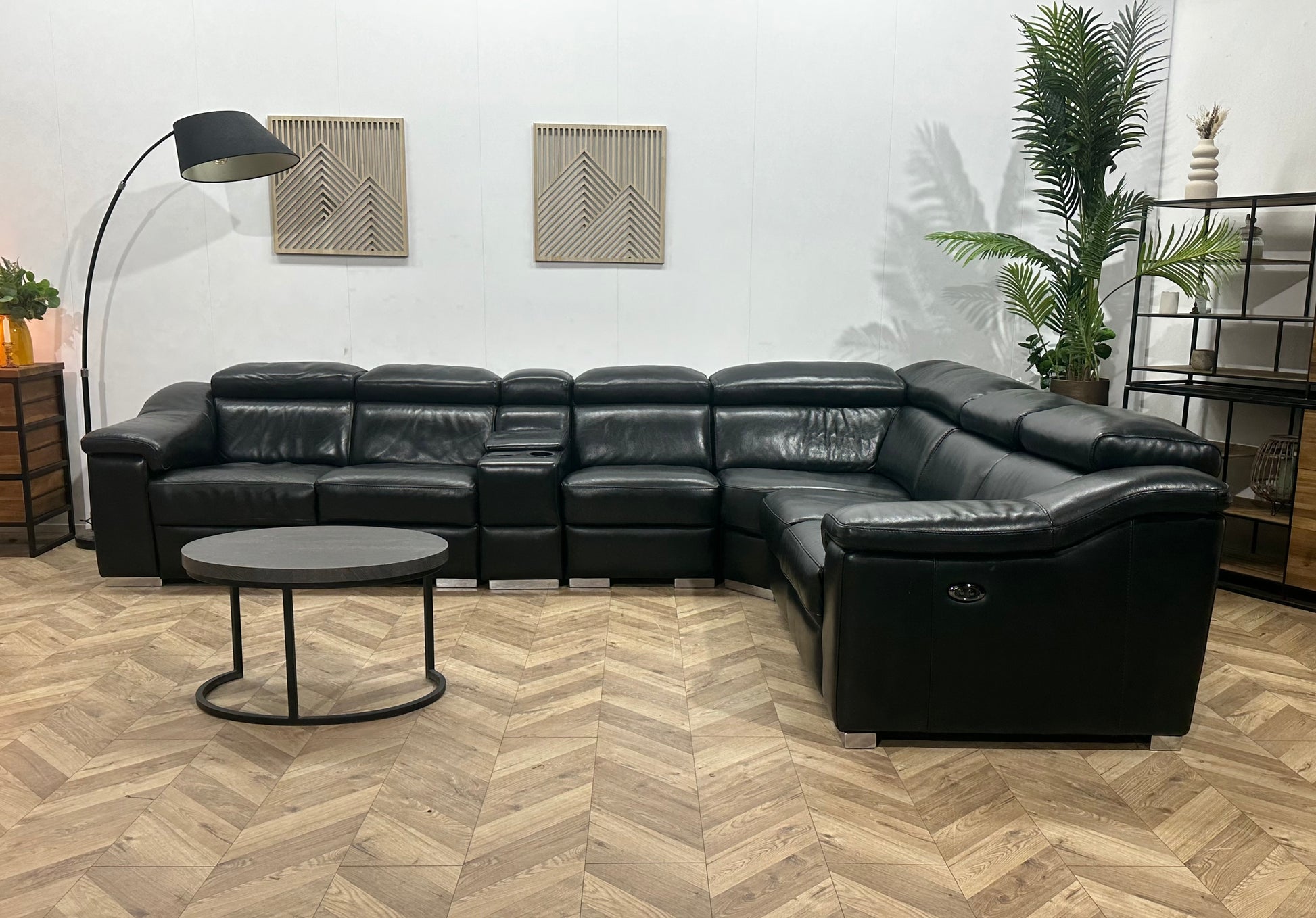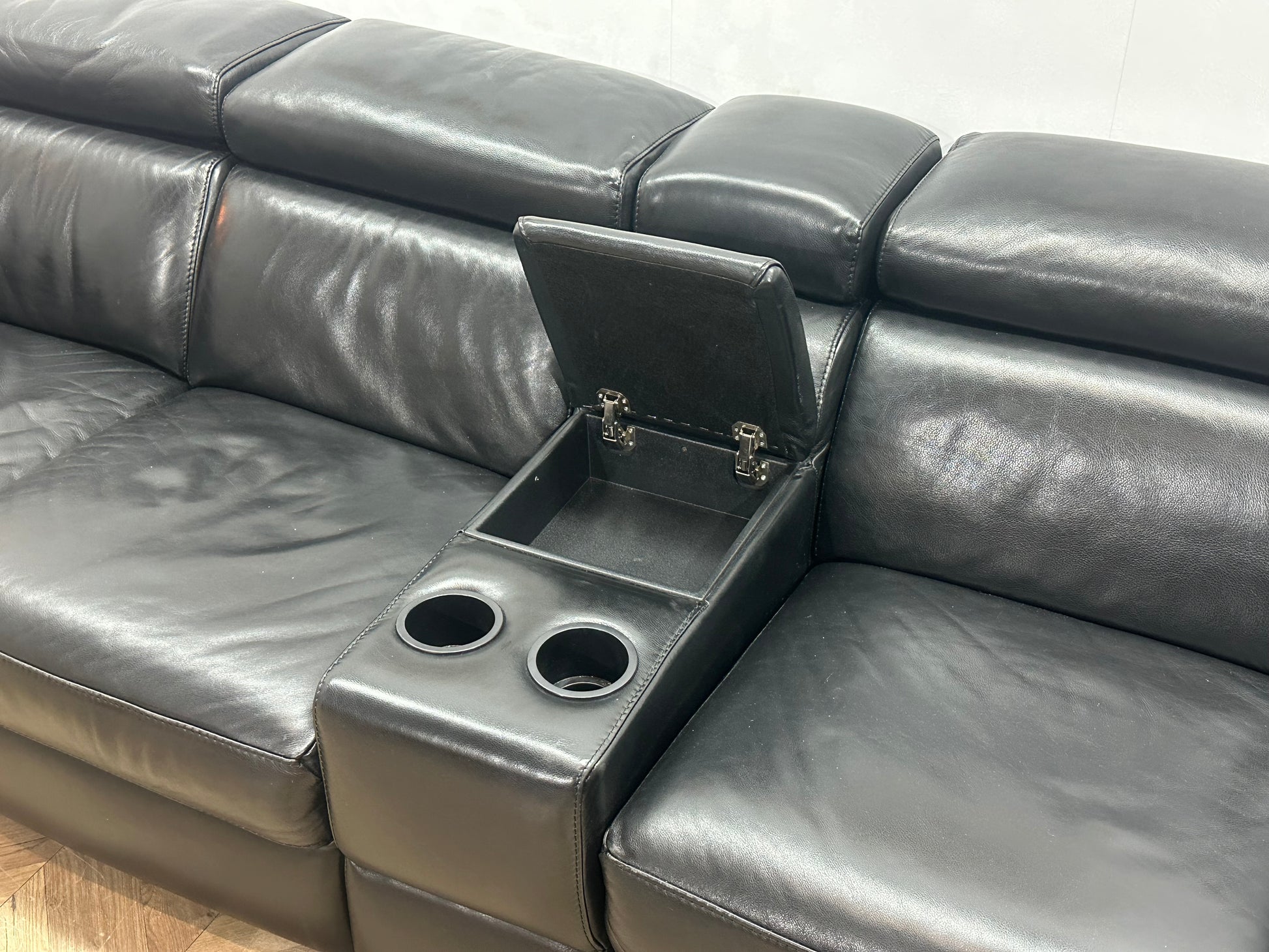 Zwart Echt Lederen Ruime Hoekbank ~ Relaxfunctie ~ Kleine Opbergruimte ~ Verstelbare Hoofdsteunen